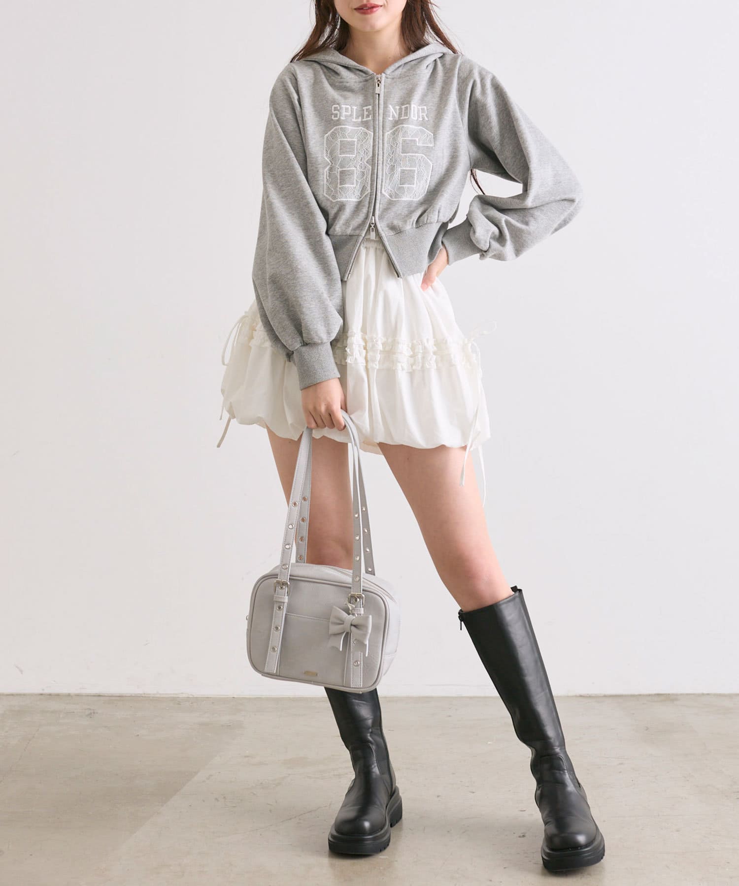 ・フリルとリボン付きでガーリーコーデにぴったりなデザインです。