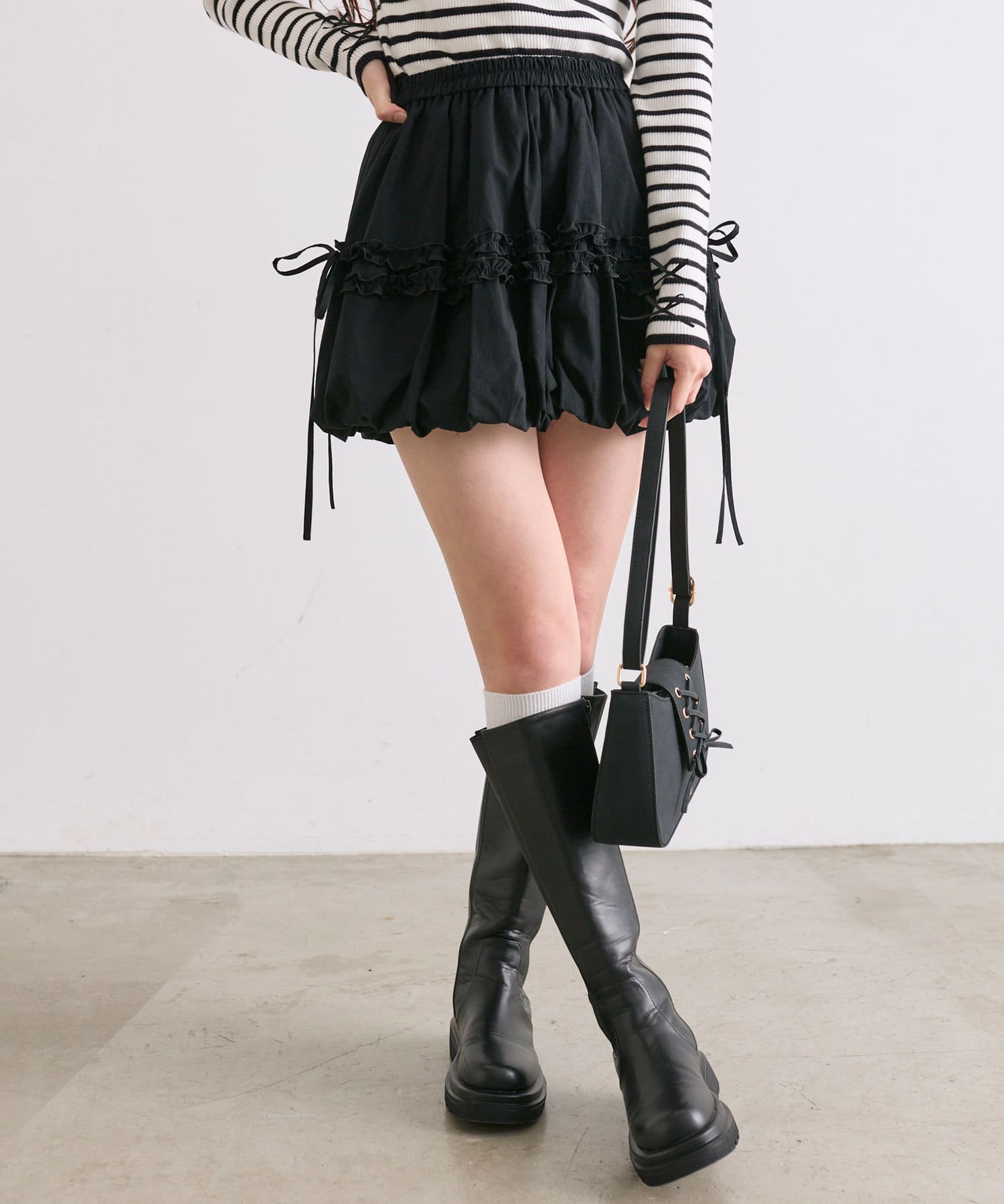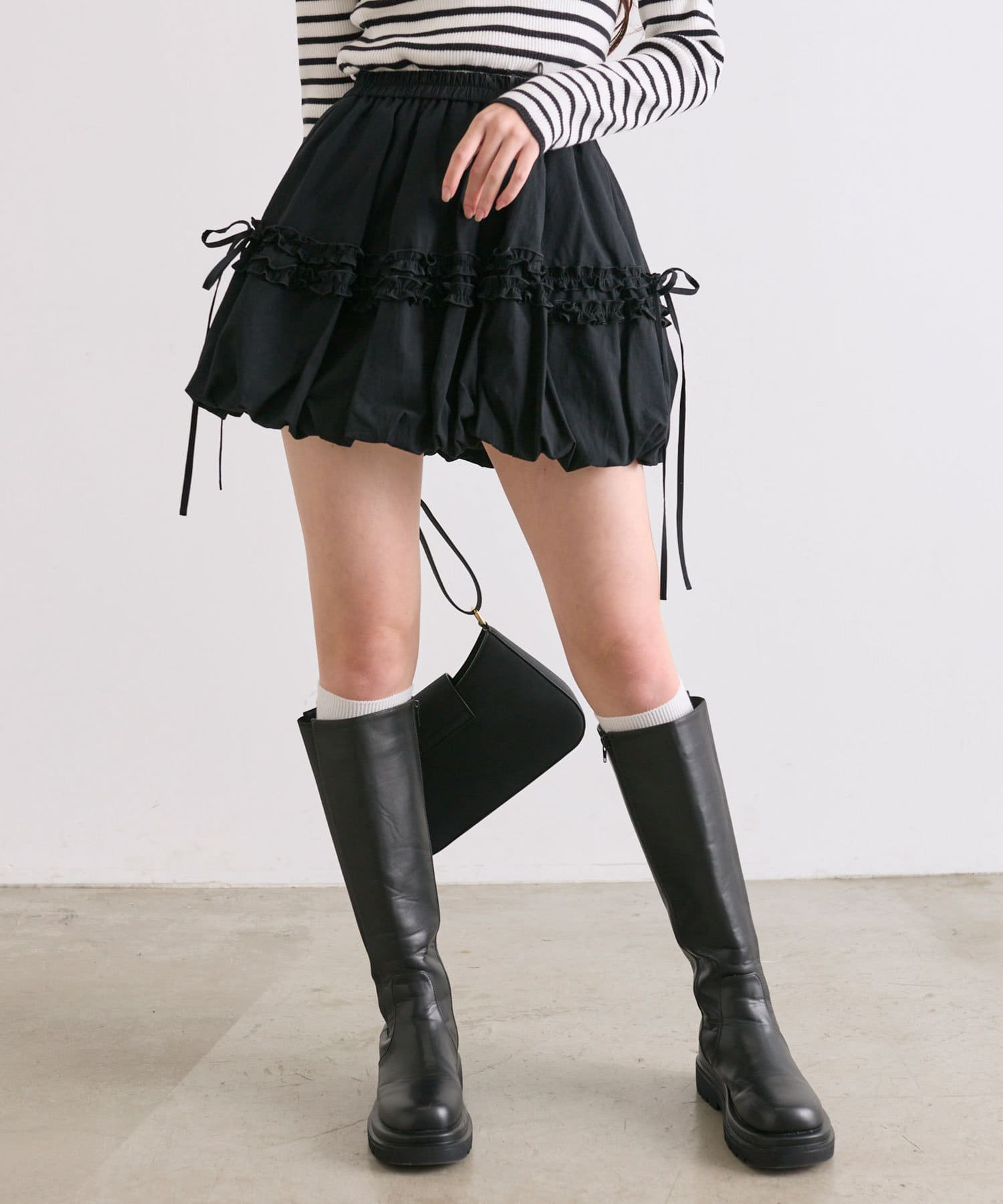 トレンド感あるバルーンシルエットのミニスカート