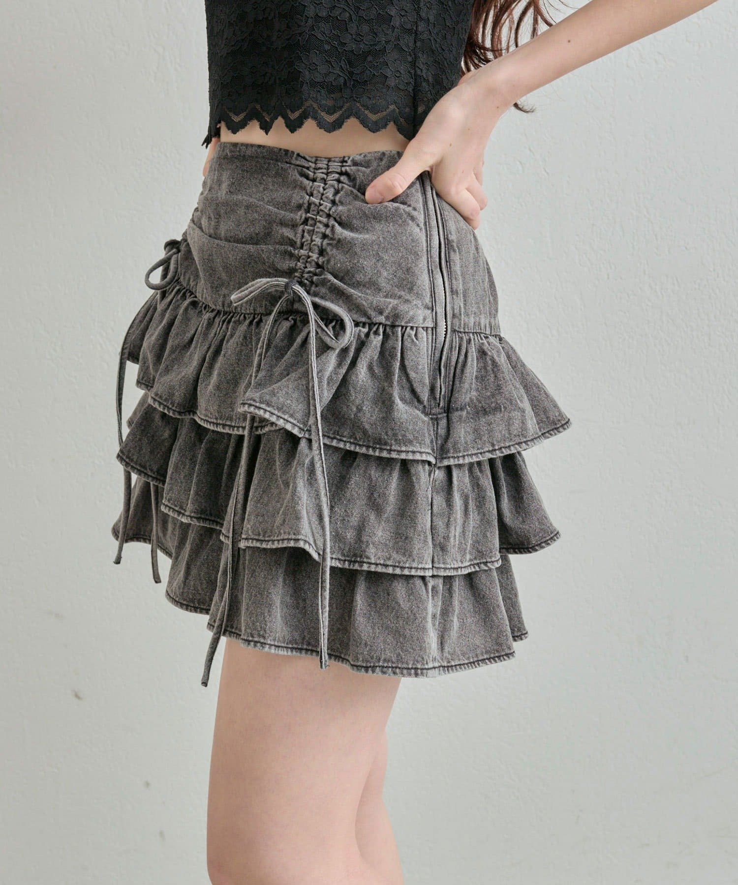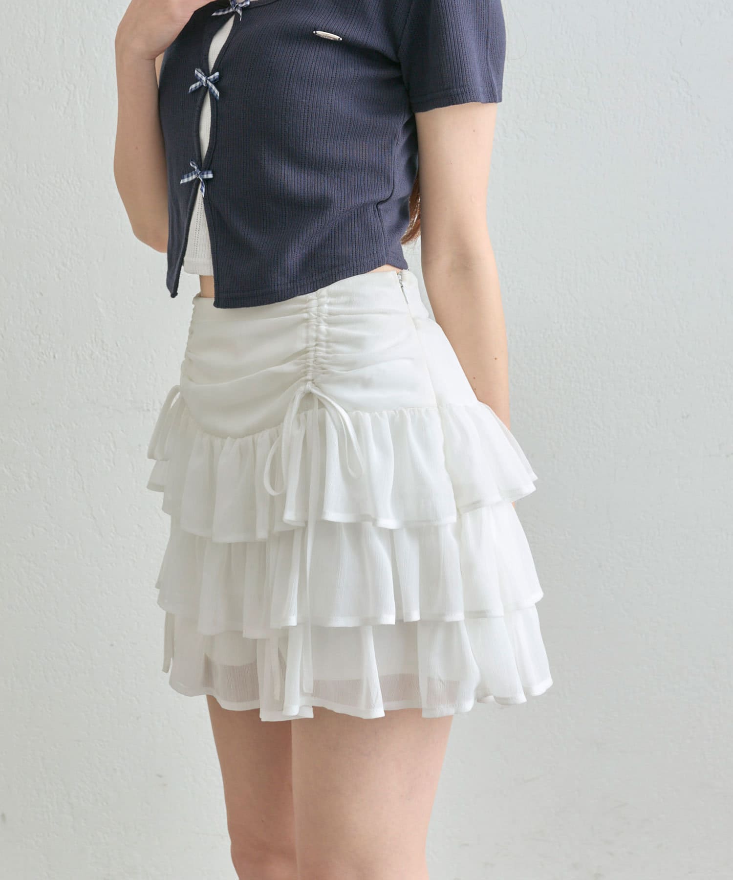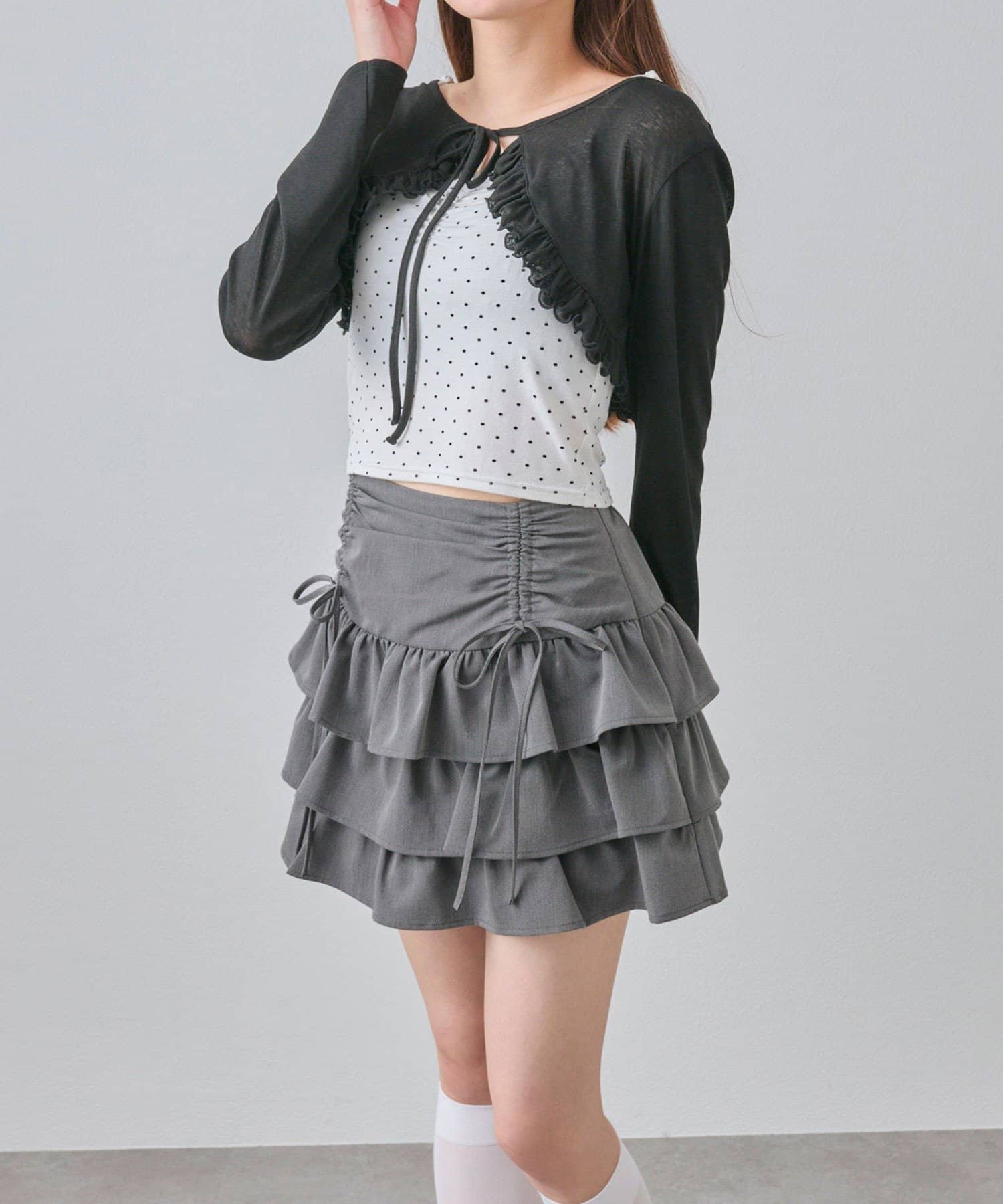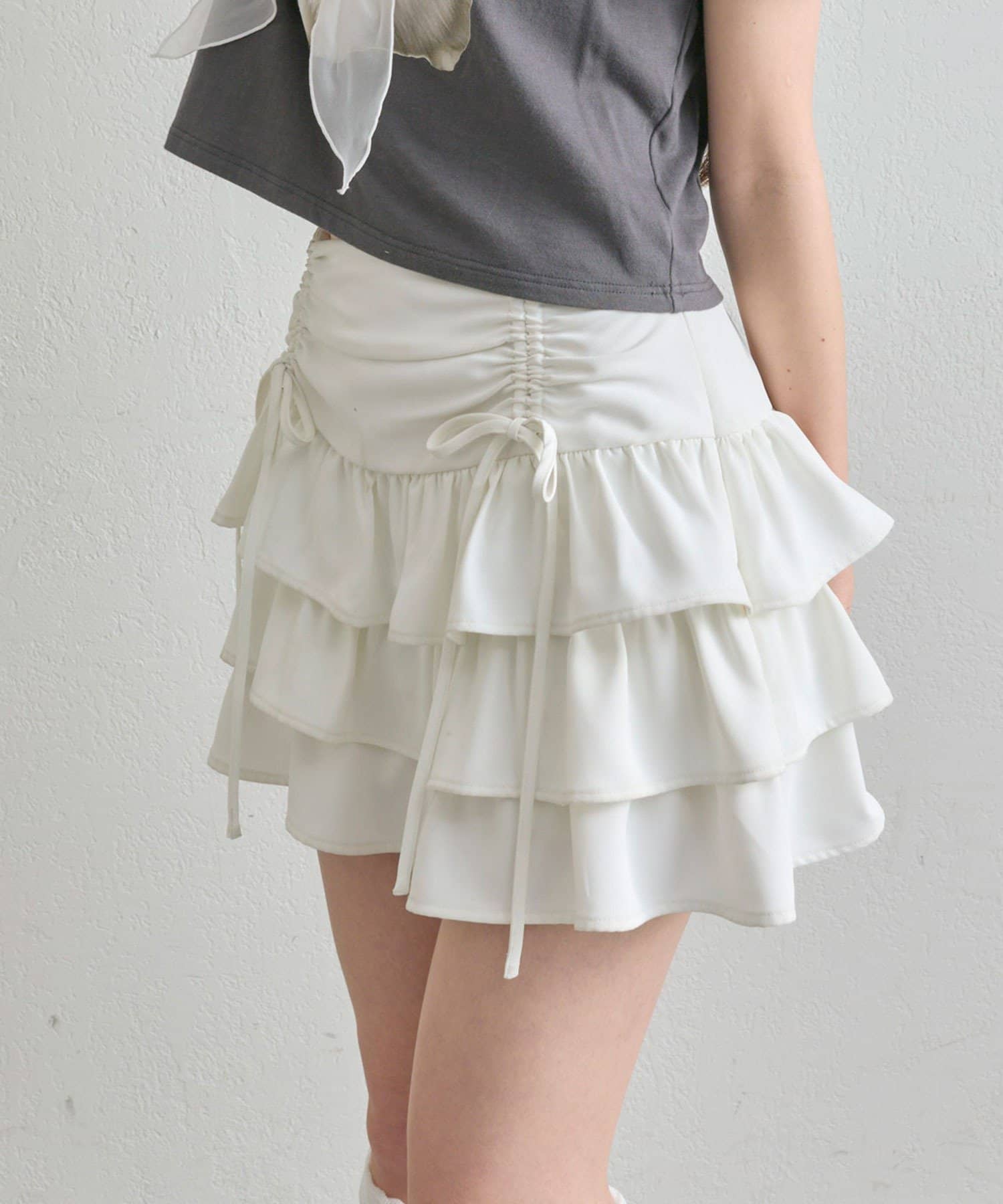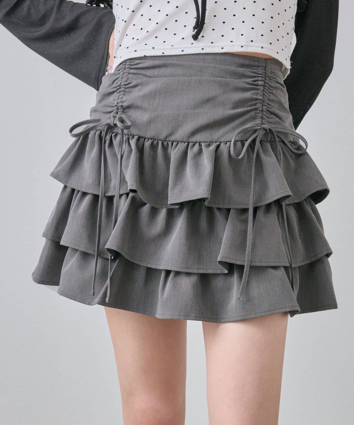 ドロストデザインがポイントのティアードミニスカート