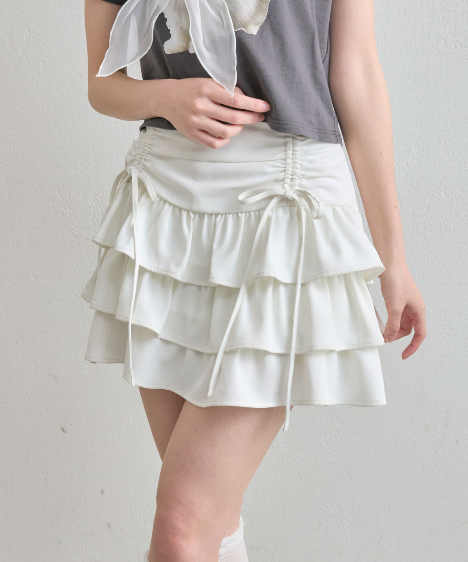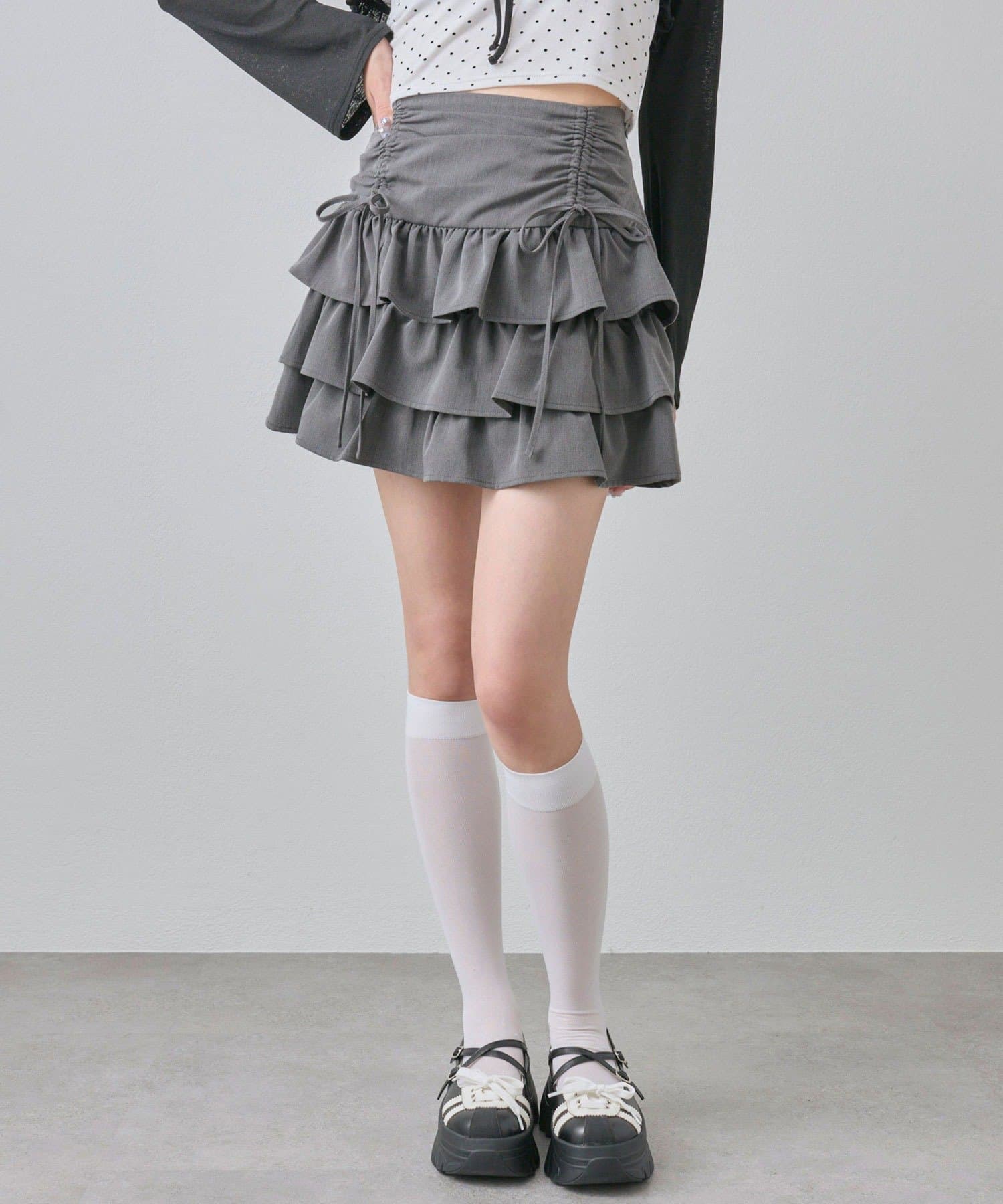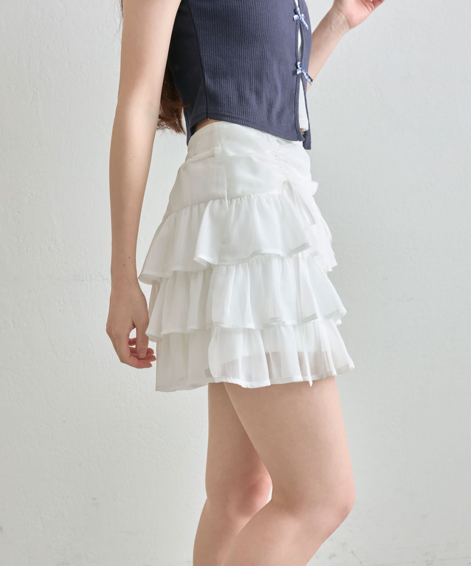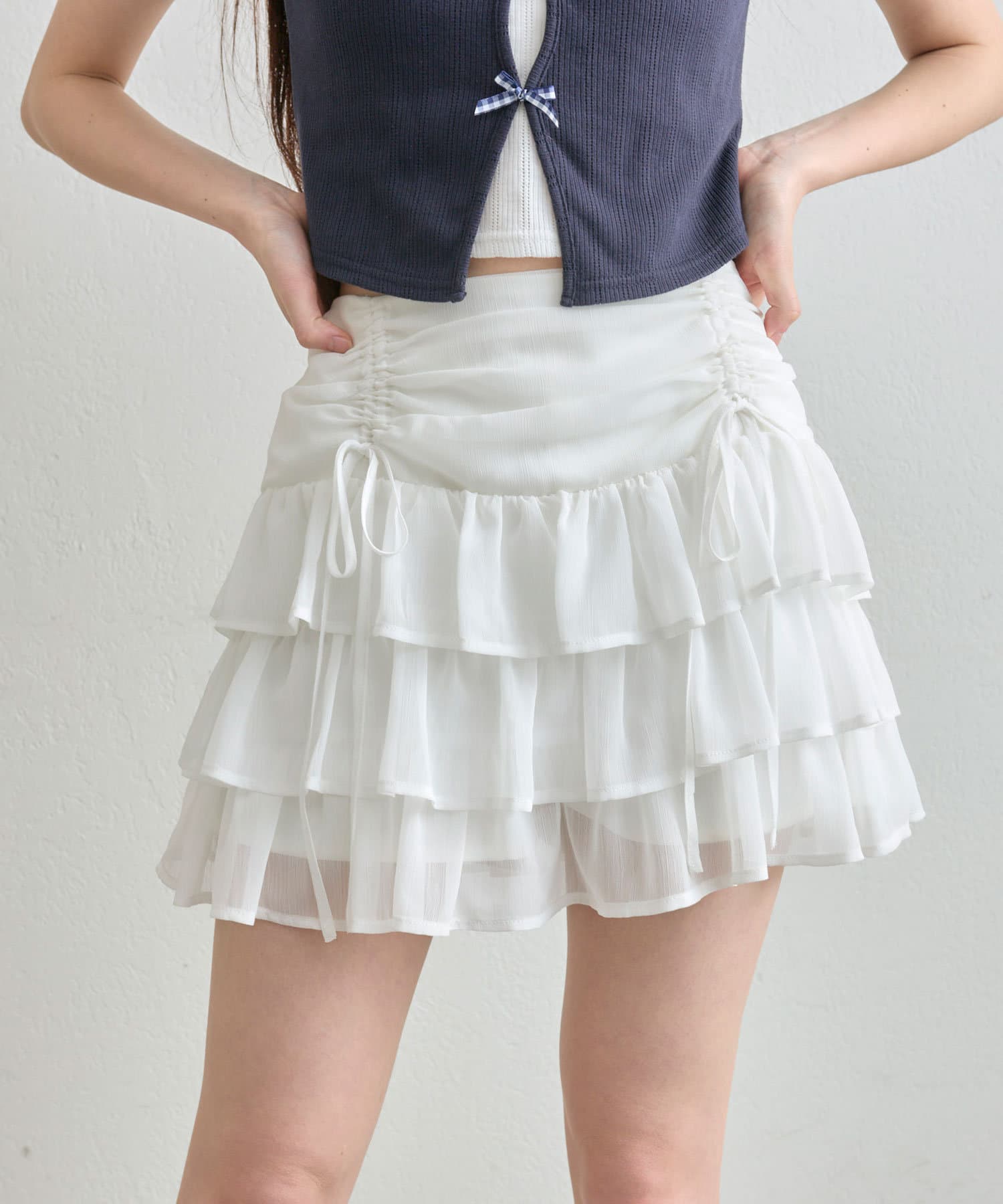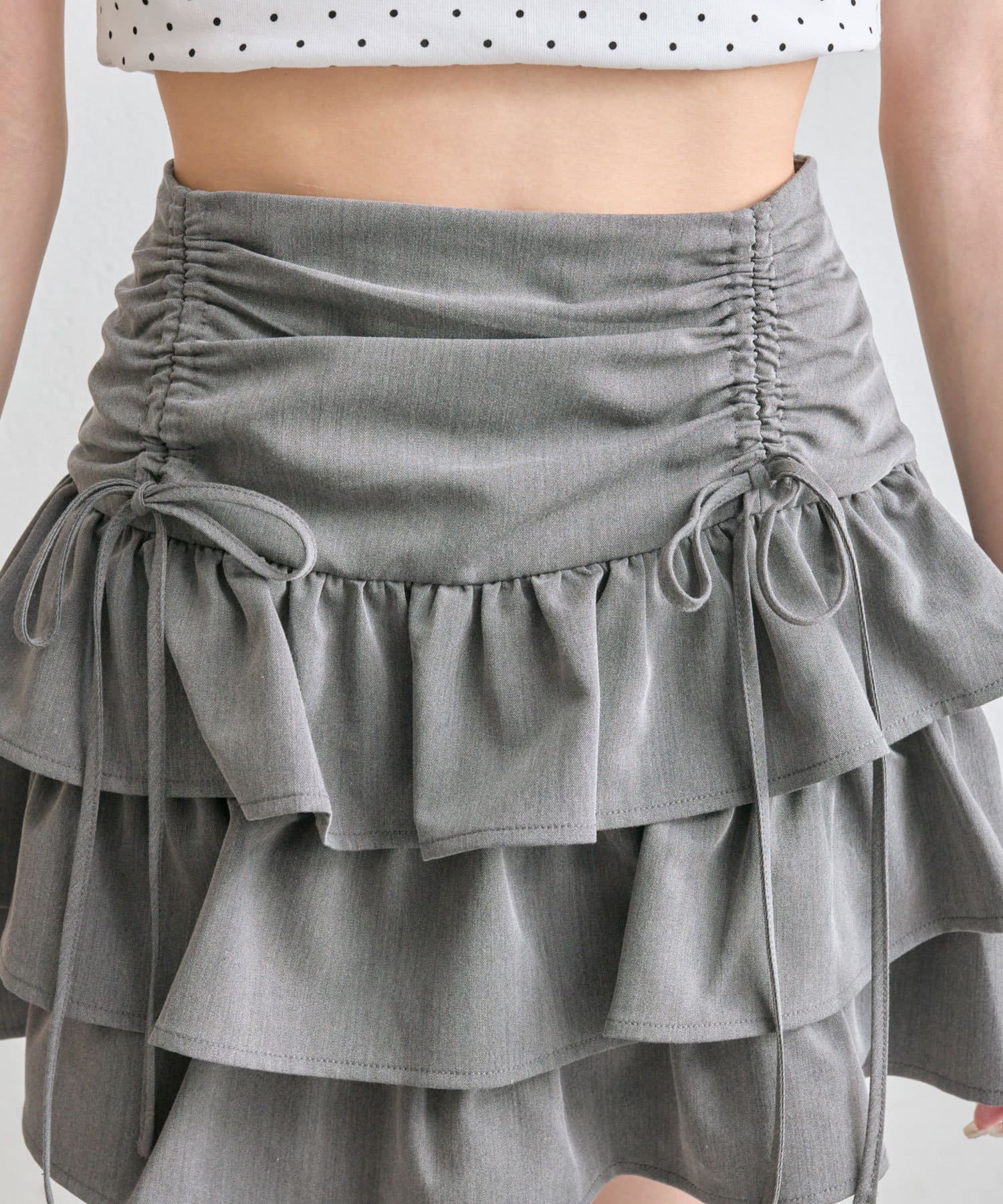 ドロストデザインがポイントのティアードミニスカート