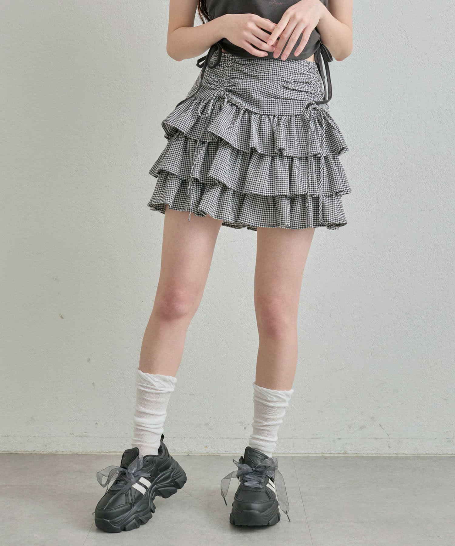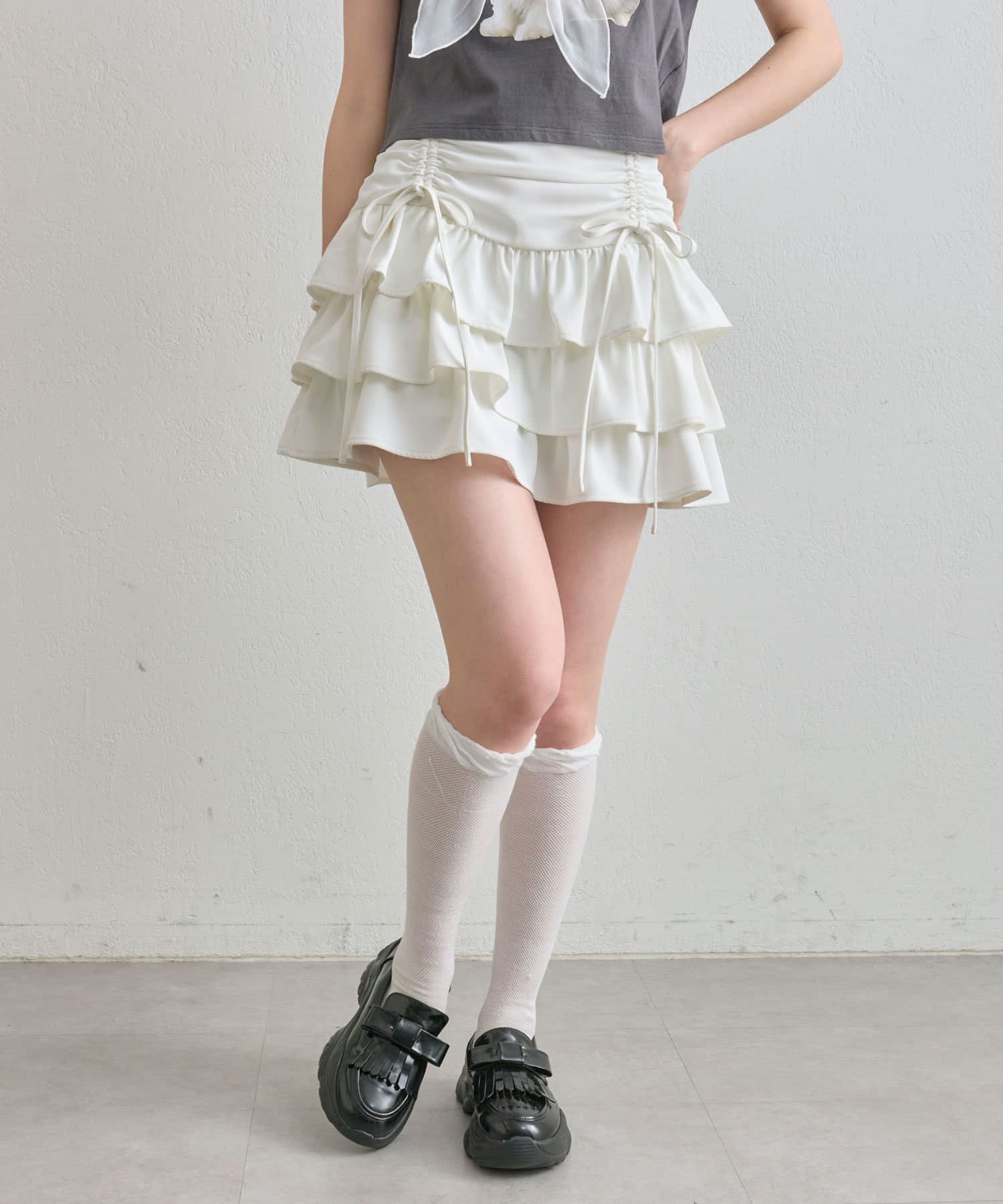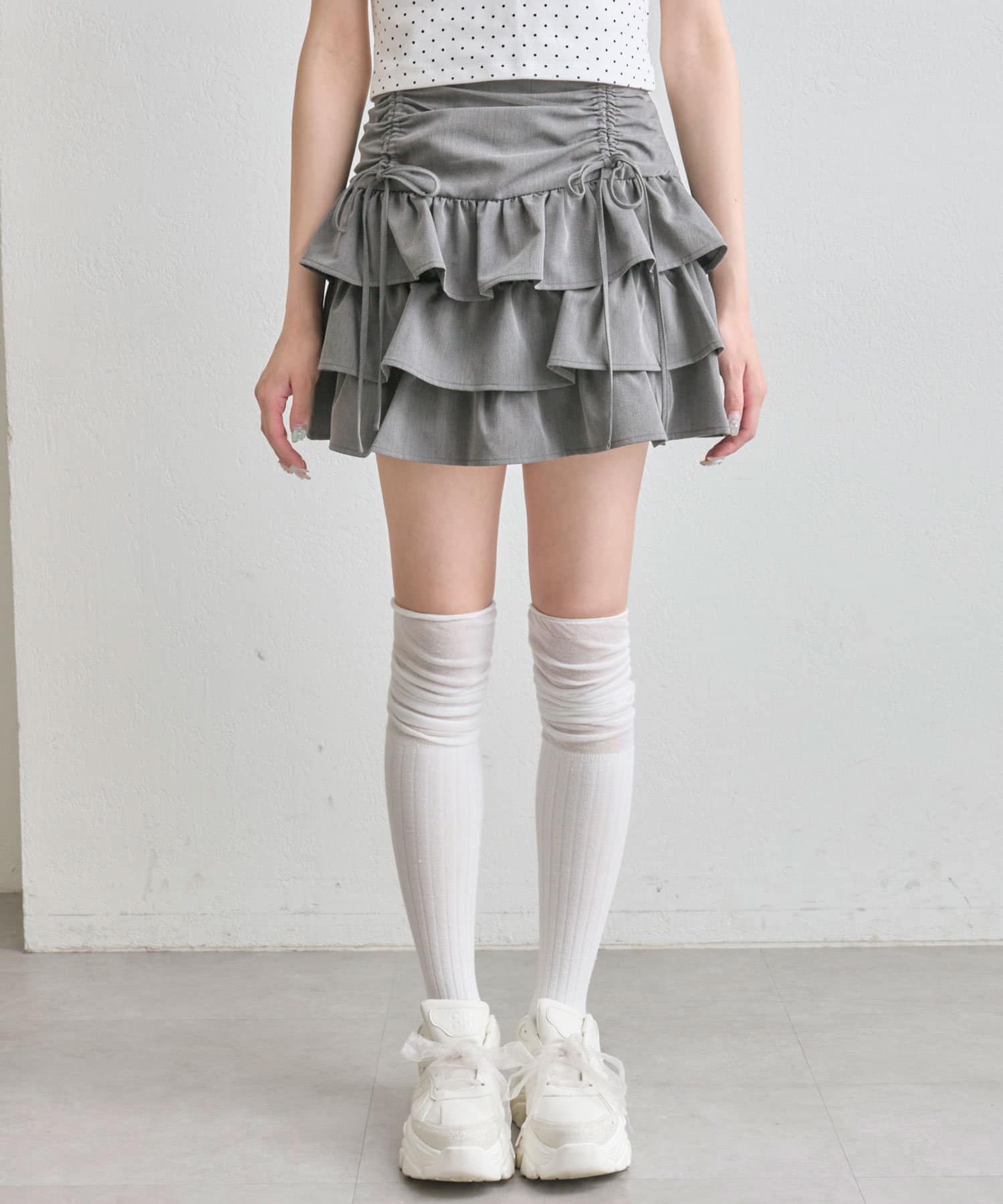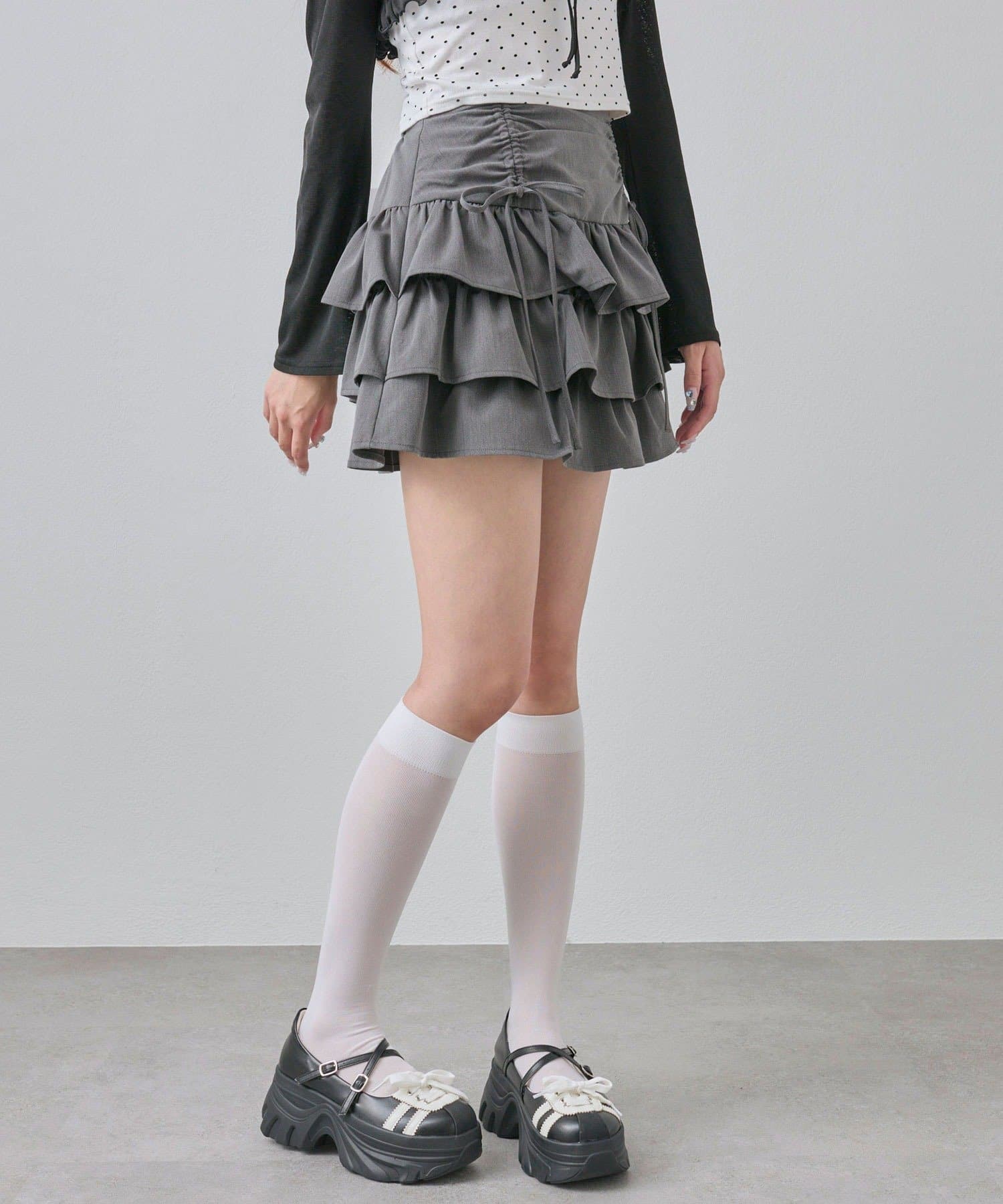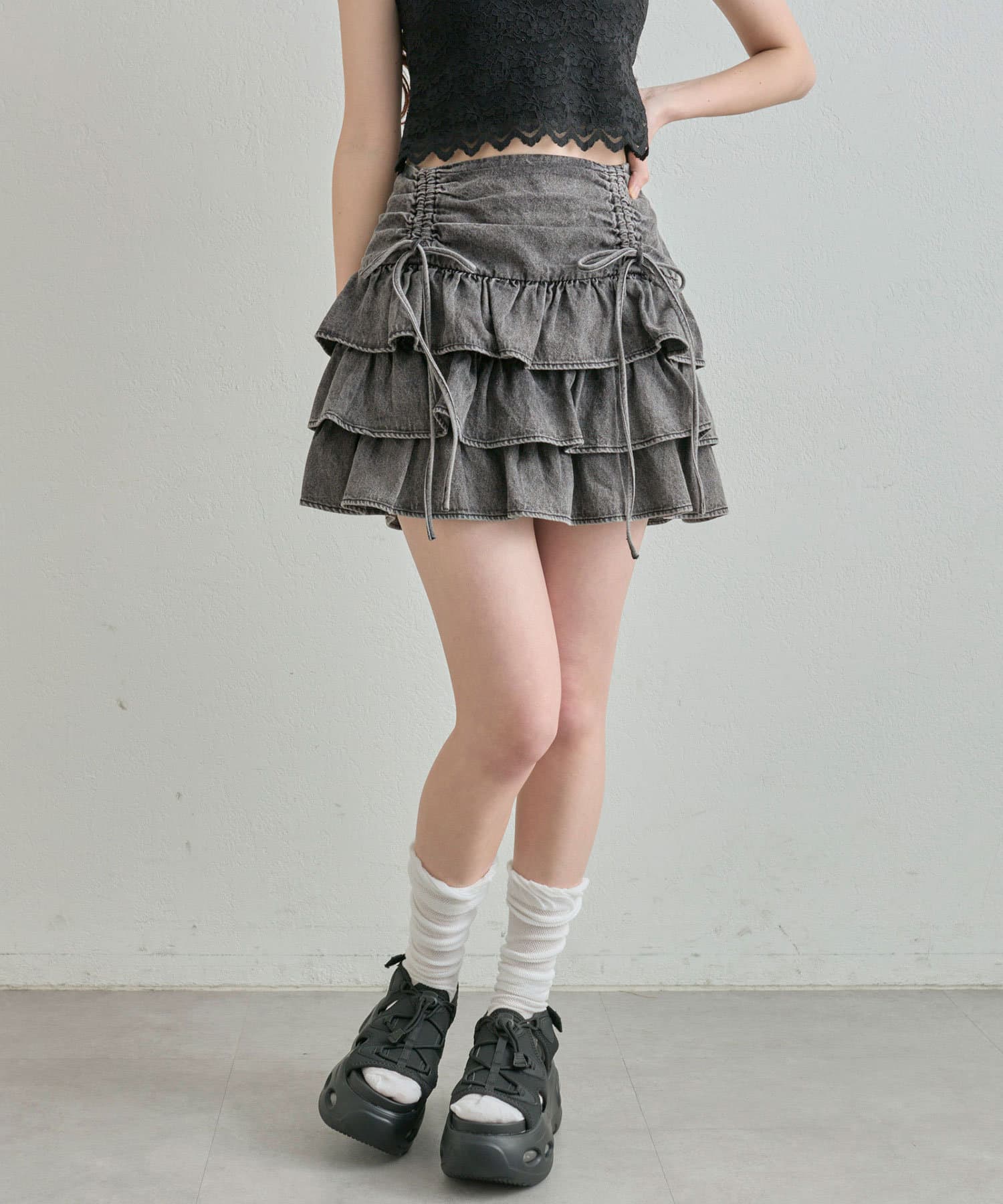 ドロストデザインがポイントのティアードミニスカート
