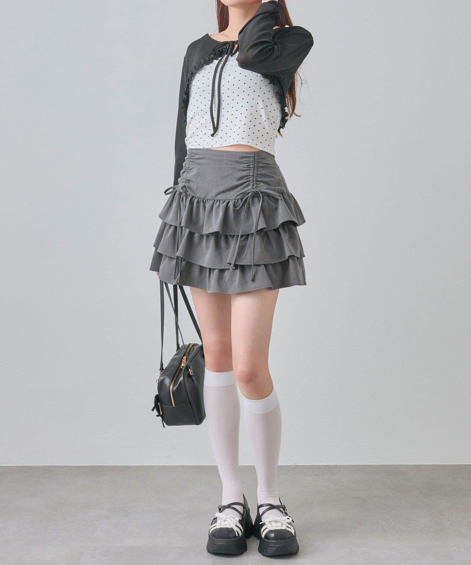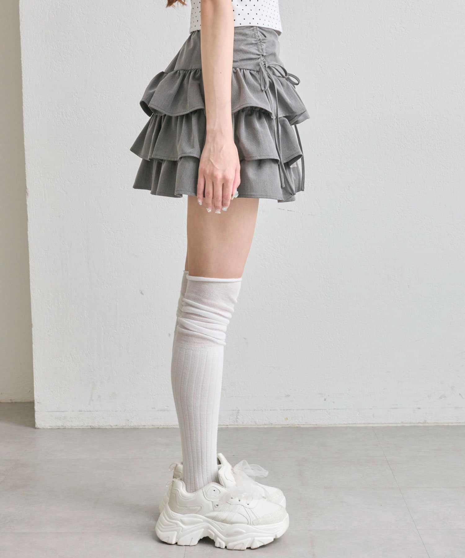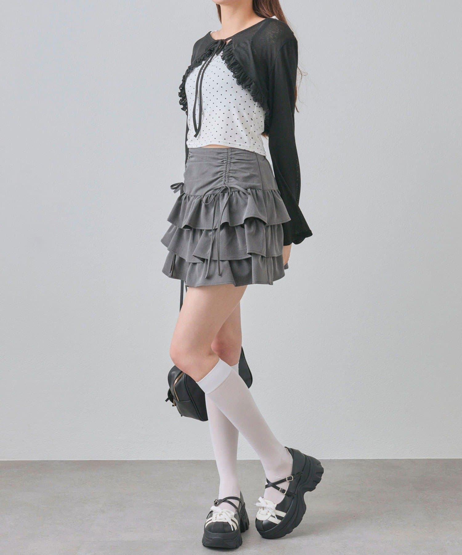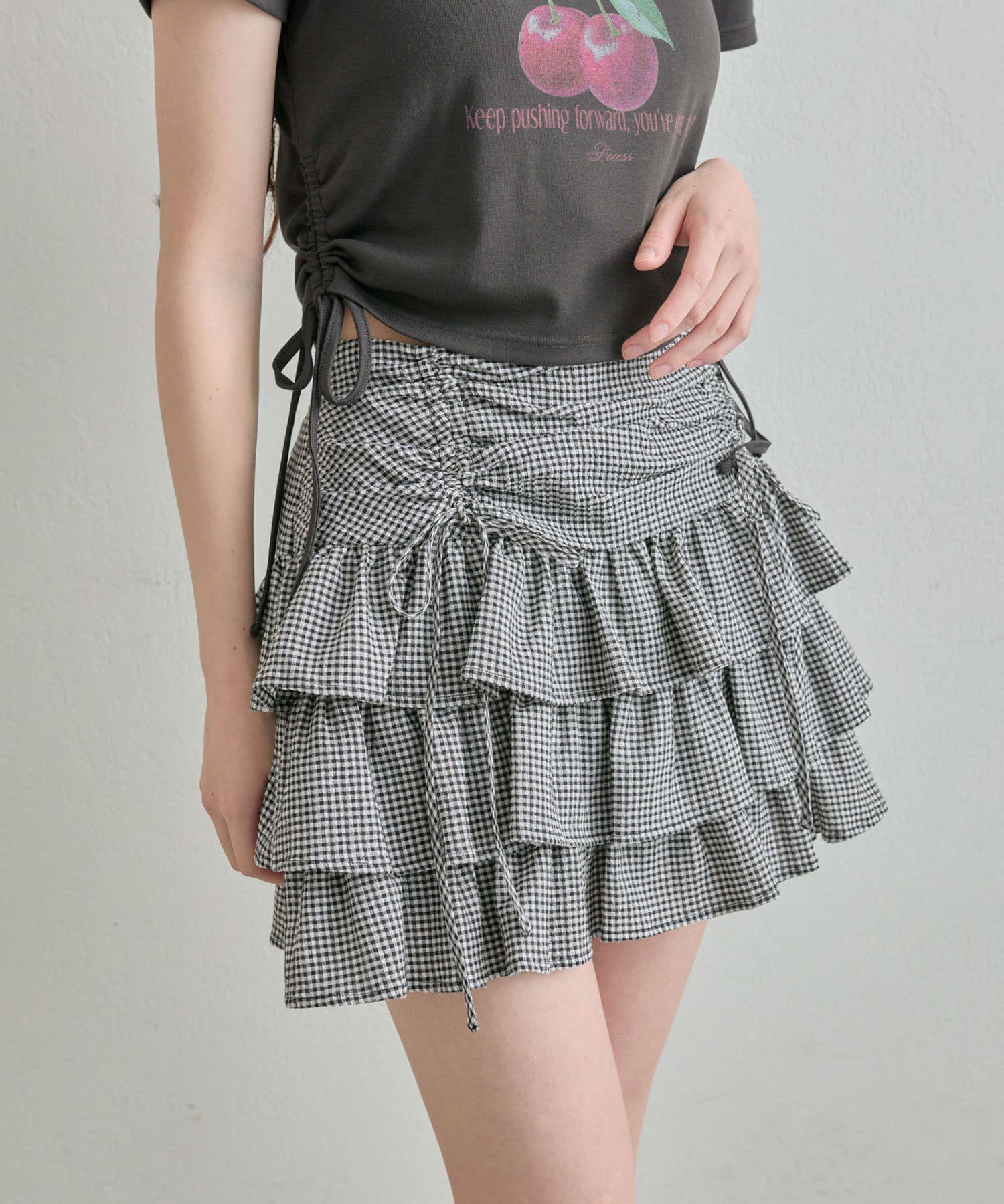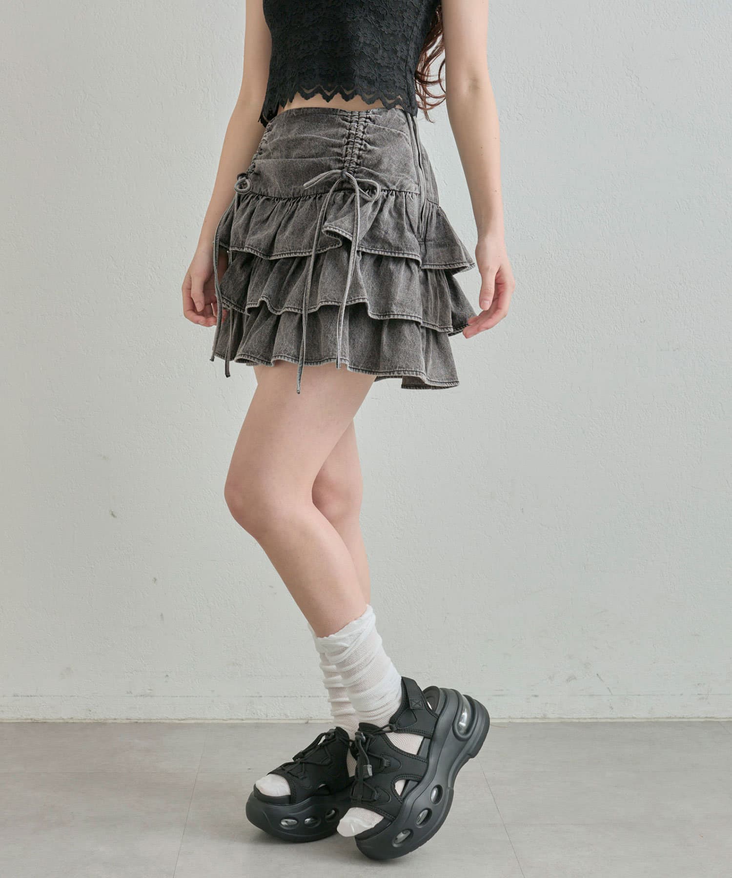 ドロストデザインがポイントのティアードミニスカート