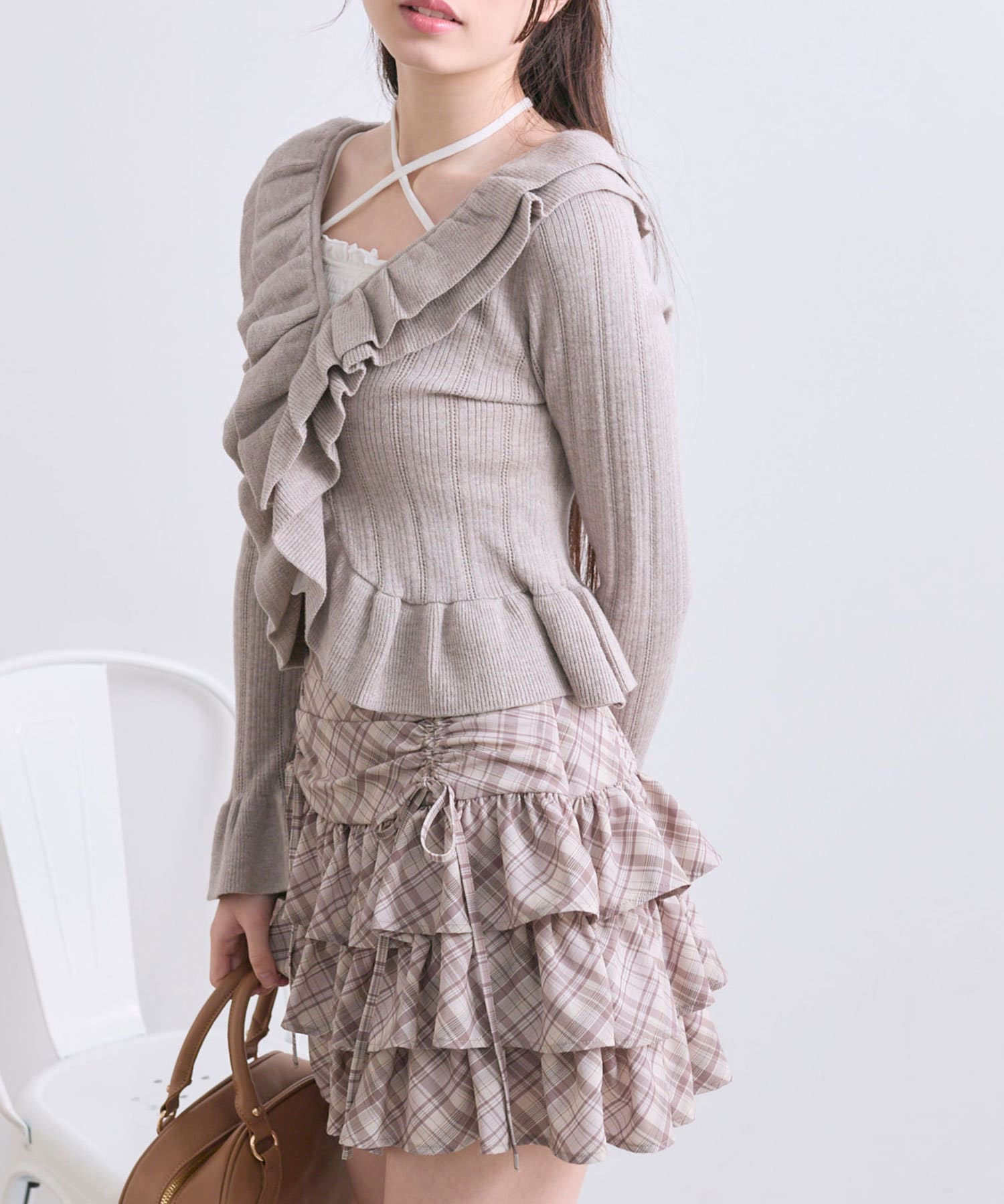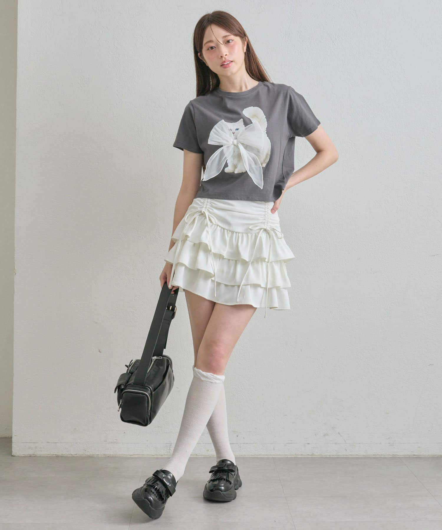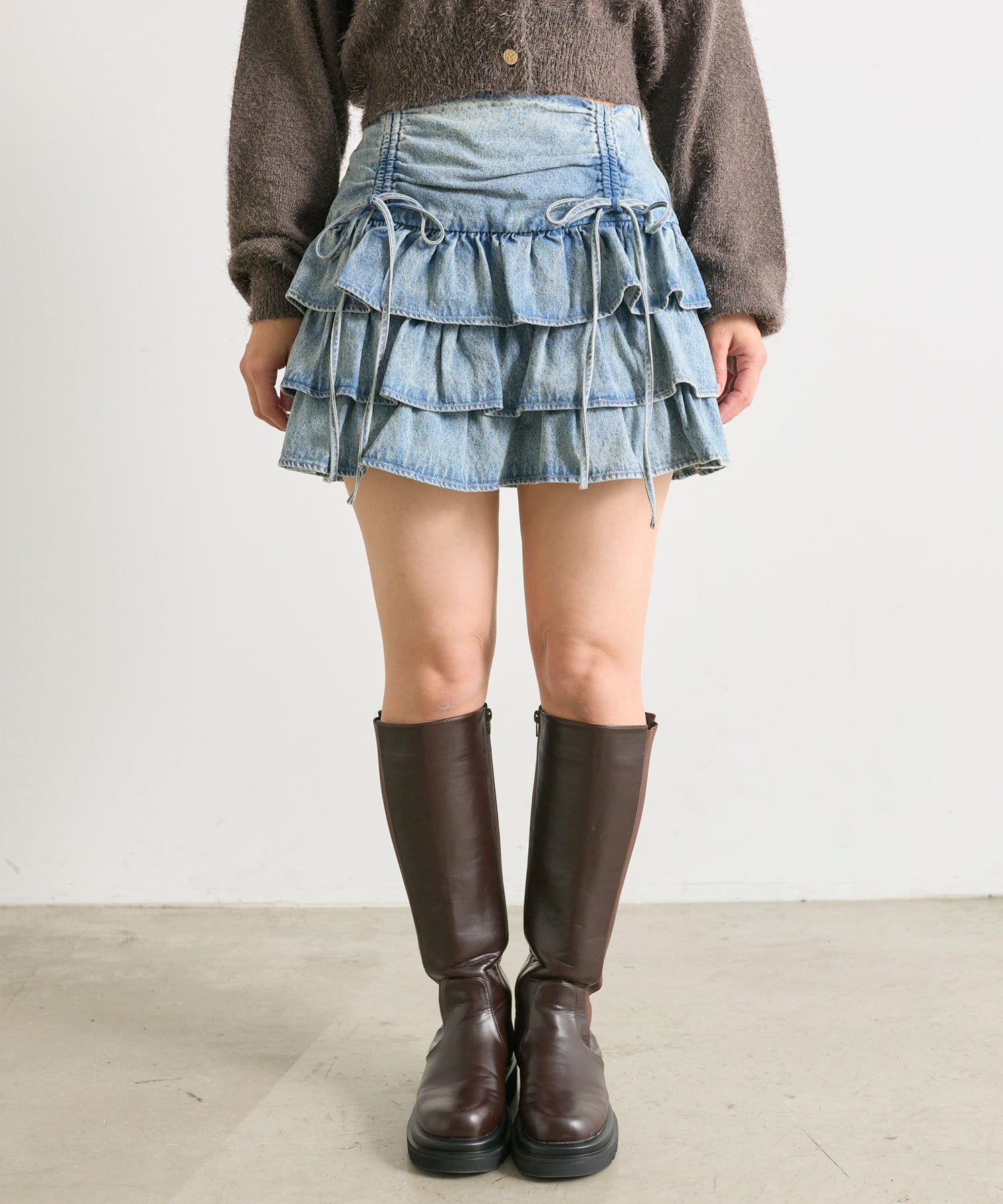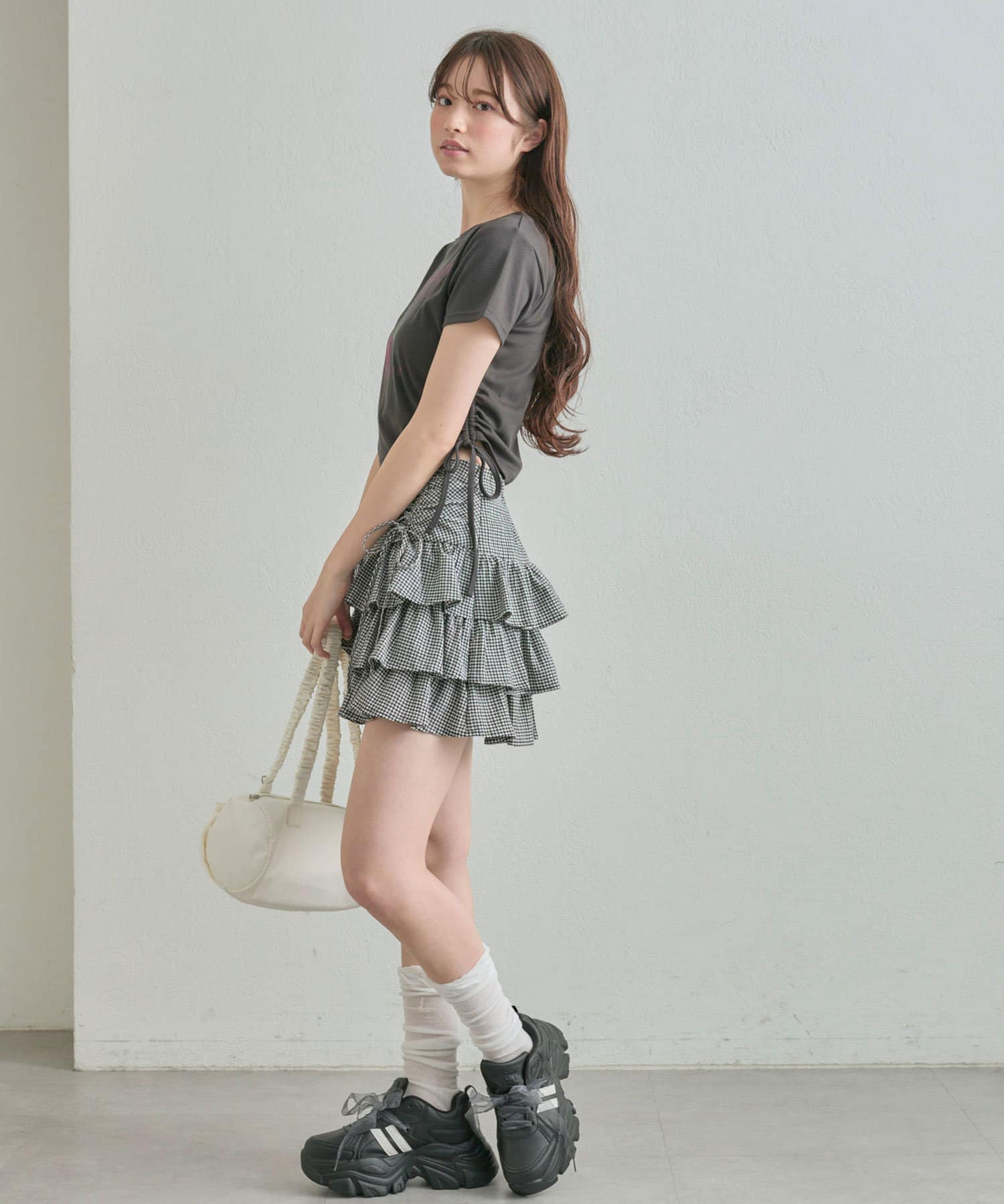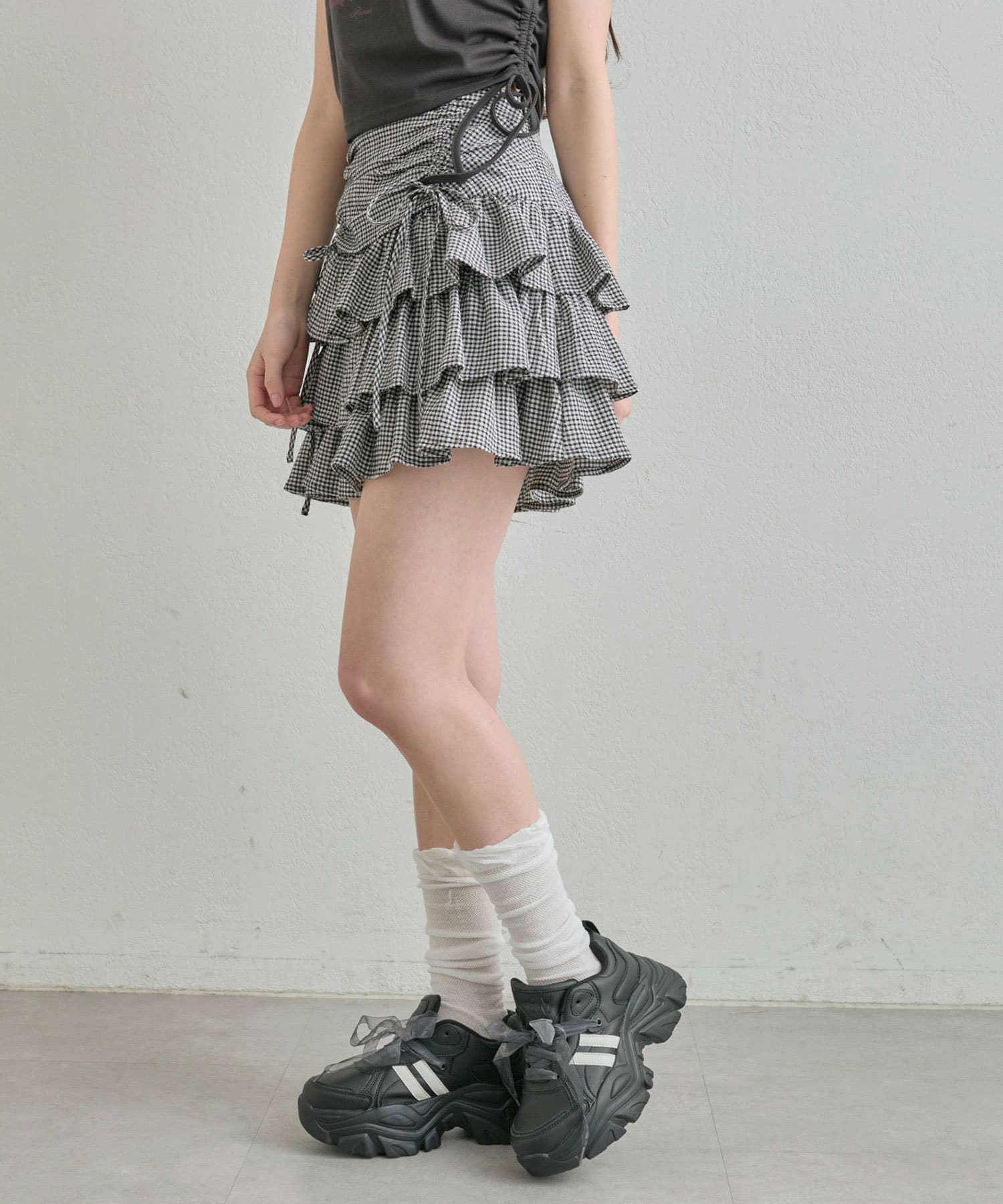 ドロストデザインがポイントのティアードミニスカート