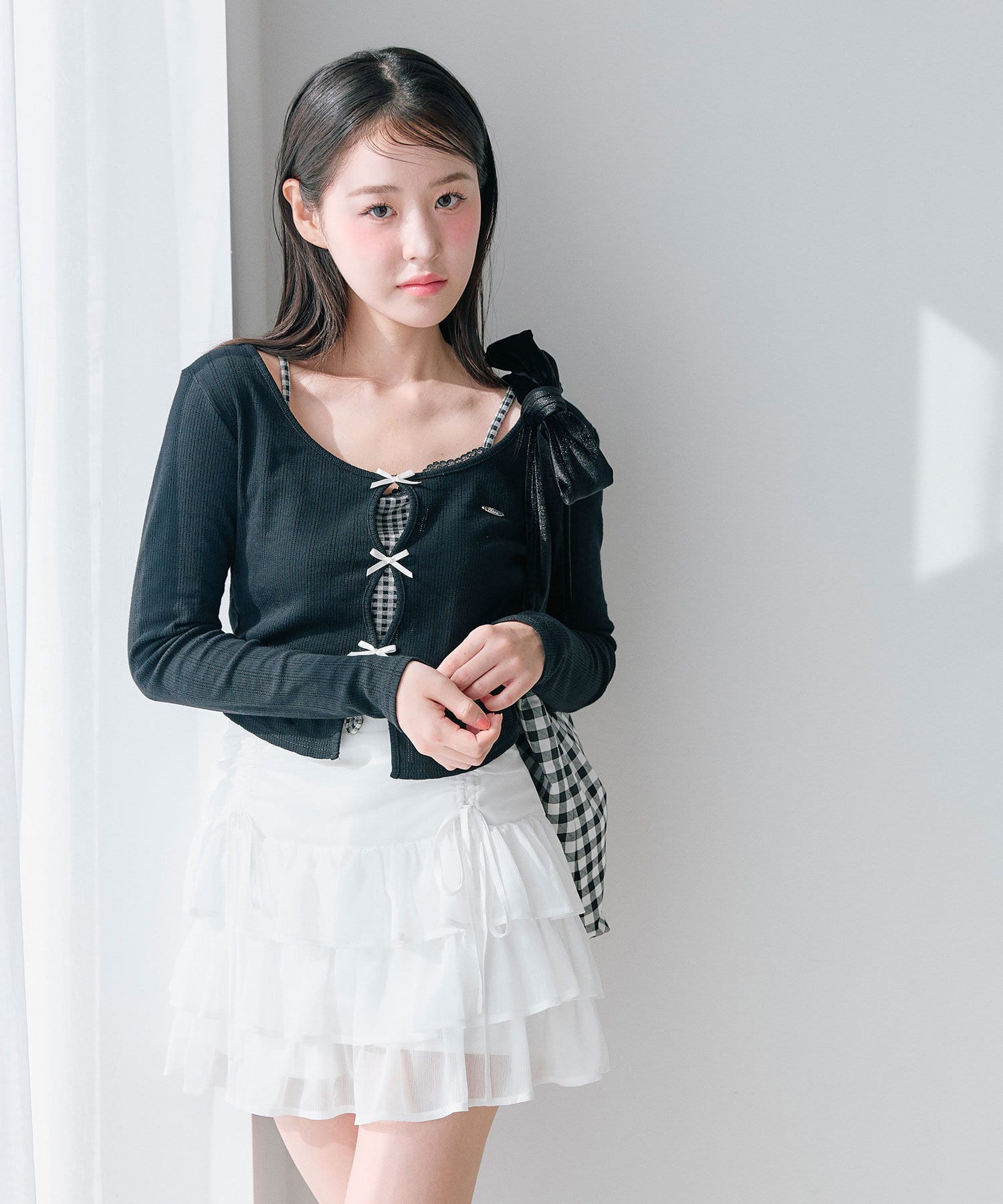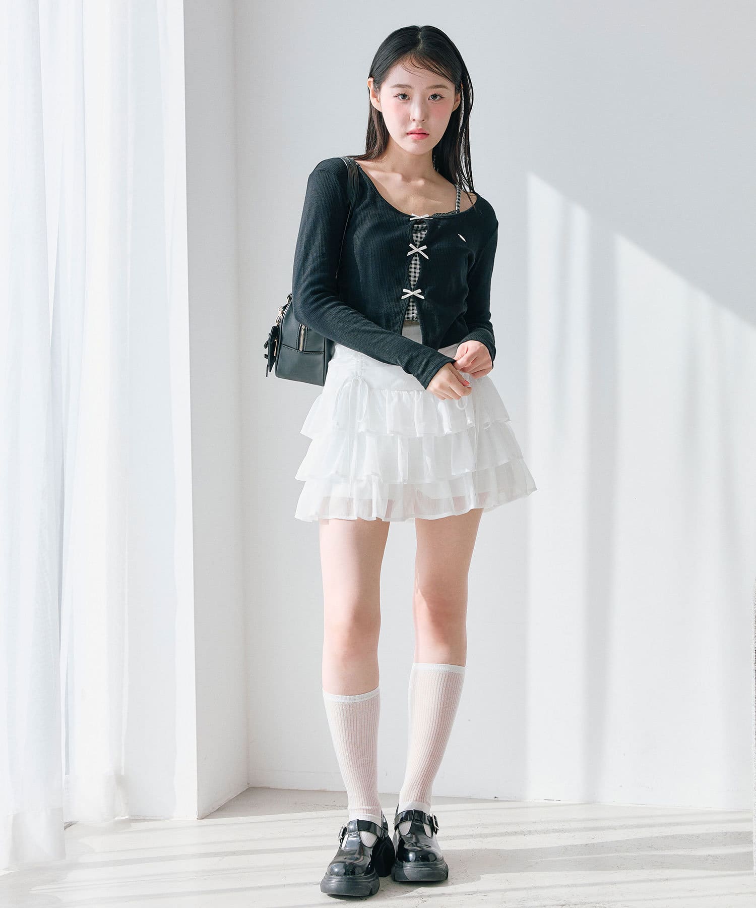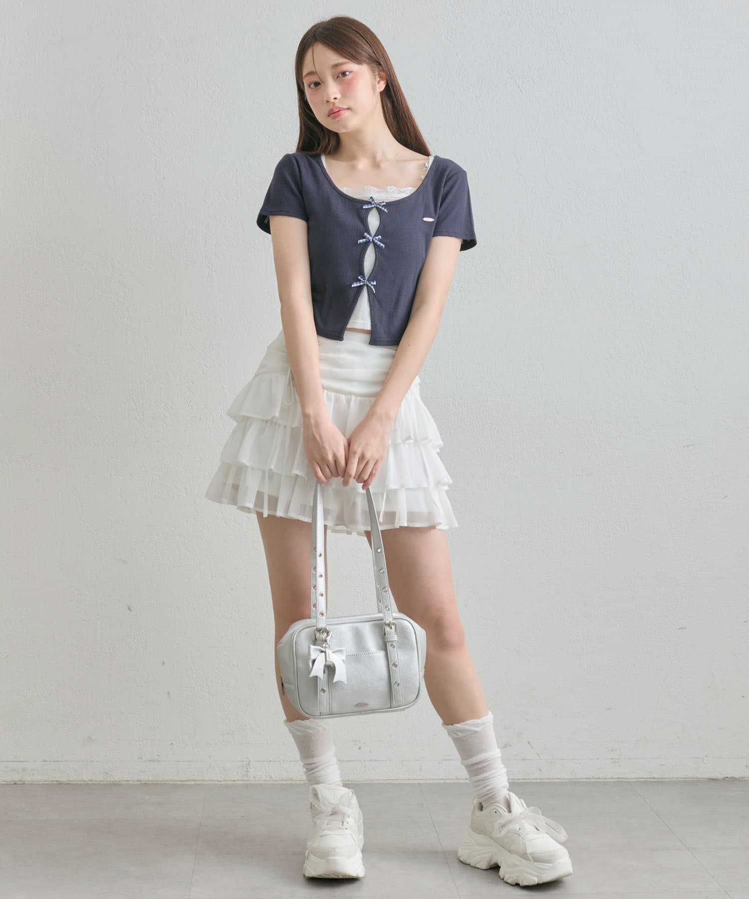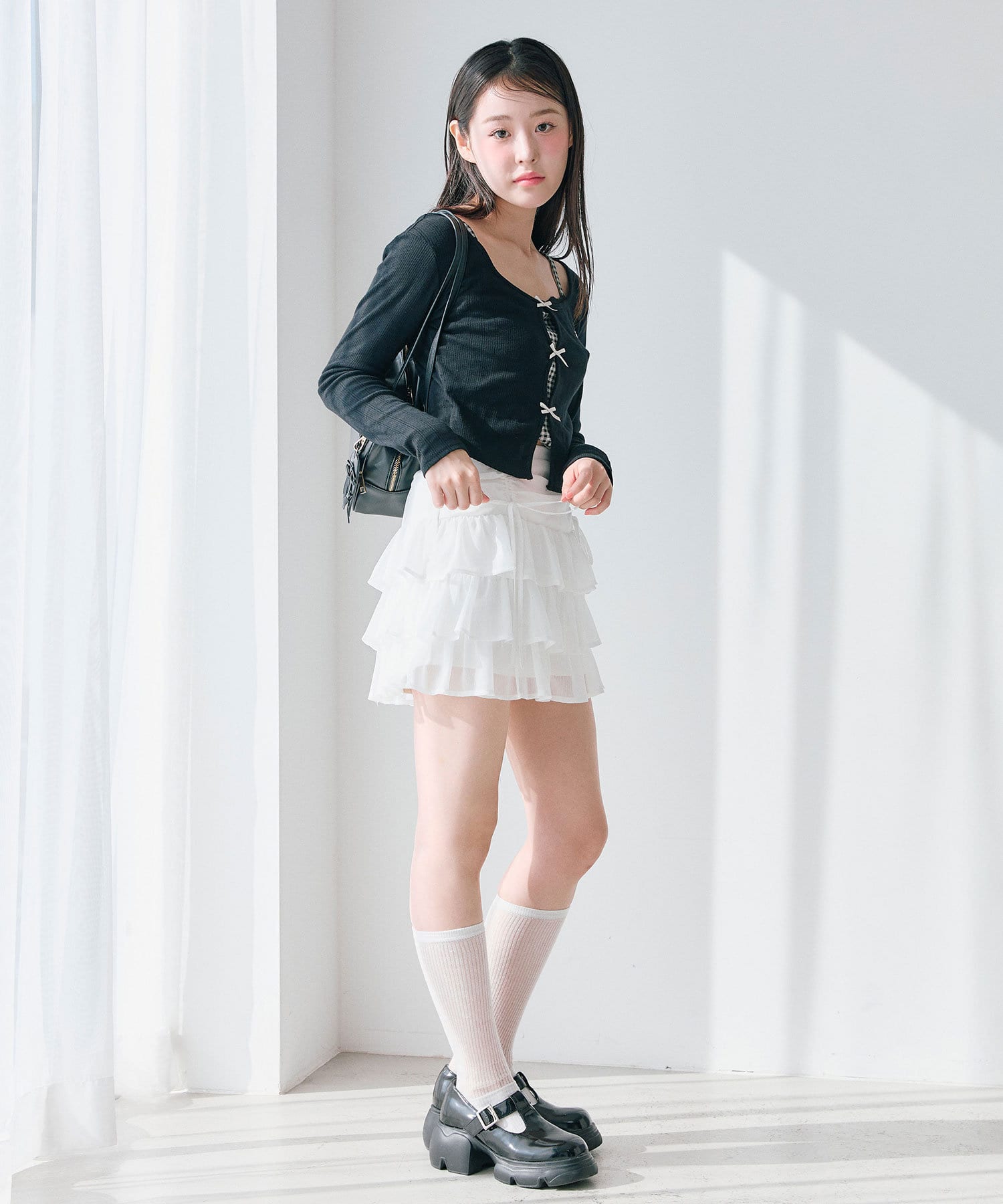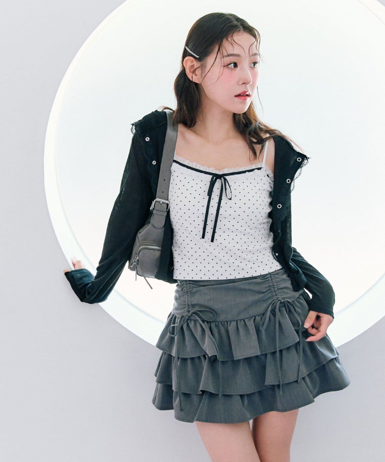 ドロストデザインがポイントのティアードミニスカート