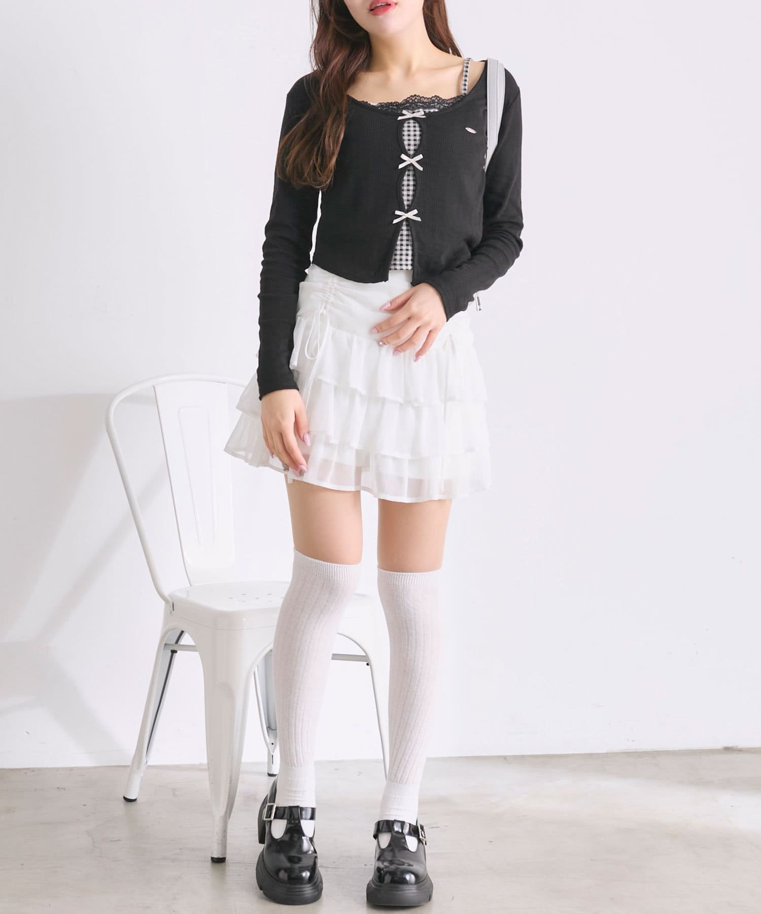 ・ガーリーなトップスと合わせてバレエコアコーデがおすすめ。