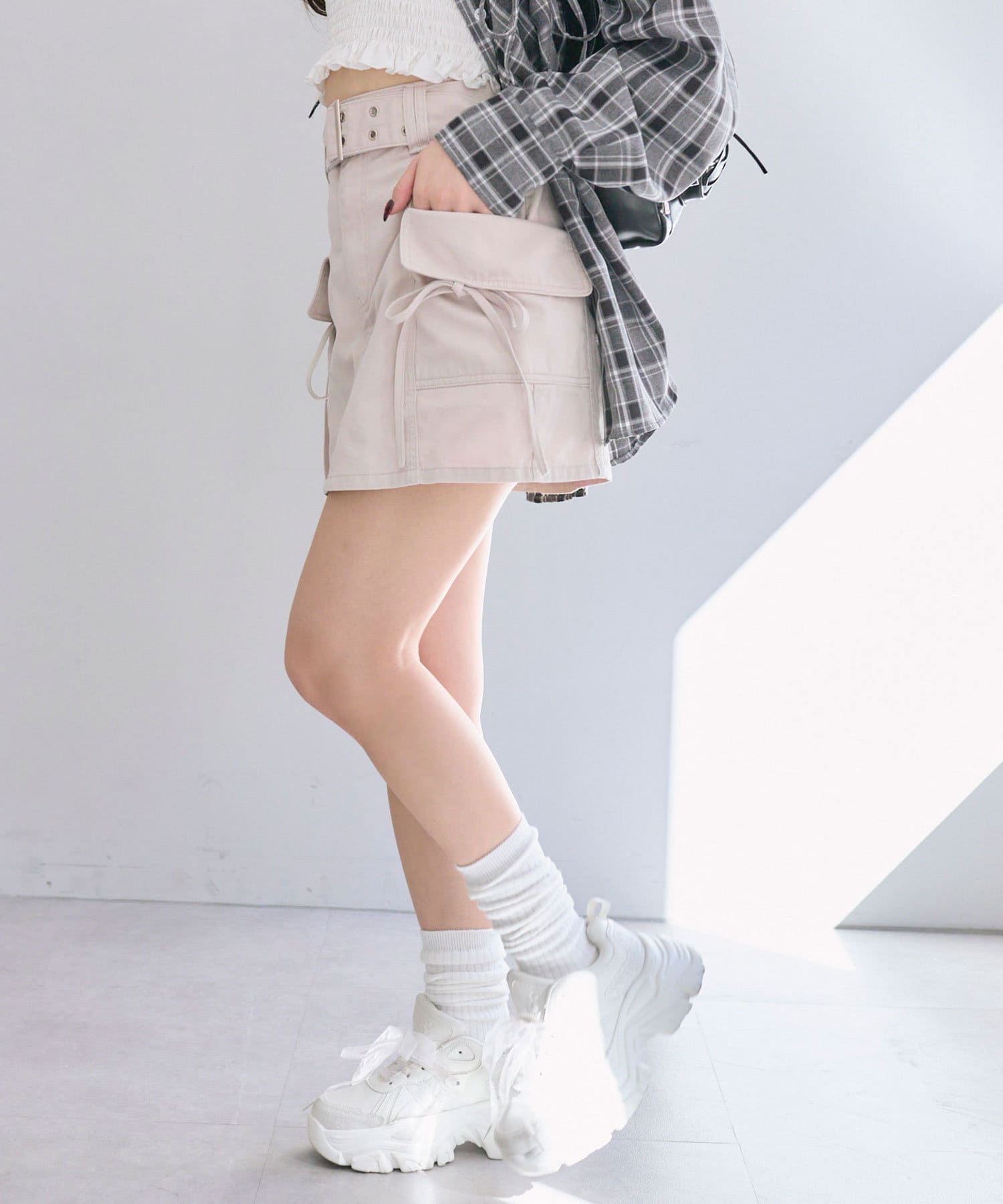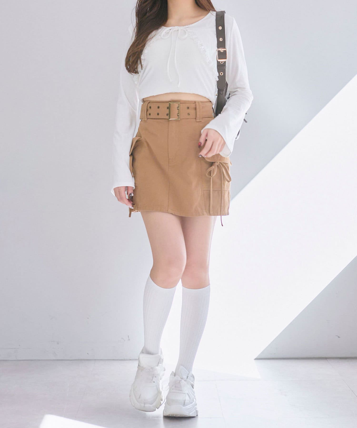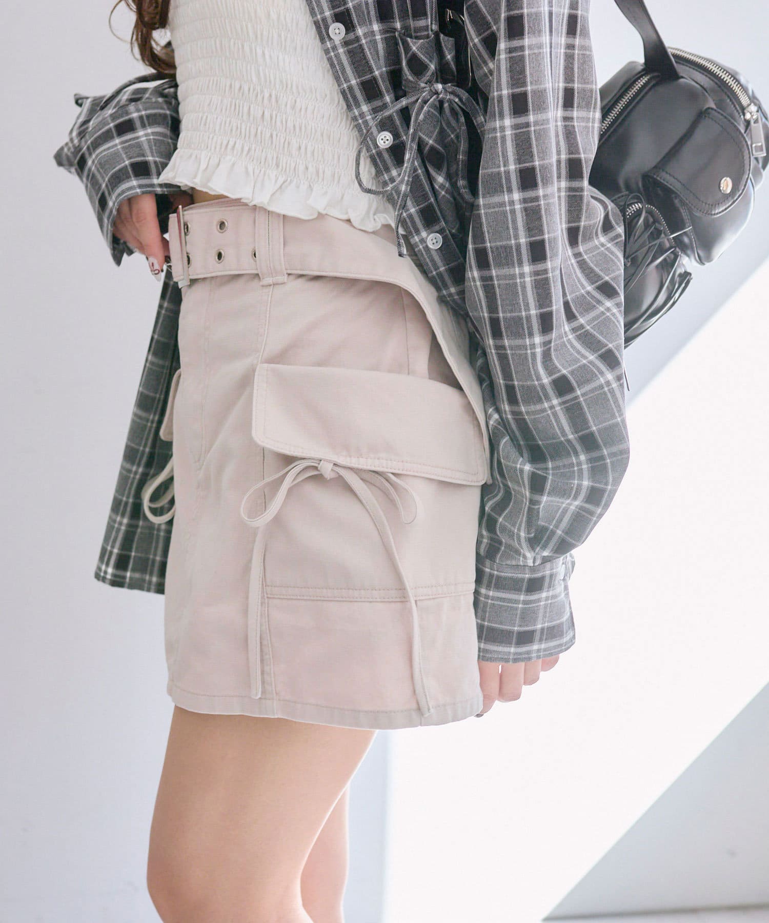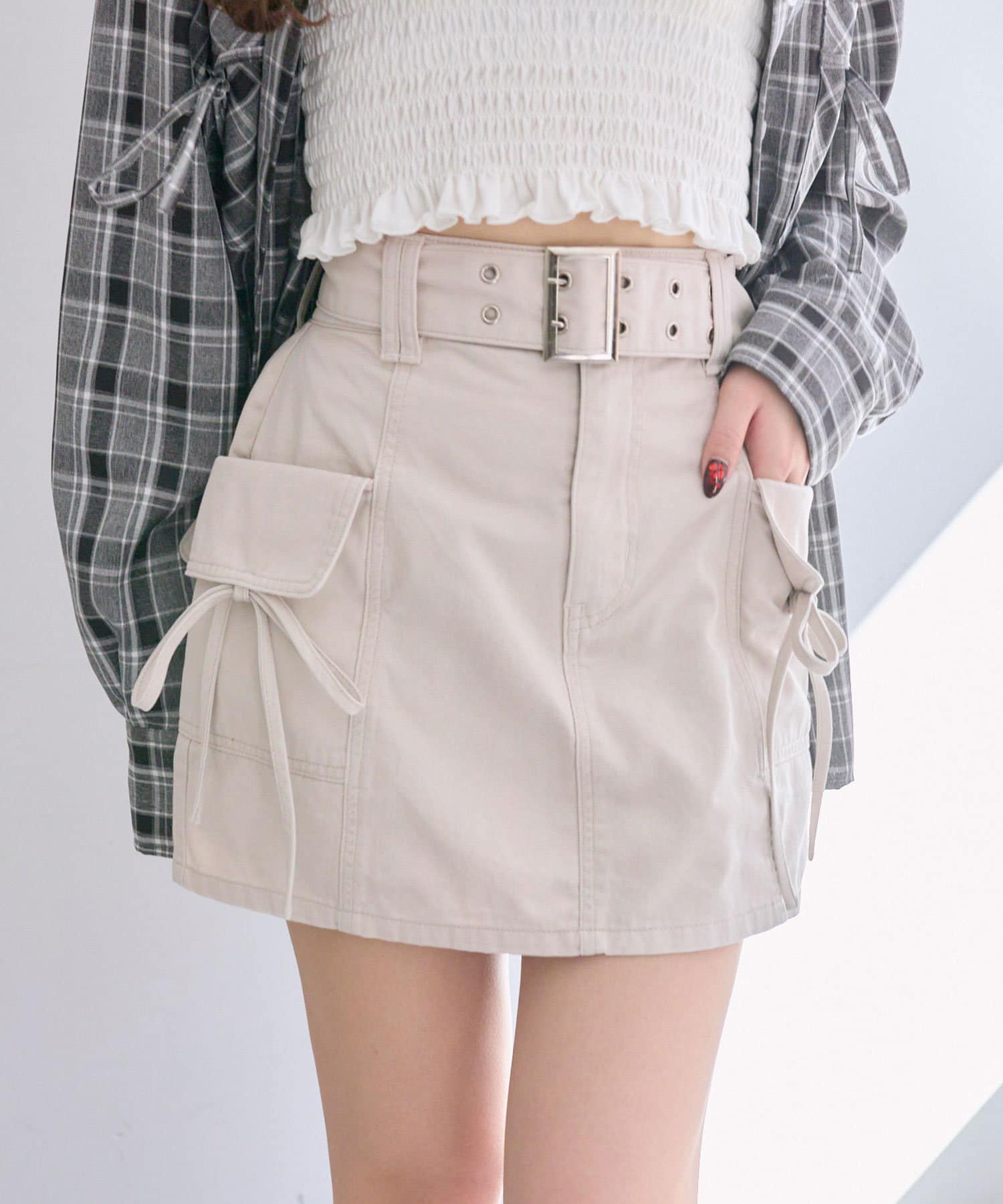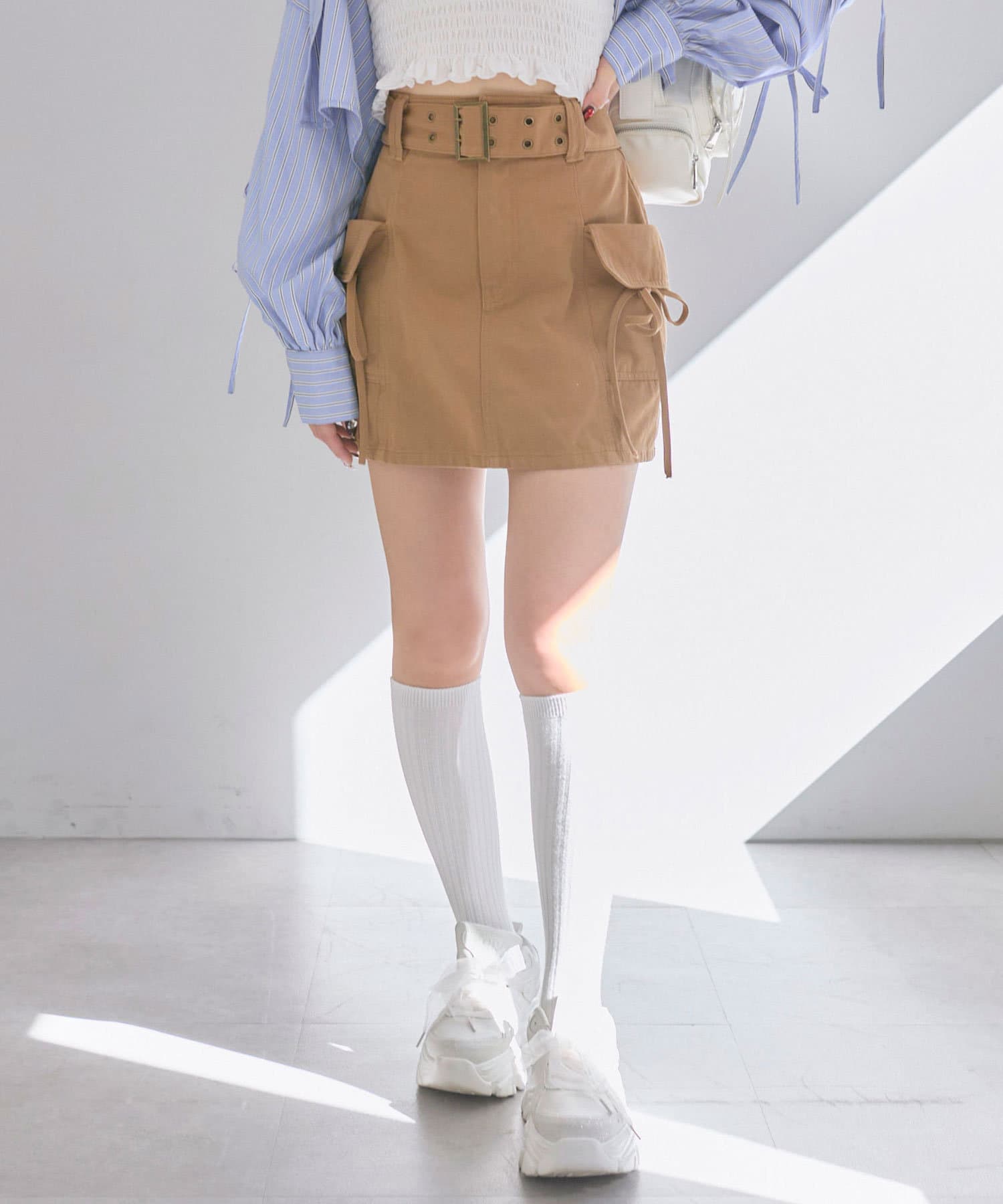 【セットアップ対応可】ベルト付きカーゴミニスカート