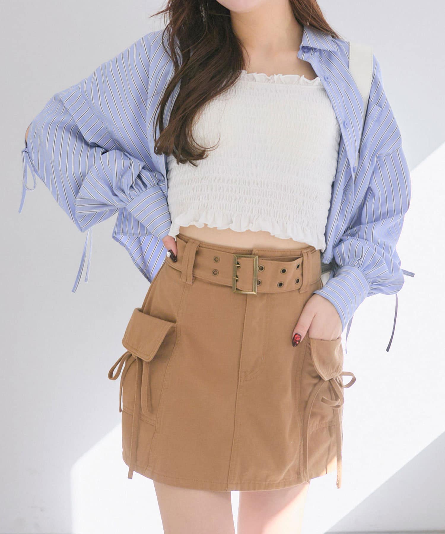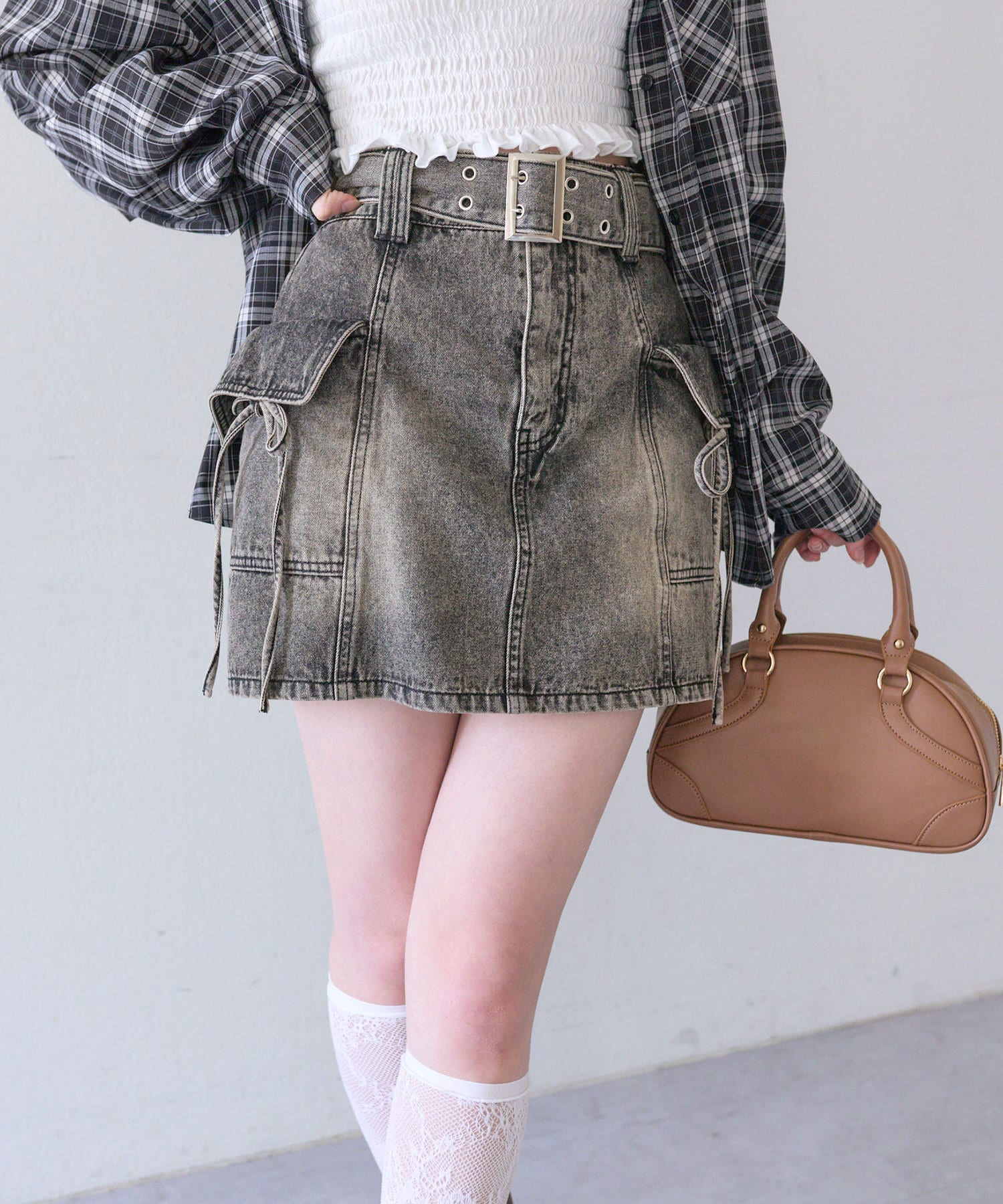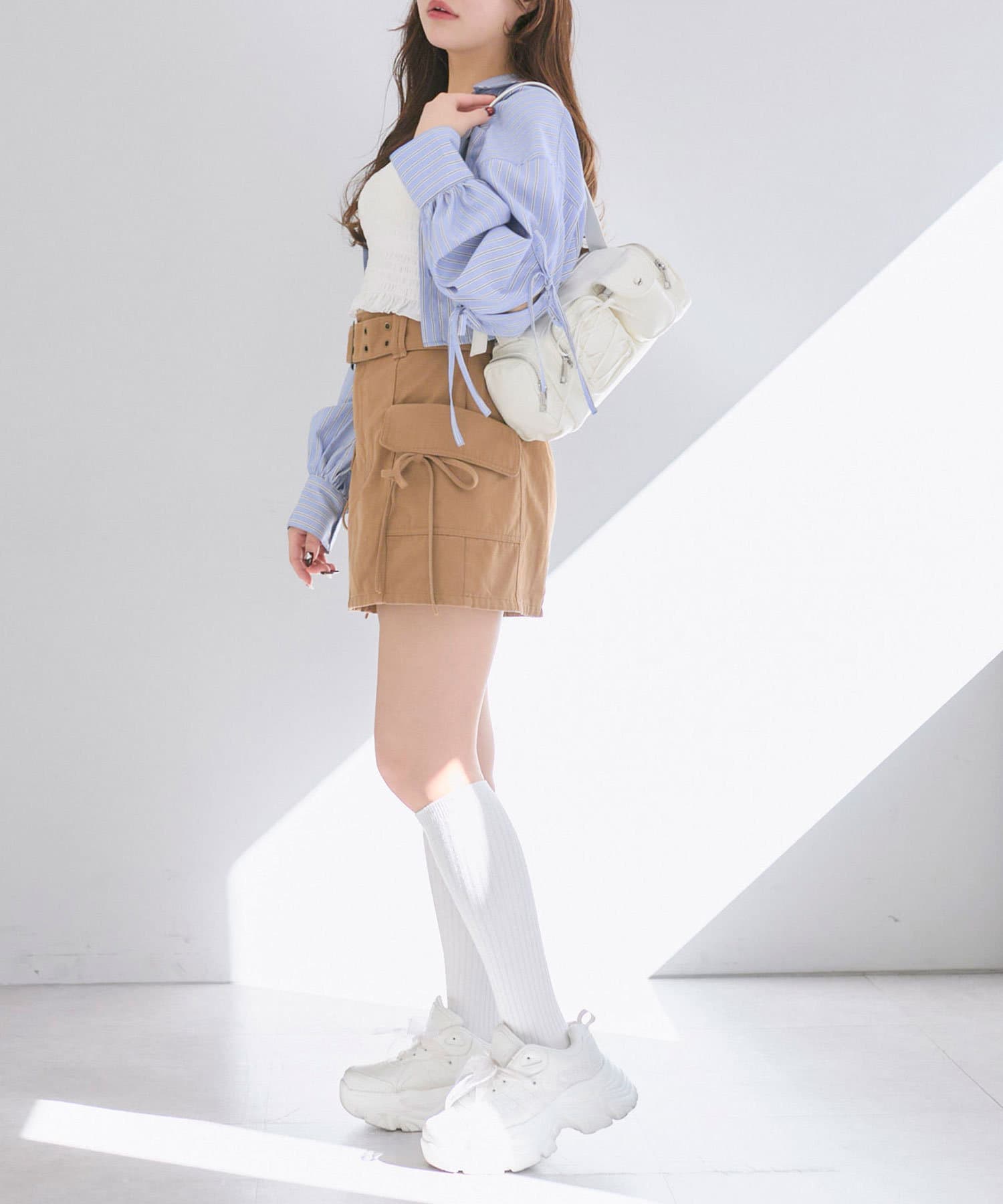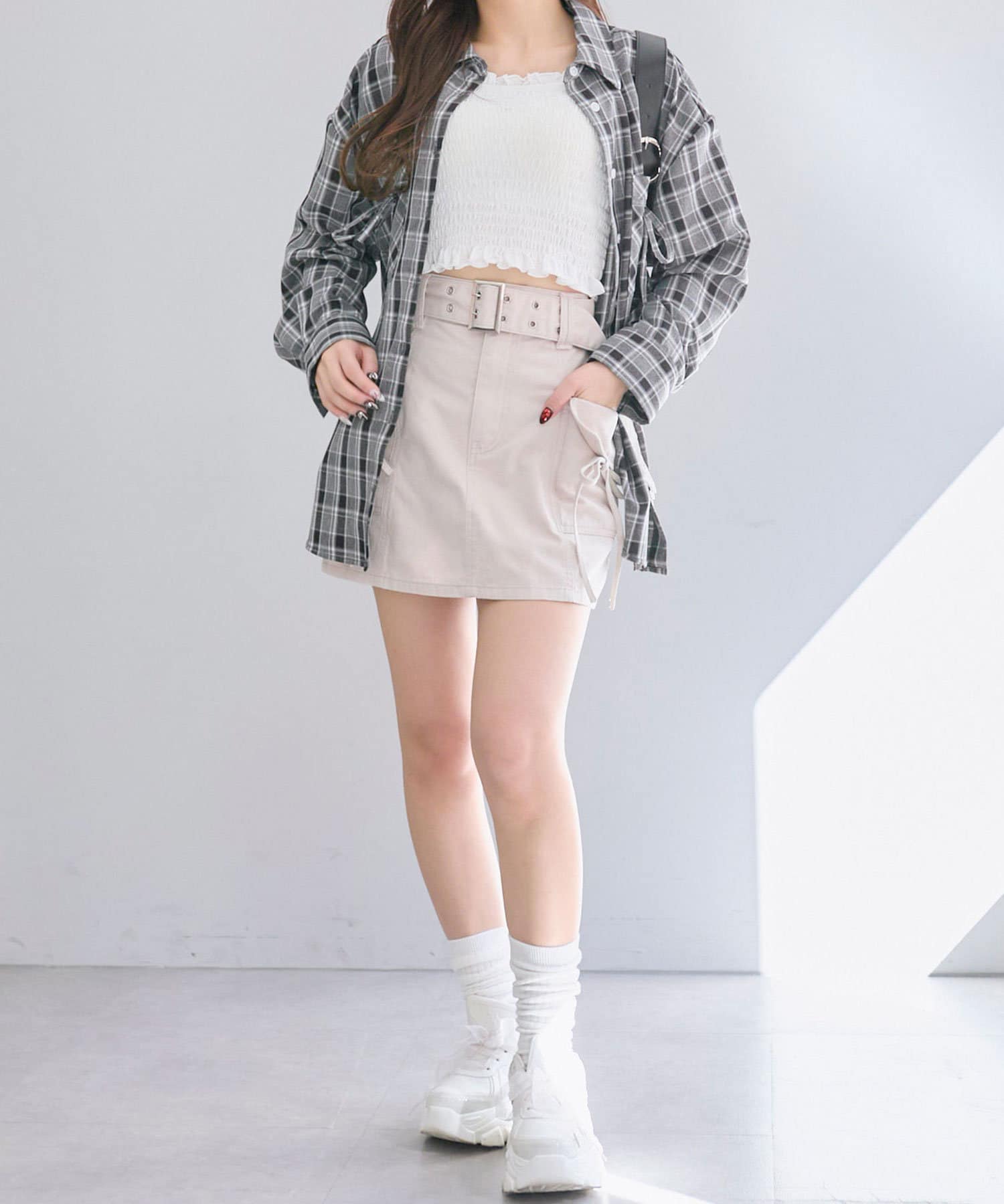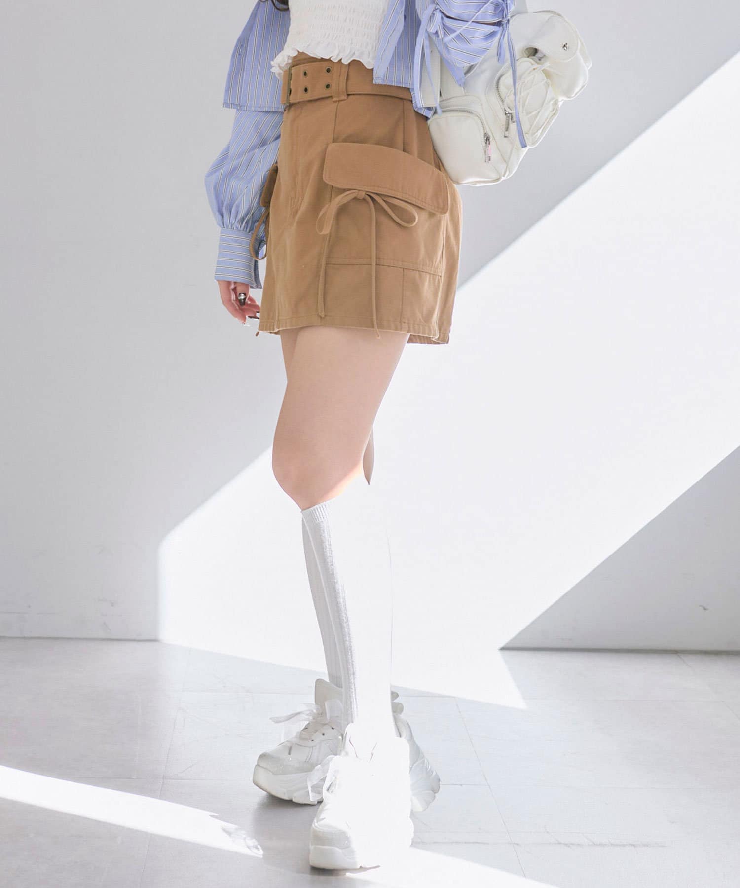 【セットアップ対応可】ベルト付きカーゴミニスカート