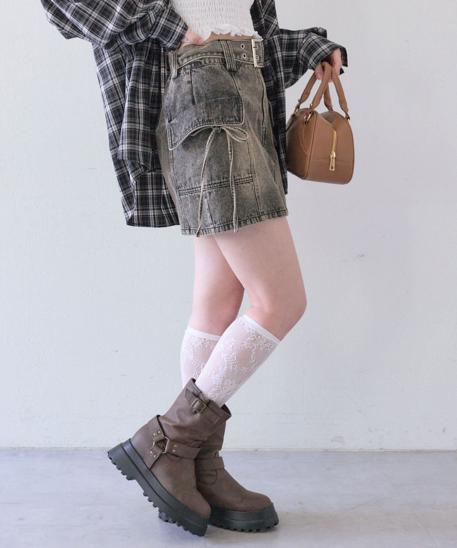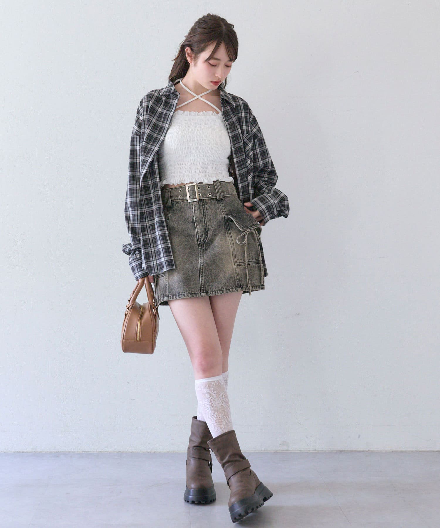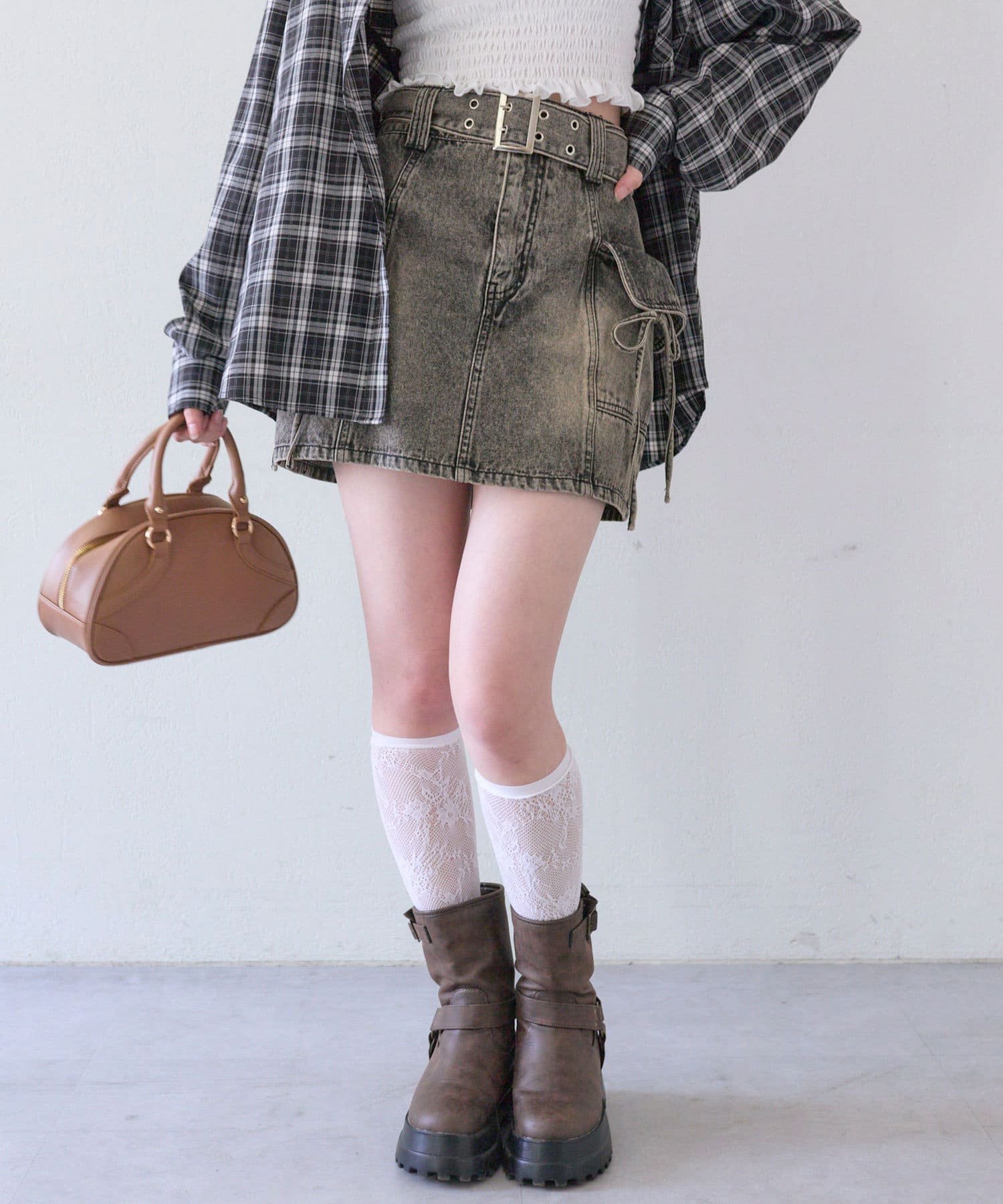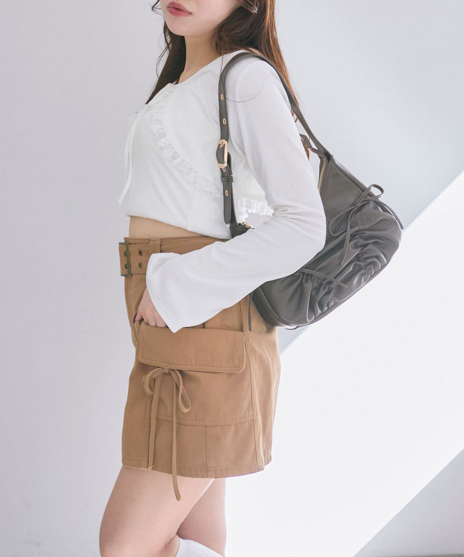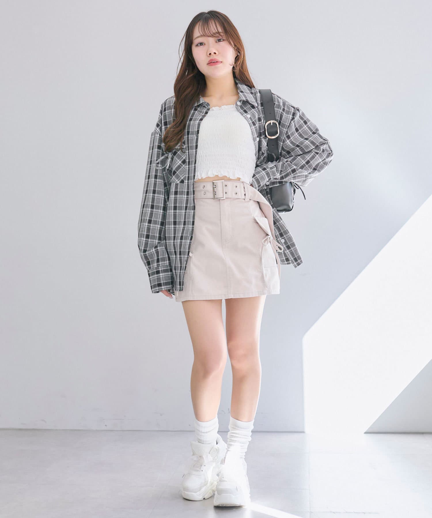 【セットアップ対応可】ベルト付きカーゴミニスカート