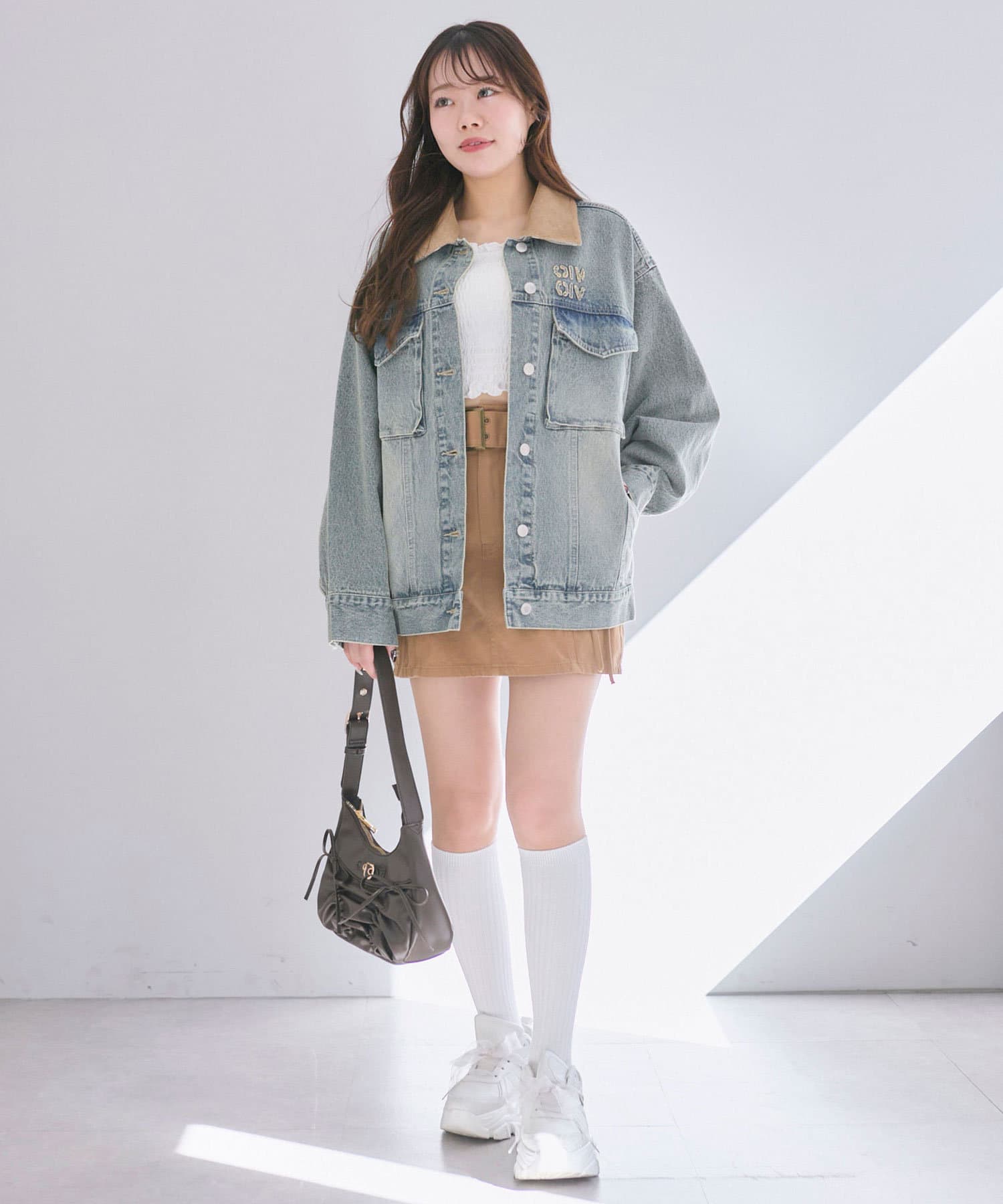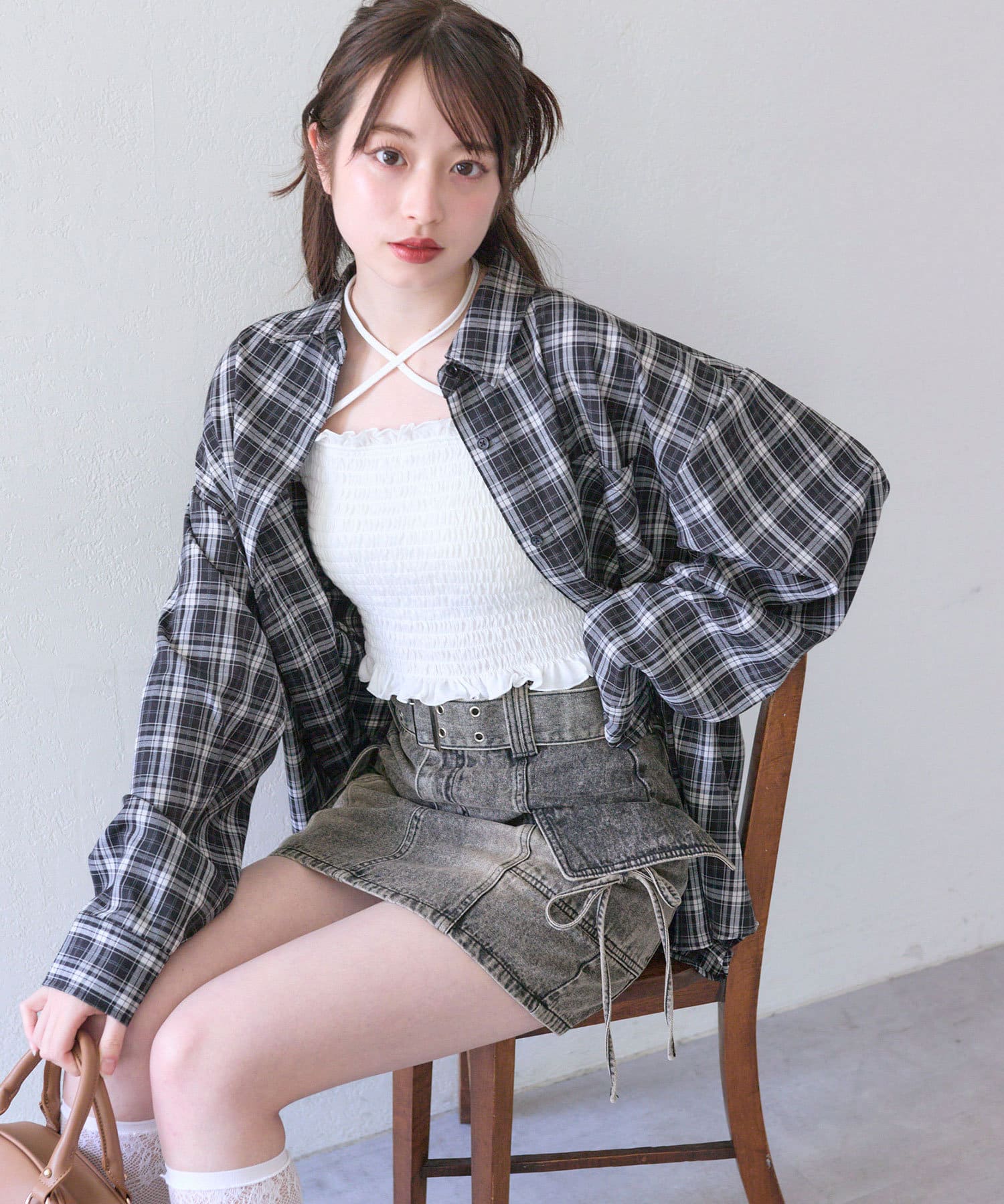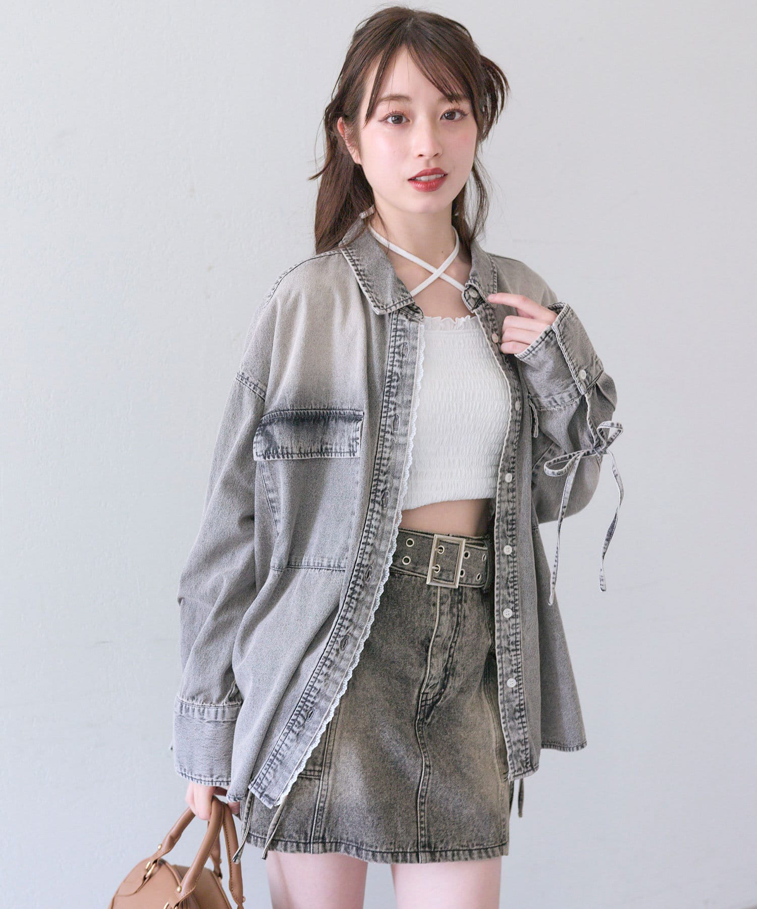 ・同系色のデニムビッグシャツ(商品番号:1051040050)と合わせて、セットアップ風に着るのがおすすめ。