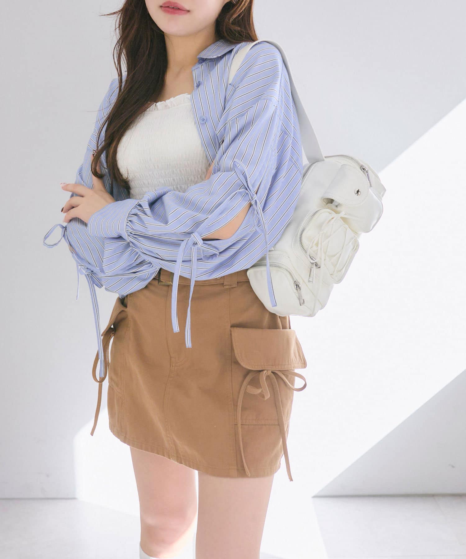 ・トレンド感たっぷりのカーゴデザインに、ポケットのリボンがかわいさをプラスしています。