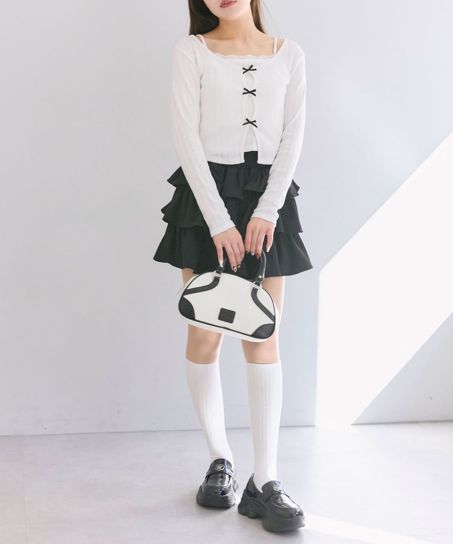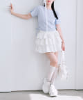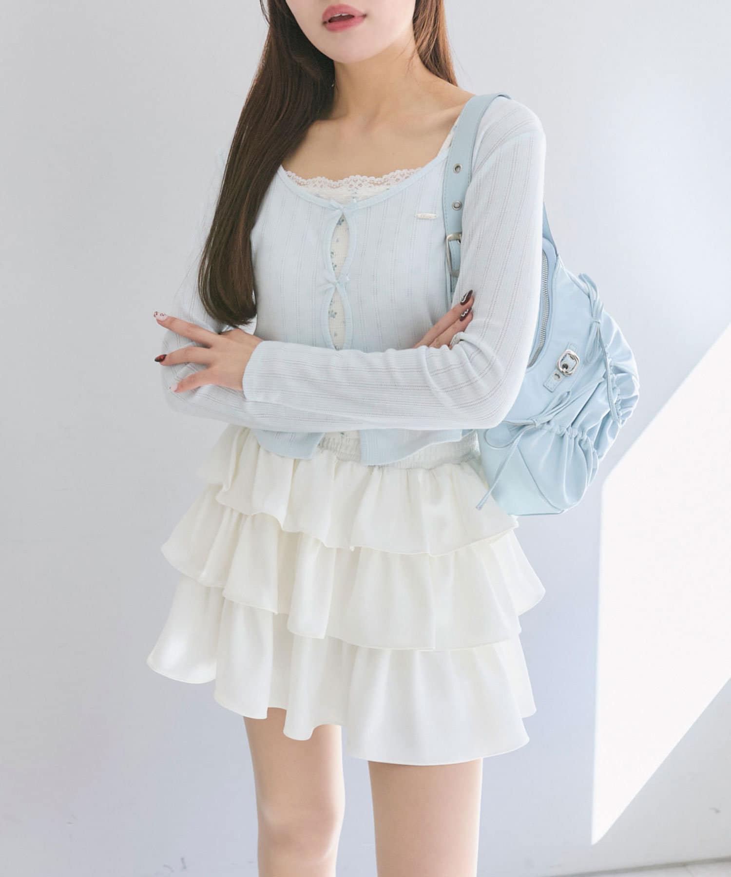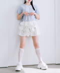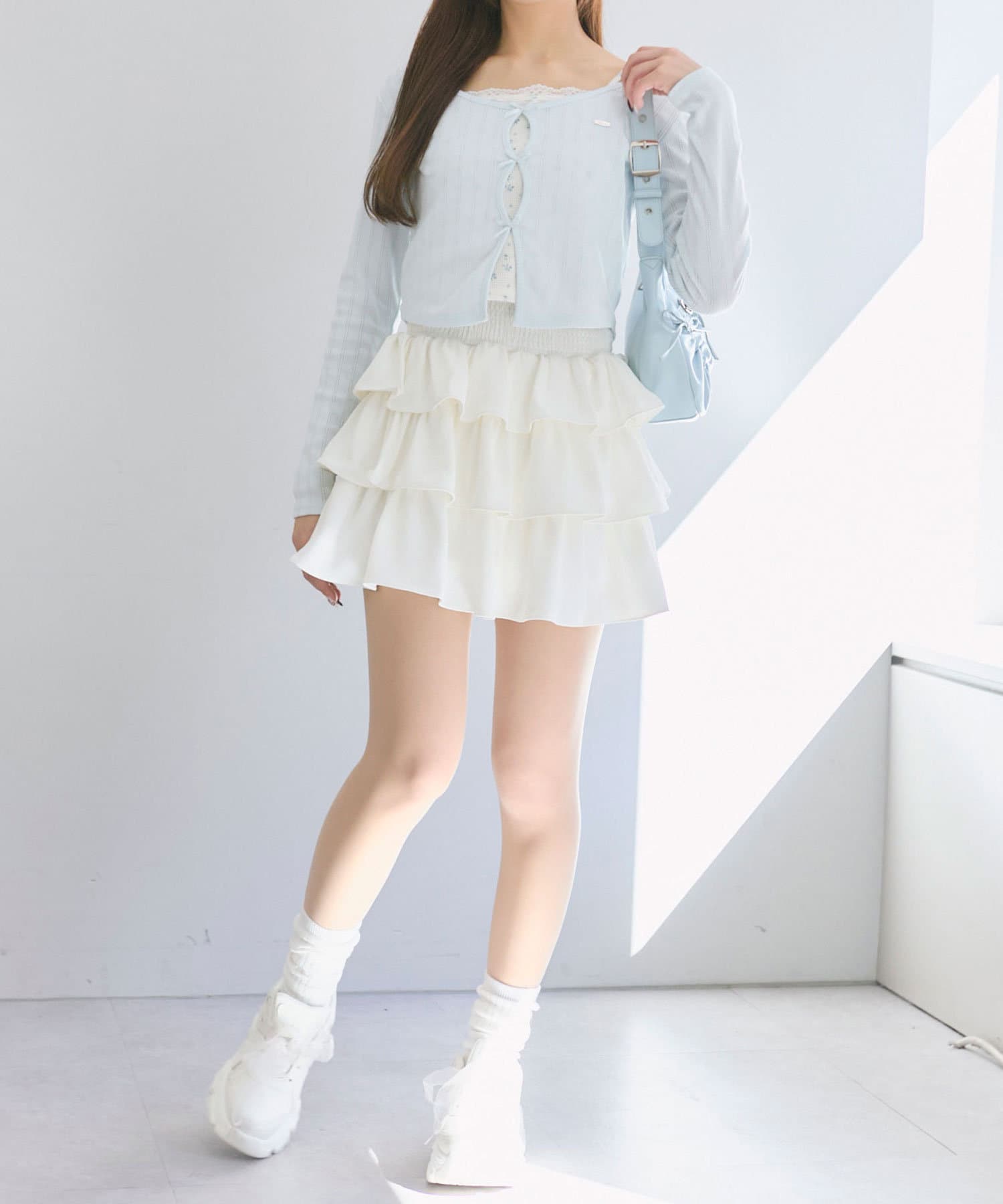 ・ガーリーデザインのトップスと合わせて、甘さたっぷりなコーデがおすすめ。
