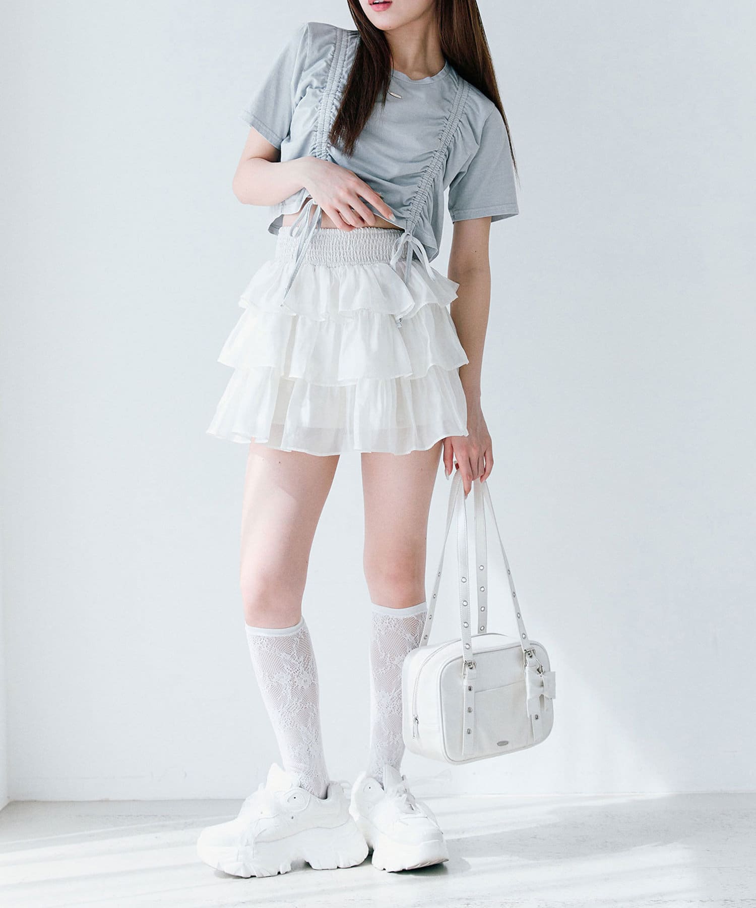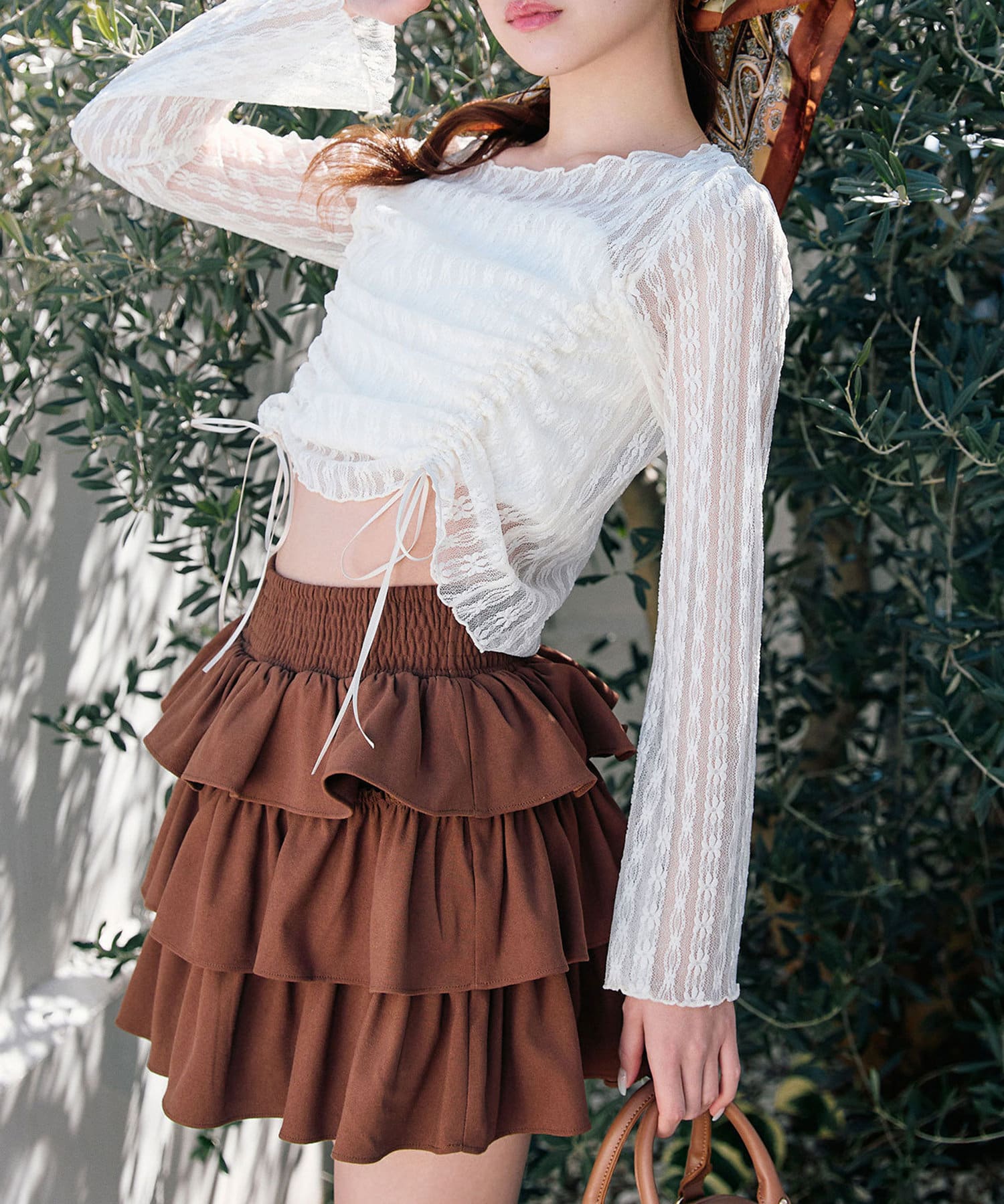 ・3段のティアードフリルが歩くたびに揺れ動き、女性らしい華やかさをプラス。