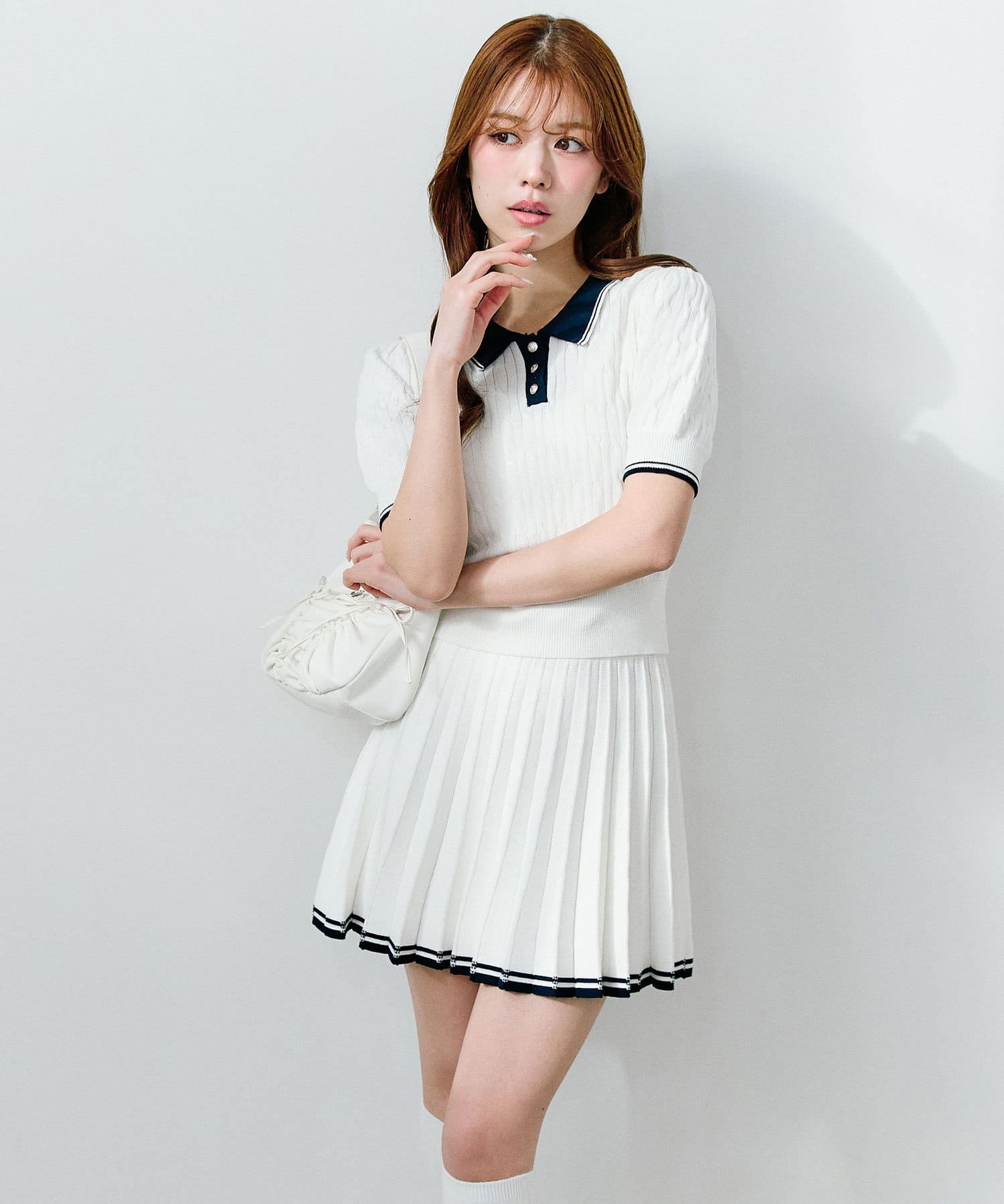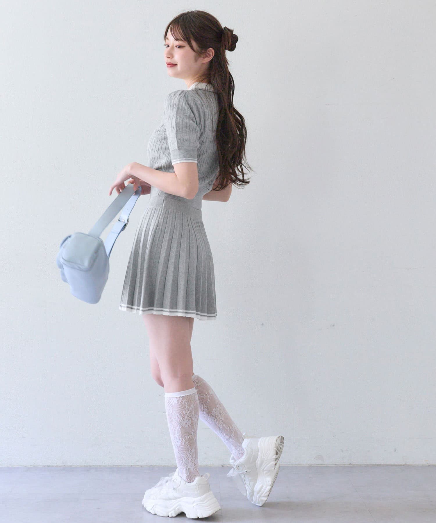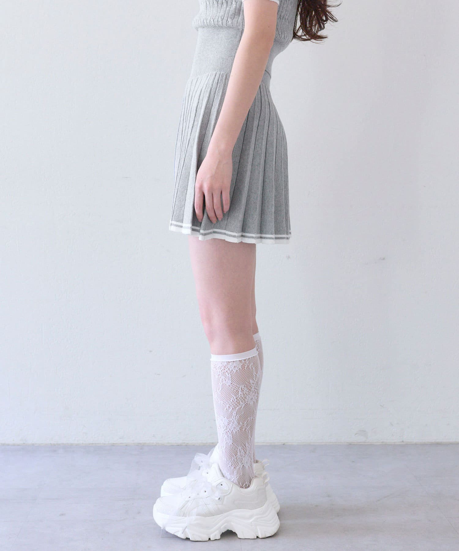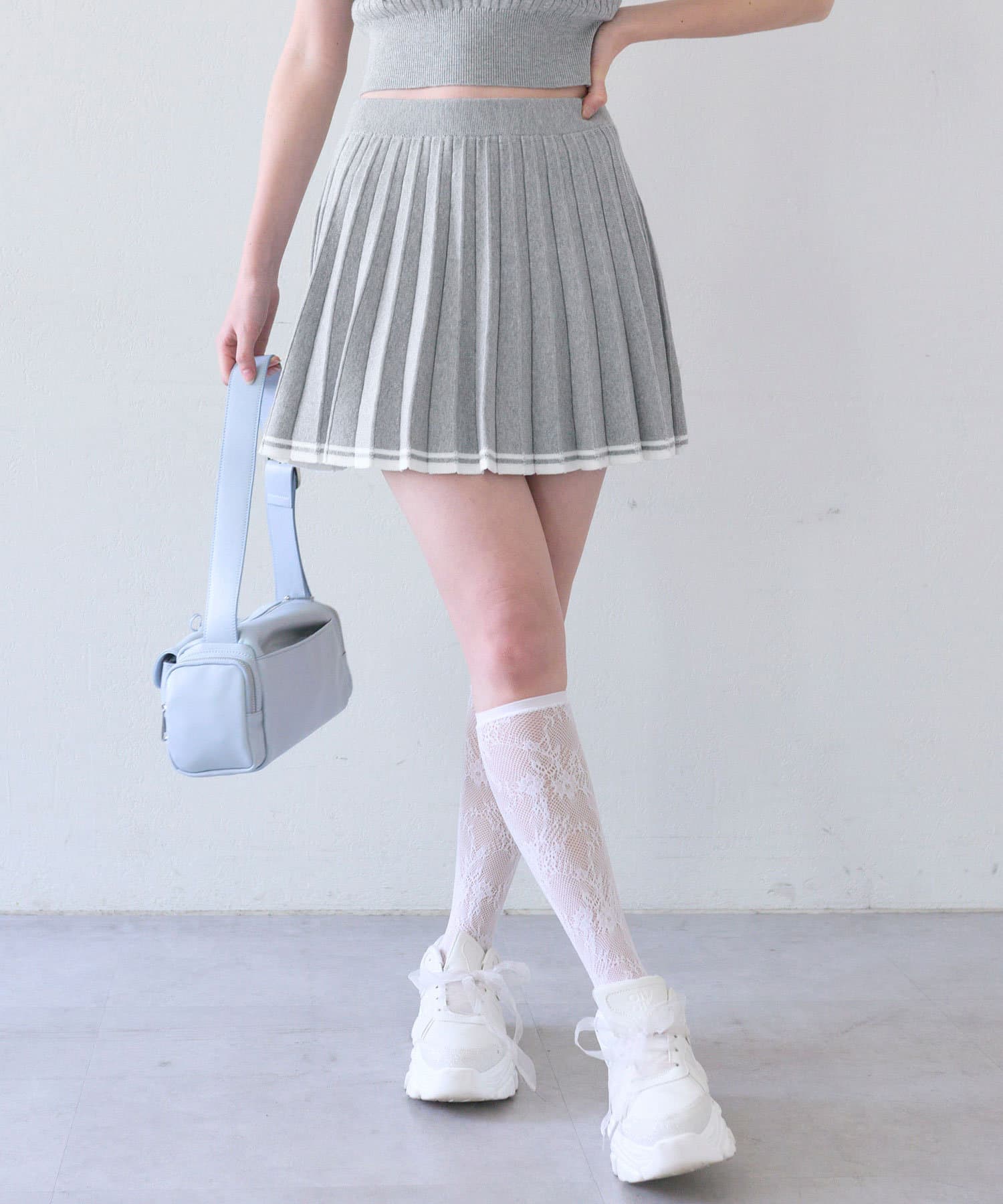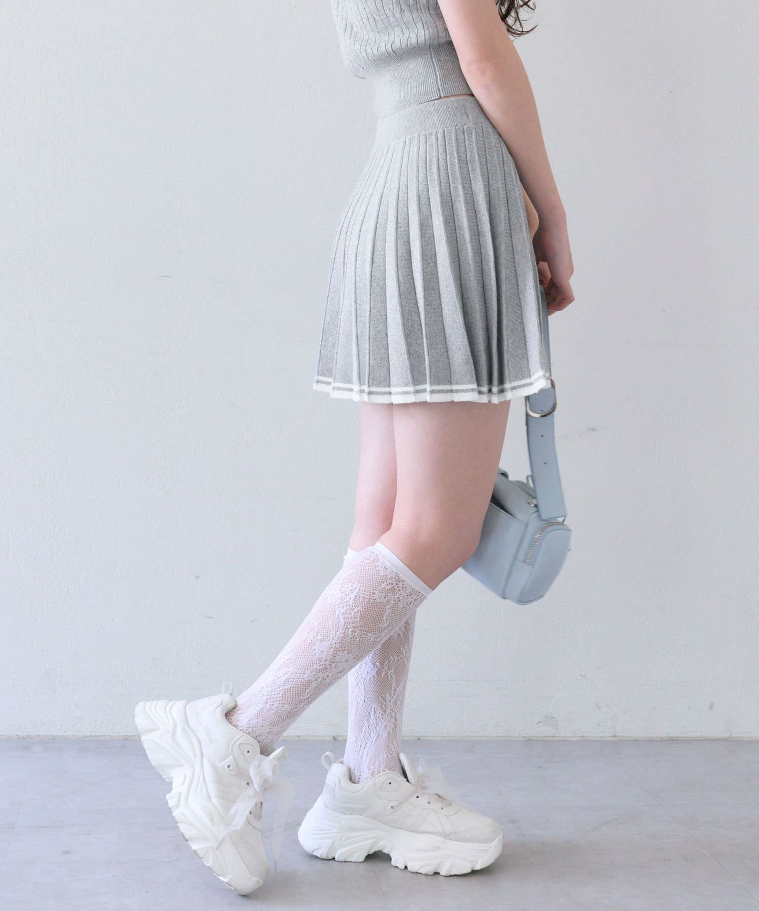・柔らかなニット素材に細かく施されたプリーツは歩くたびに揺れて、女性らしさを引き立てます。