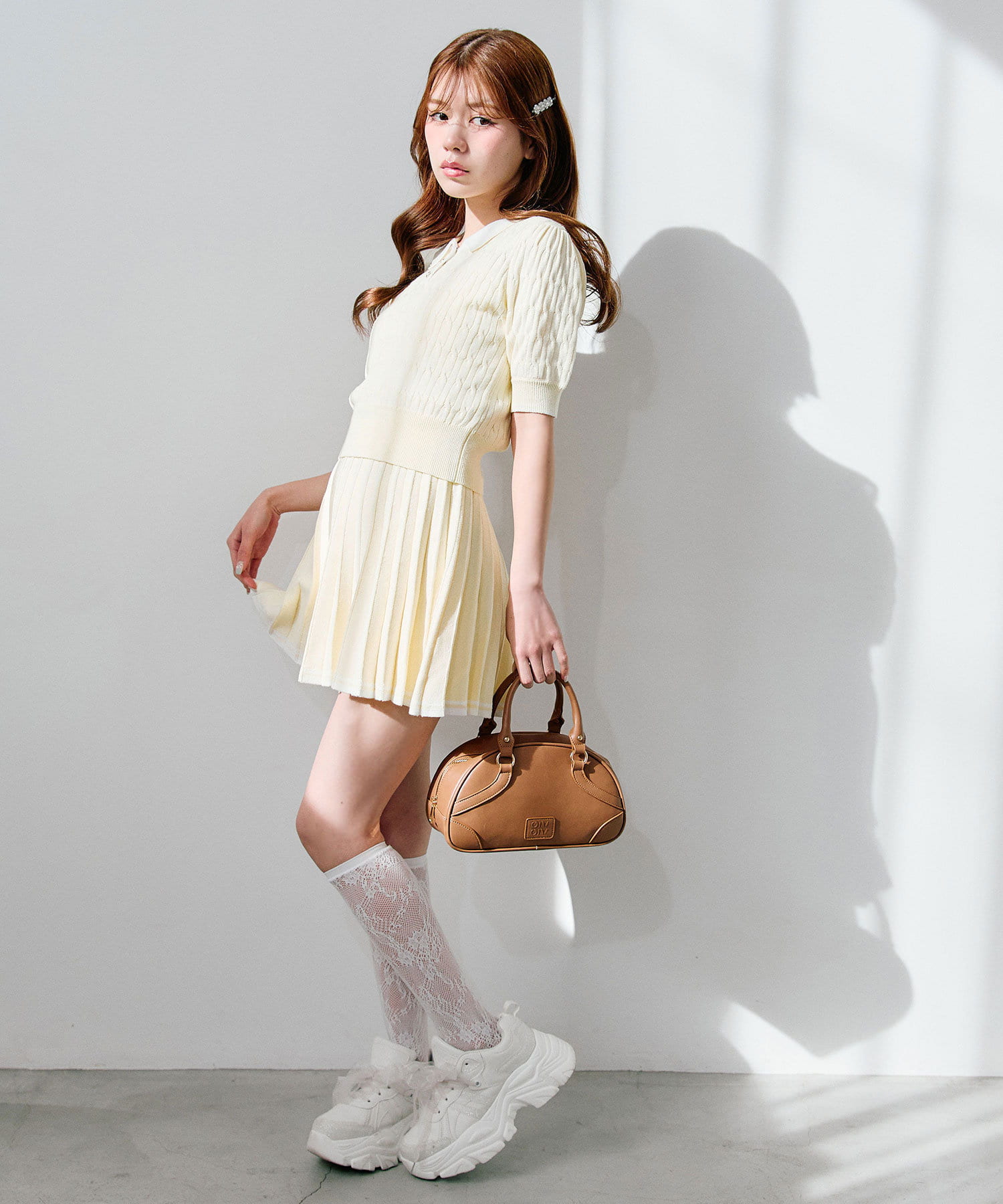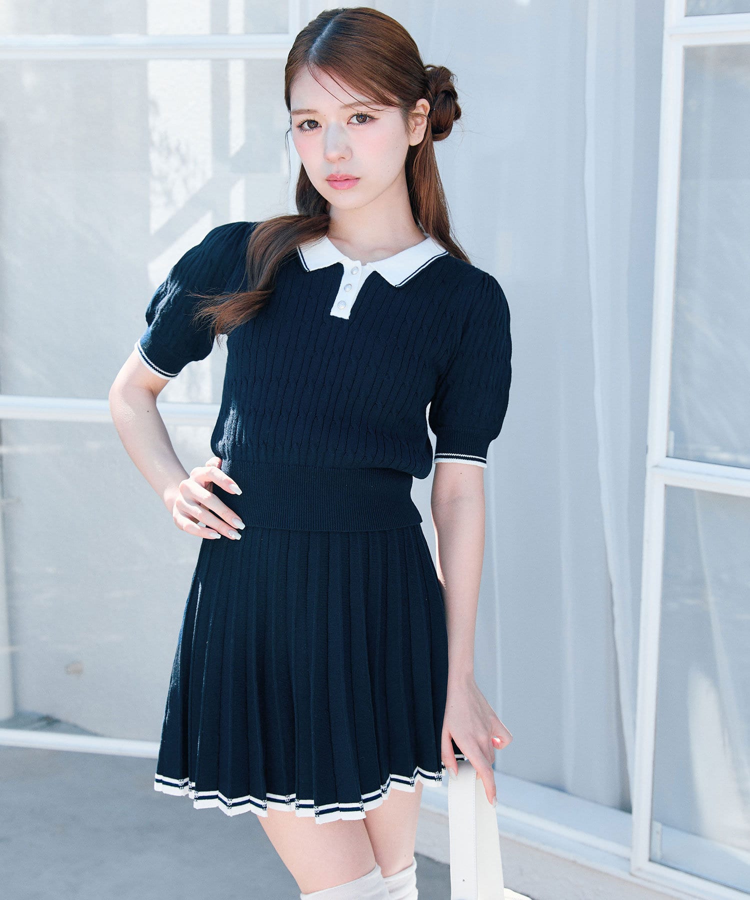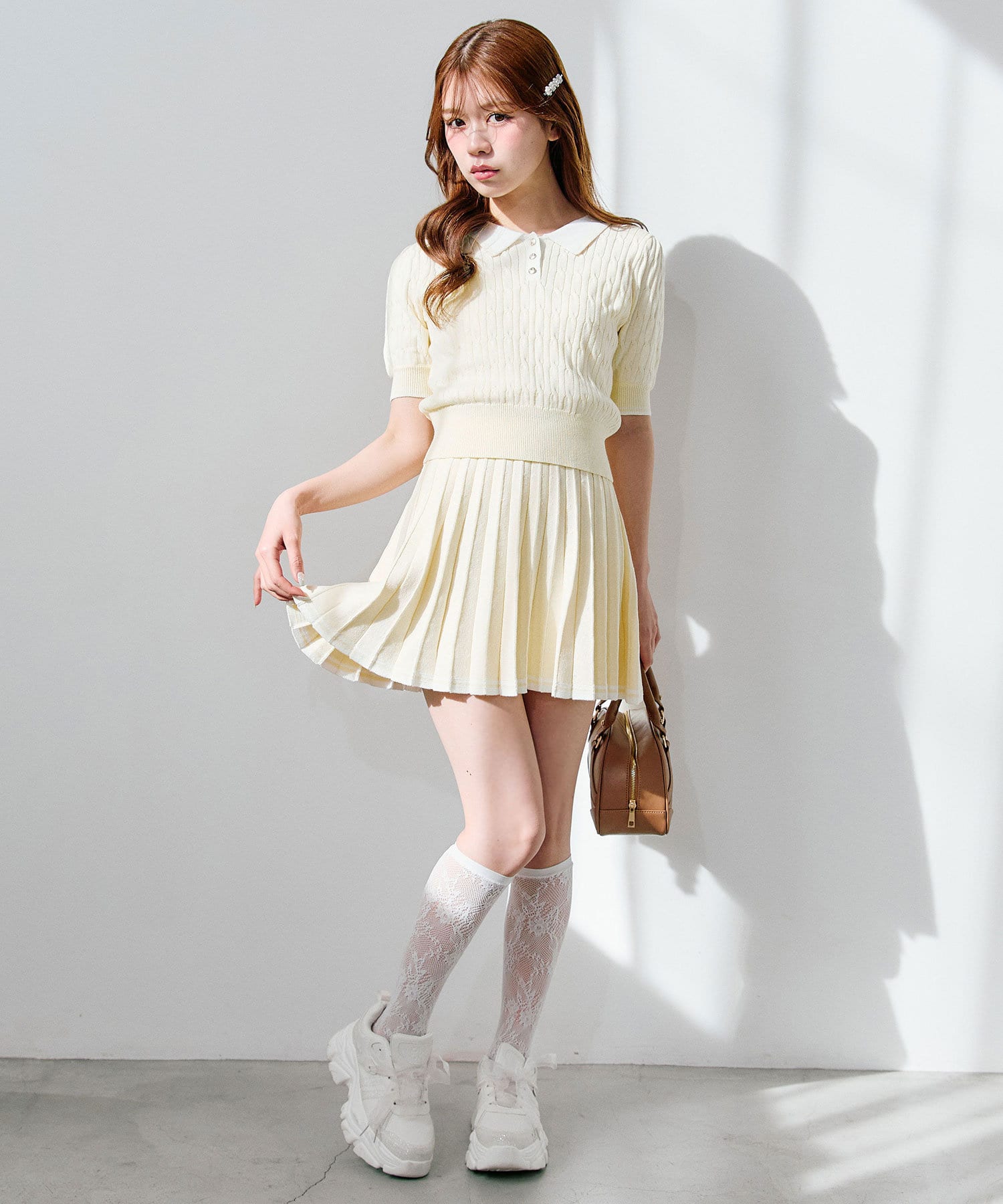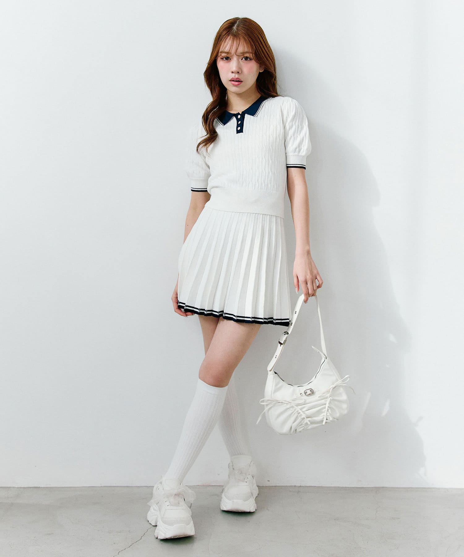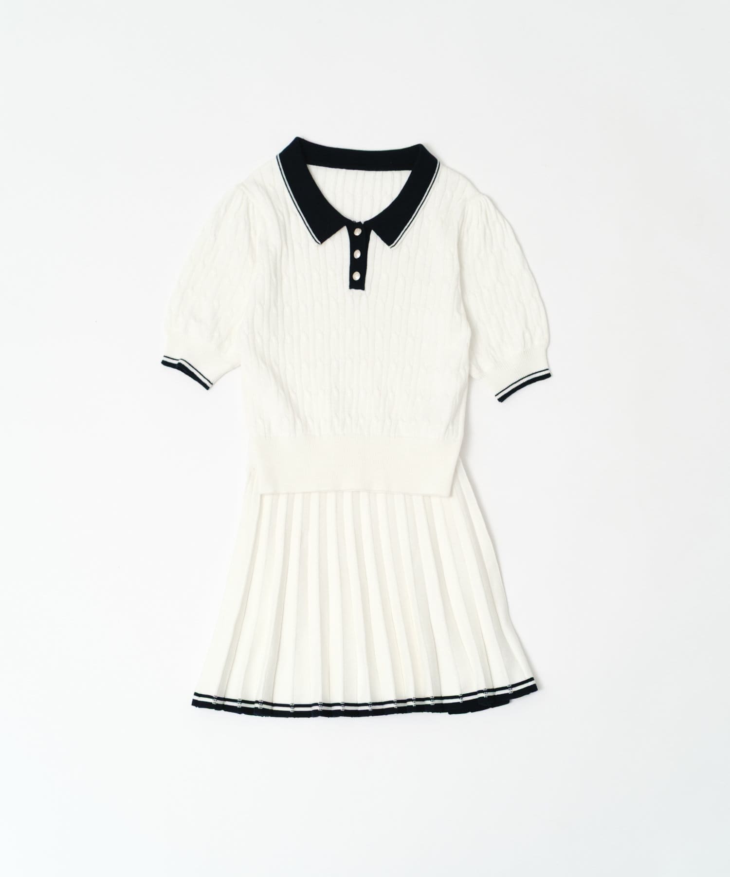 ・柔らかなニット素材に細かく施されたプリーツは歩くたびに揺れて、女性らしさを引き立てます。