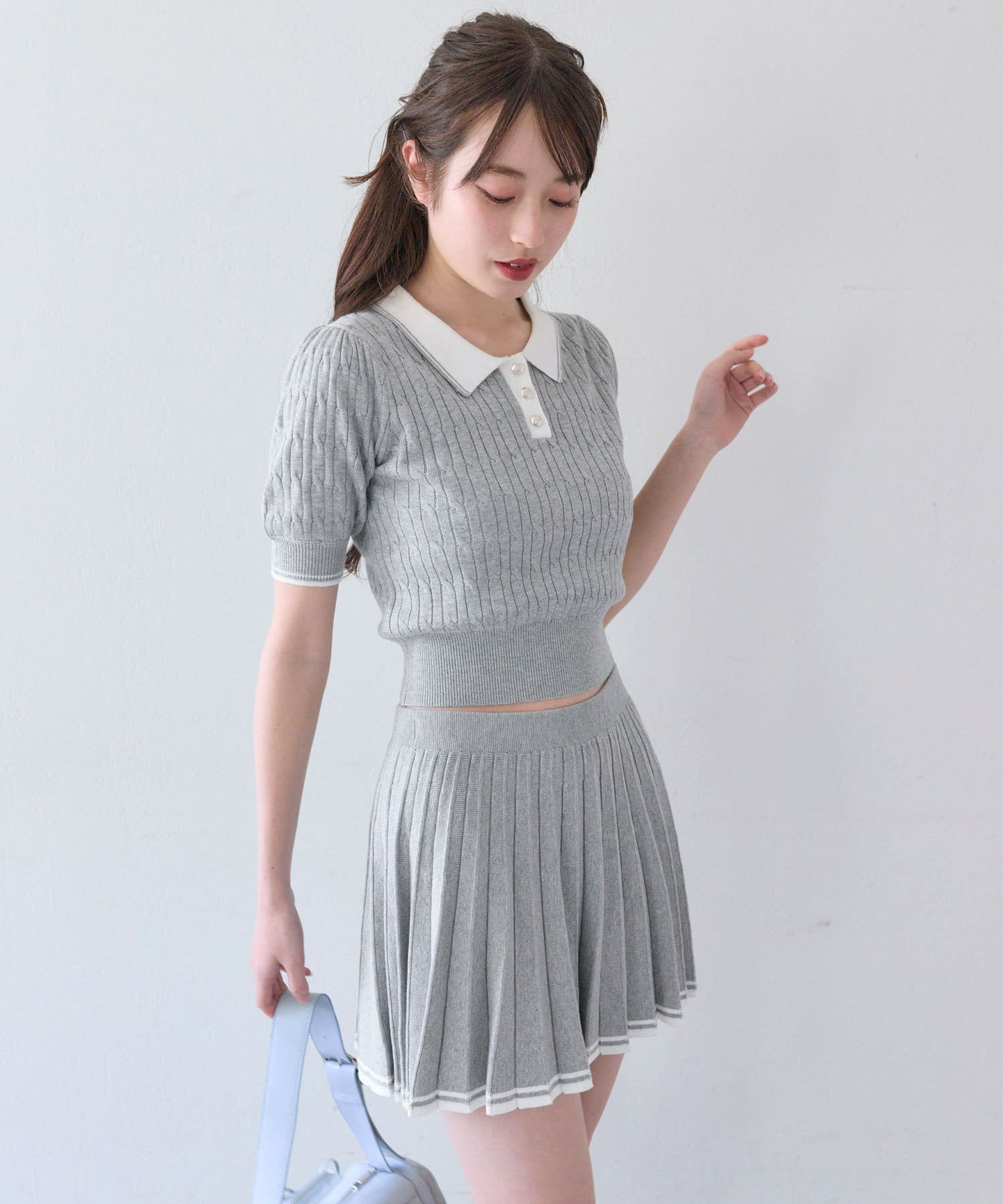 ・同色の春のケーブルポロニット(商品番号:1051050150)と合わせてセットアップで着るのがおすすめ。