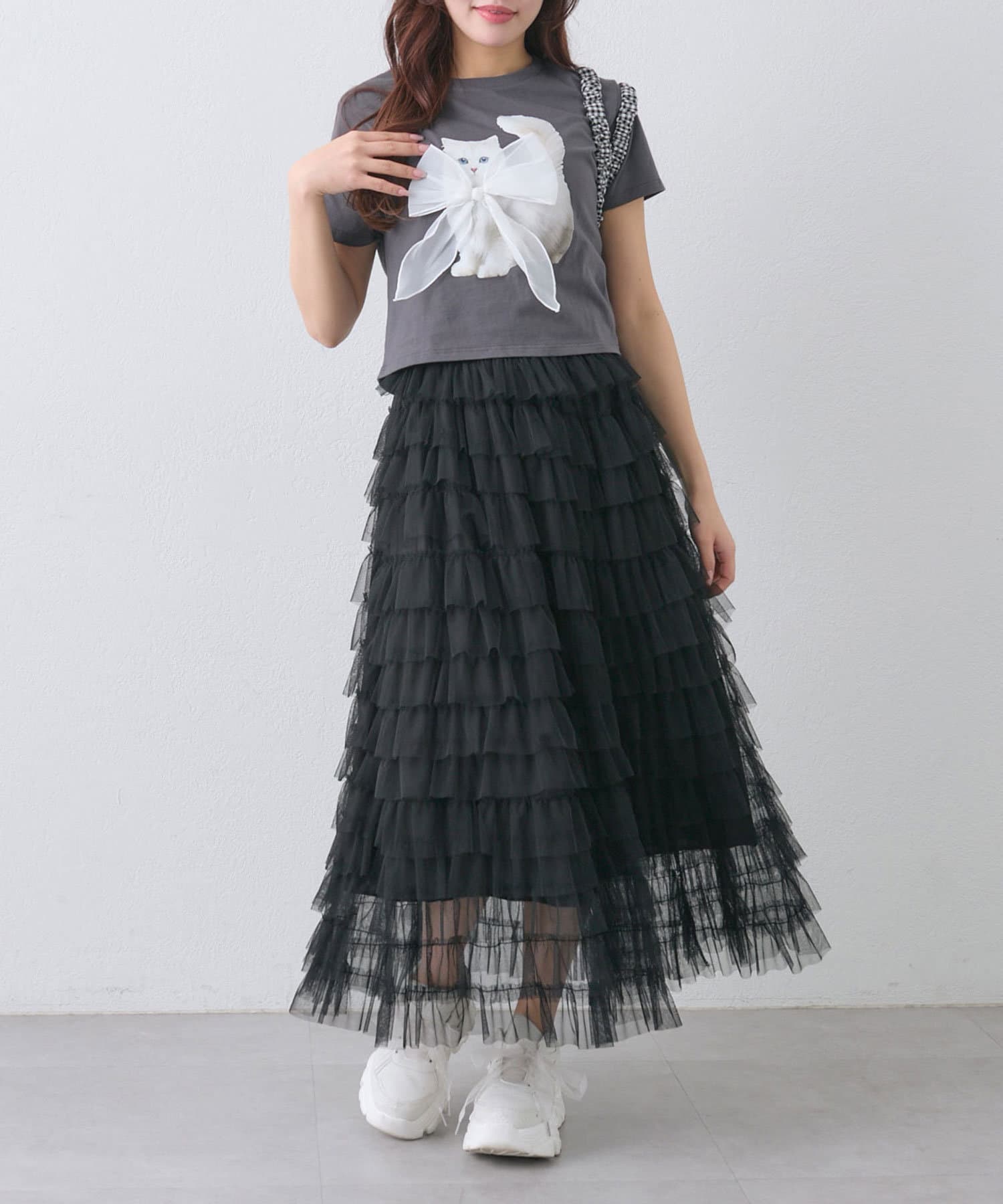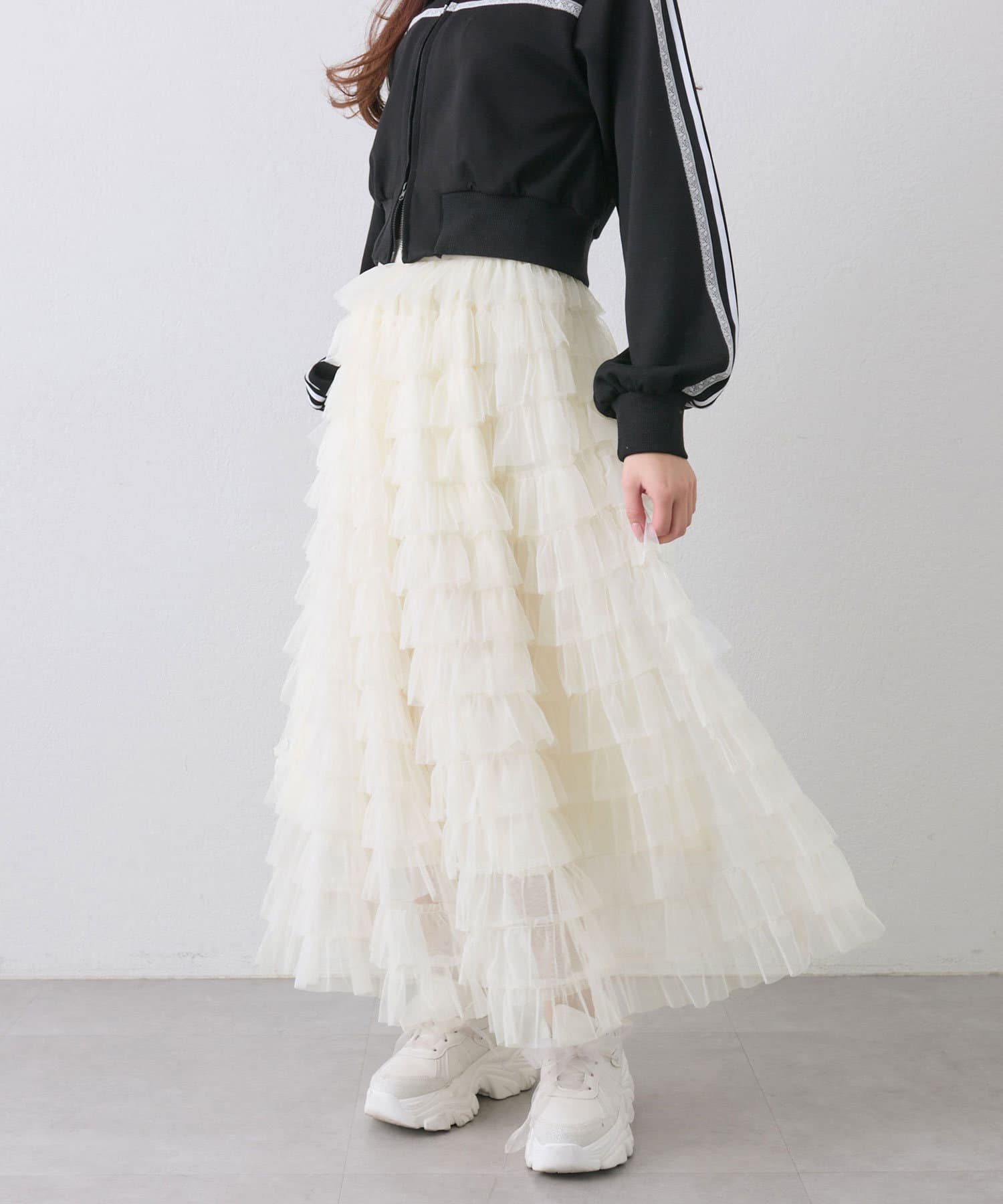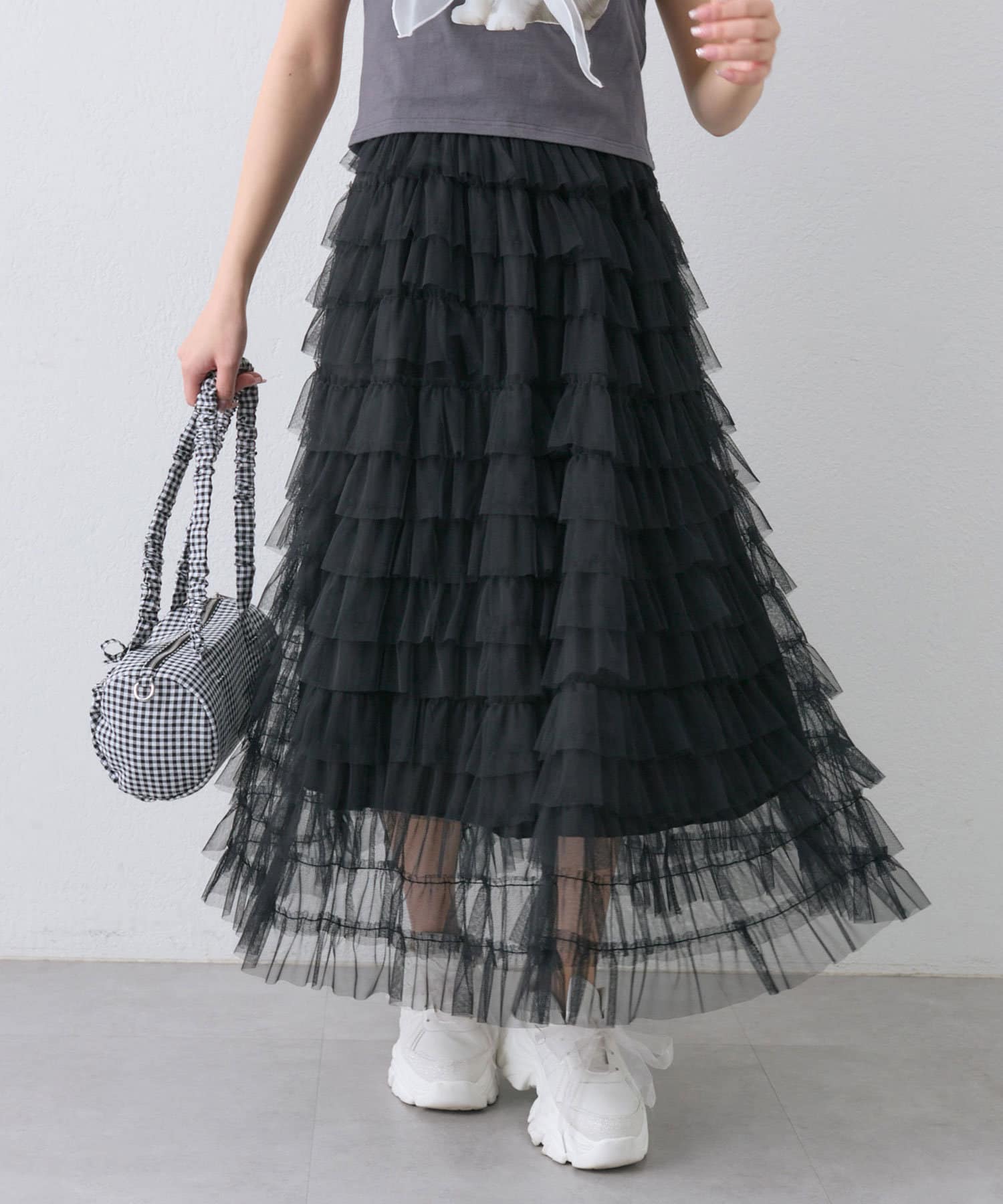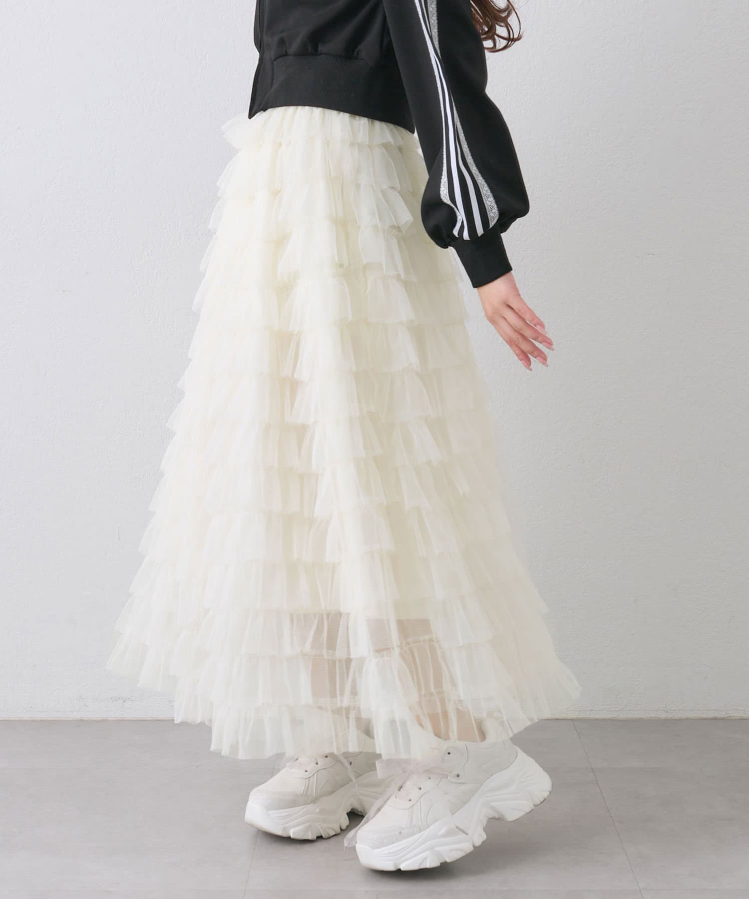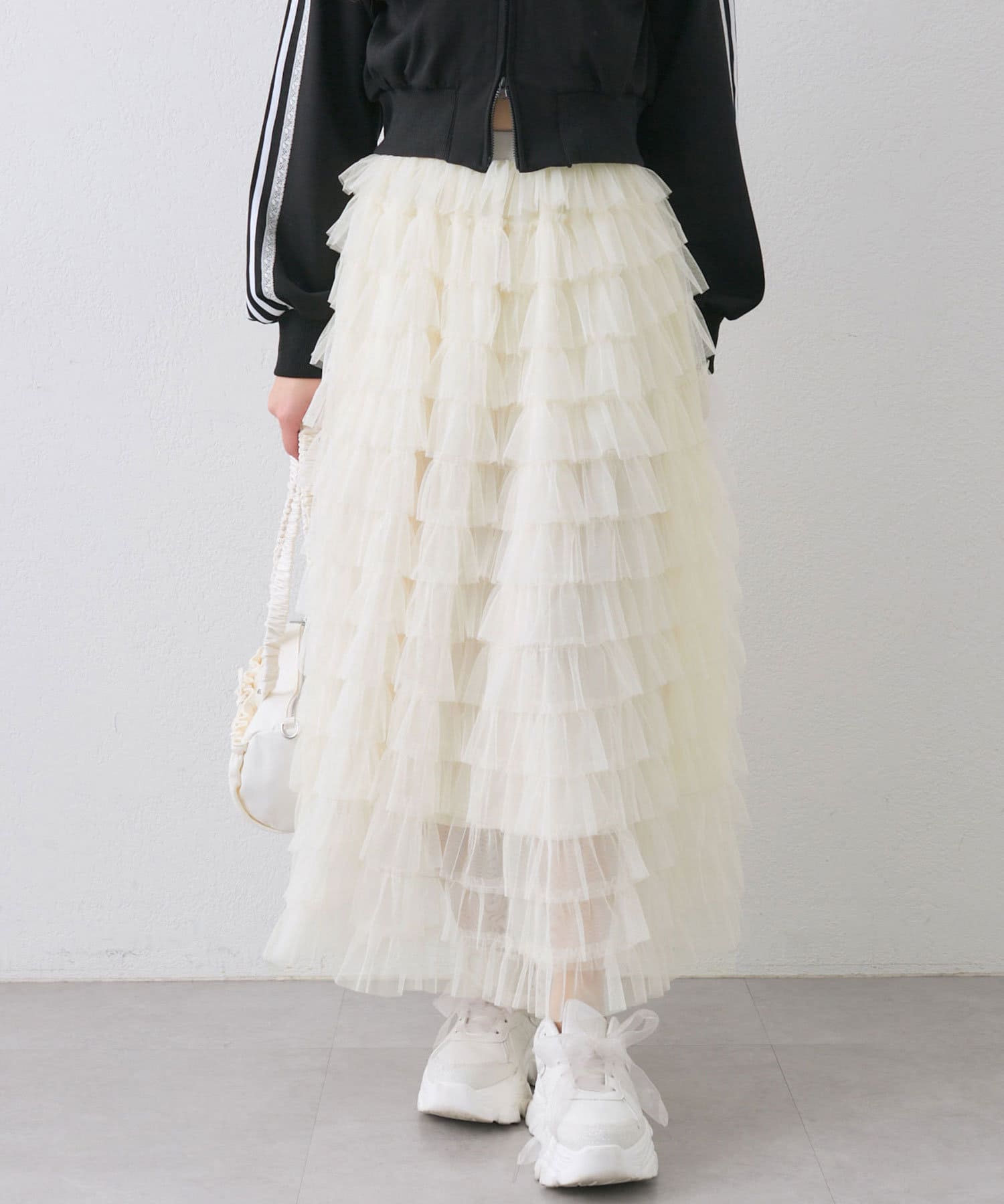 歩くたびにふんわり揺れるエアリーなチュールスカート