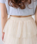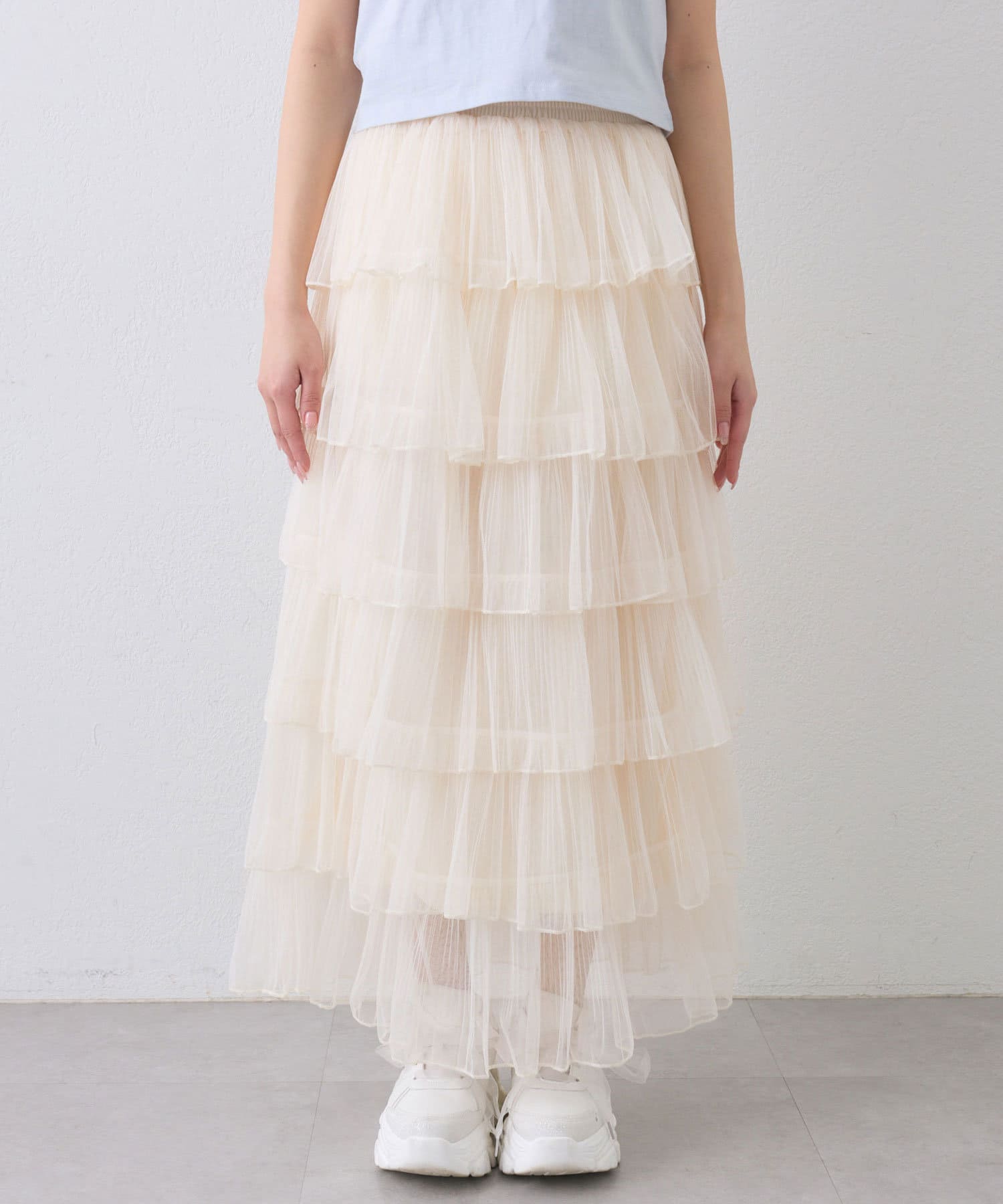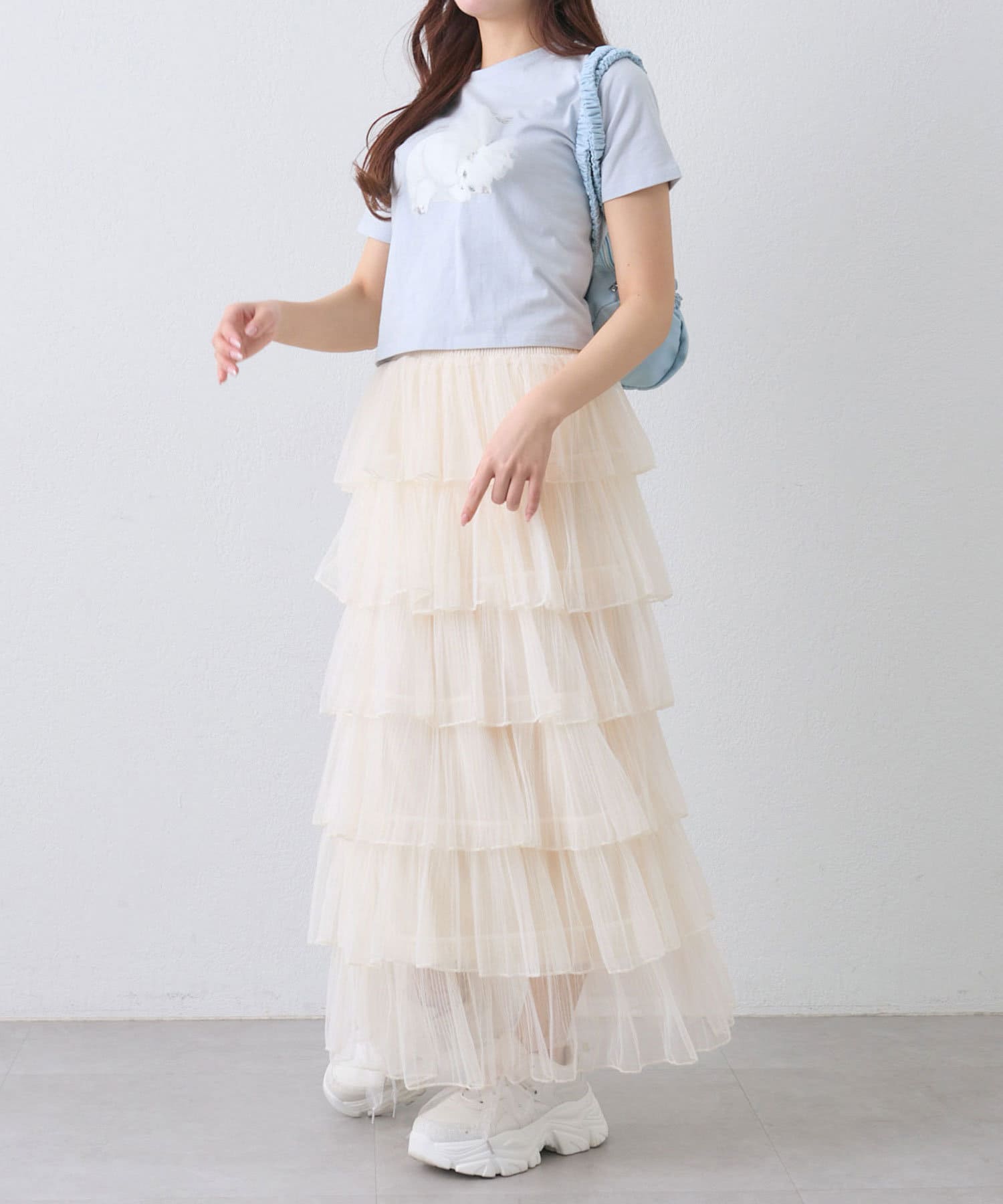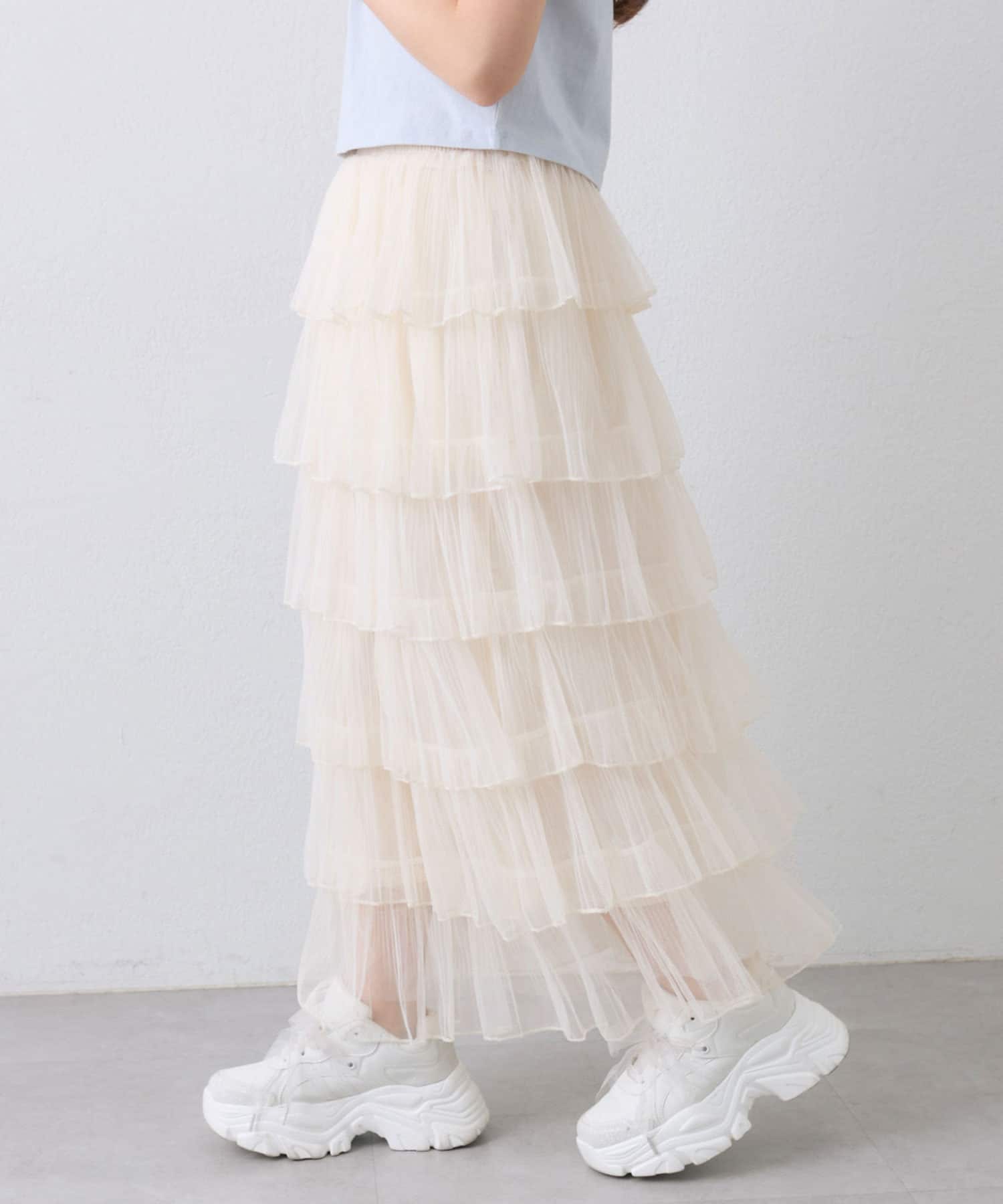 ・トレンドのチュール素材を使用しており、ティアードが何段にもあることで膨らみすぎない程よいボリューム感になってます。