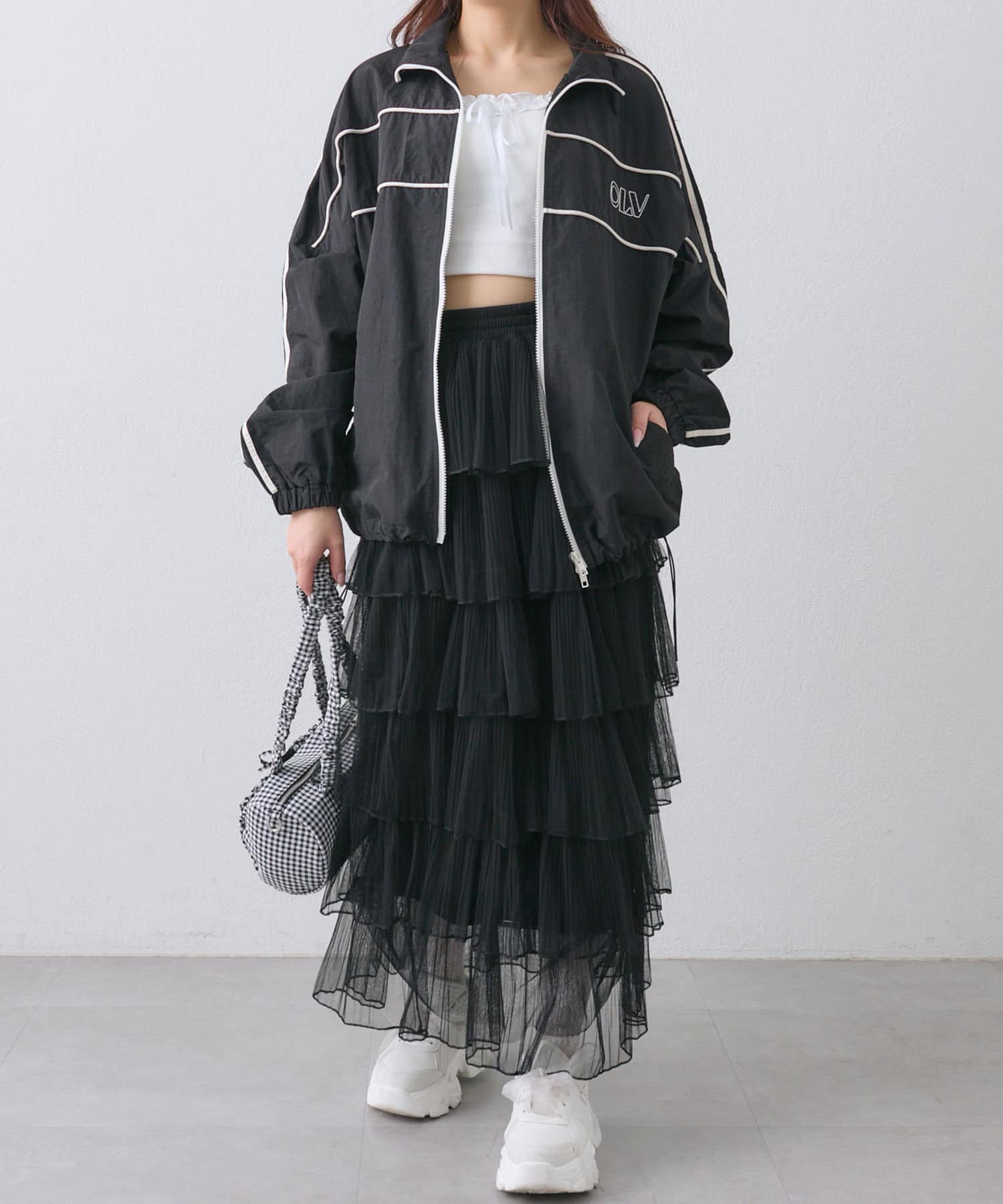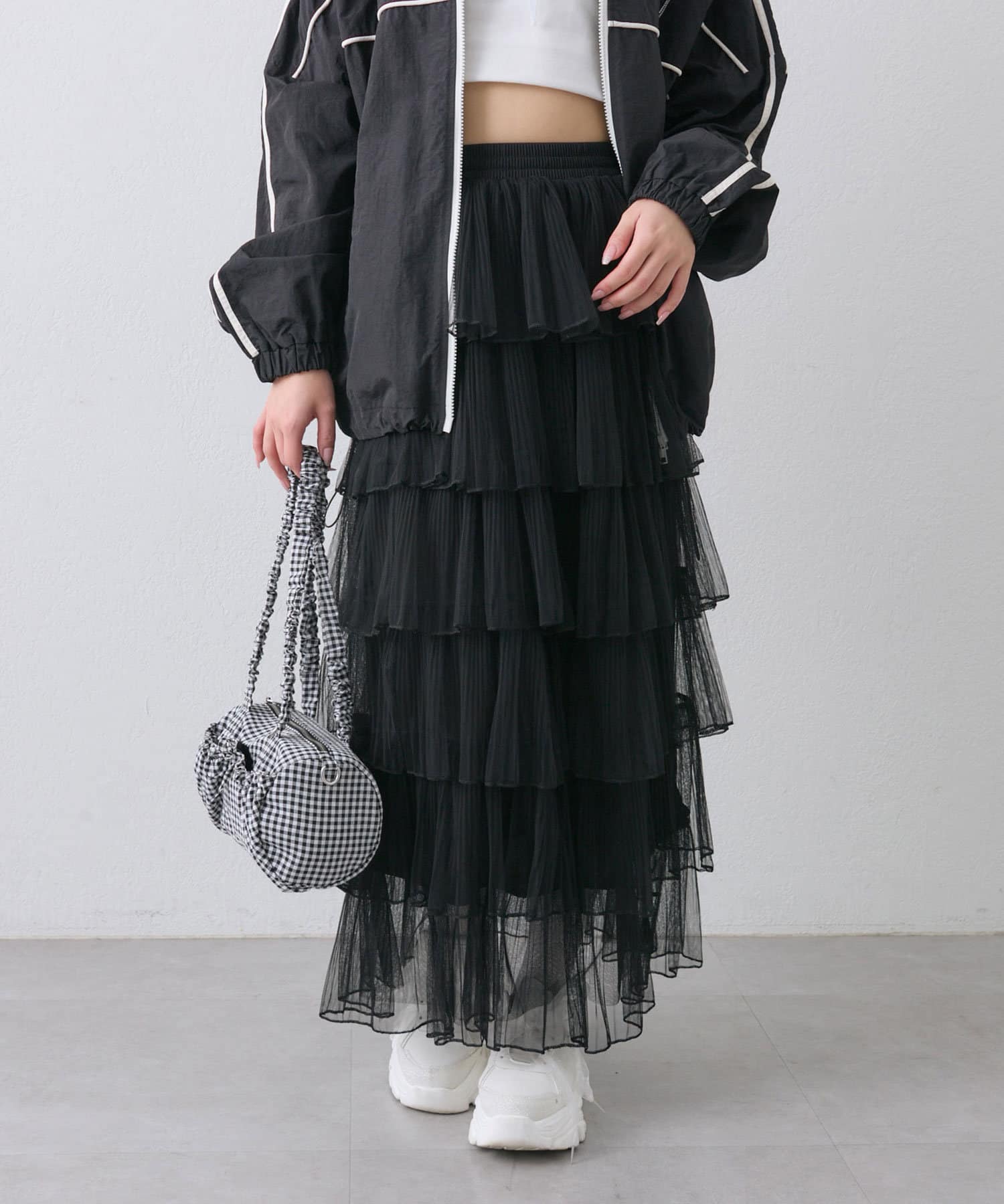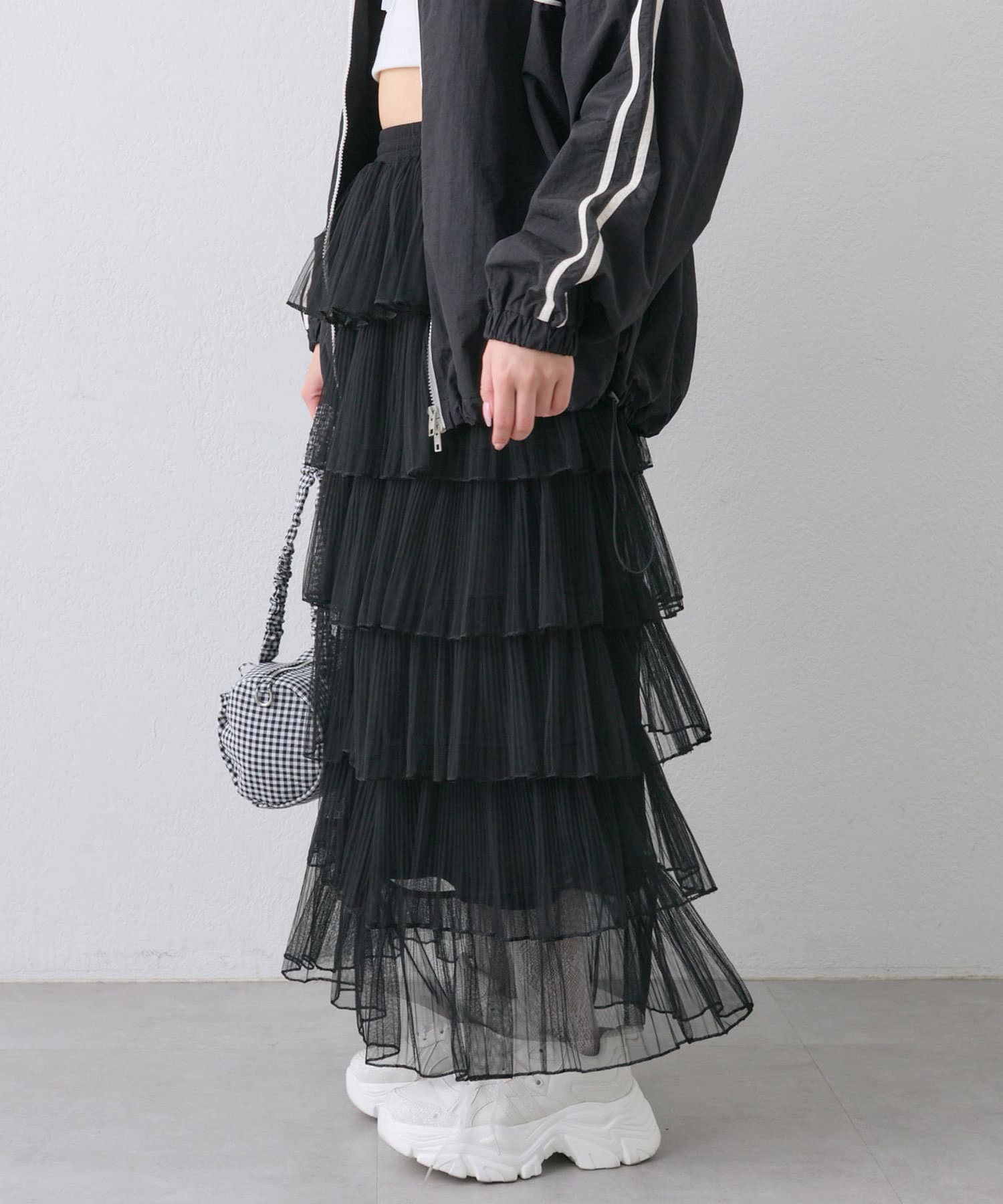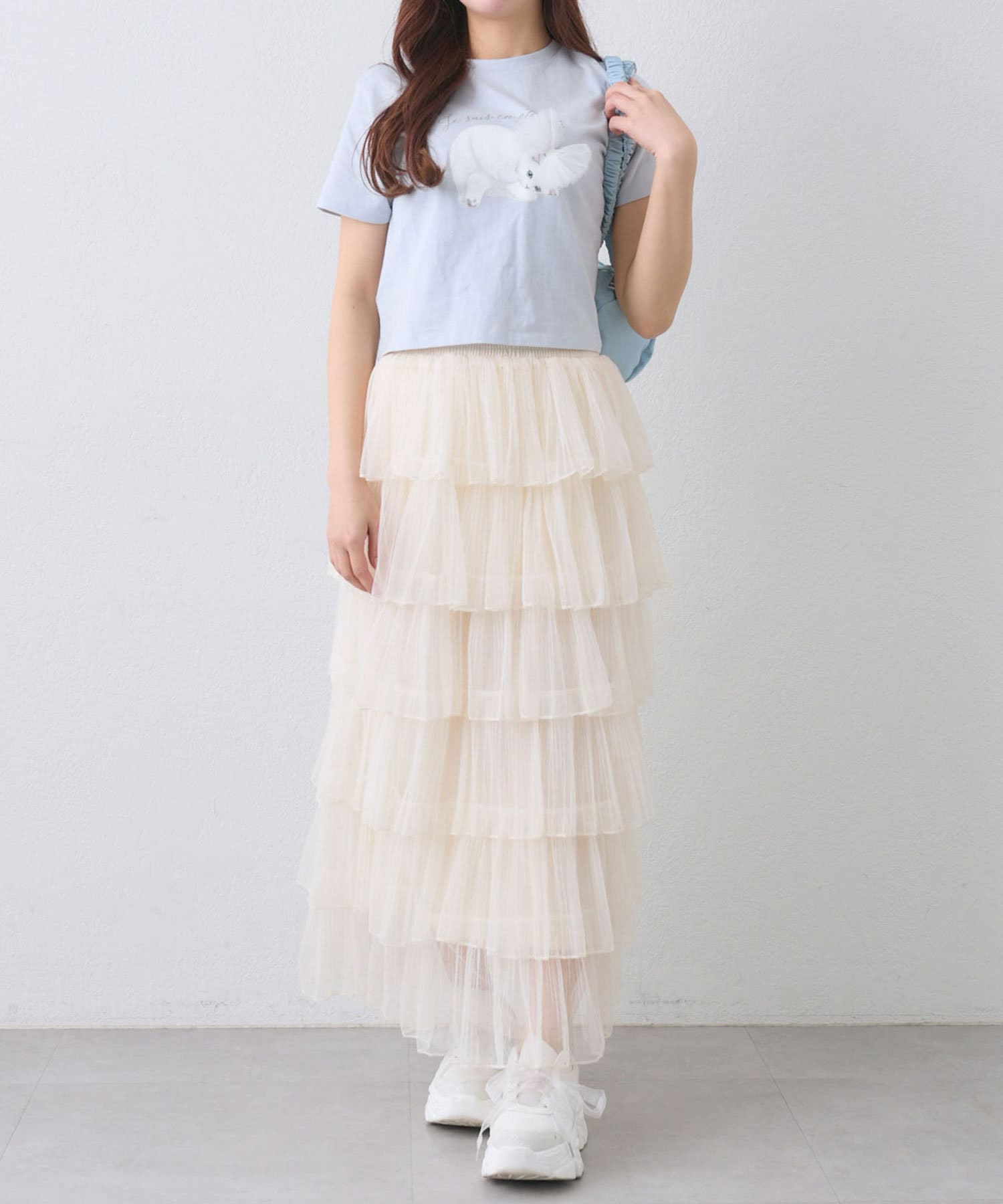 ・トレンドのチュール素材を使用しており、ティアードが何段にもあることで膨らみすぎない程よいボリューム感になってます。