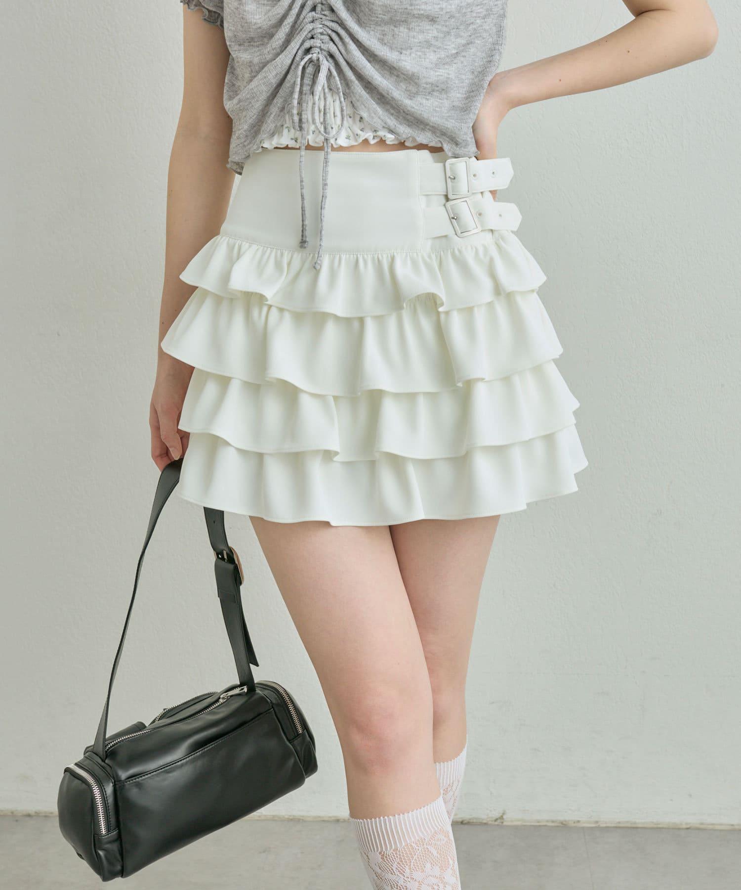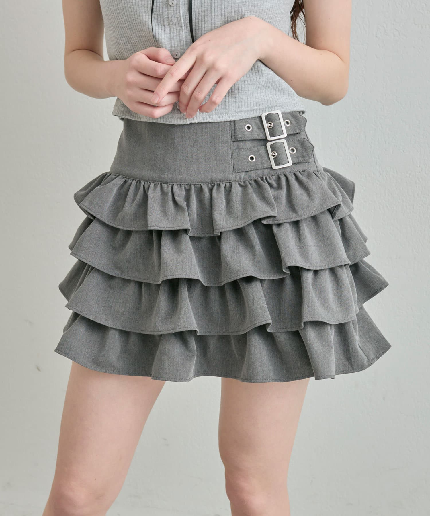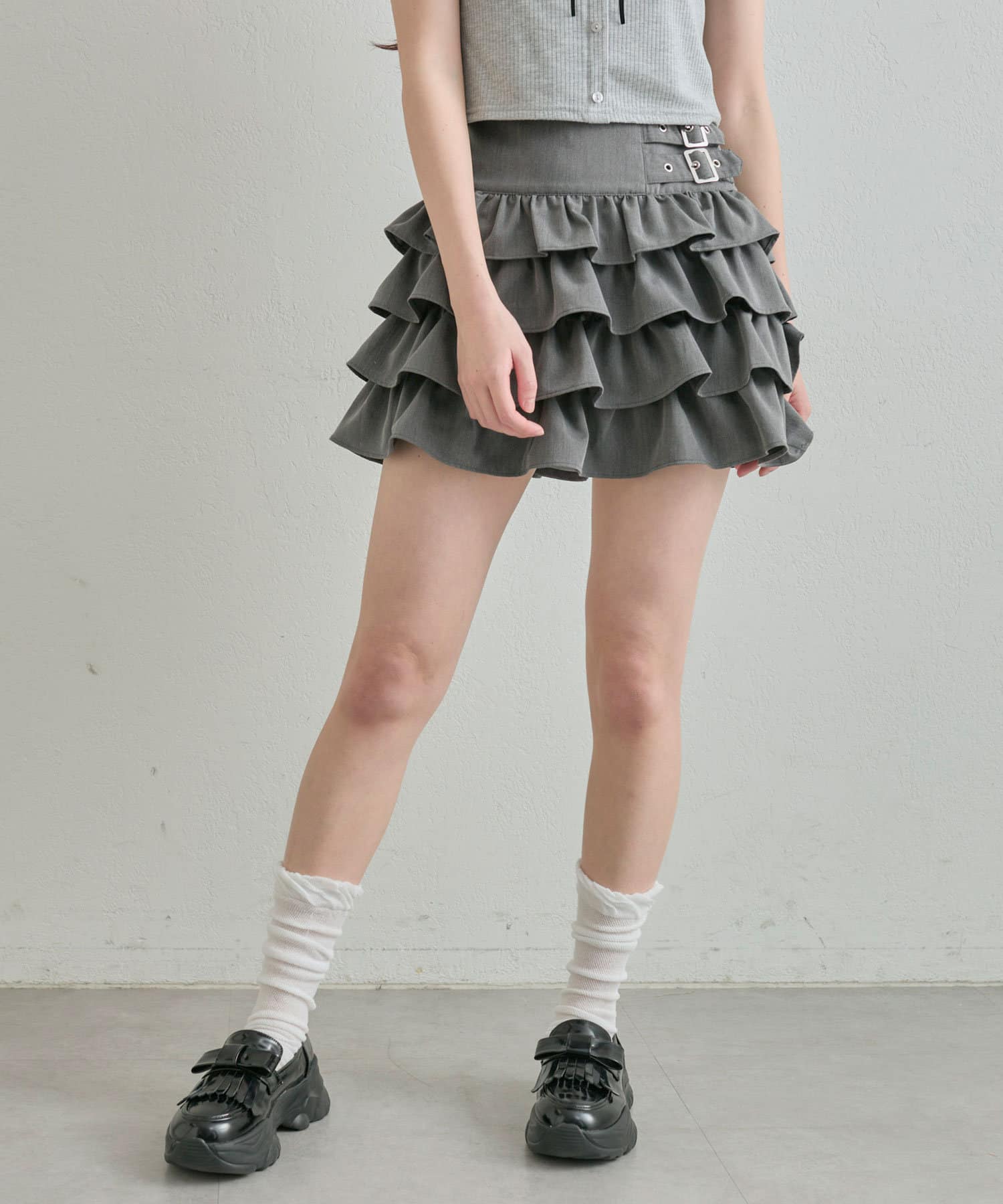 ダブルバックルフリルスカート