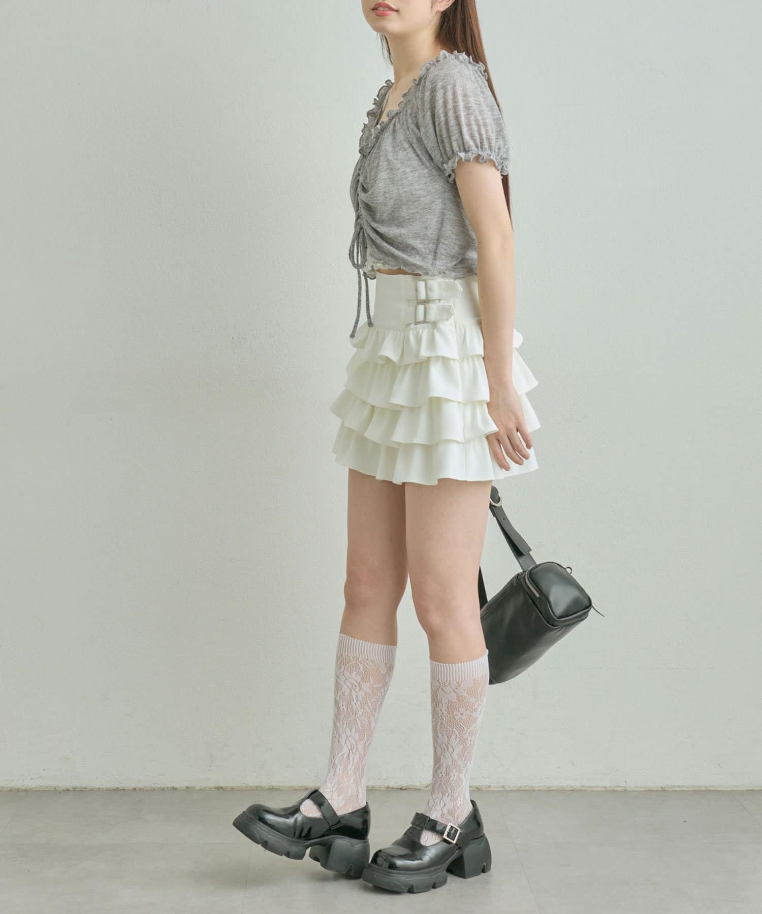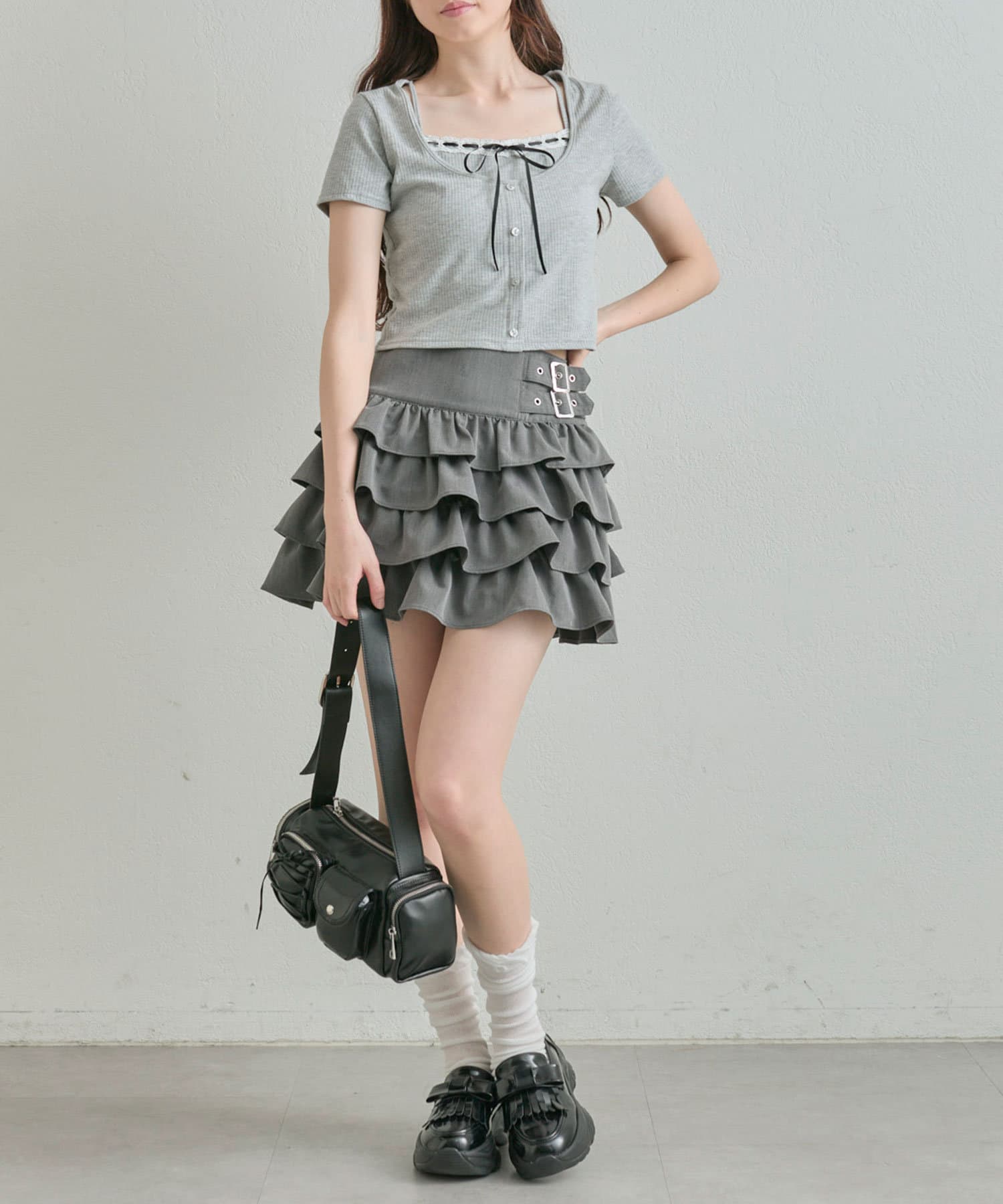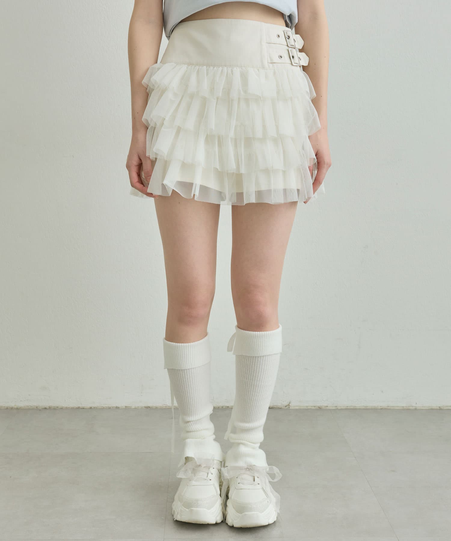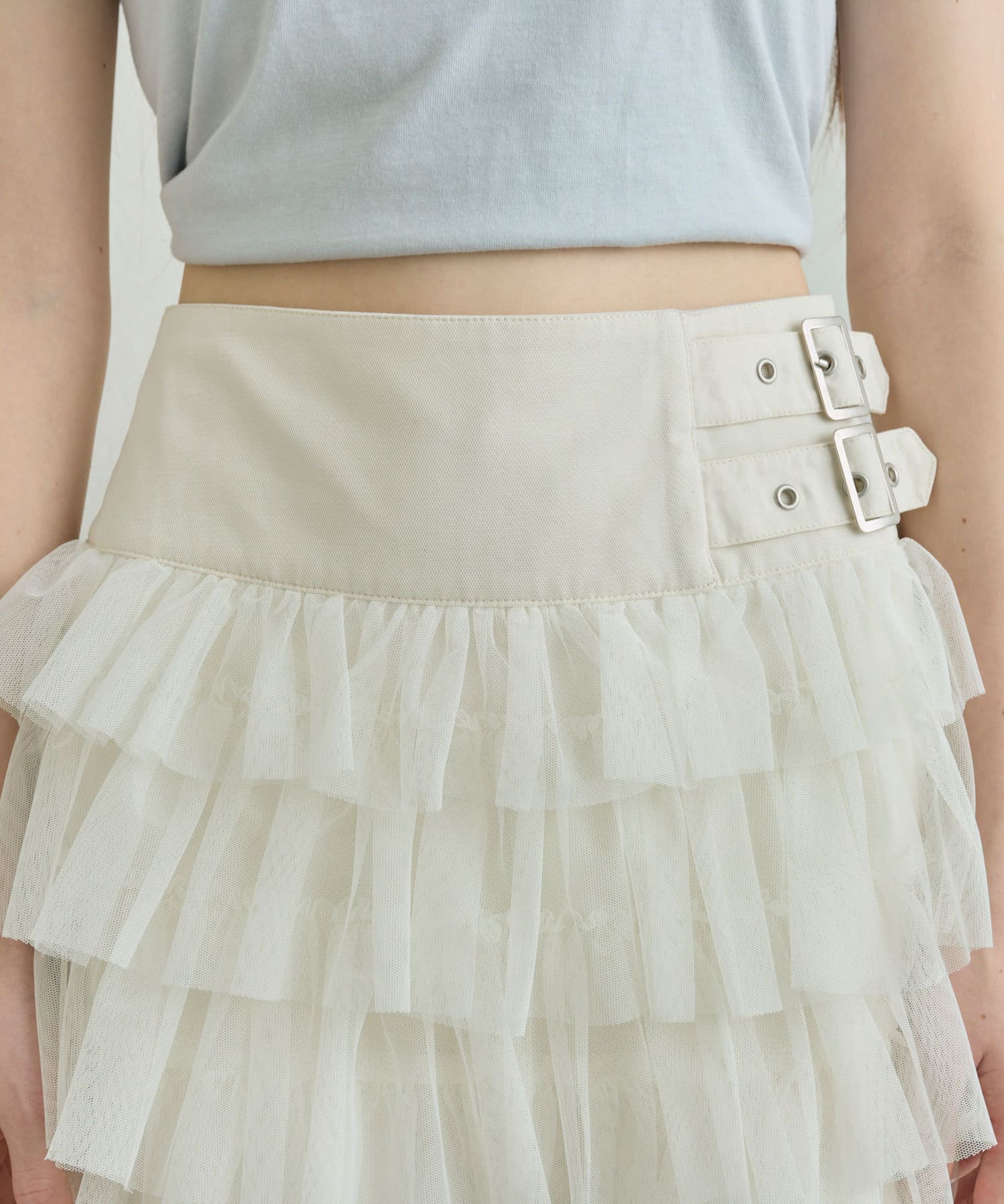 ダブルバックルフリルスカート