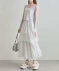 ・透け感のあるシアー素材なので、ロングスカートでも重たい印象になりにくいです。