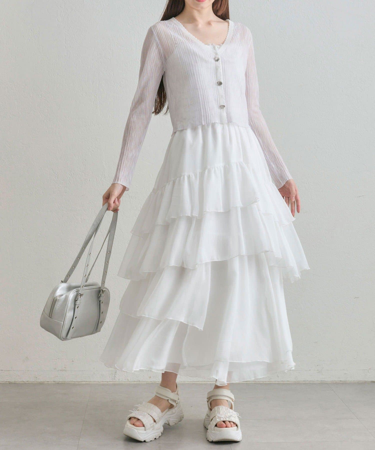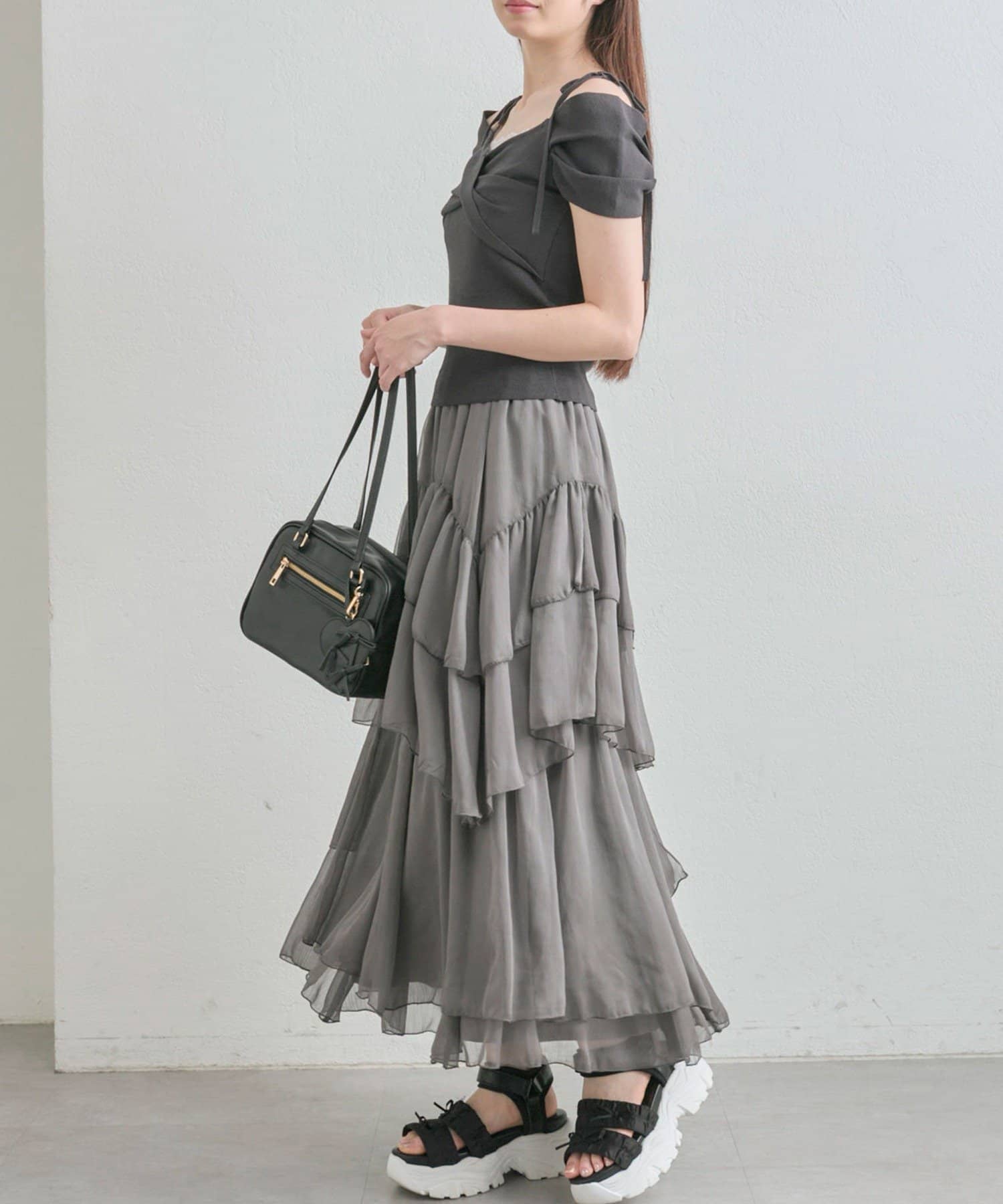・アシンメトリーなふわふわのティアードが目を惹くデザイン。