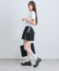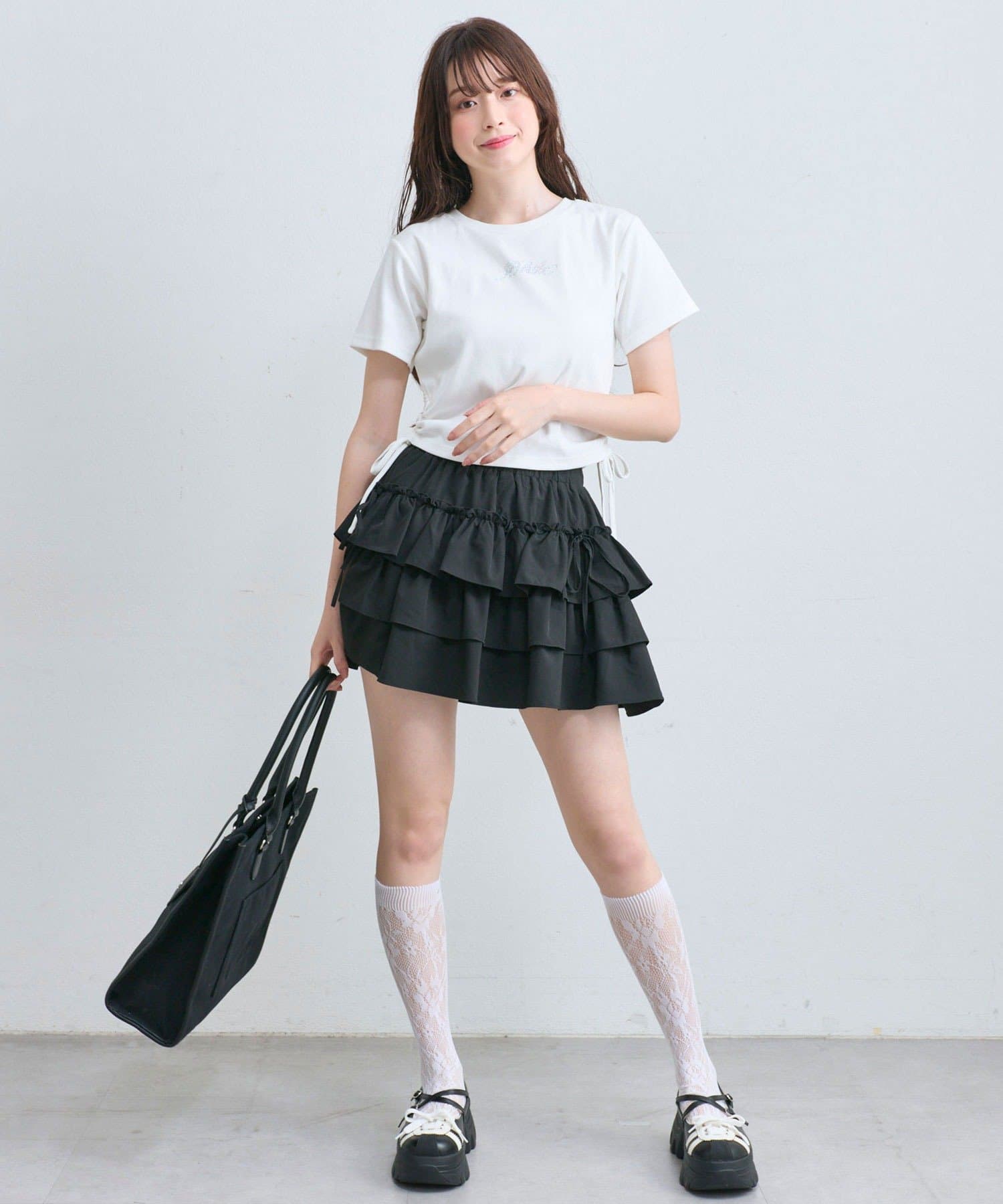 ・シンプルなTシャツと合わせて、甘めのカジュアルコーデがおすすめ。