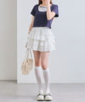 ・シンプルなTシャツと合わせて、甘めのカジュアルコーデがおすすめ。