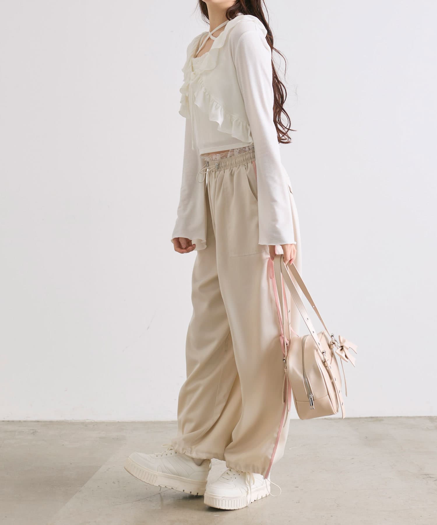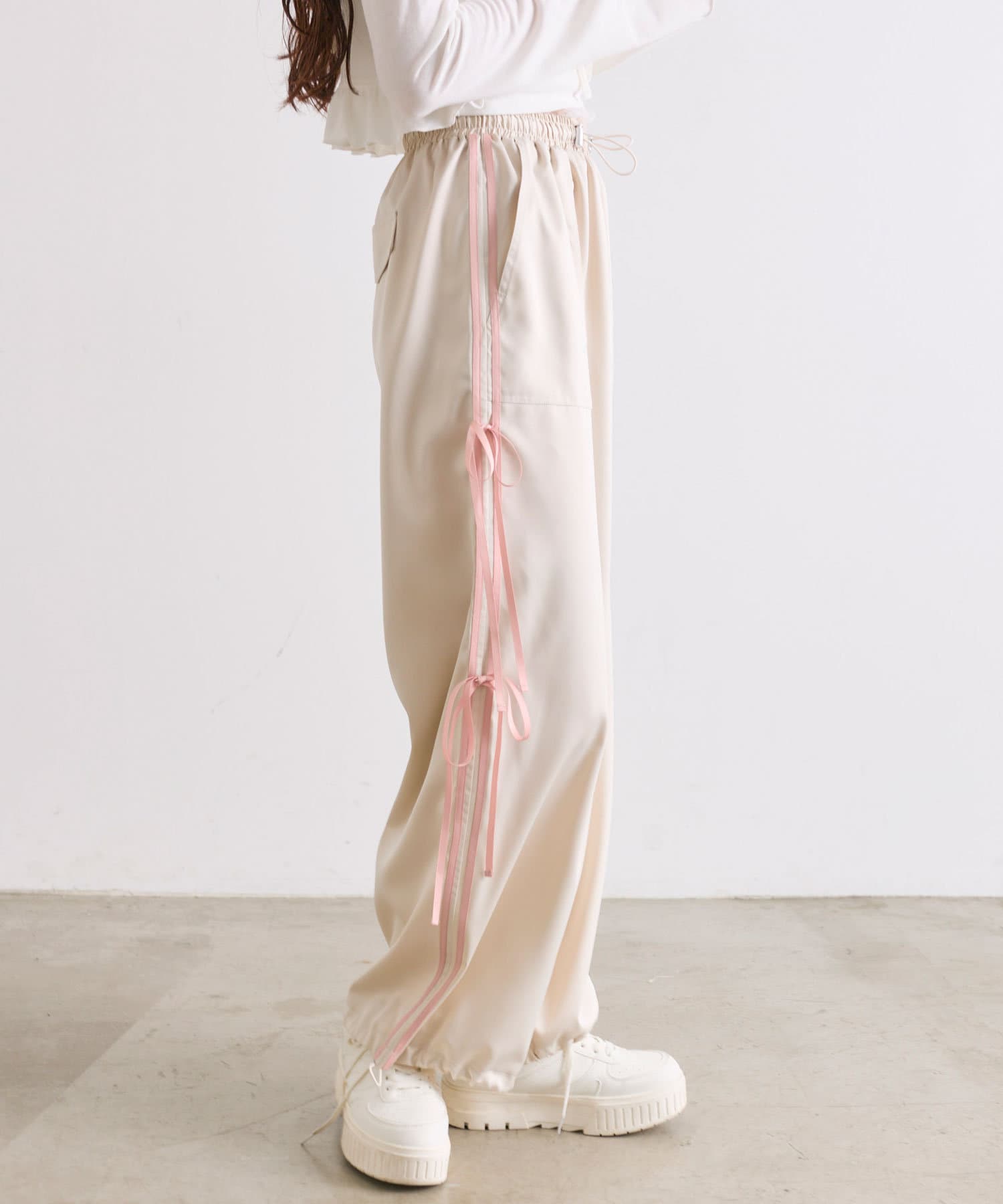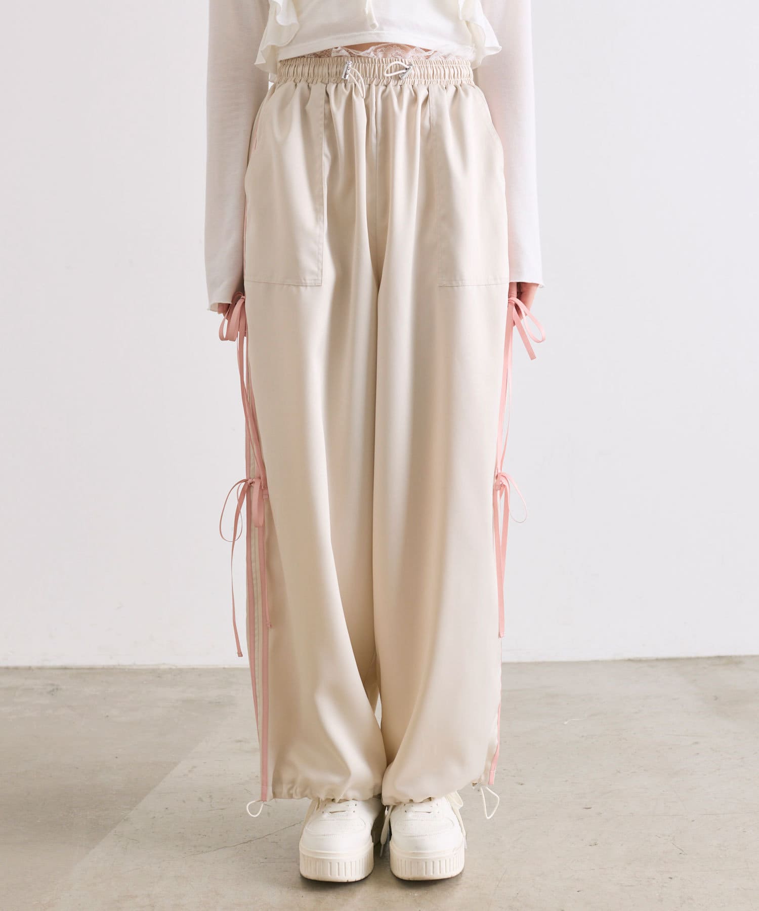 レースとリボンで甘さも兼ね備えたラインパンツ