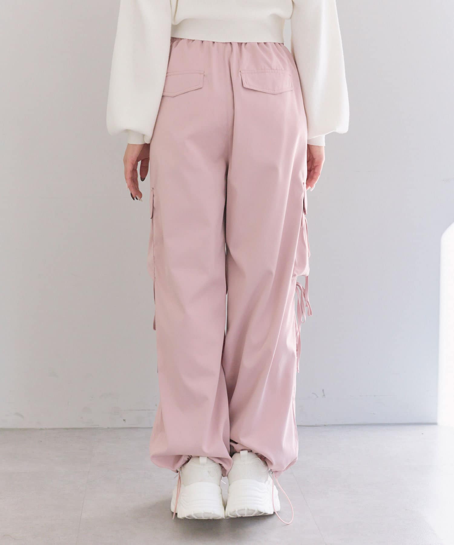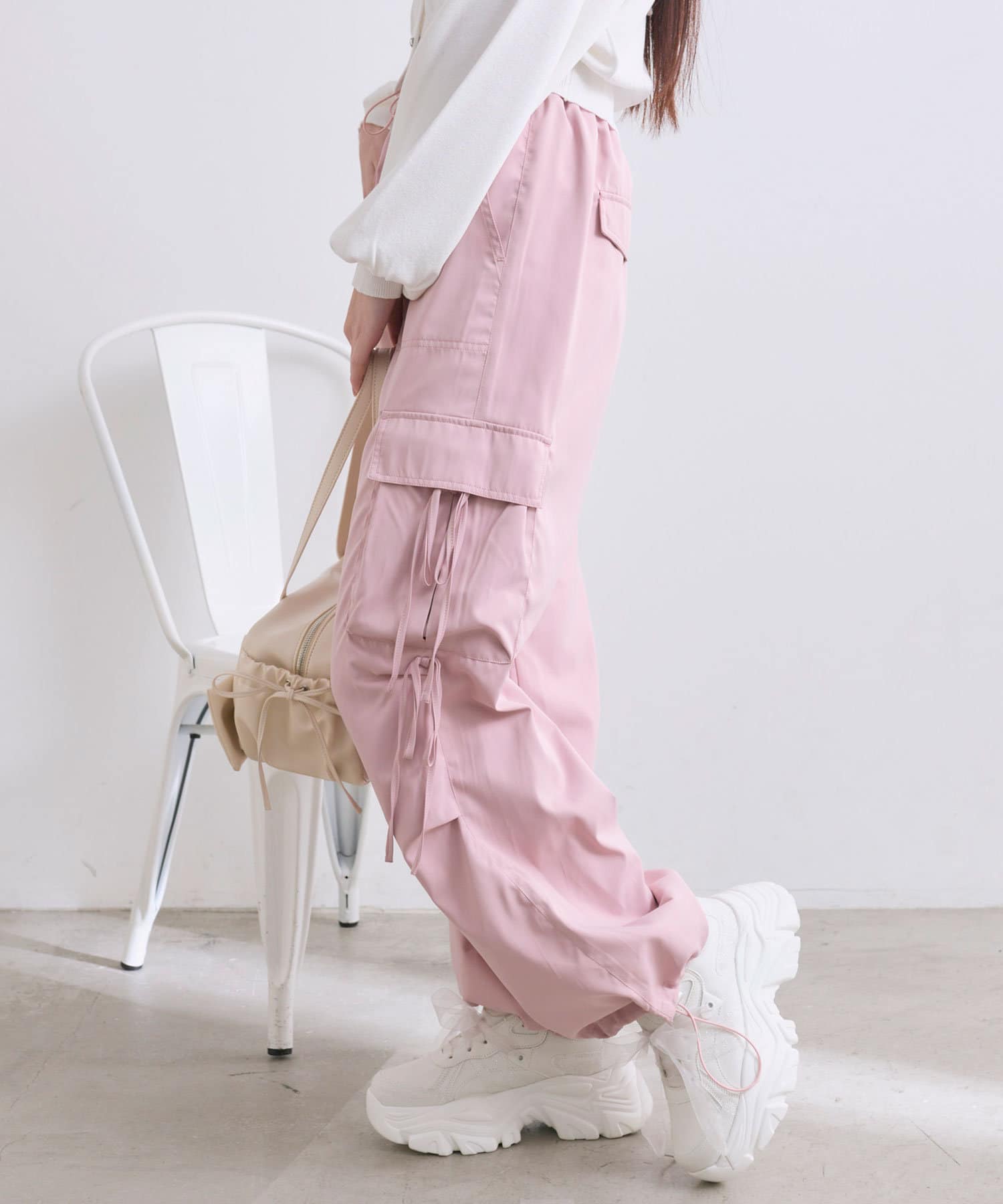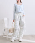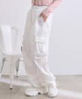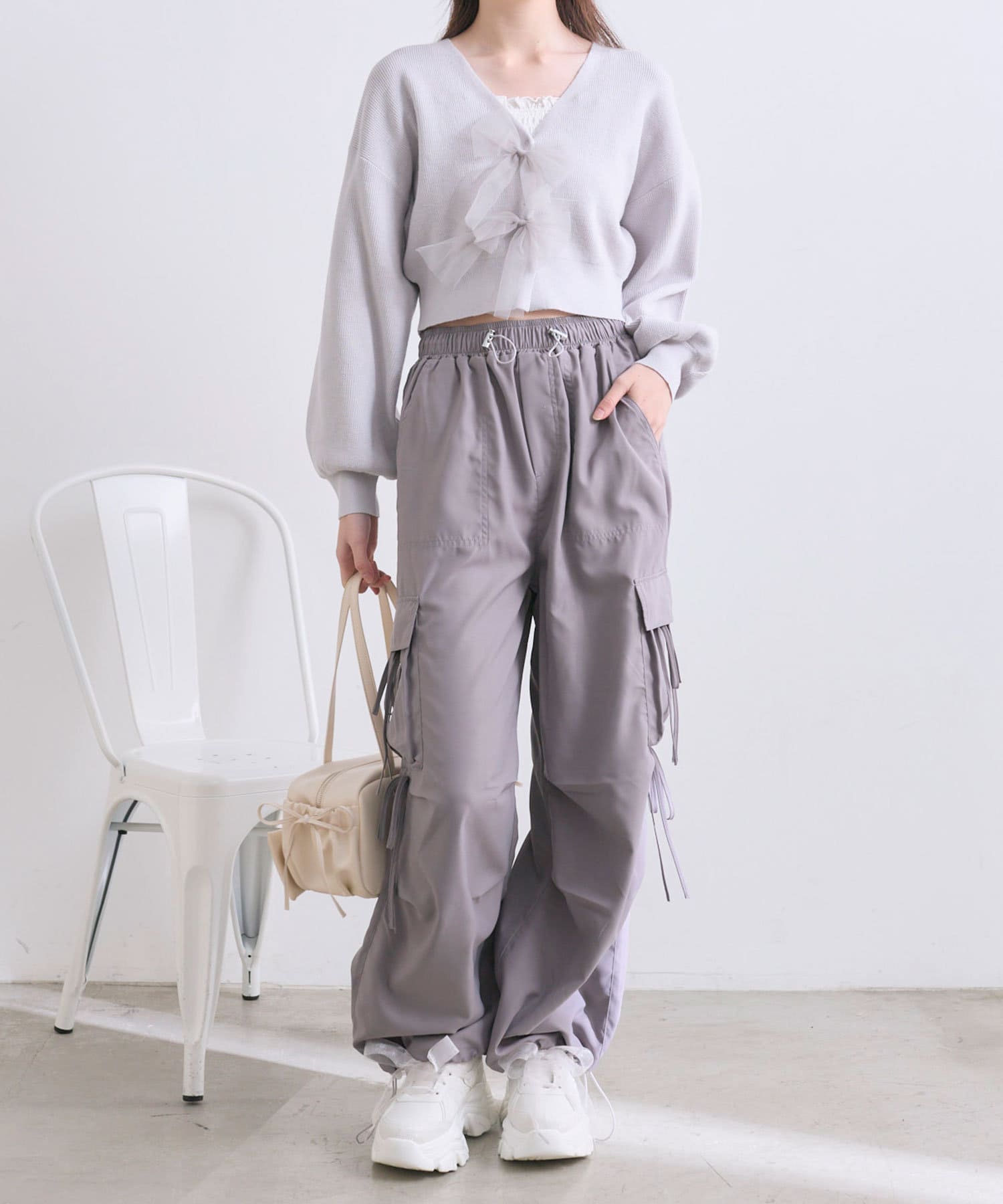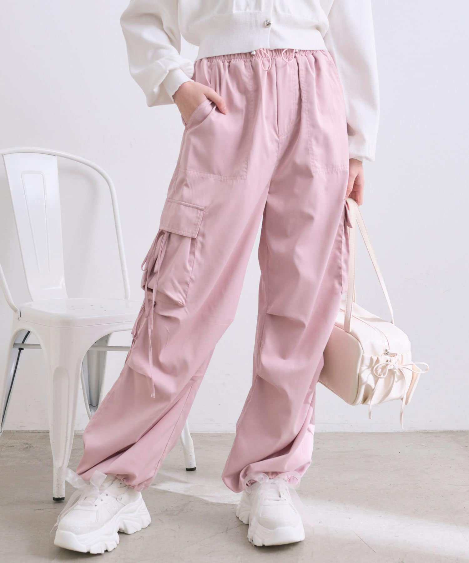 リボンたっぷりでガーリーに着こなせるカーゴパンツ