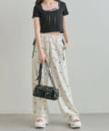 ・白のリボンと繊細なフリル、天使の羽がデザインされたタグが甘さをプラスする、ディティールまでこだわったスウェットパンツ。