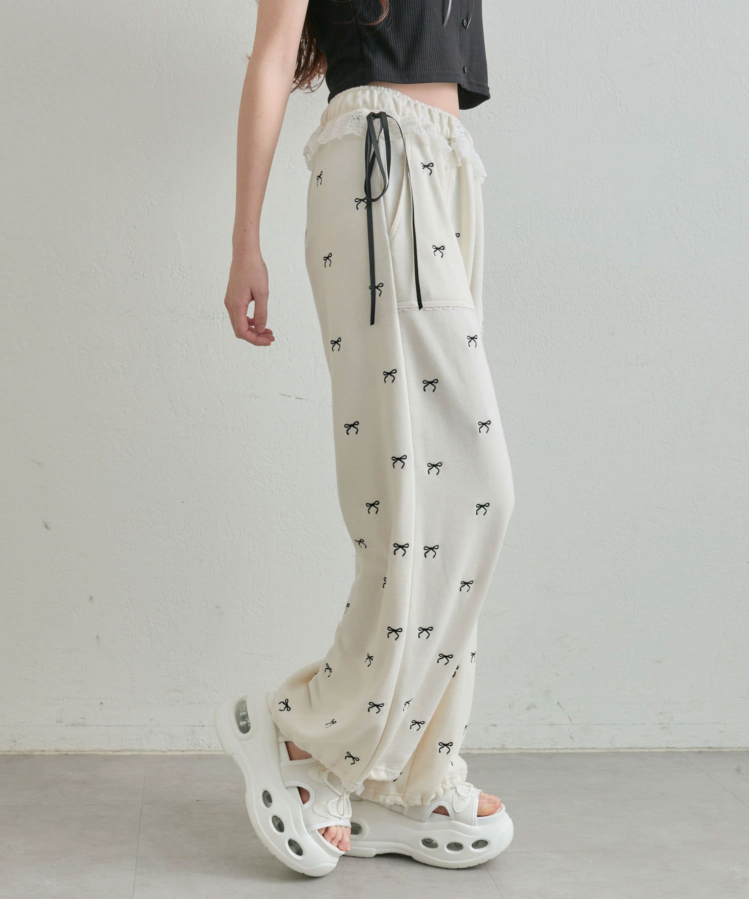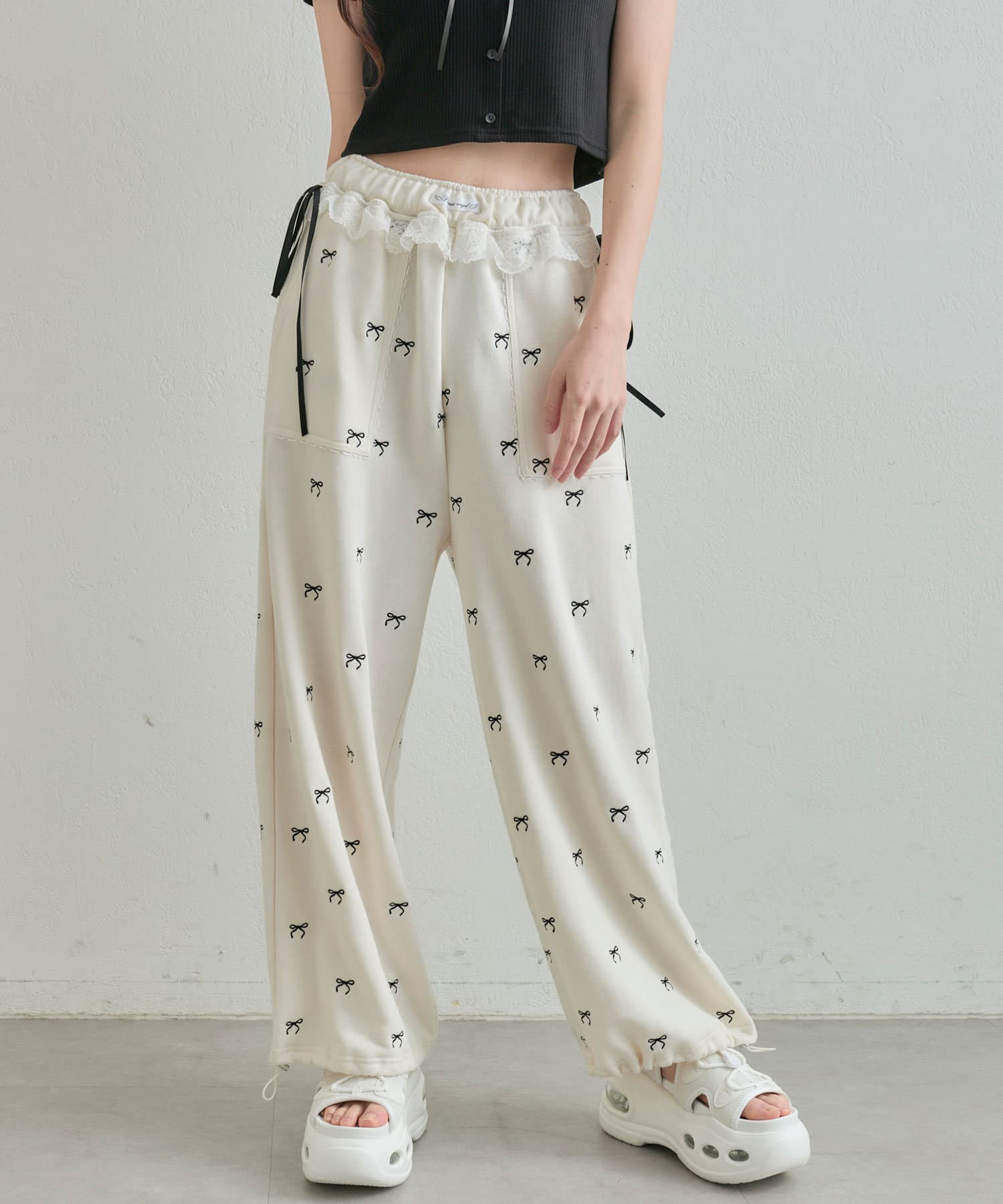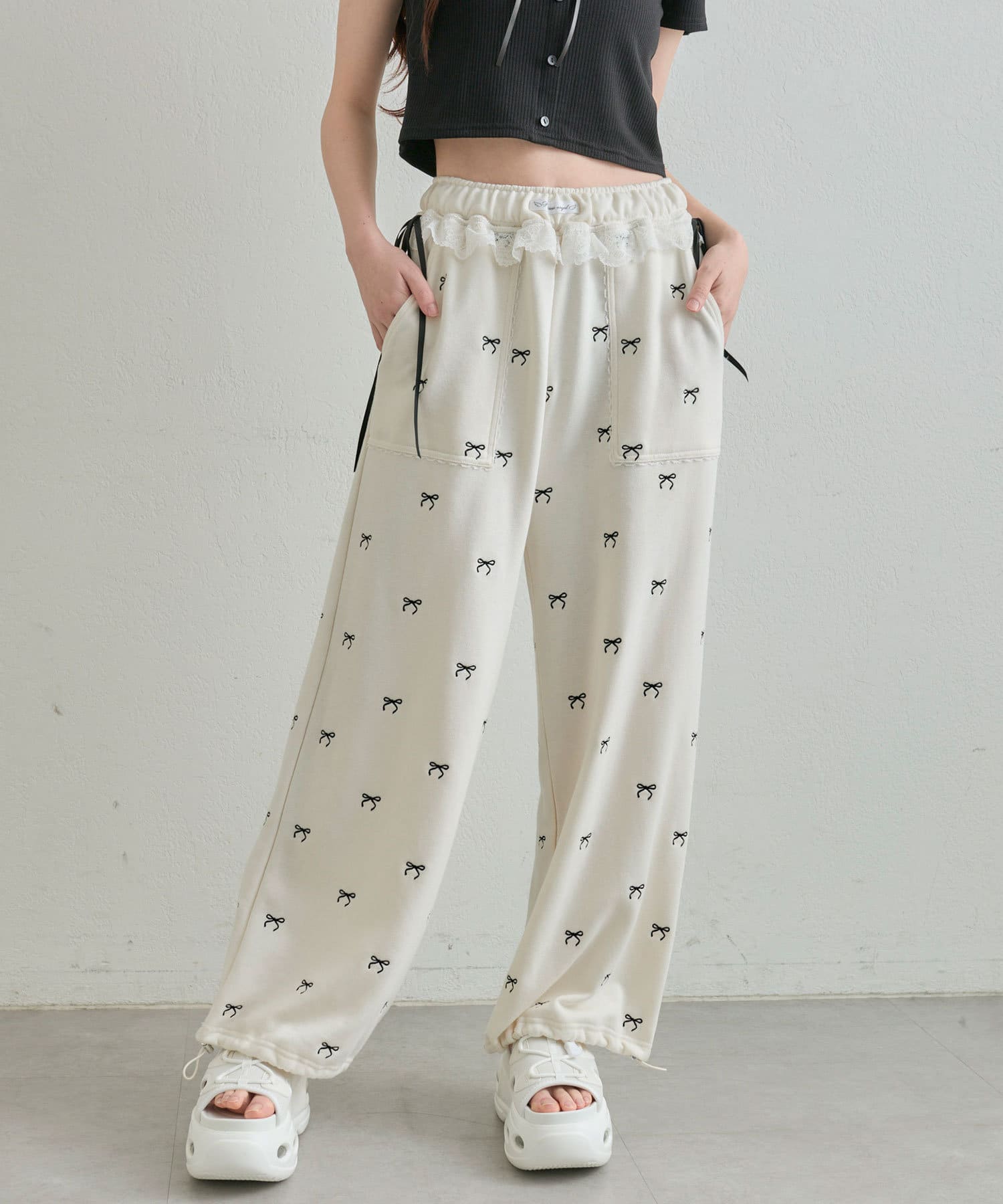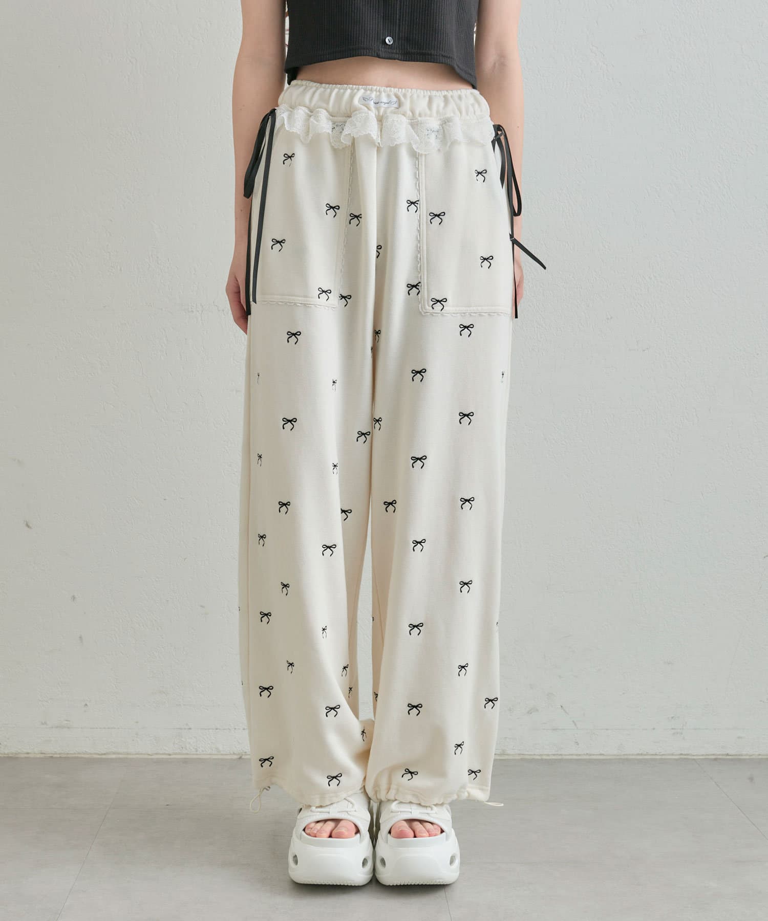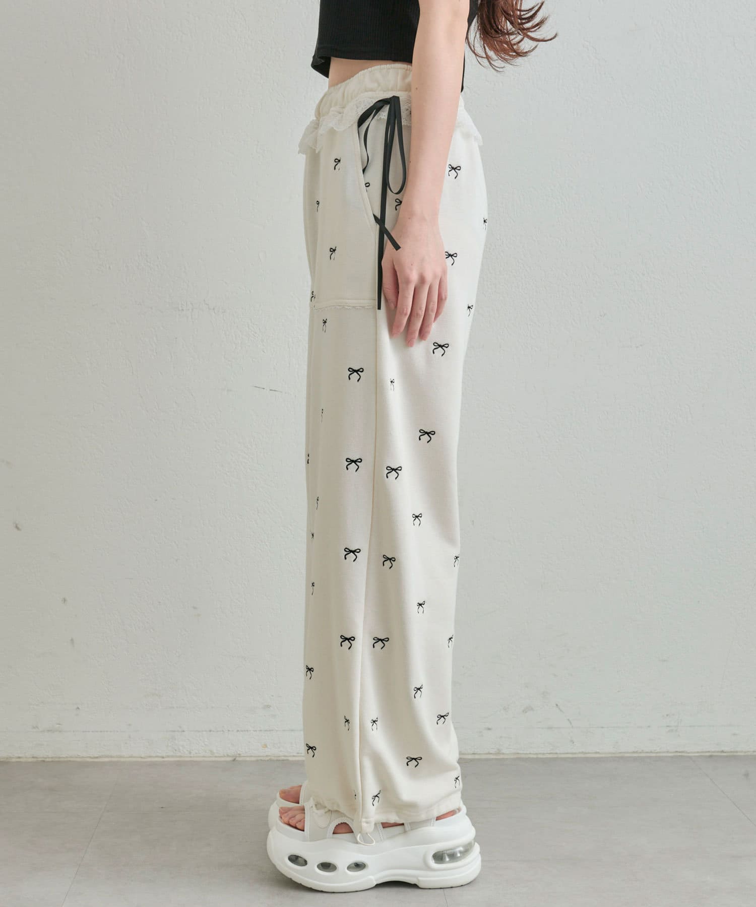【SNSで話題の!】リボン柄ウエストフリルスウェットパンツ