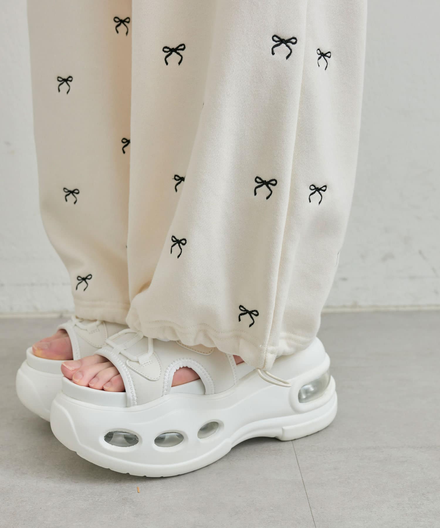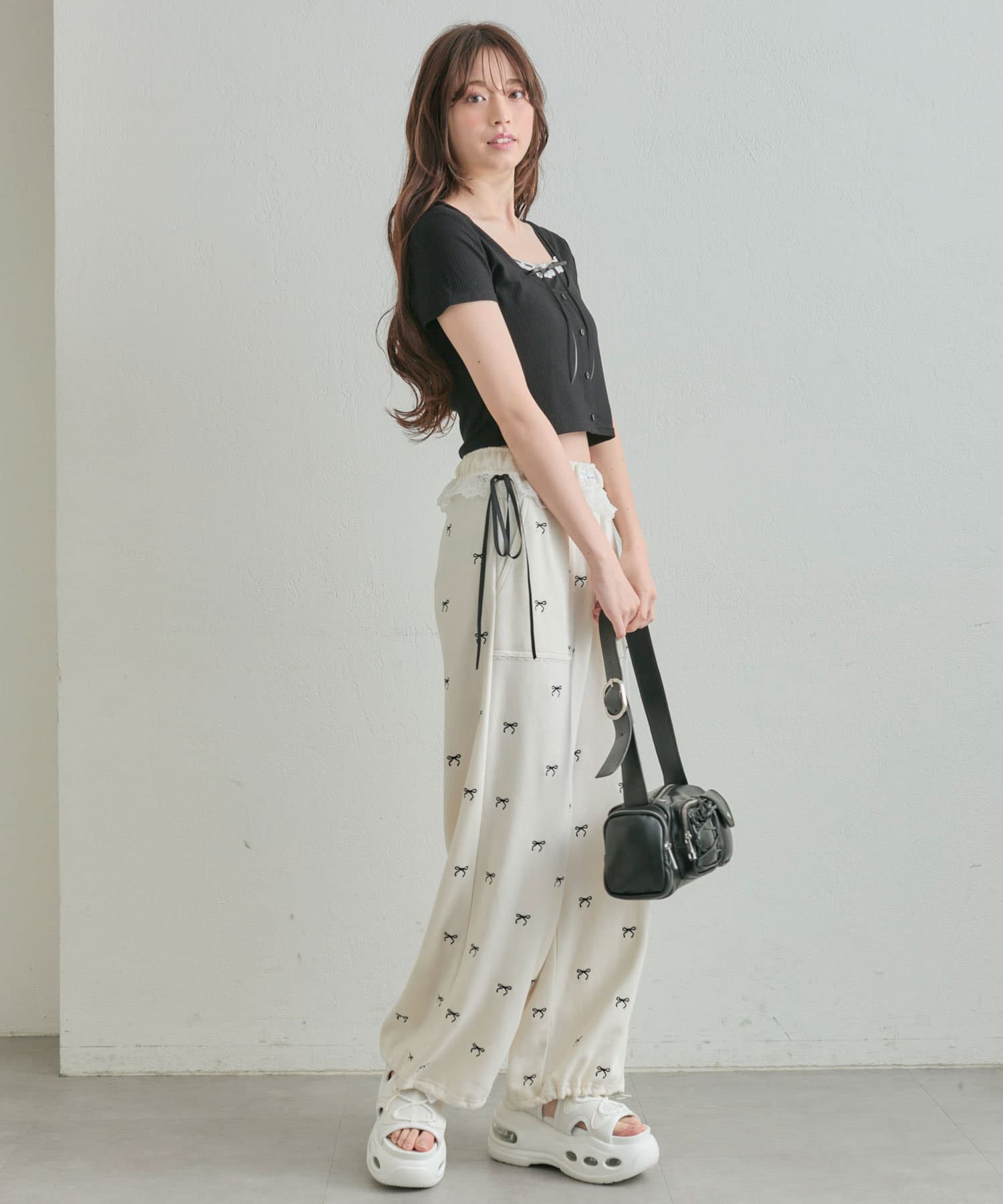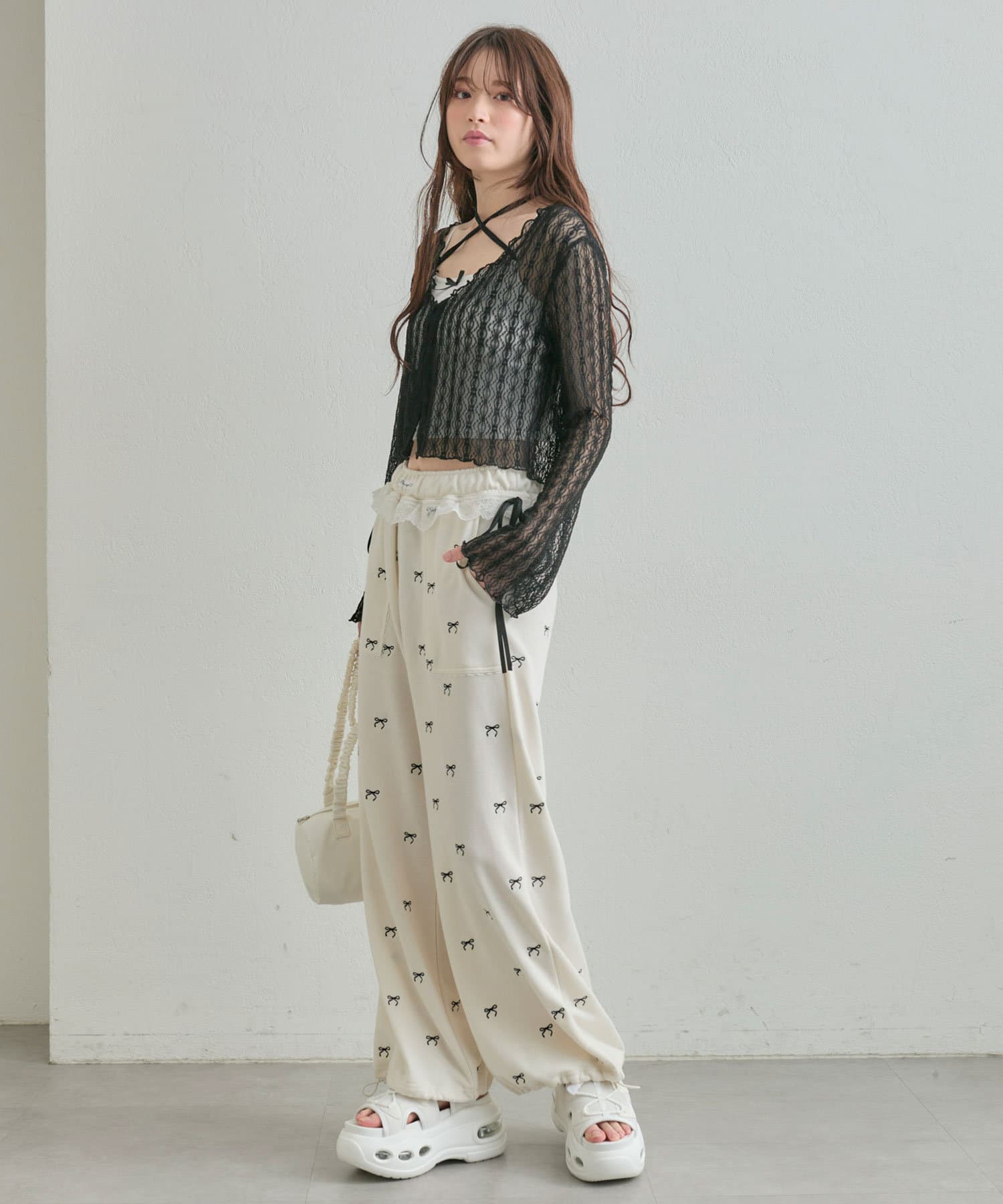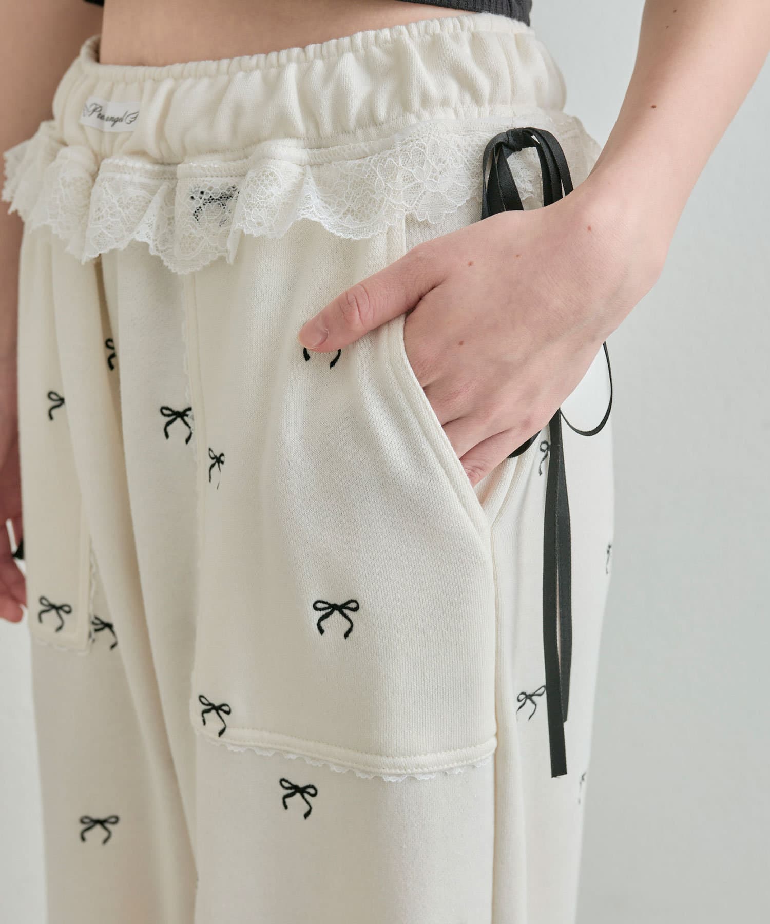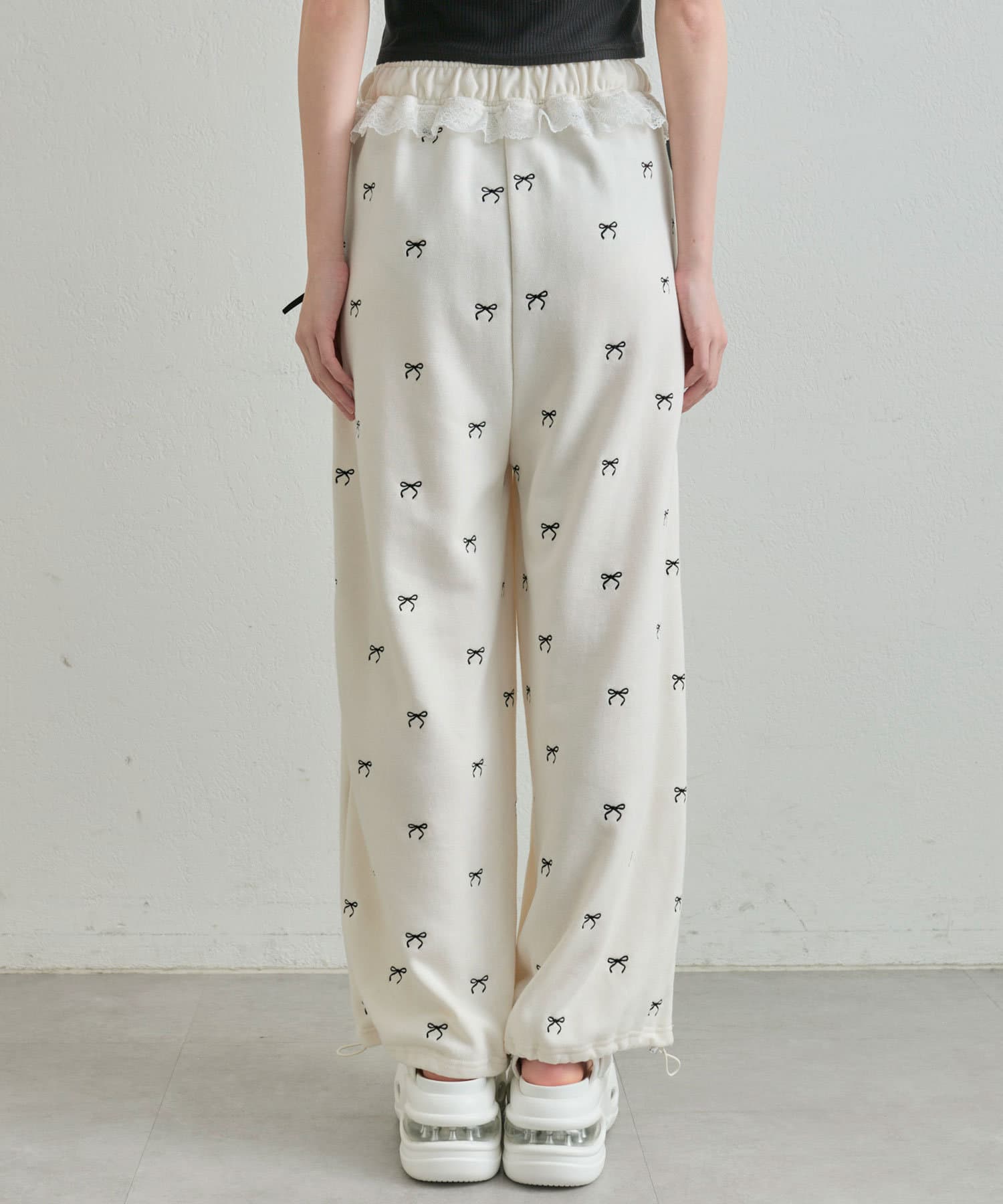 【SNSで話題の!】リボン柄ウエストフリルスウェットパンツ