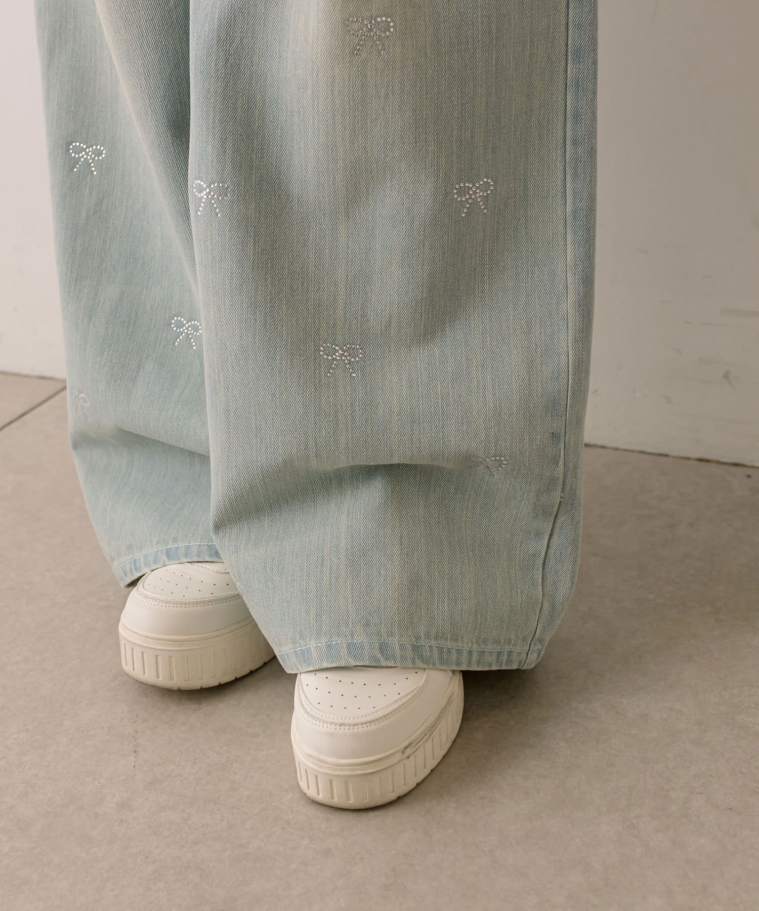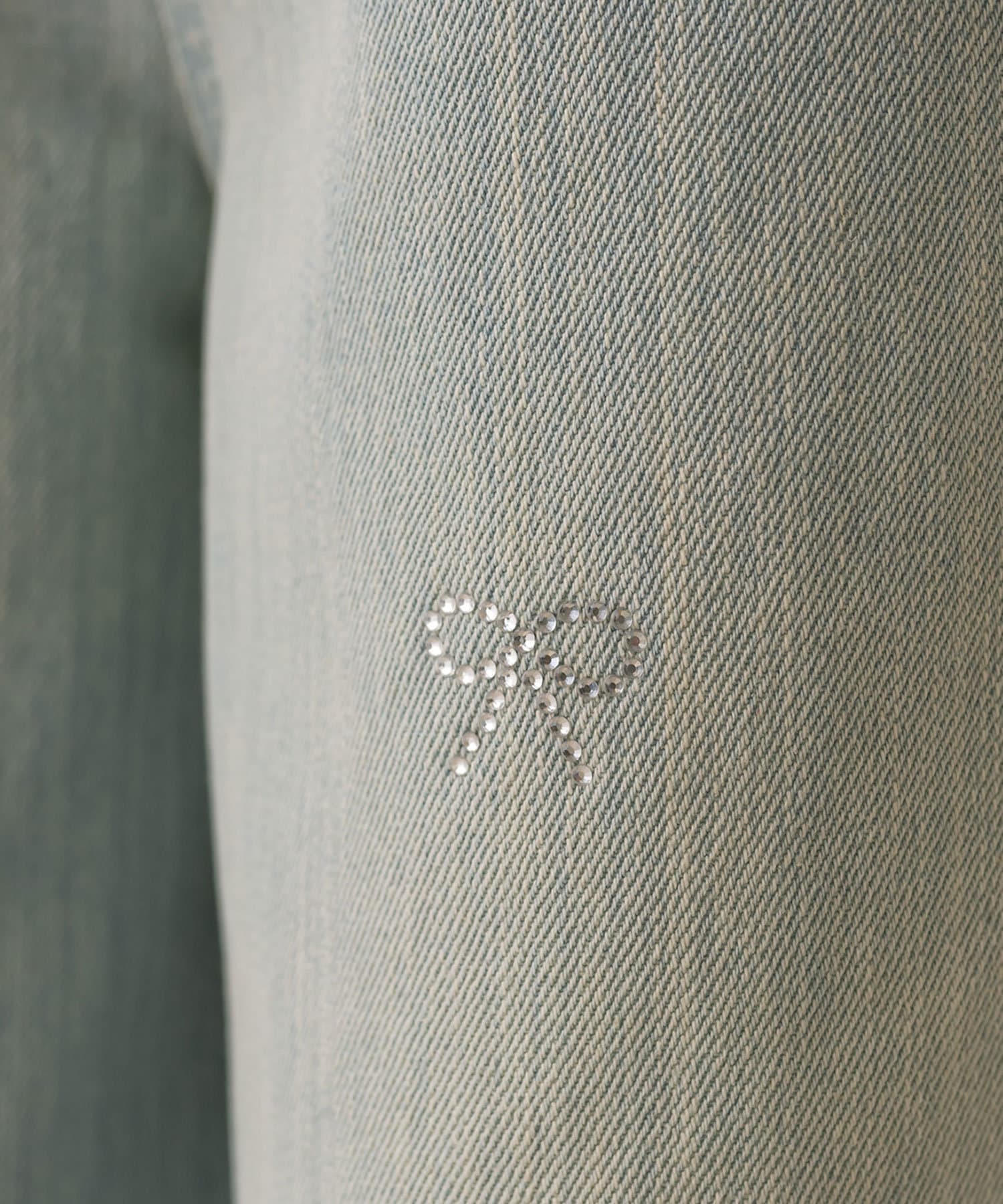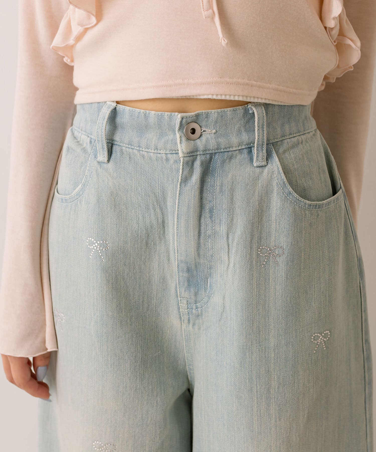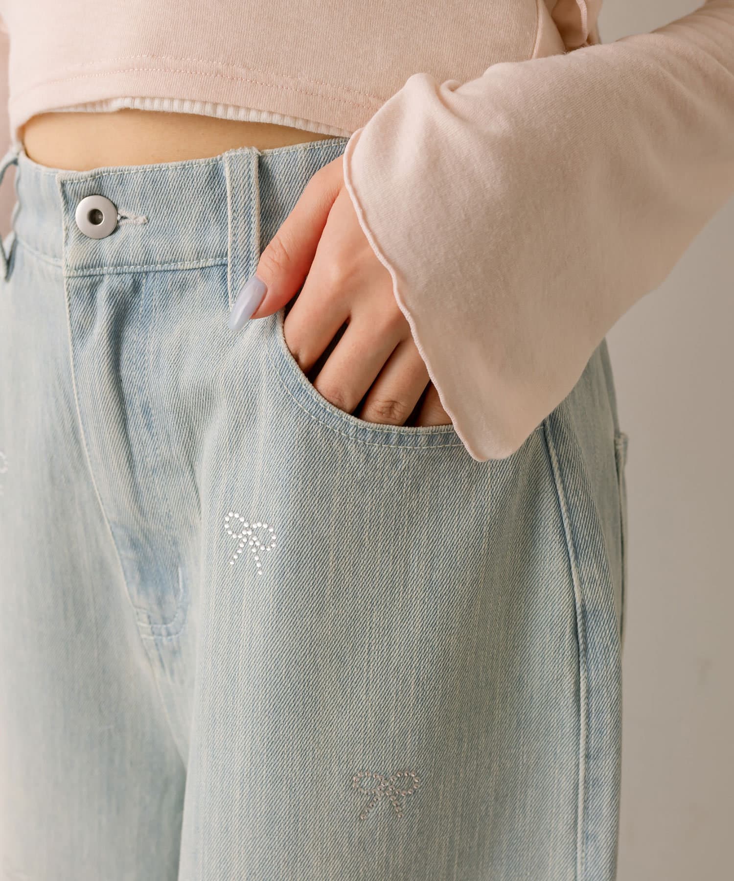 【S/Mサイズ展開】キラキラリボンデニムパンツ