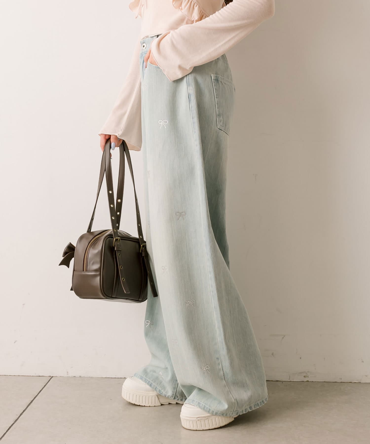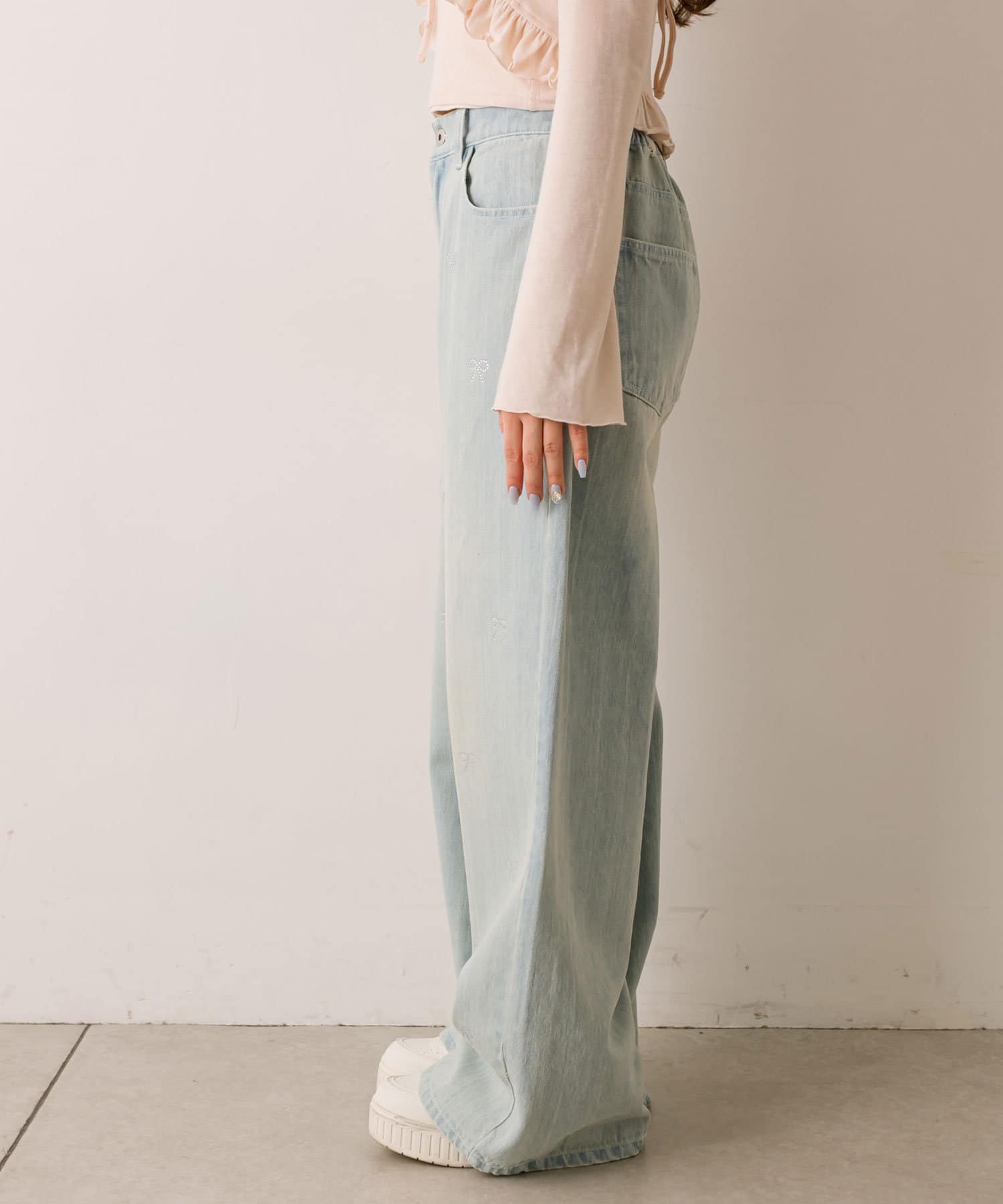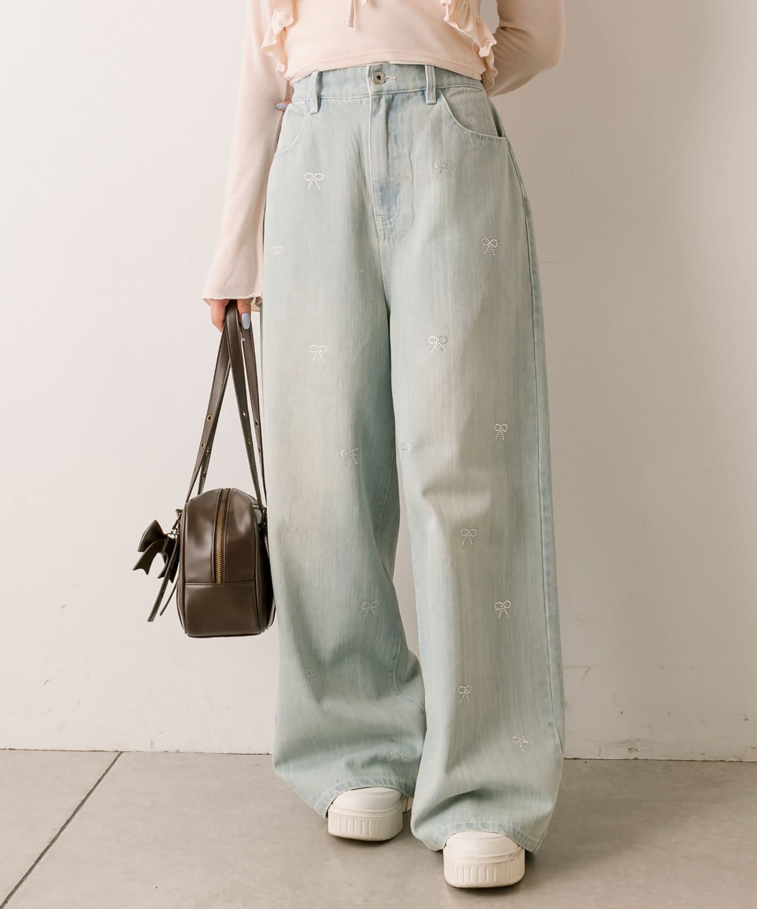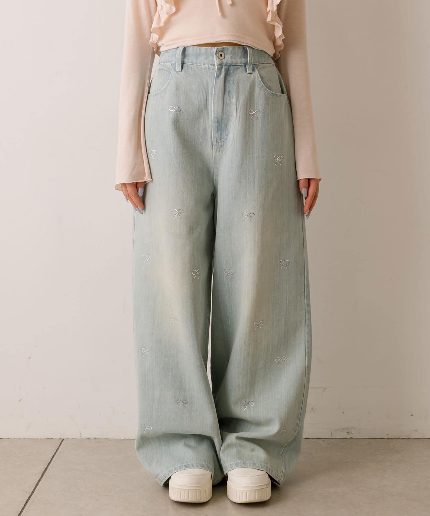 【S/Mサイズ展開】キラキラリボンデニムパンツ
