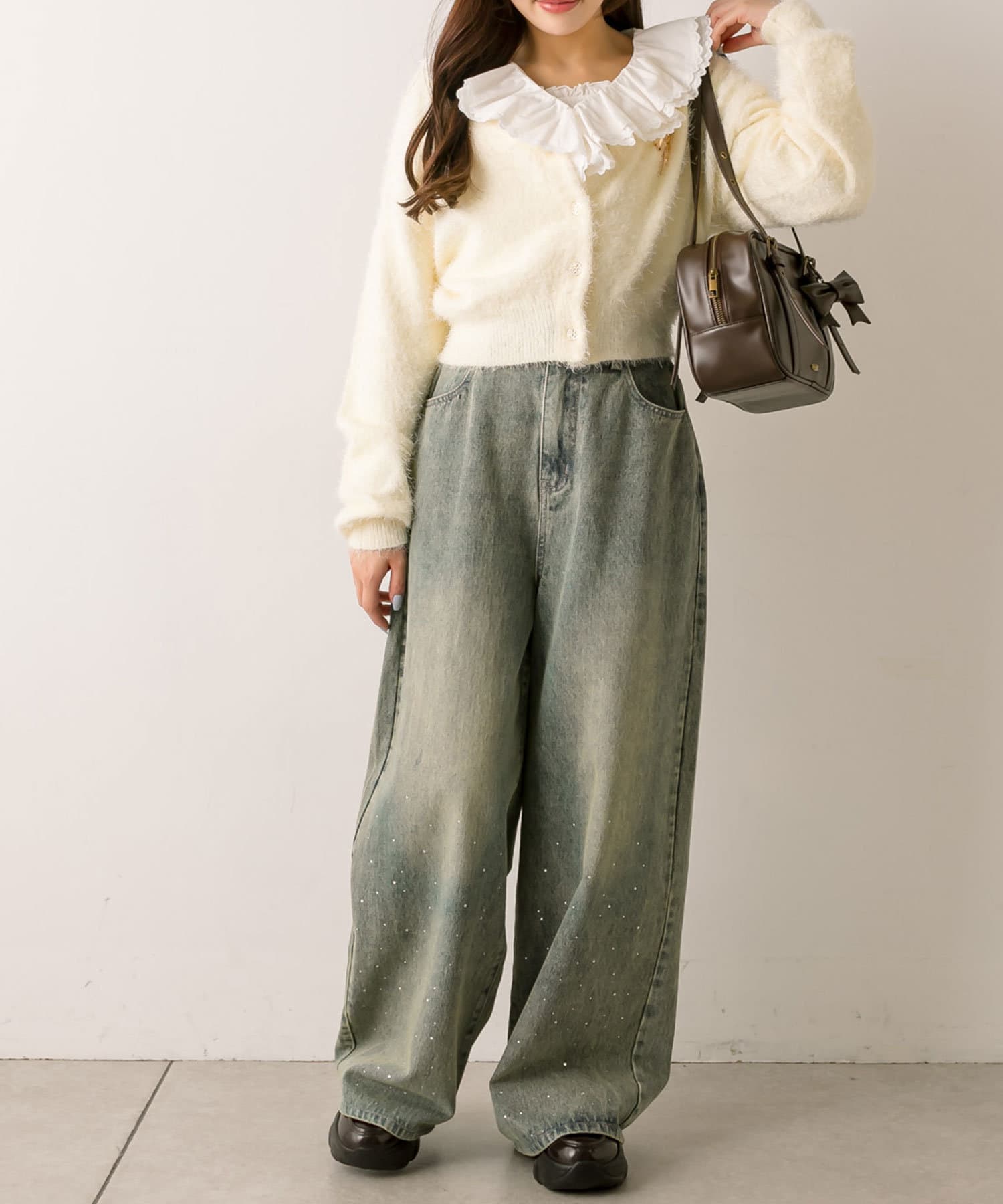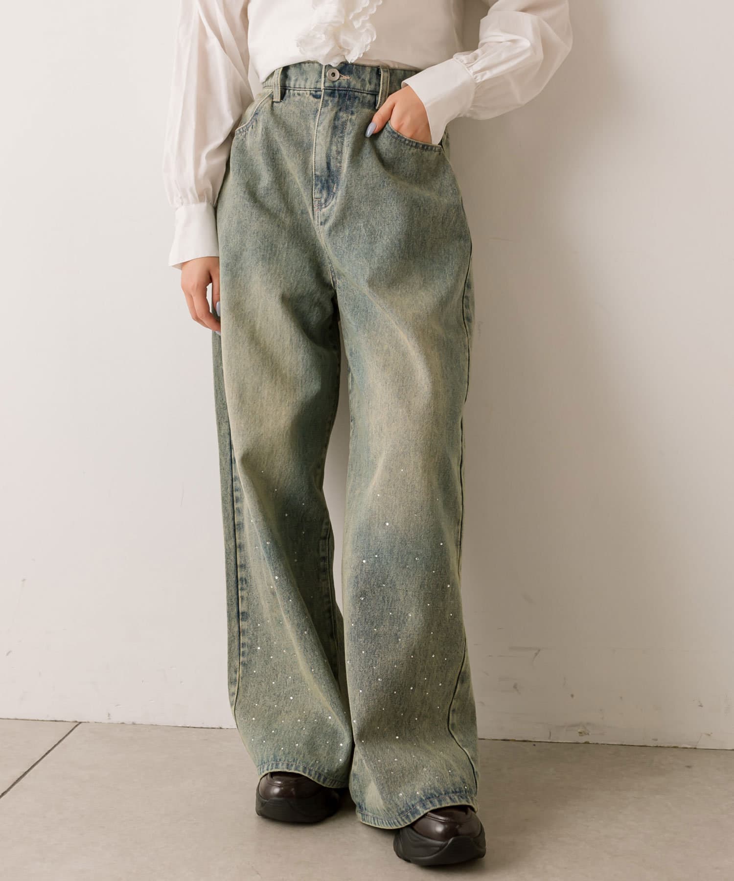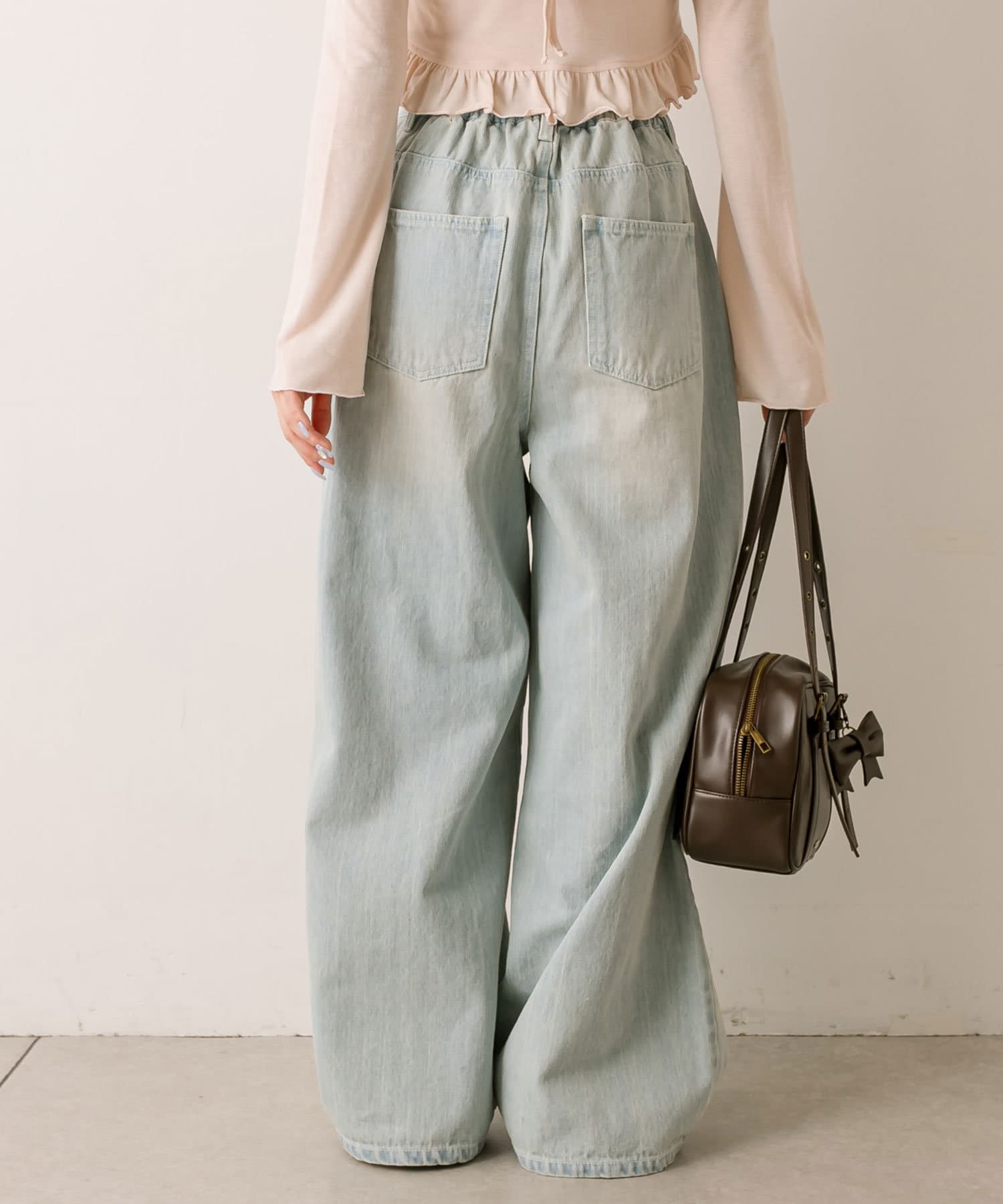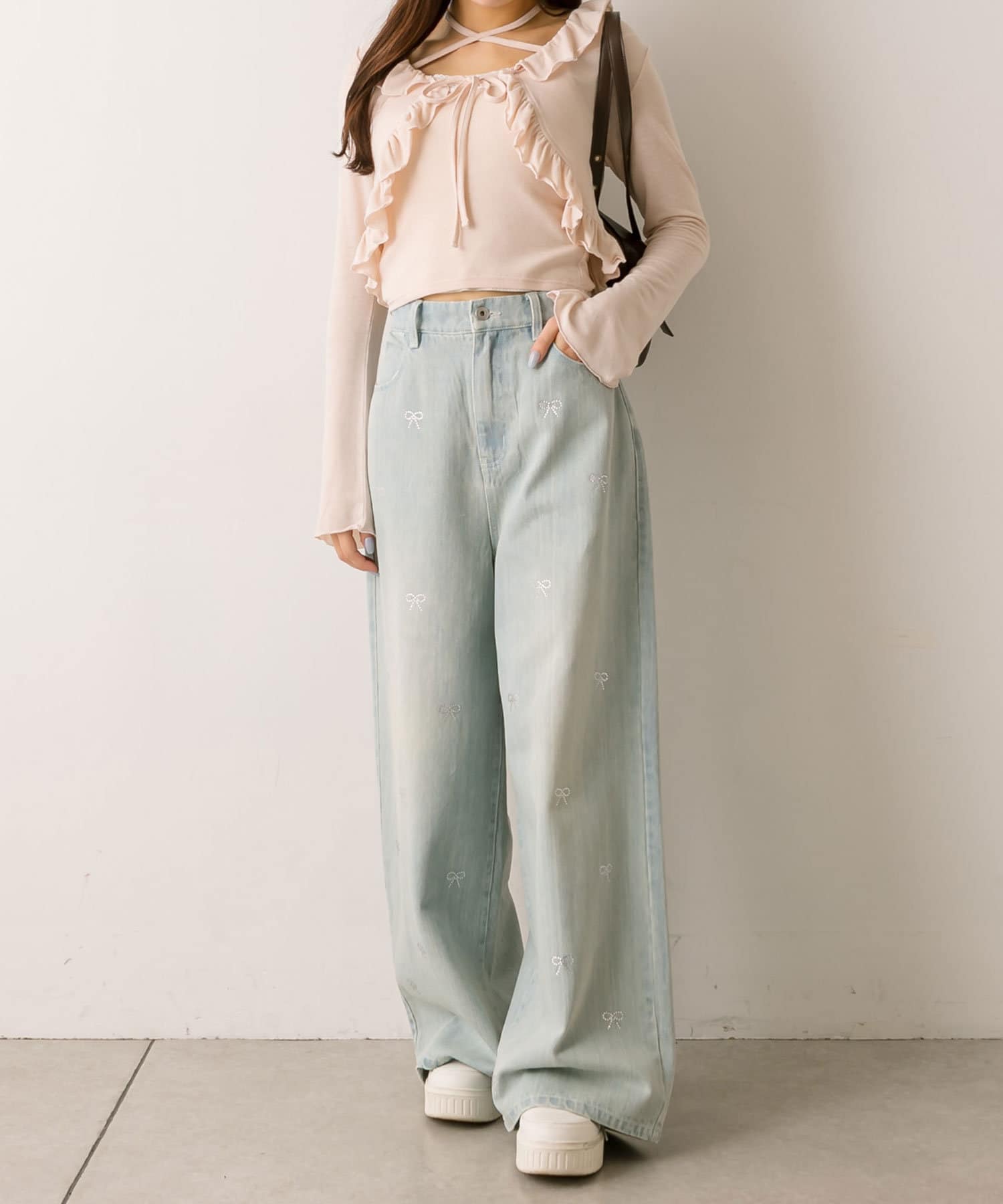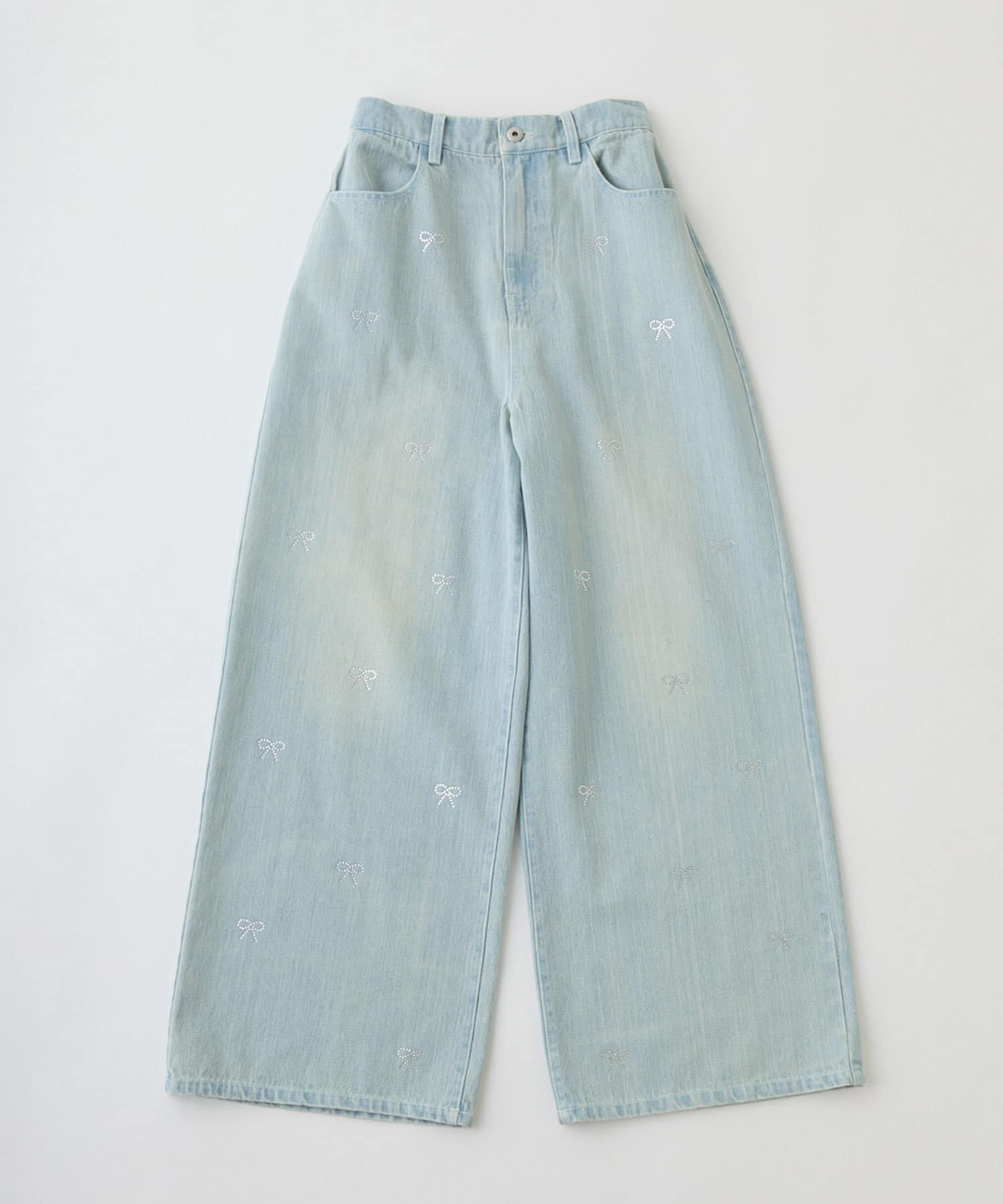 【S/Mサイズ展開】キラキラリボンデニムパンツ