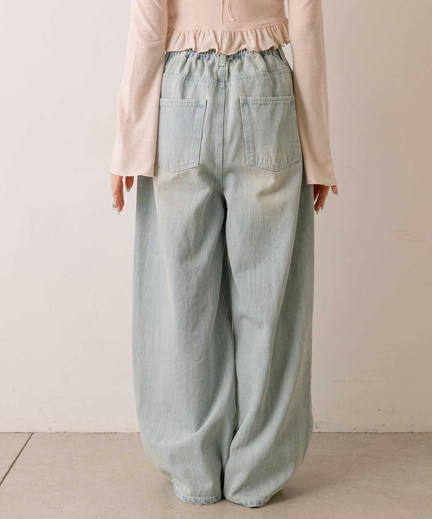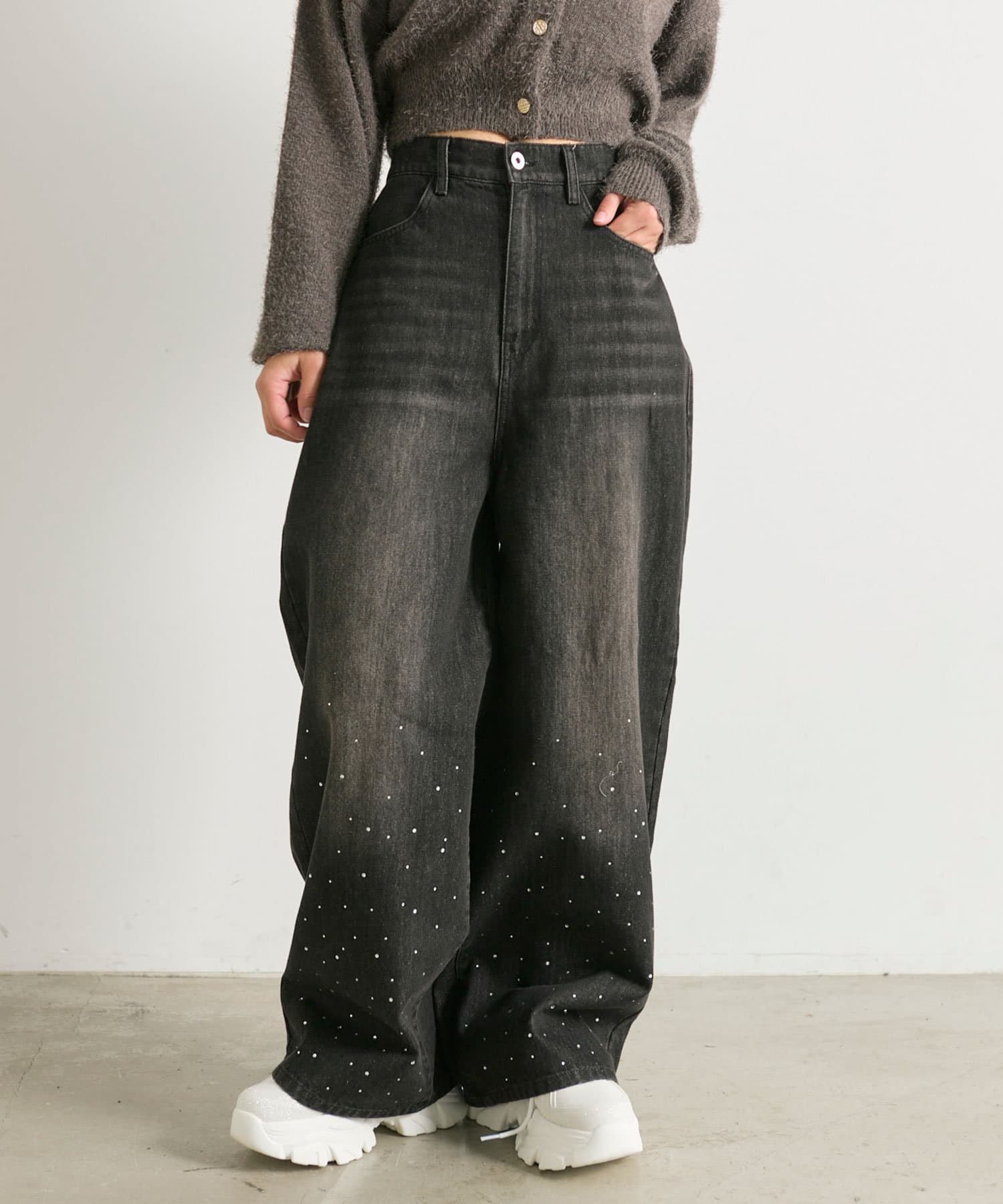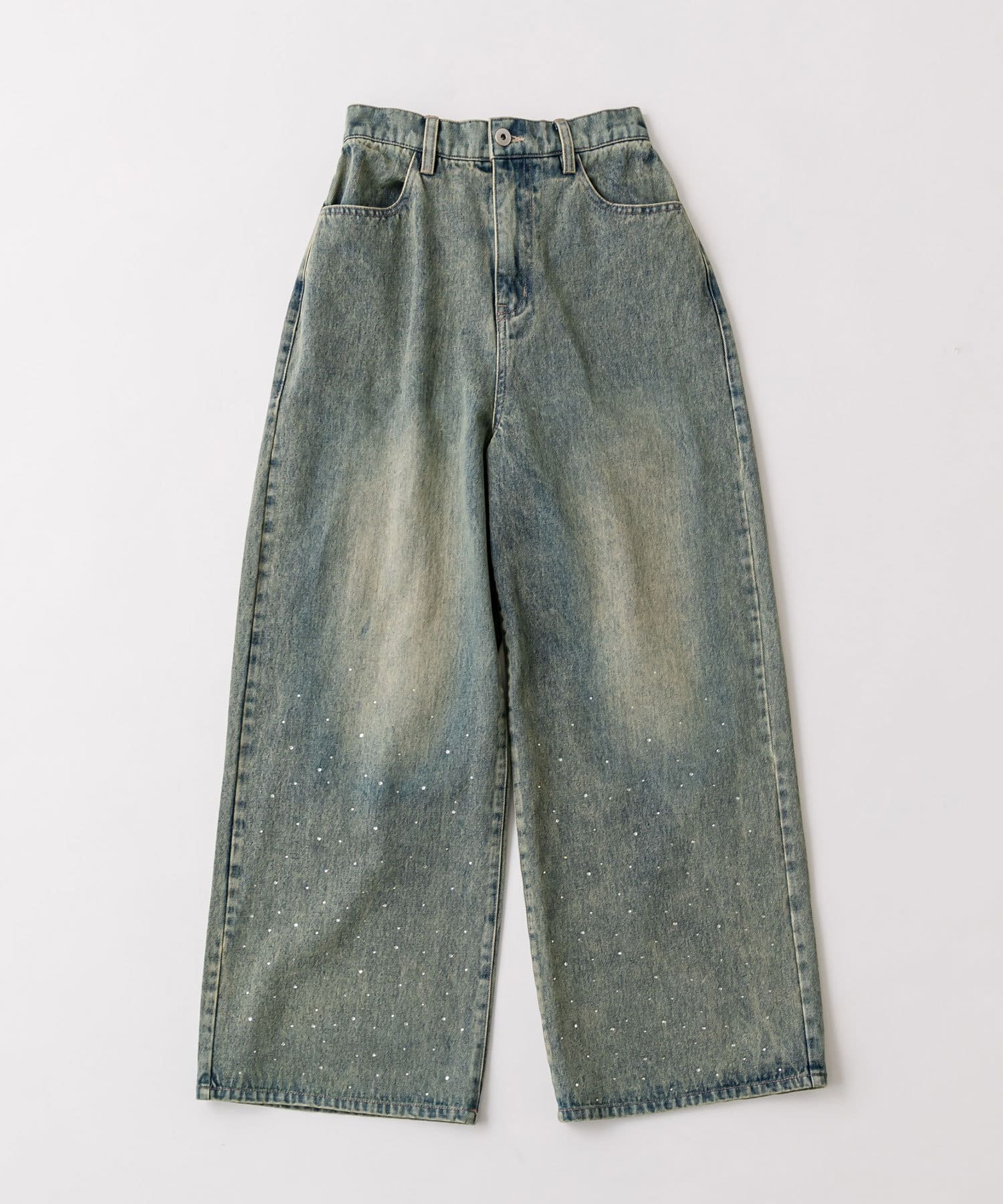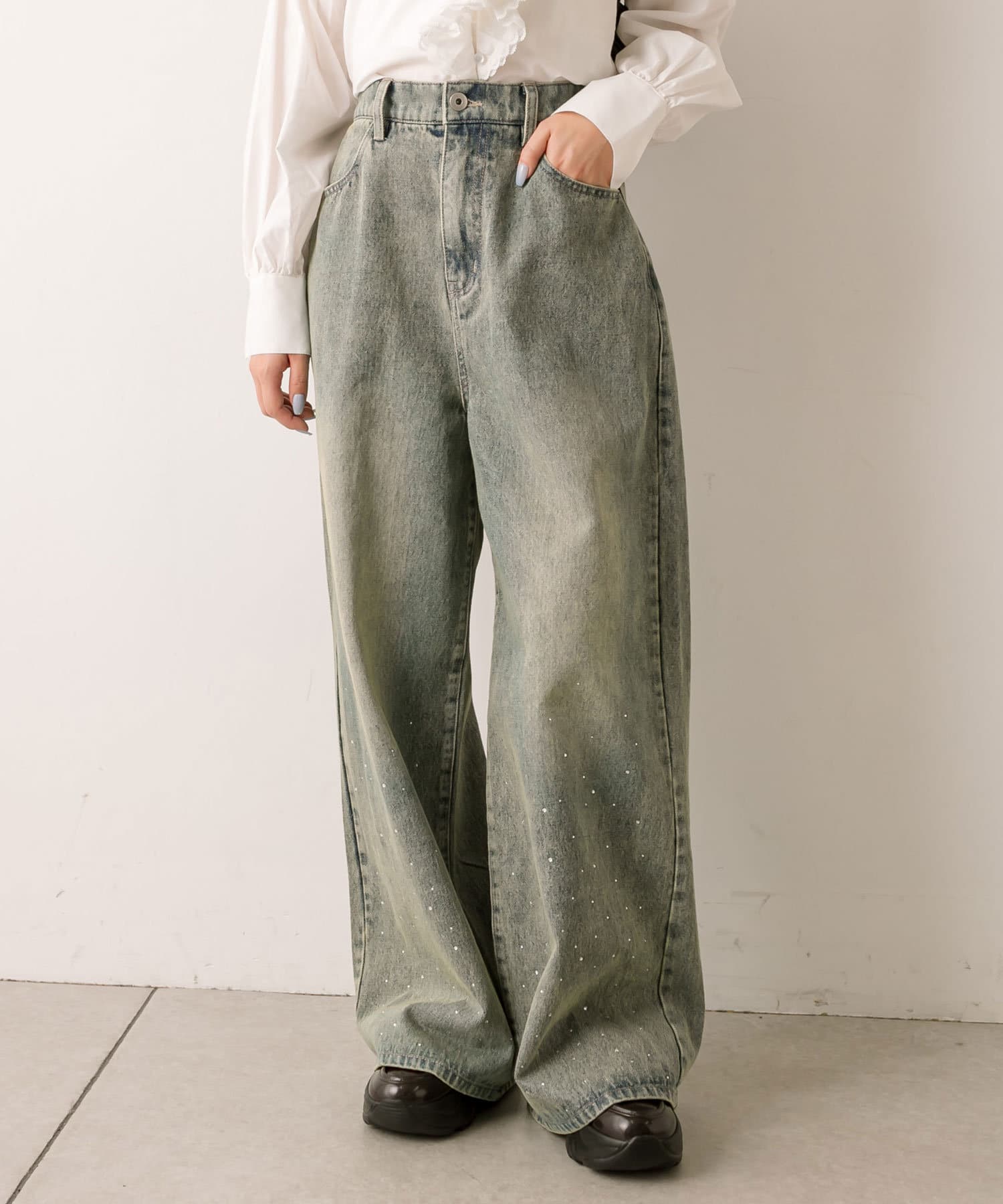 【S/Mサイズ展開】キラキラリボンデニムパンツ