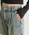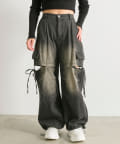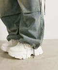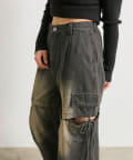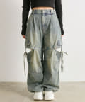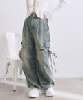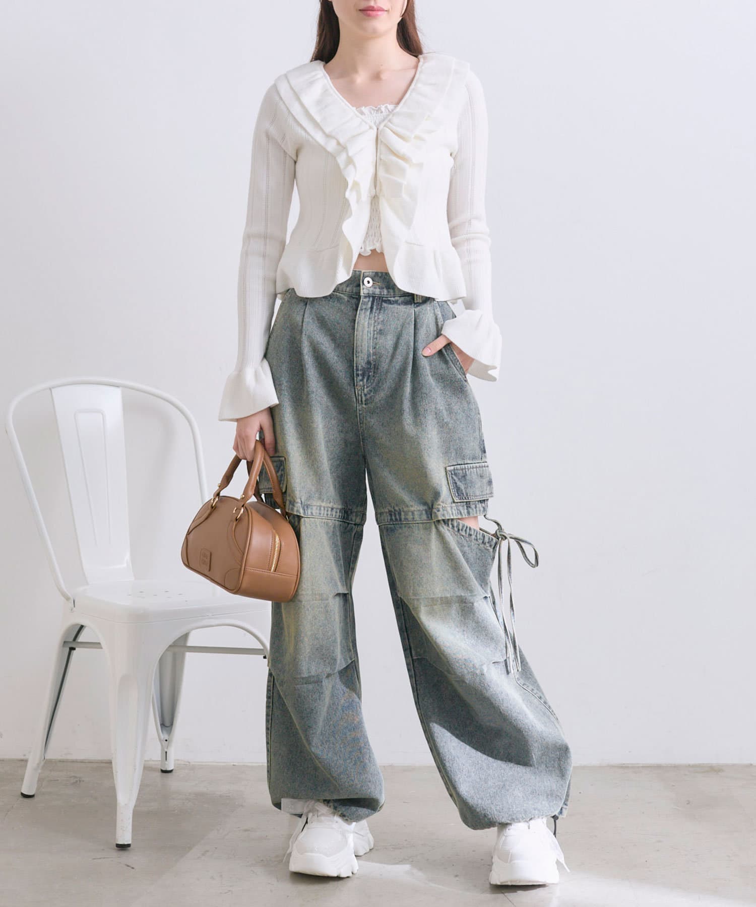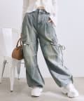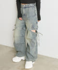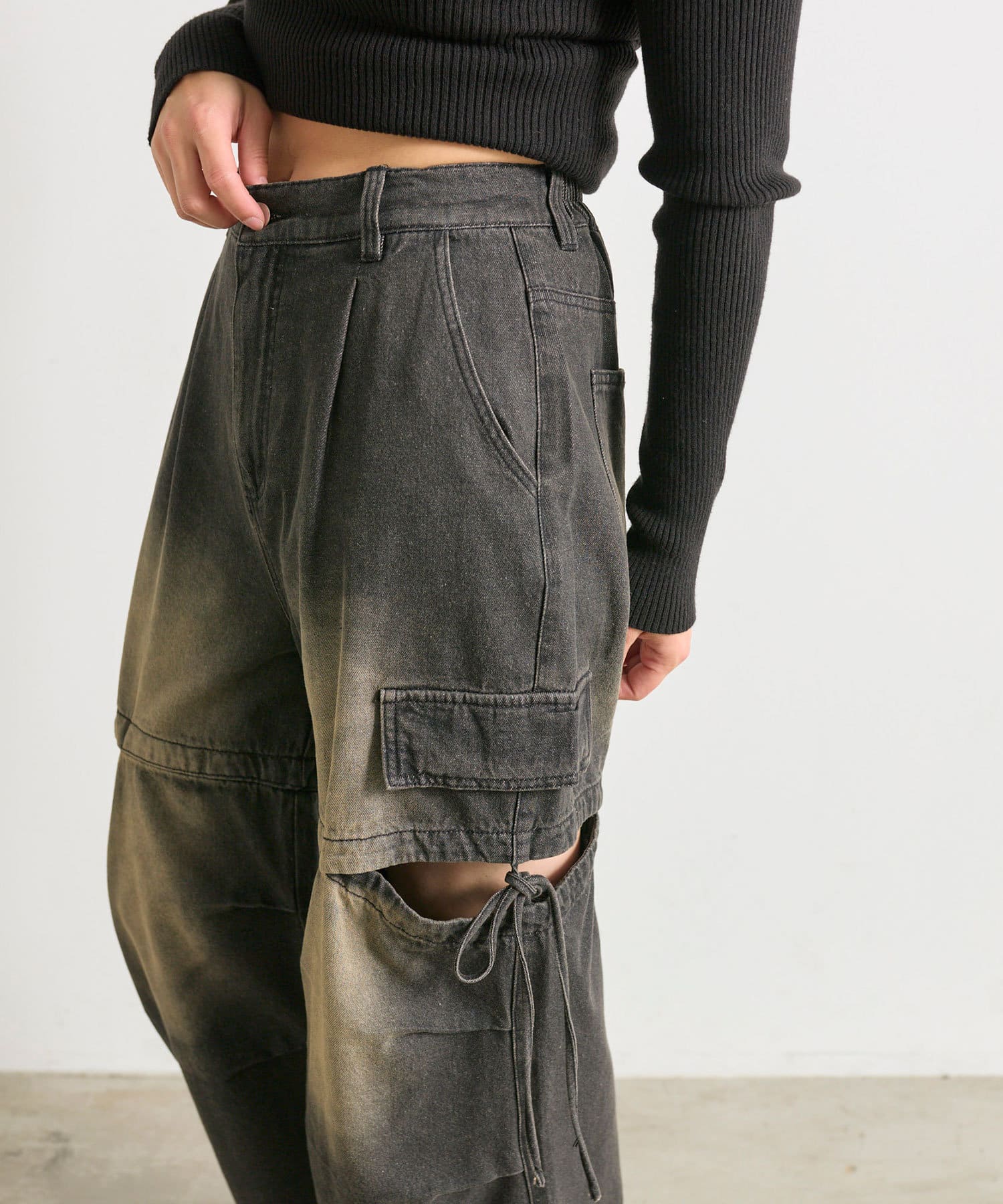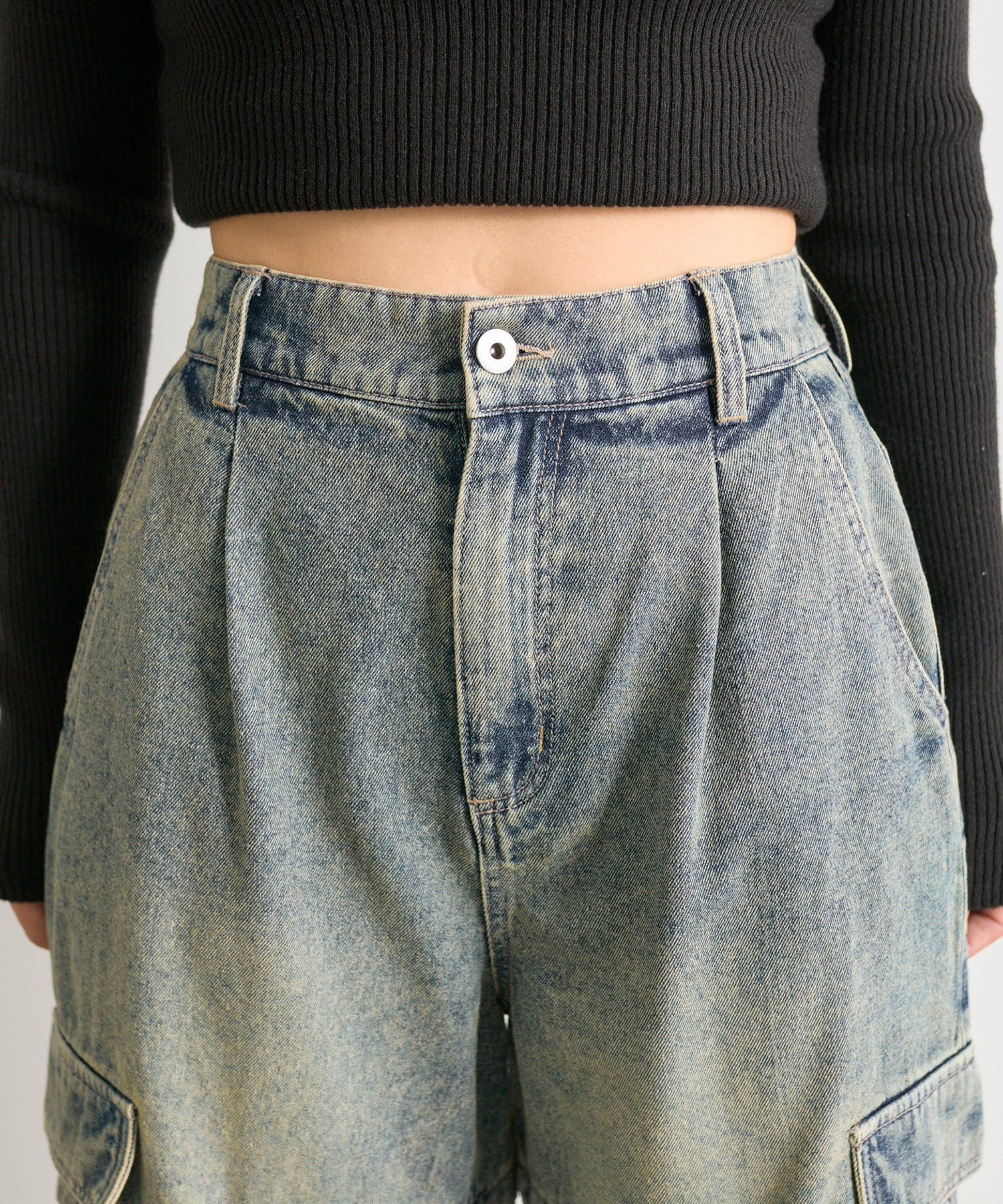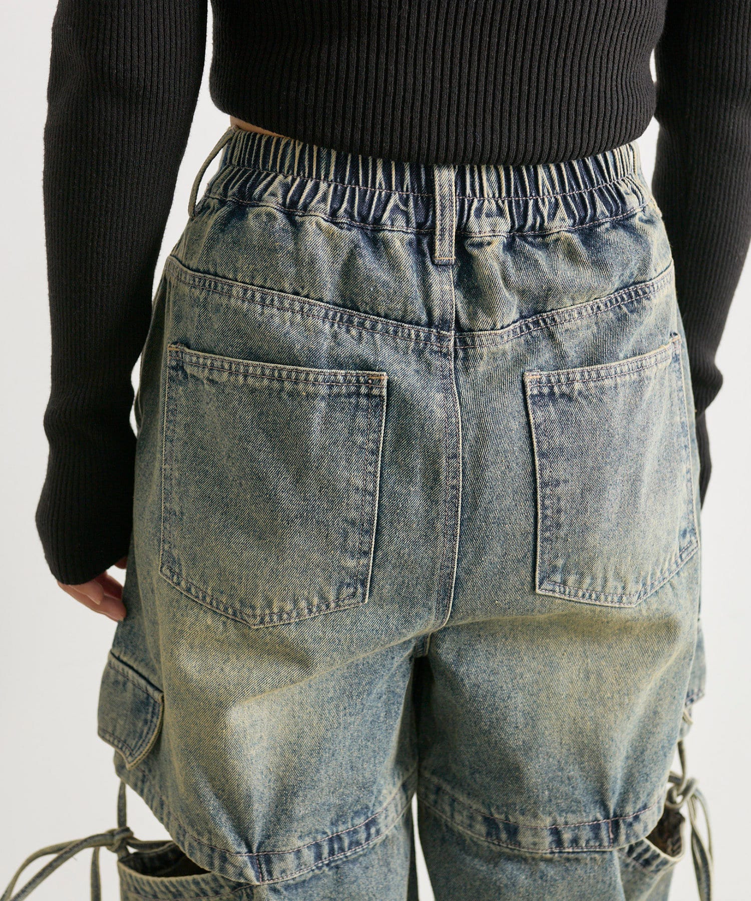 サイドの肌見せがポイントのデニムカーゴパンツ