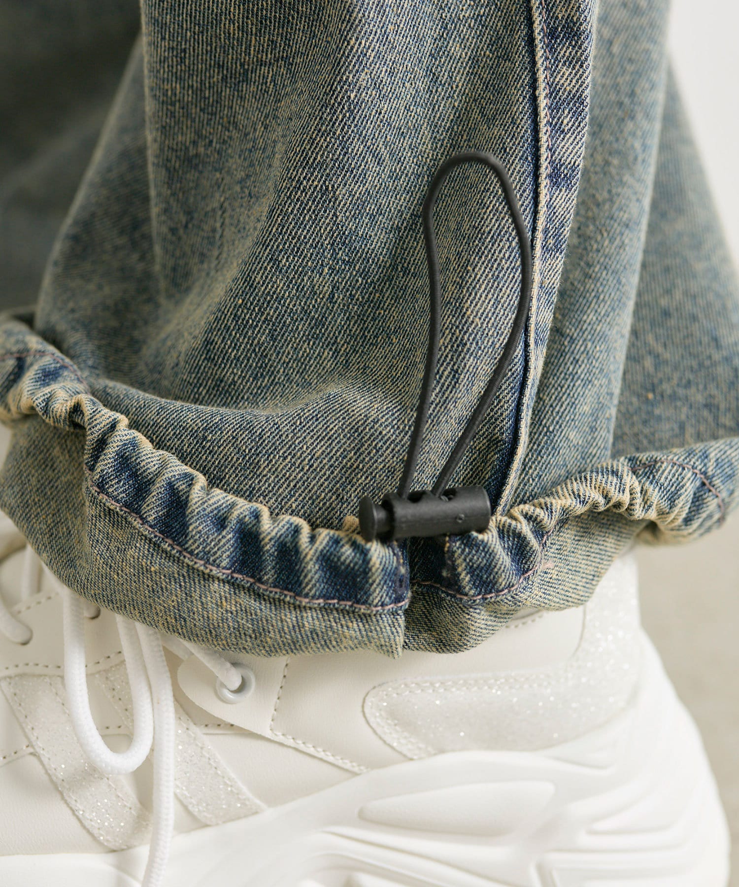 ・裾のドロストゴムで絞り具合を調節できて、丈感やシルエットをお好みで変えられます。