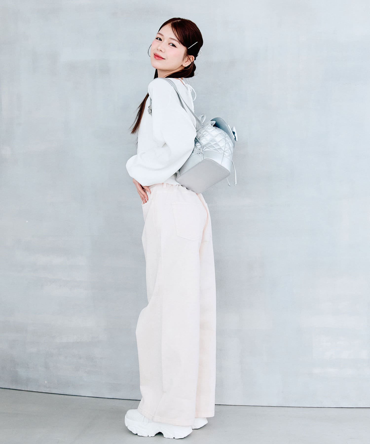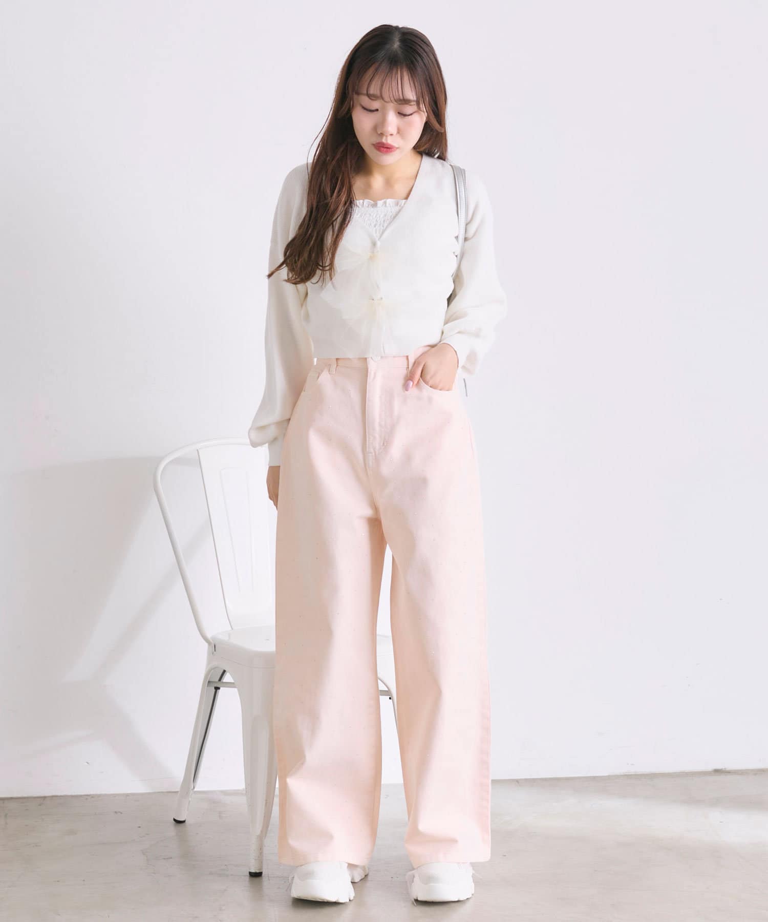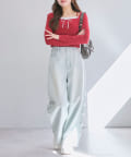 ・クロップド丈のトップスで合わせるとトレンド感のある着こなしになります。