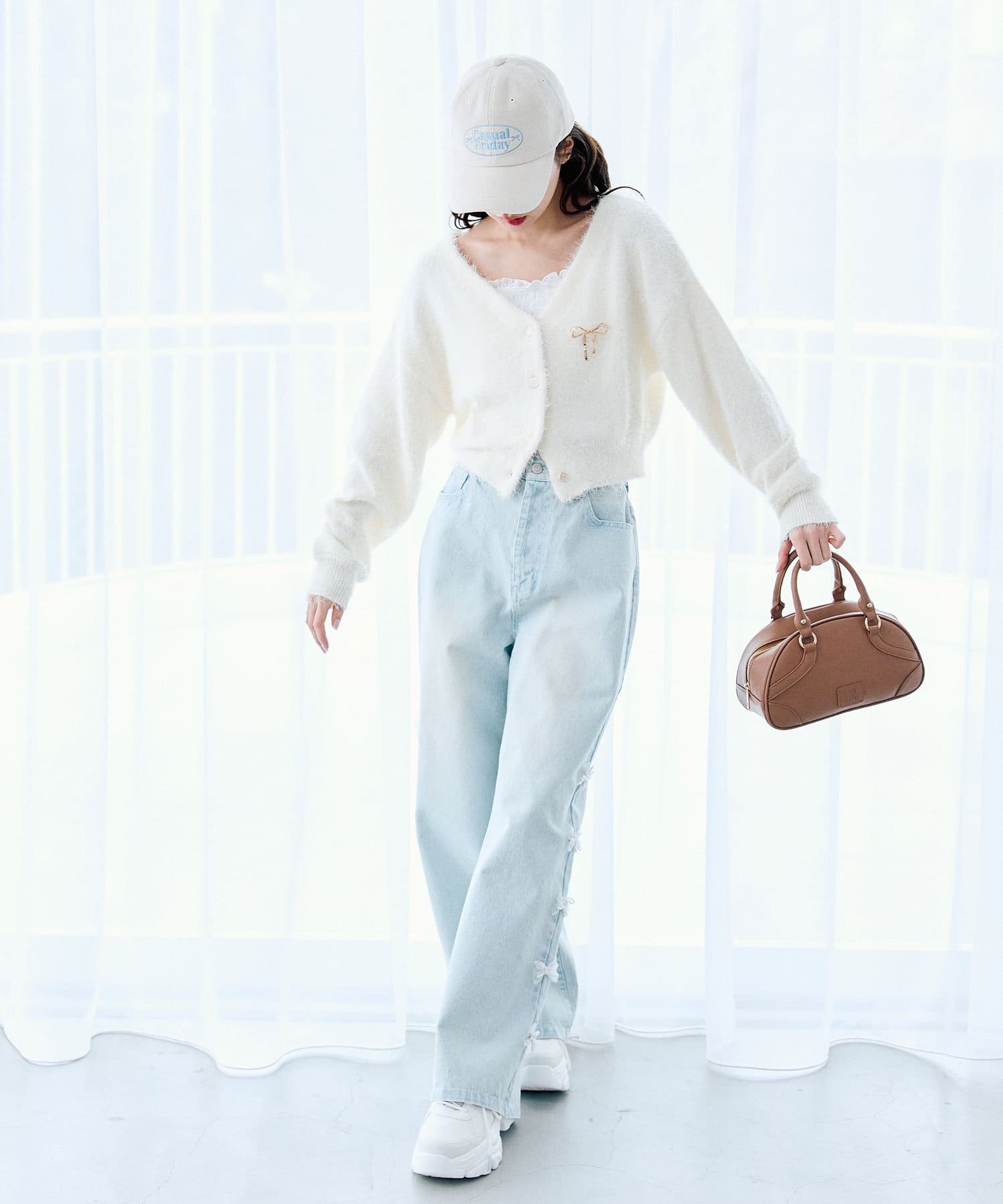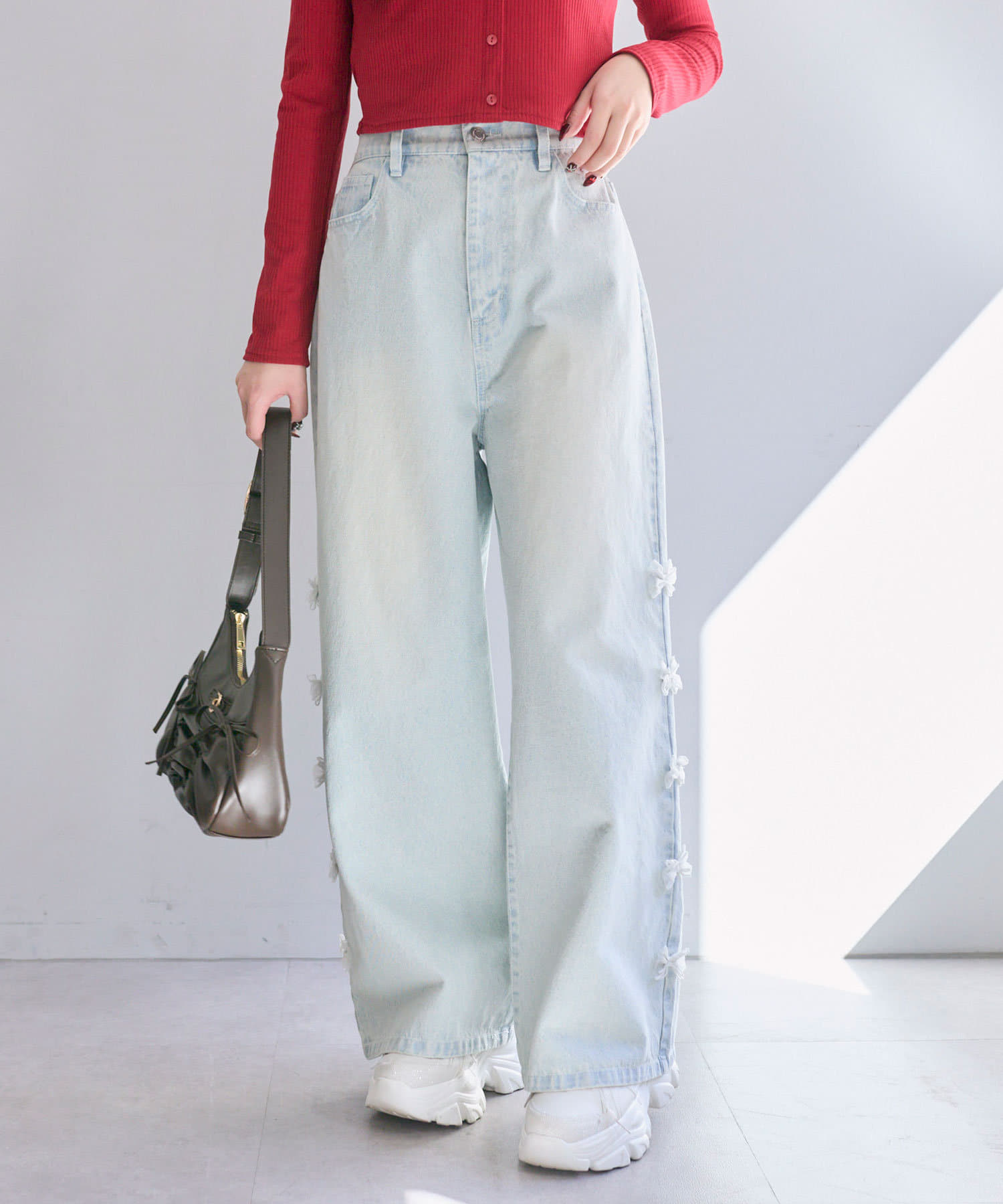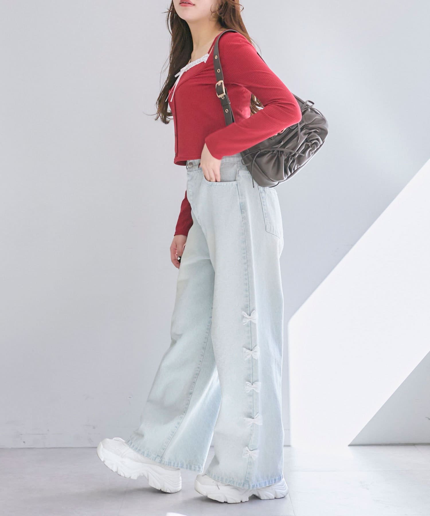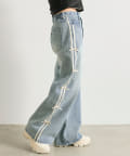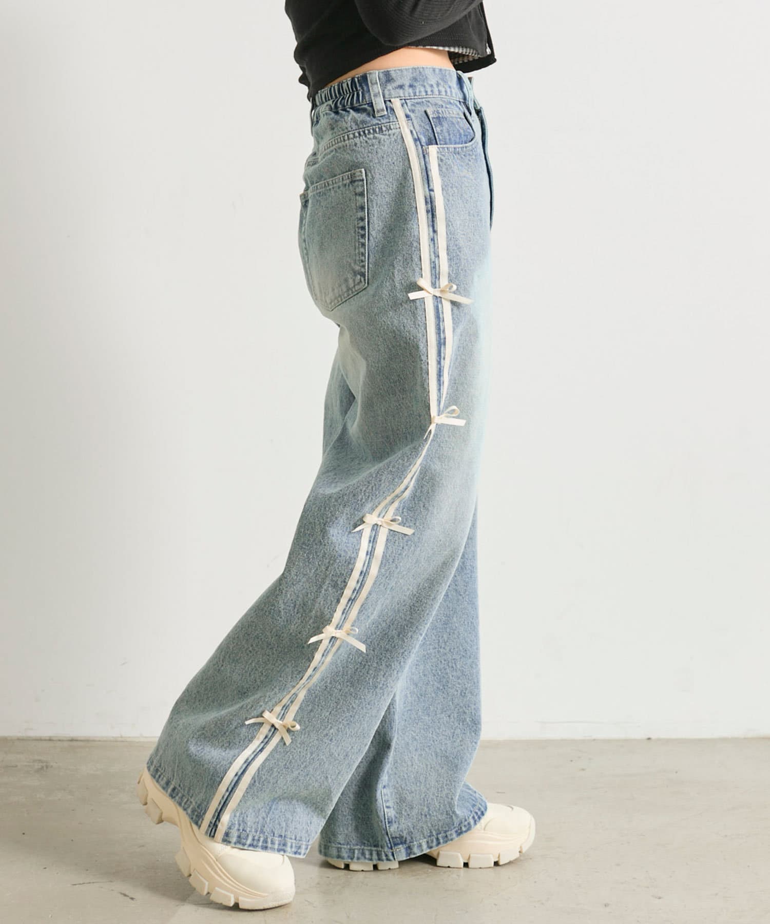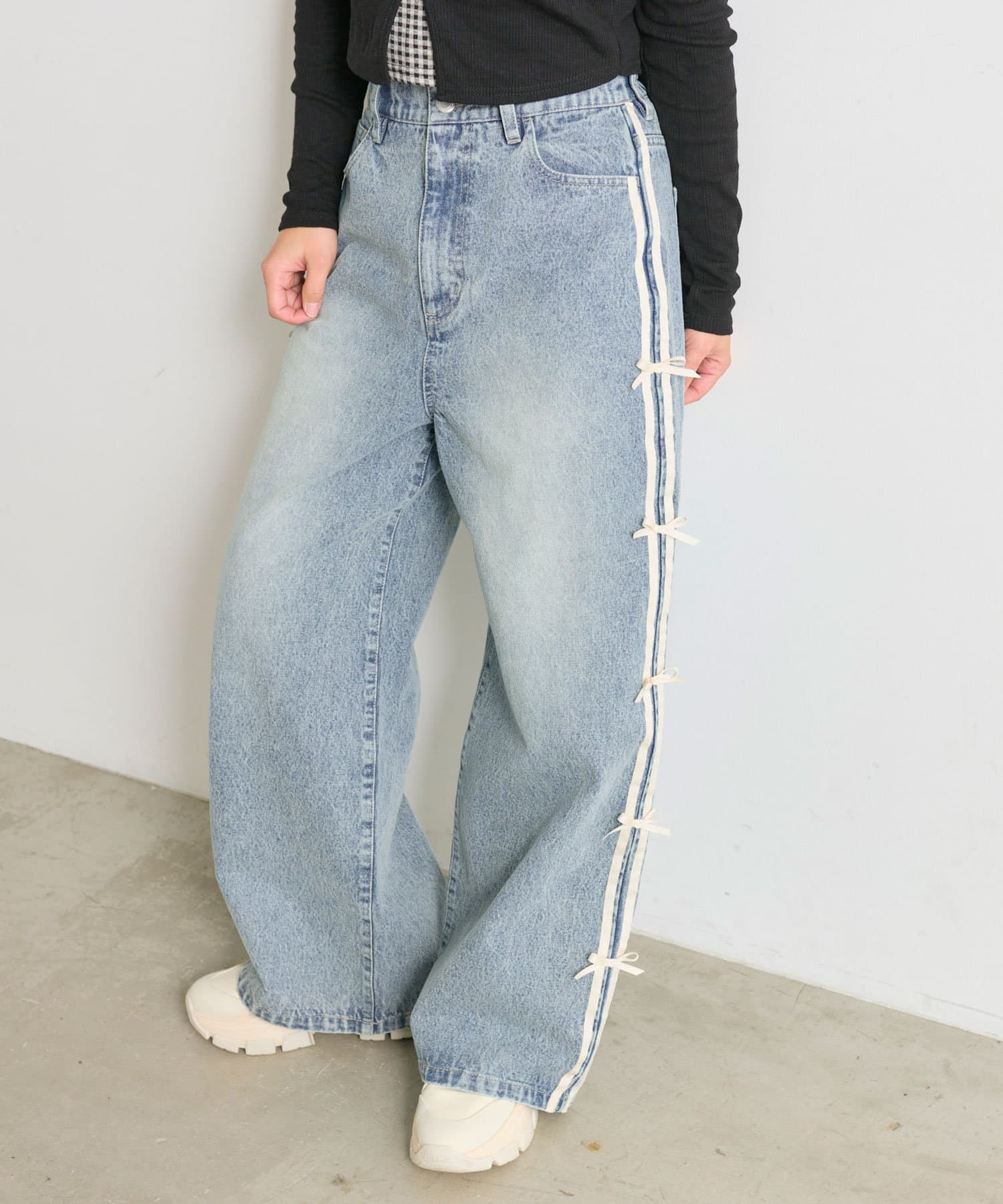 【S/Mサイズ展開】サイドラインリボンデニムパンツ