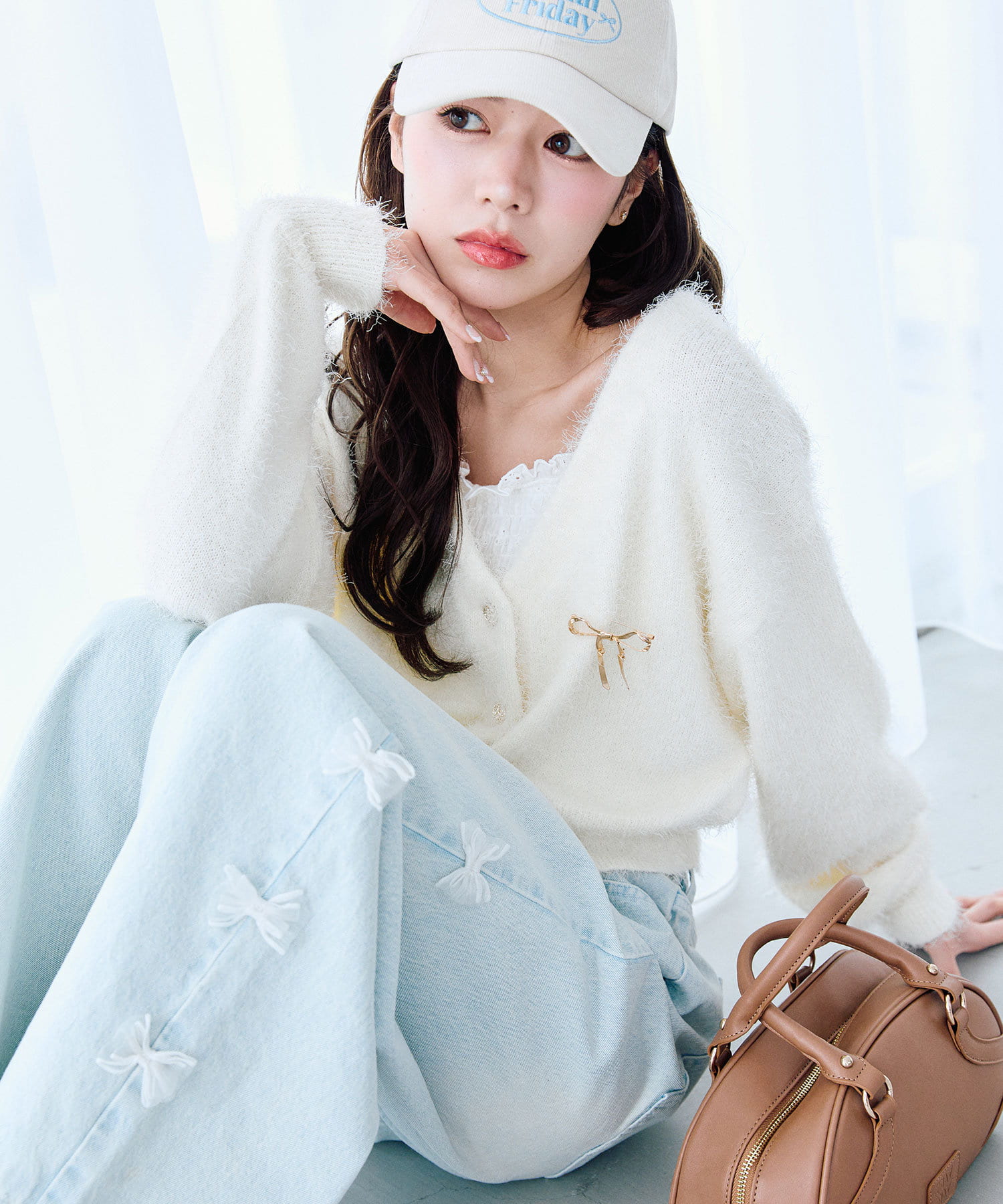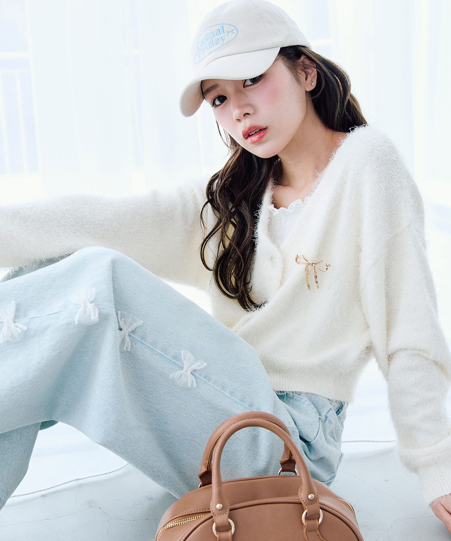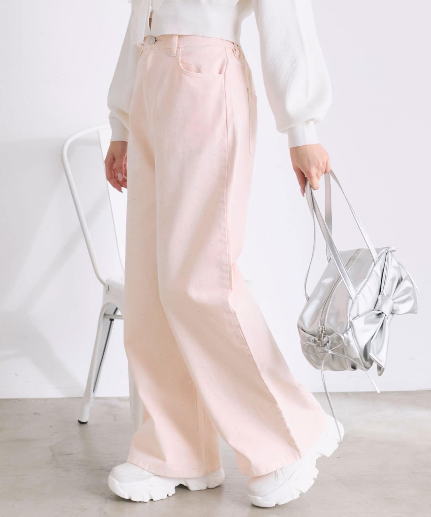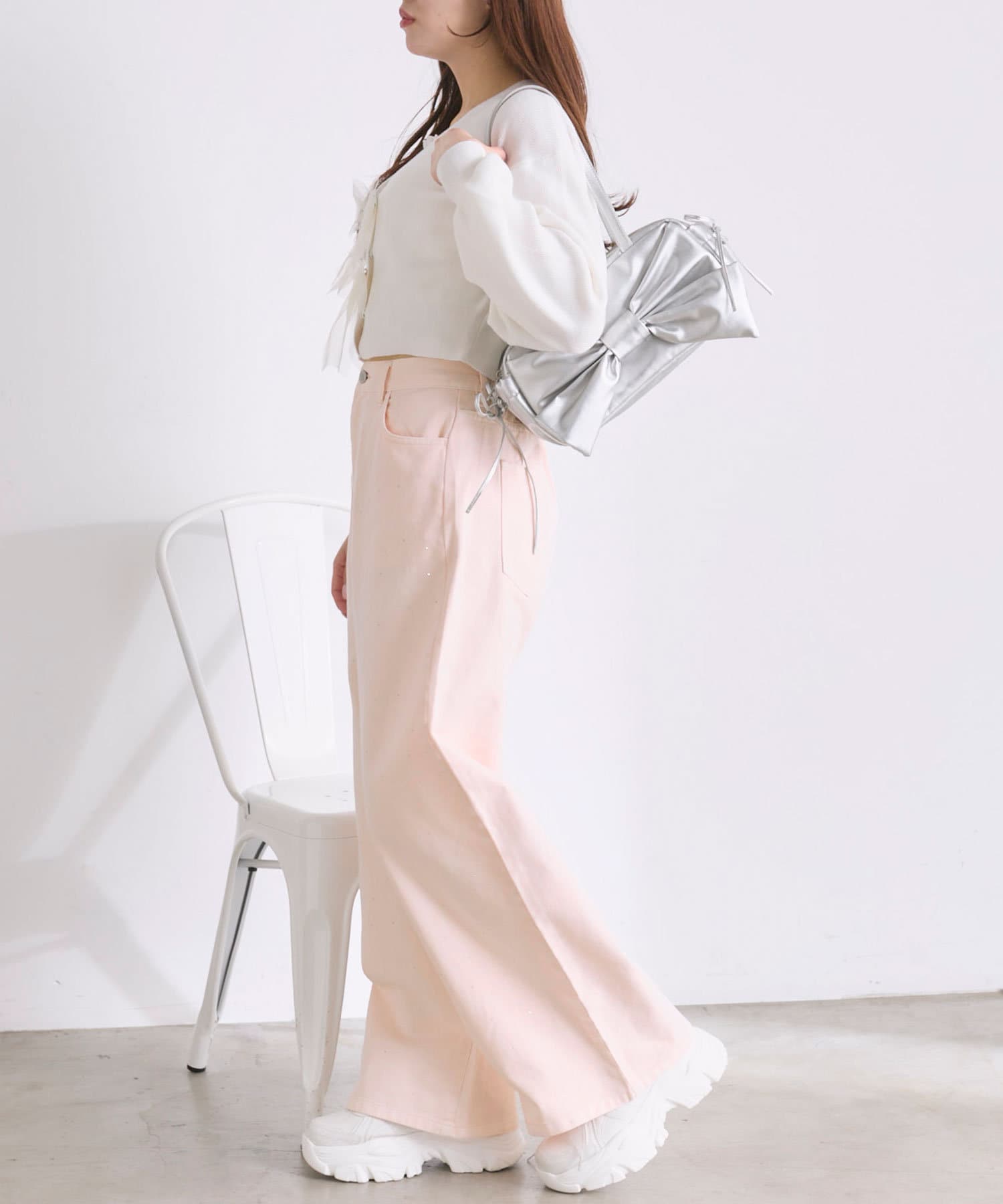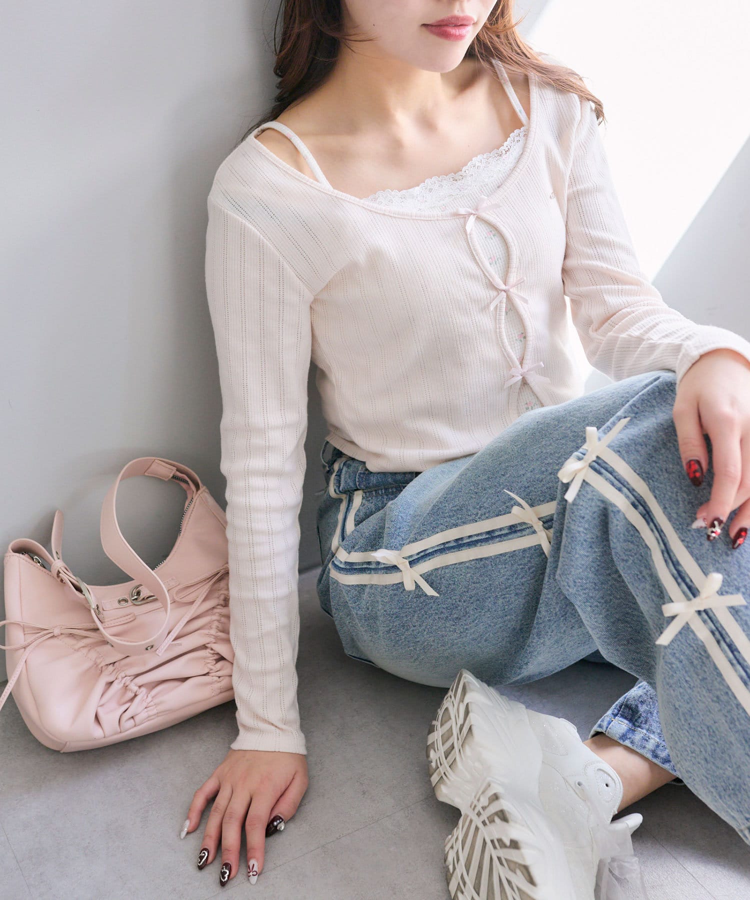 【S/Mサイズ展開】サイドラインリボンデニムパンツ