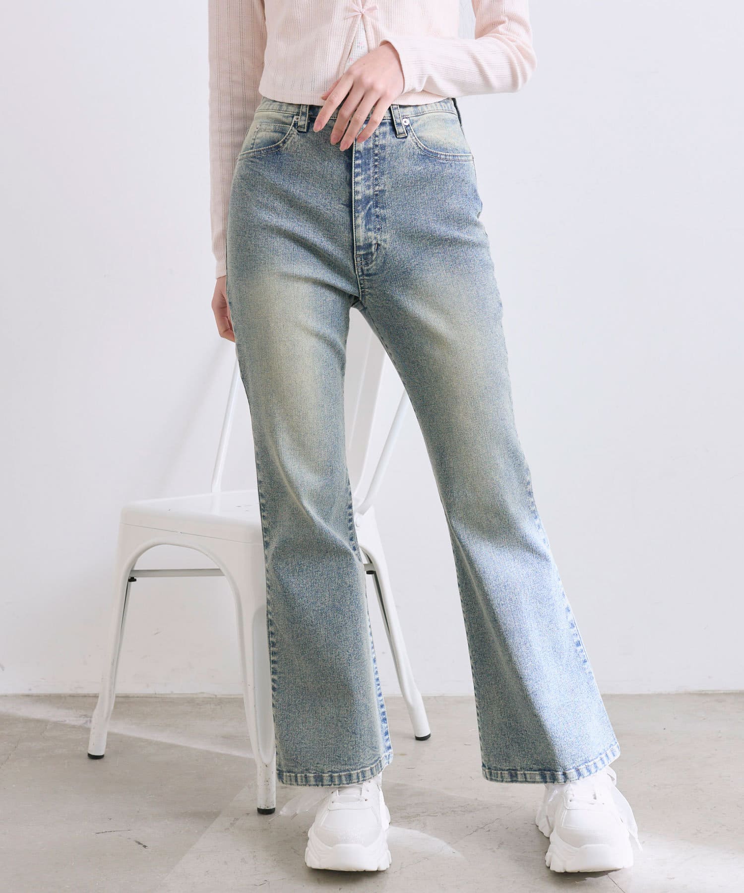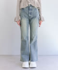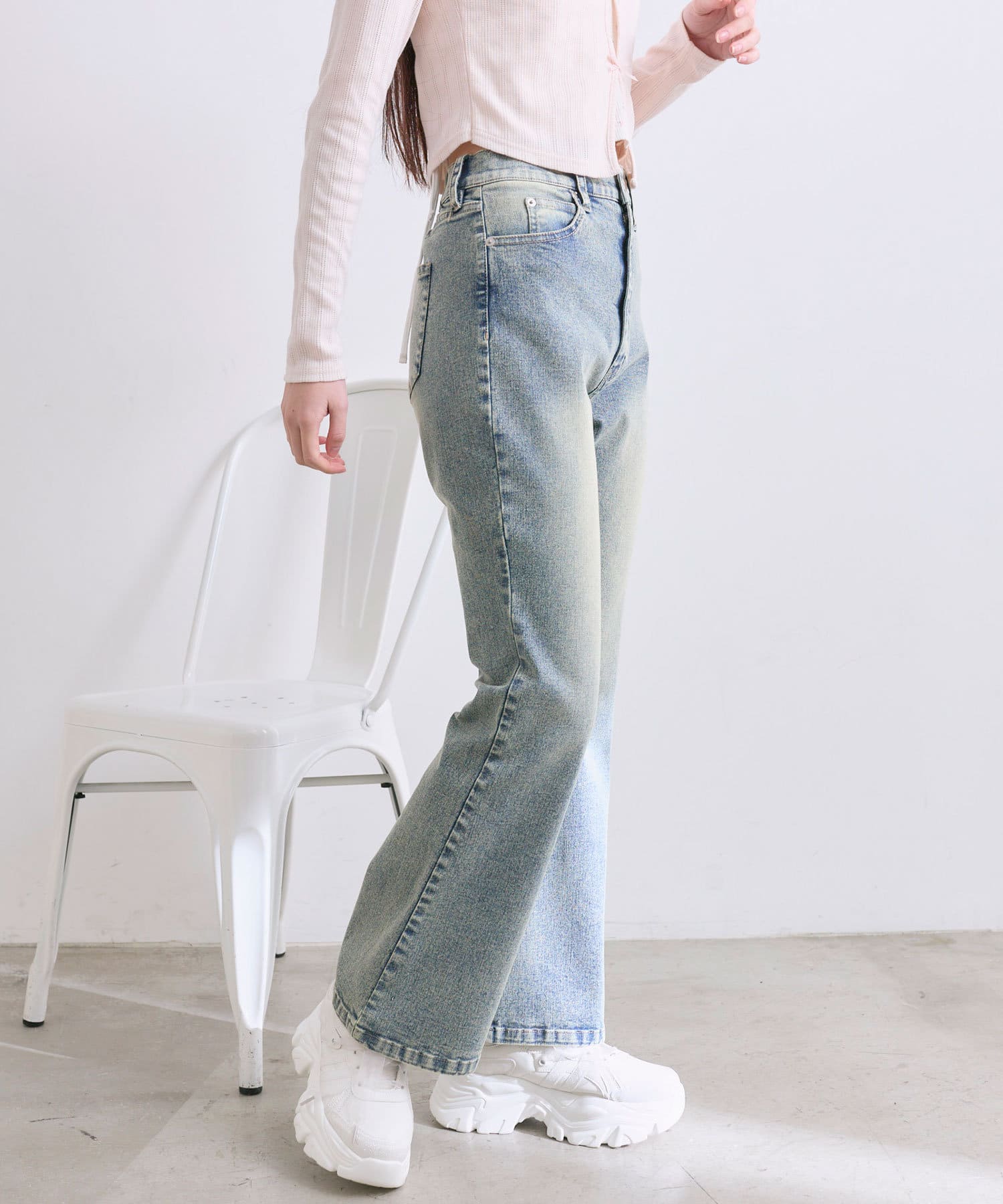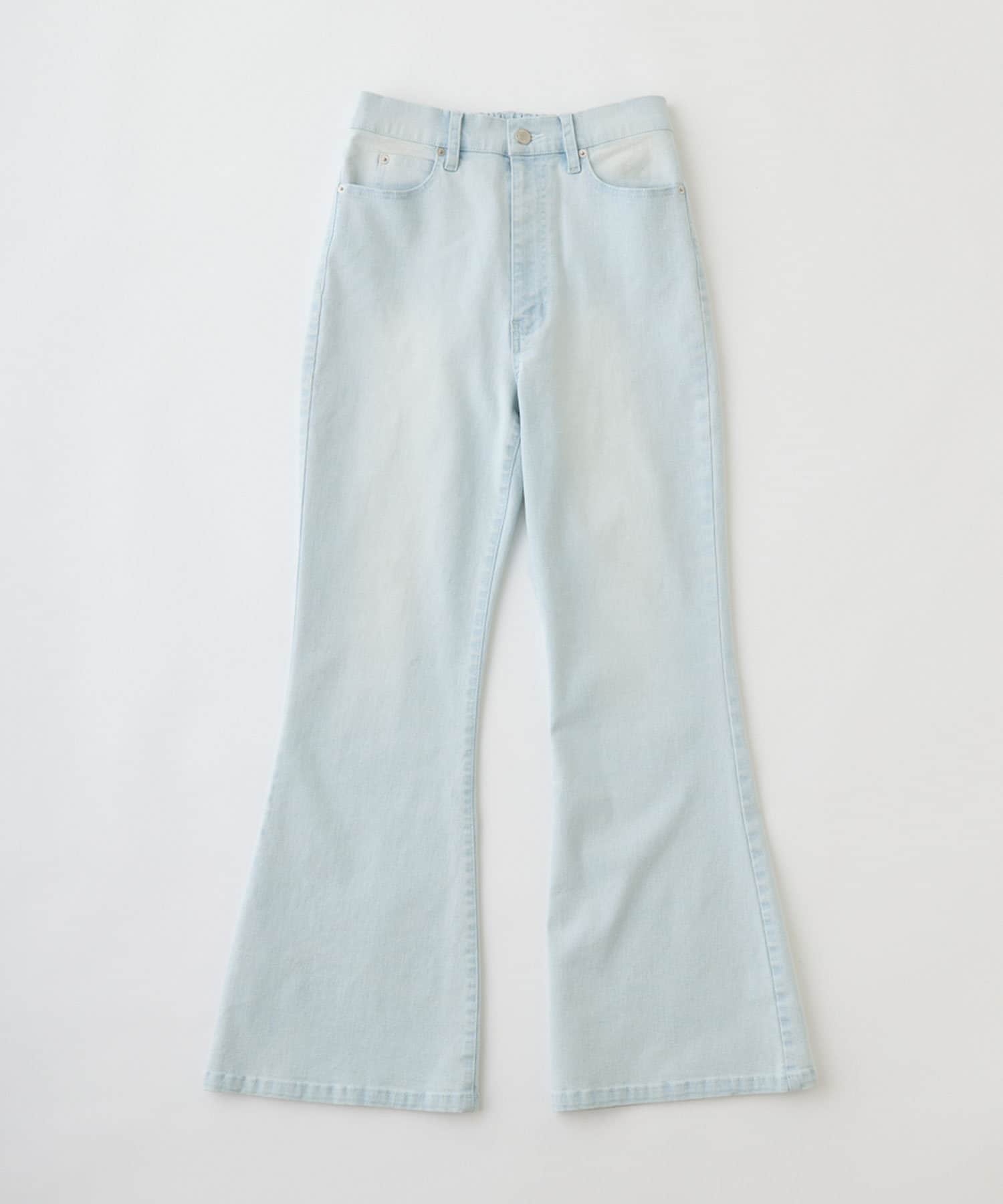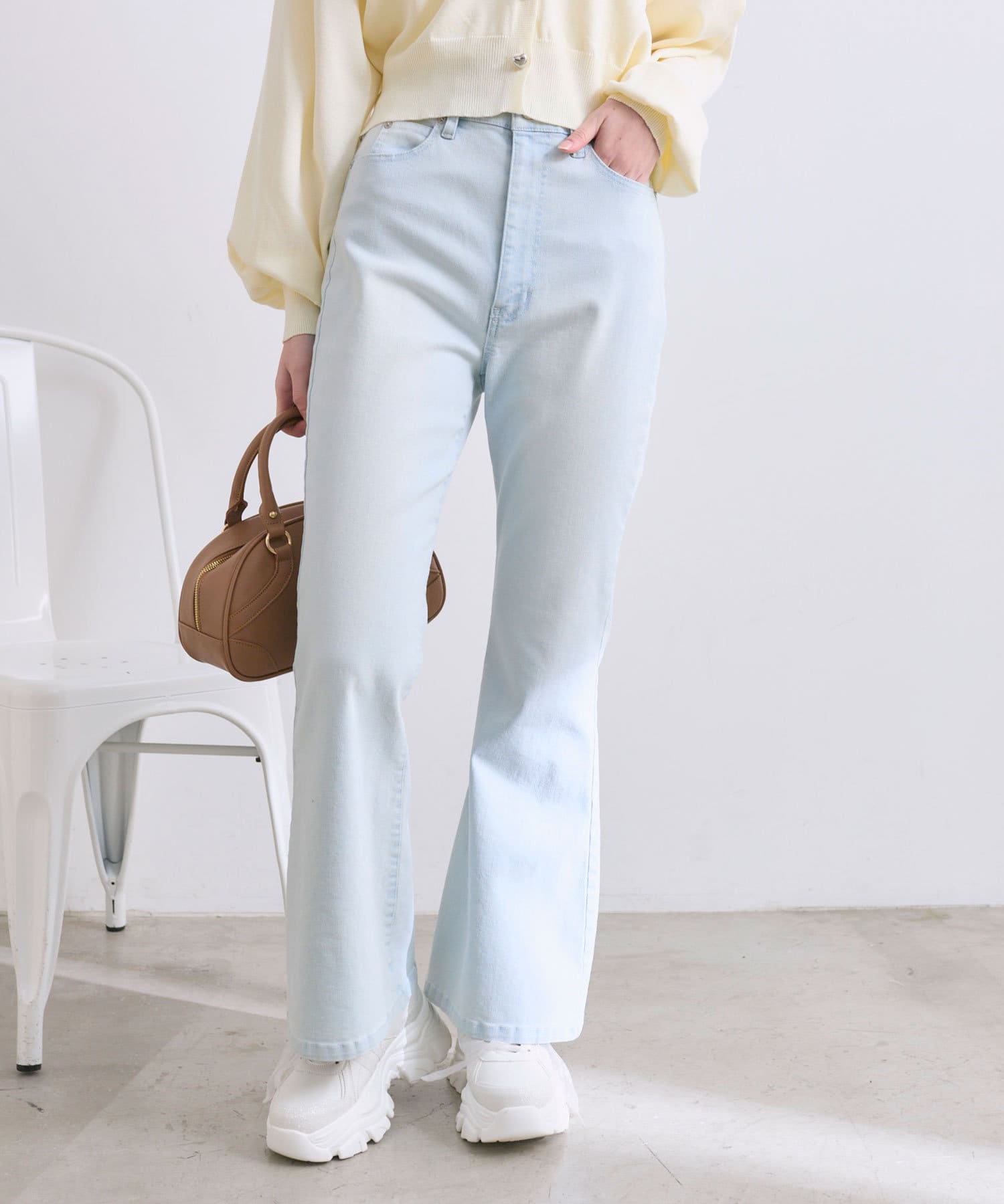 ・裾に向かって広がるフレアラインが美脚見えを叶えるデニムパンツ。