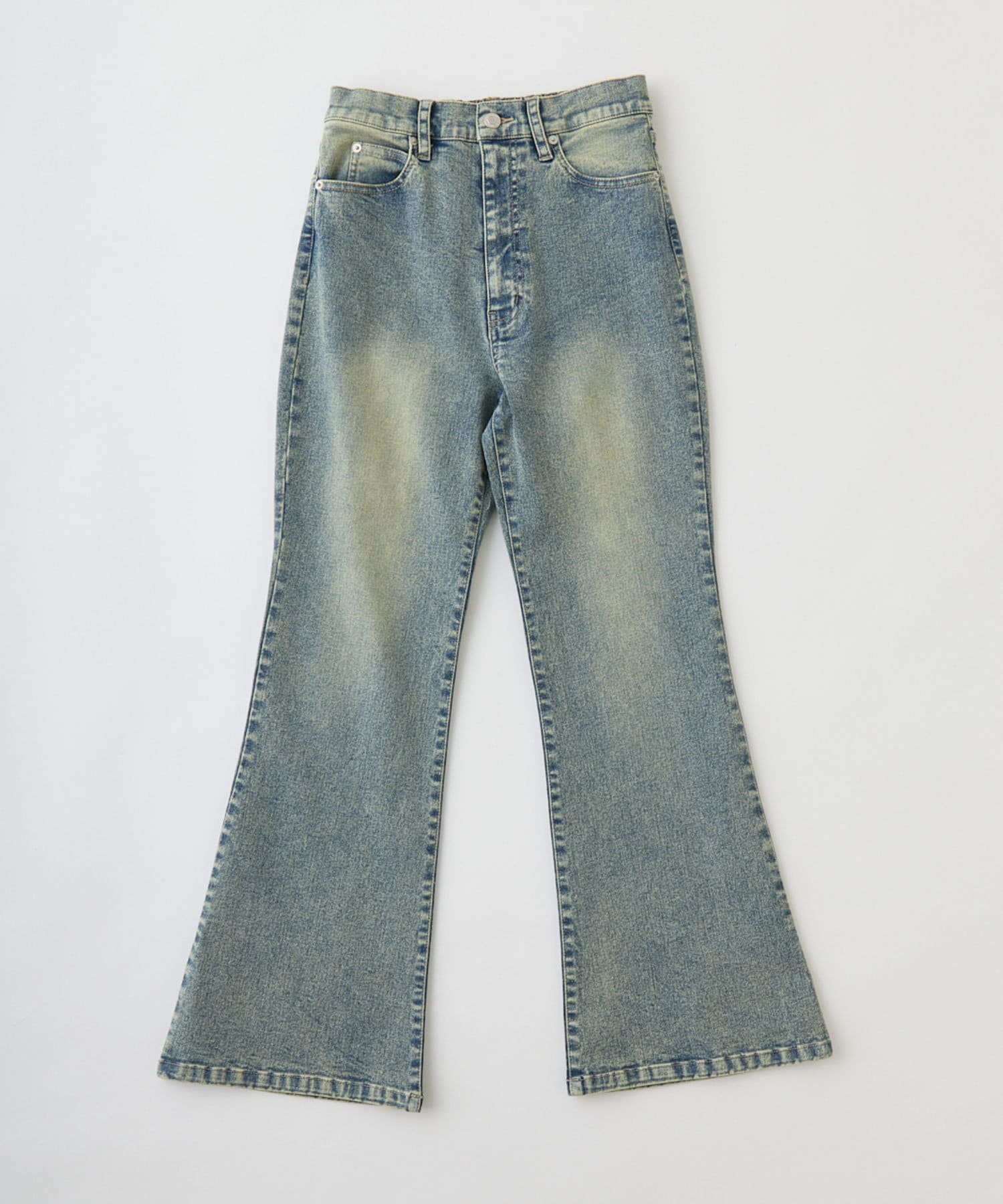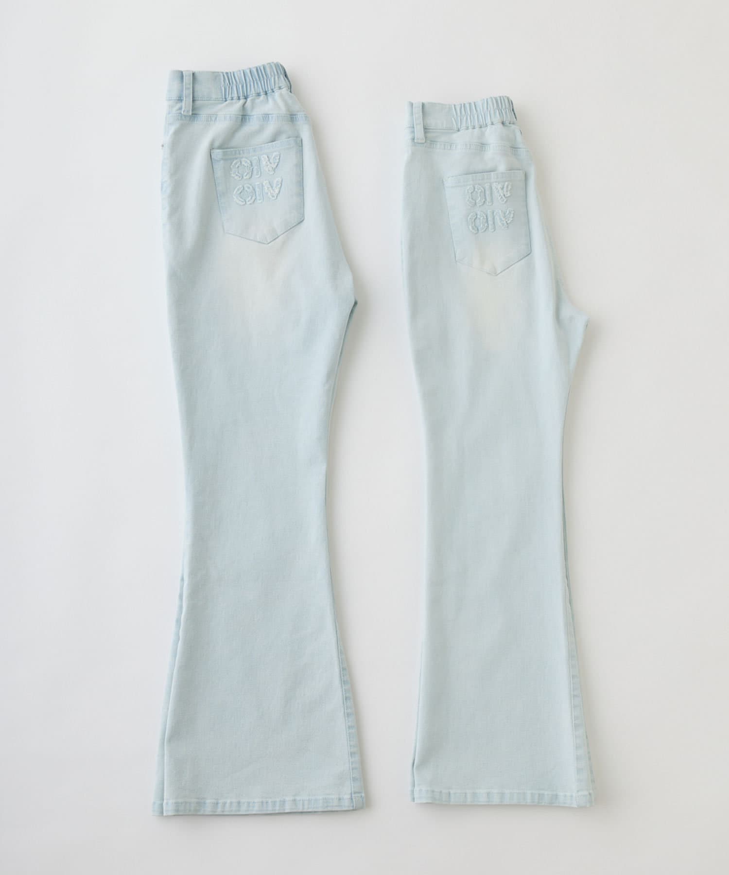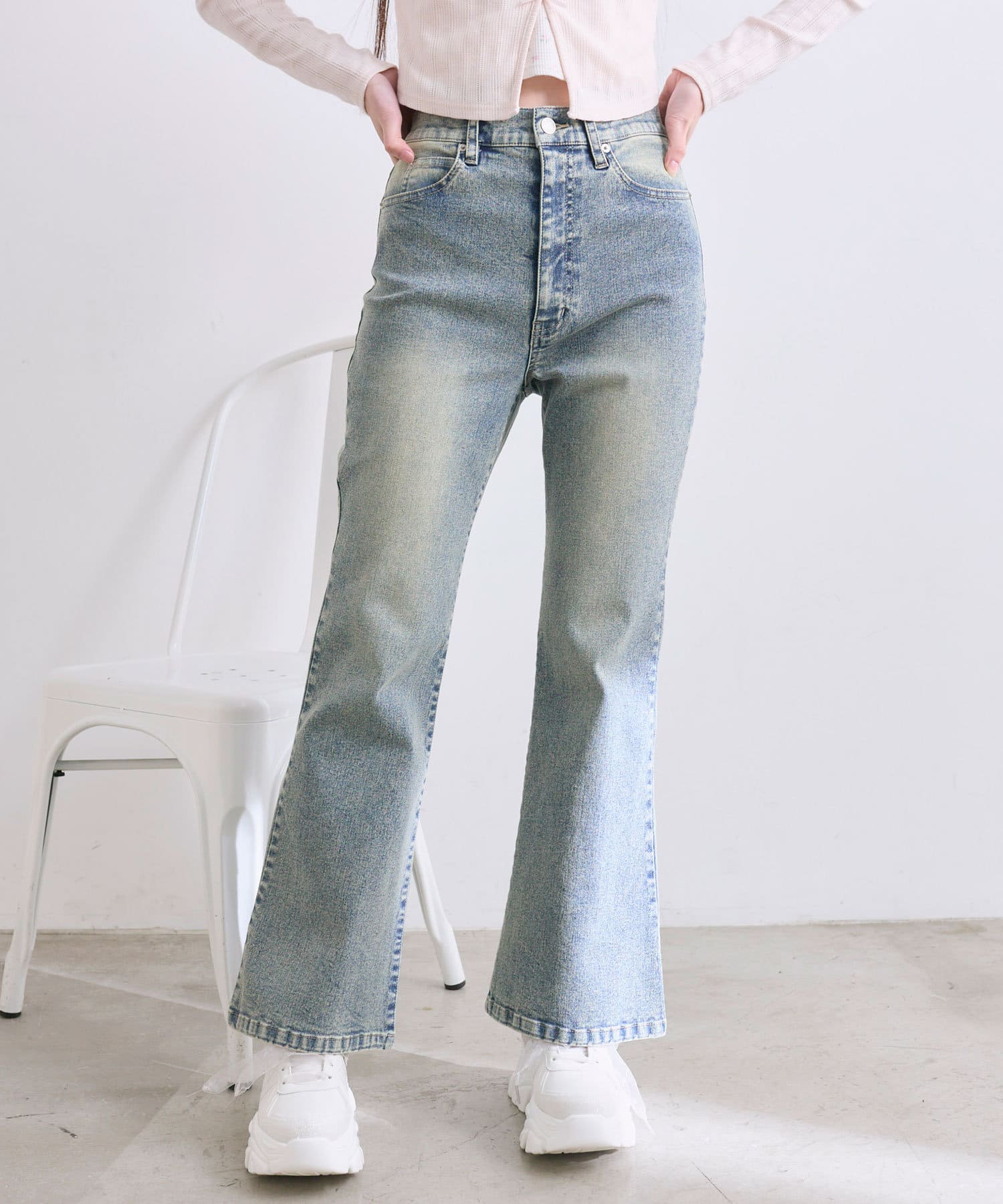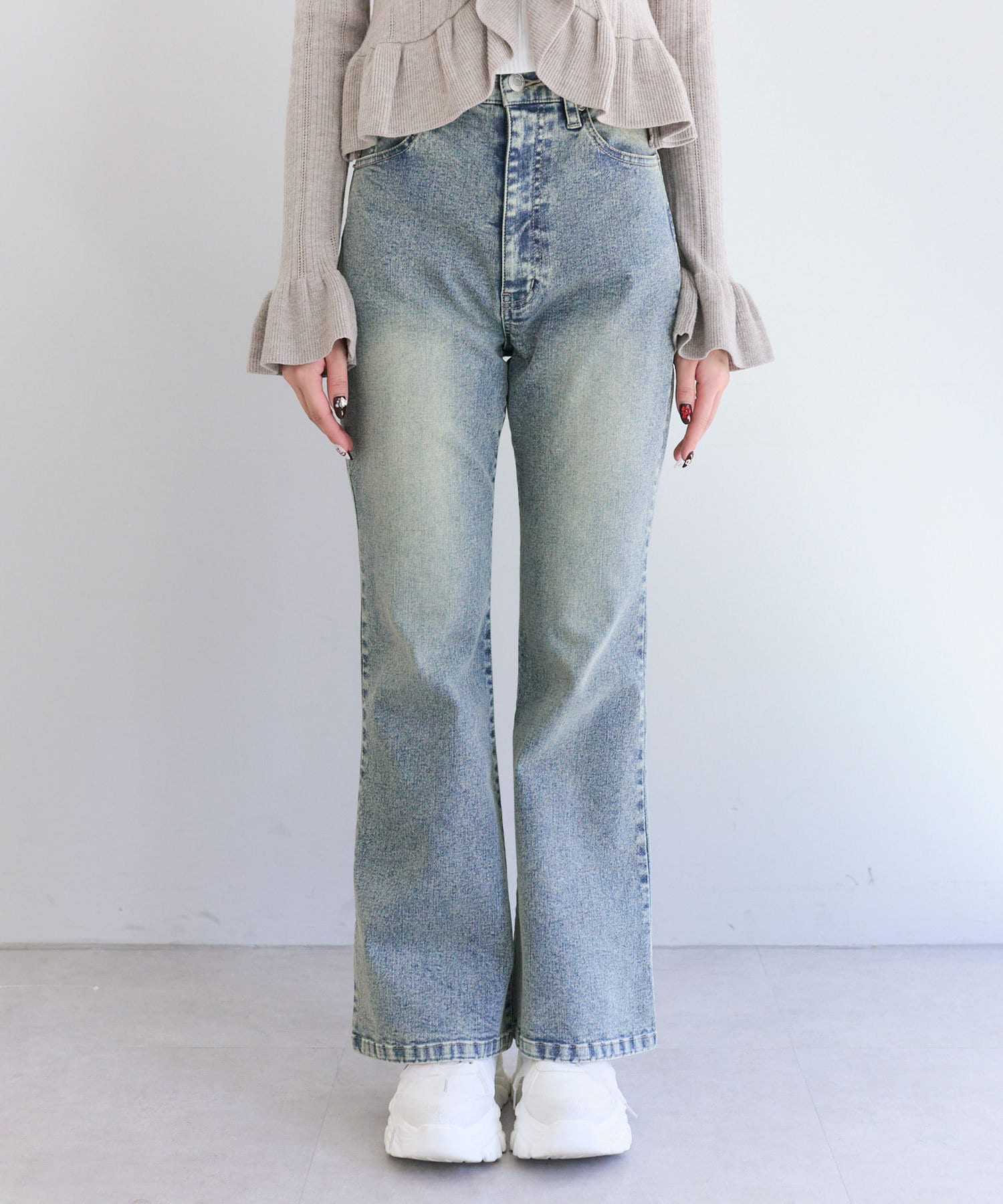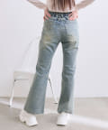 ・裾に向かって広がるフレアラインが美脚見えを叶えるデニムパンツ。