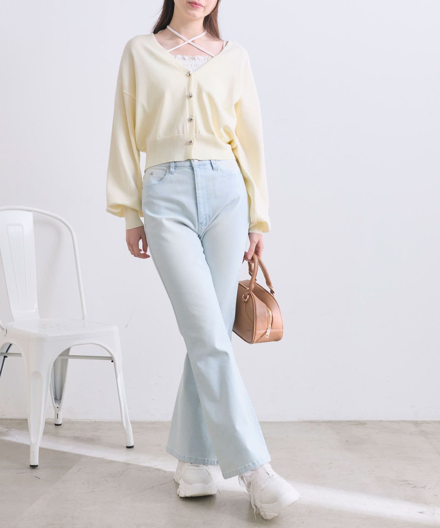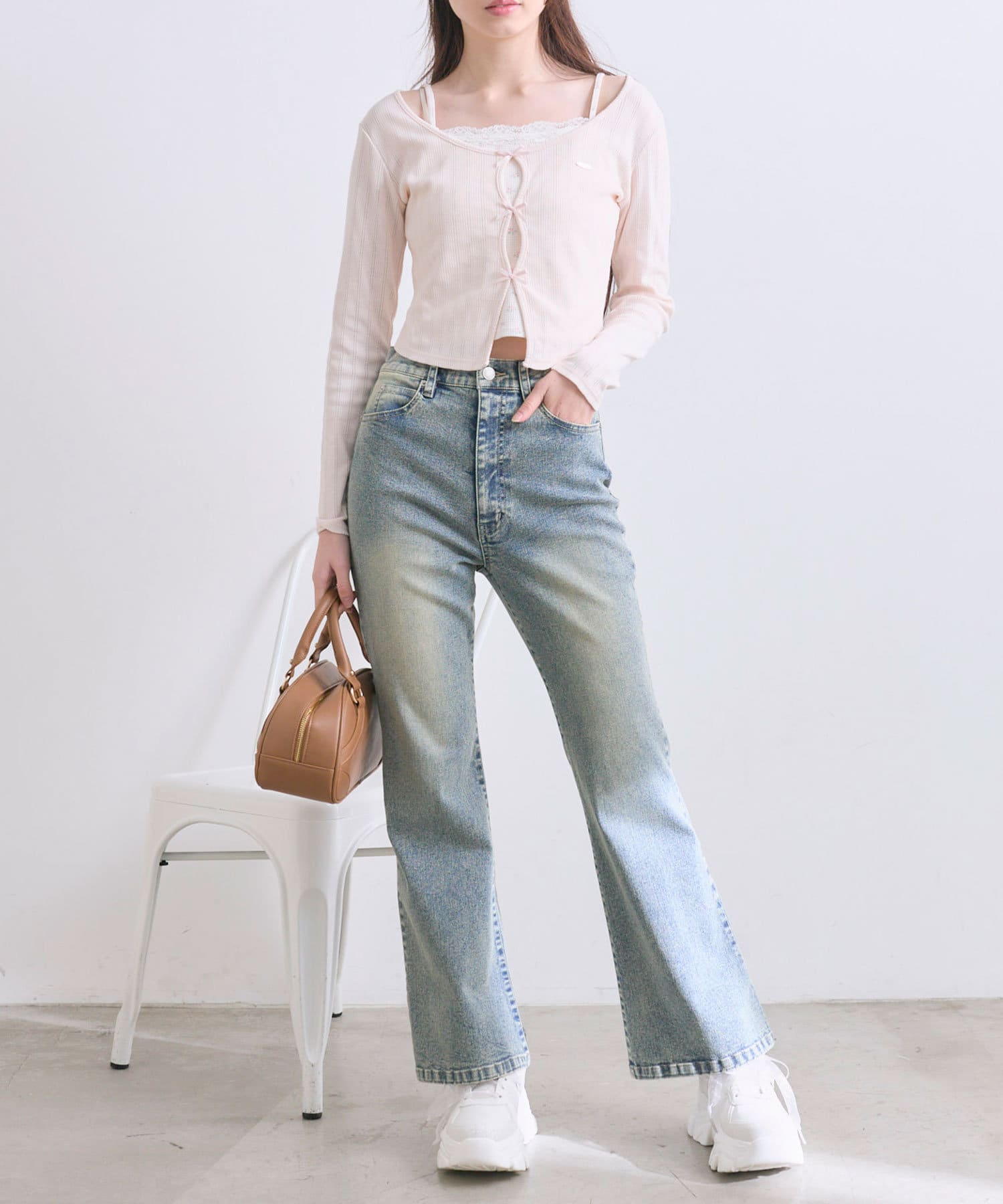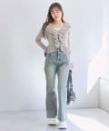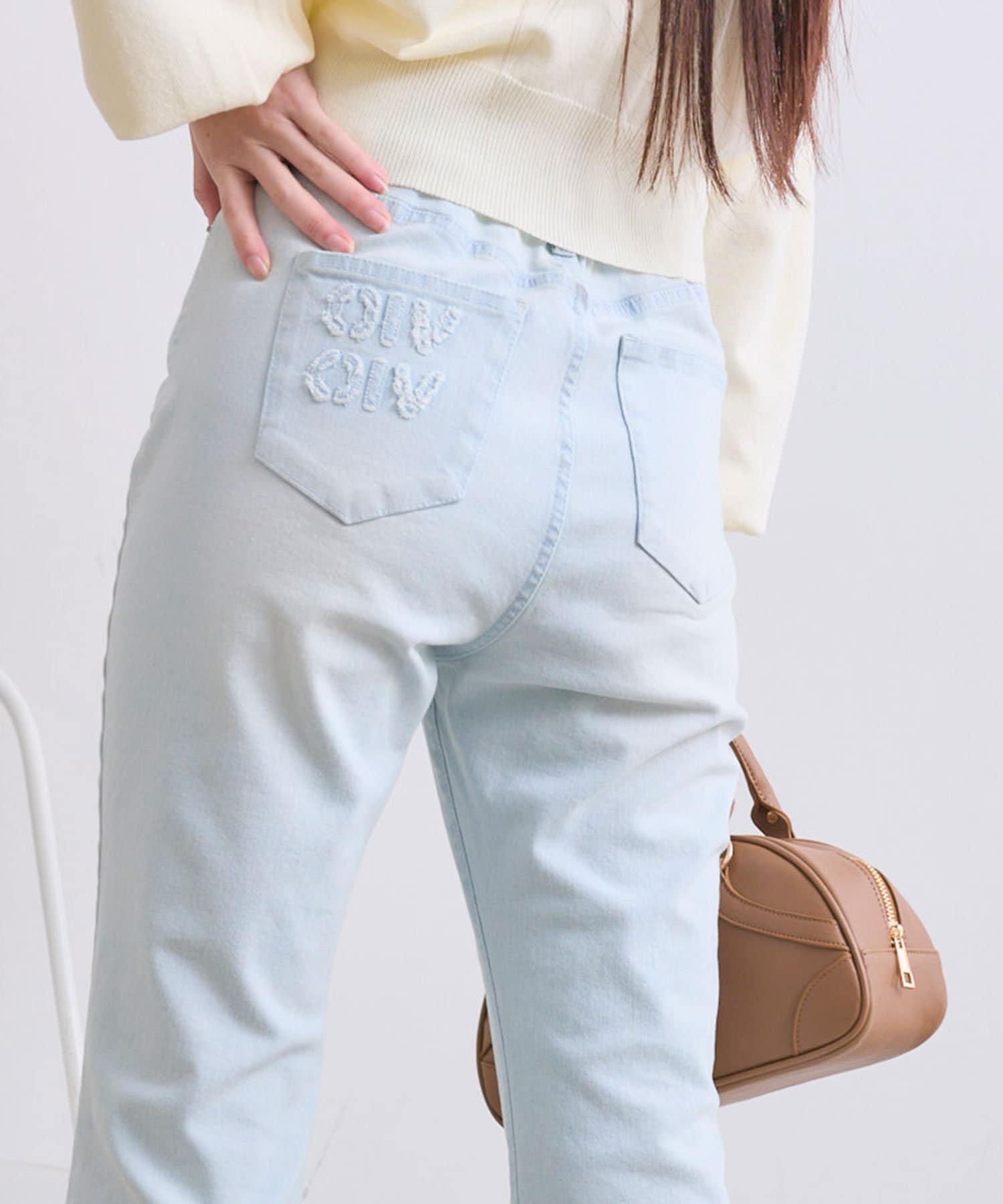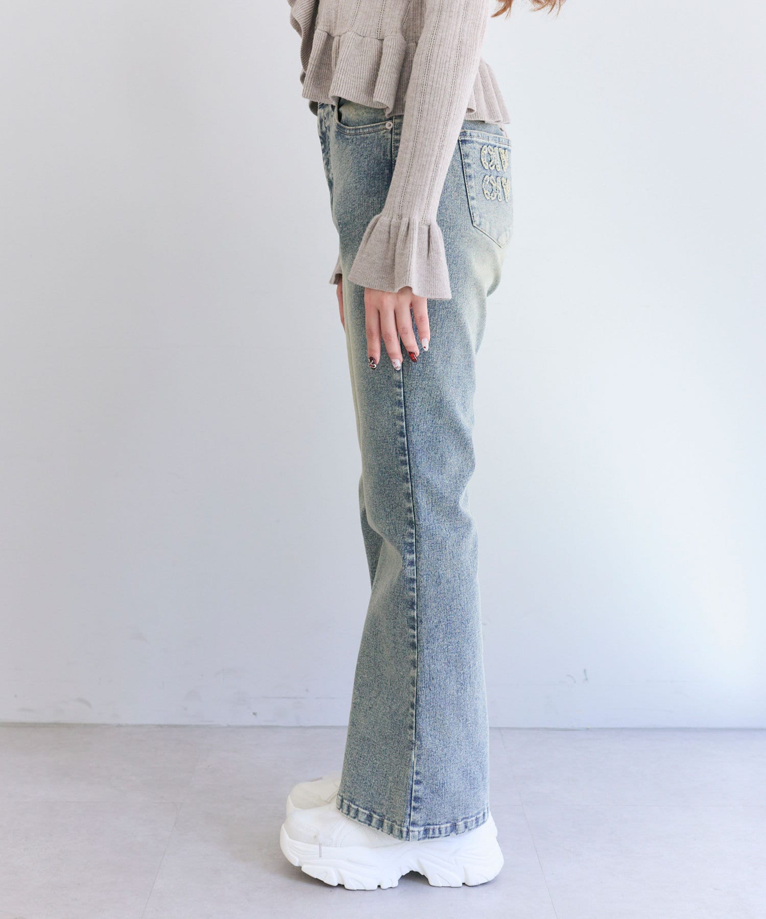 ・裾に向かって広がるフレアラインが美脚見えを叶えるデニムパンツ。