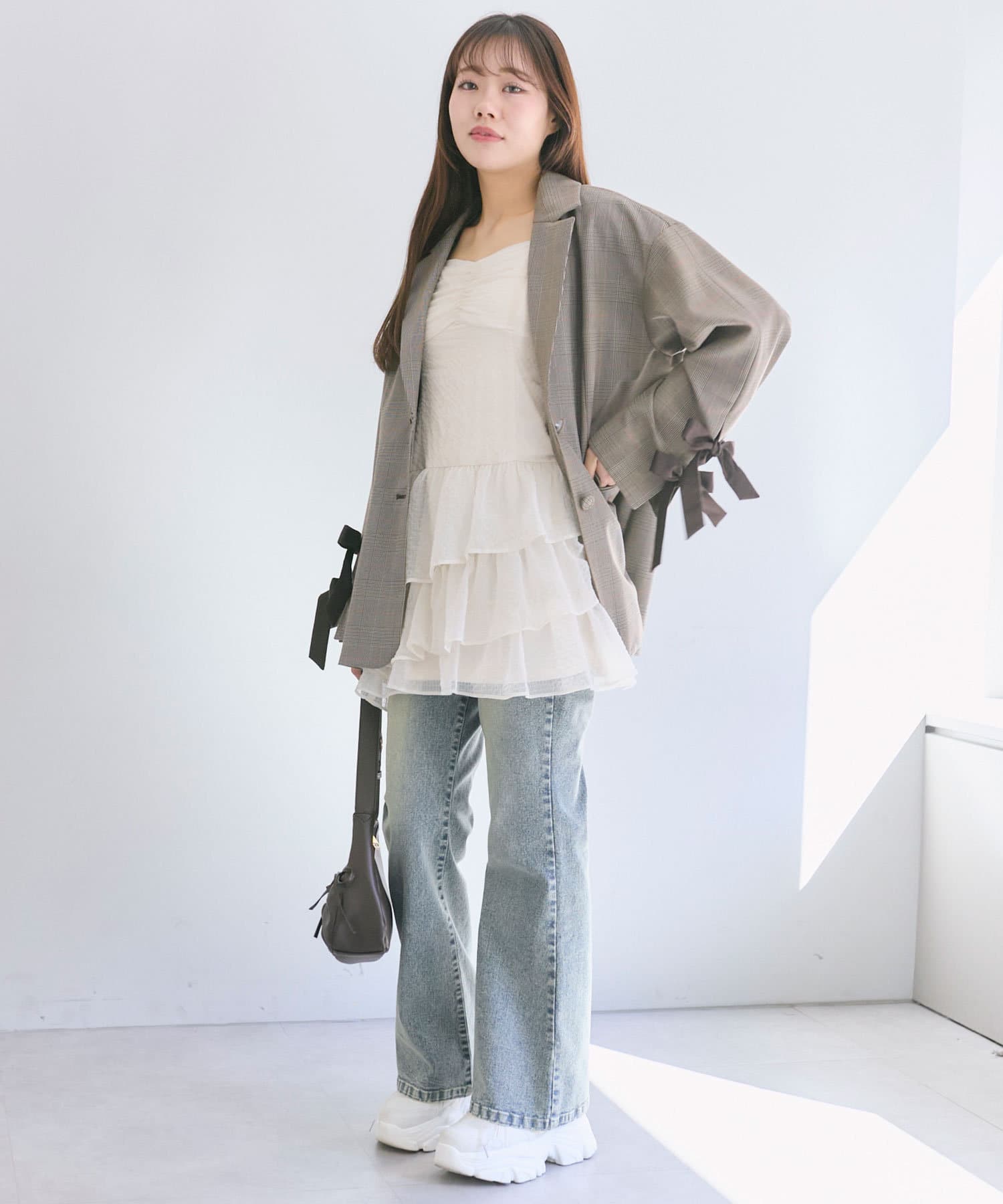 ・足元は厚底スニーカーを合わせるのがおすすめ。