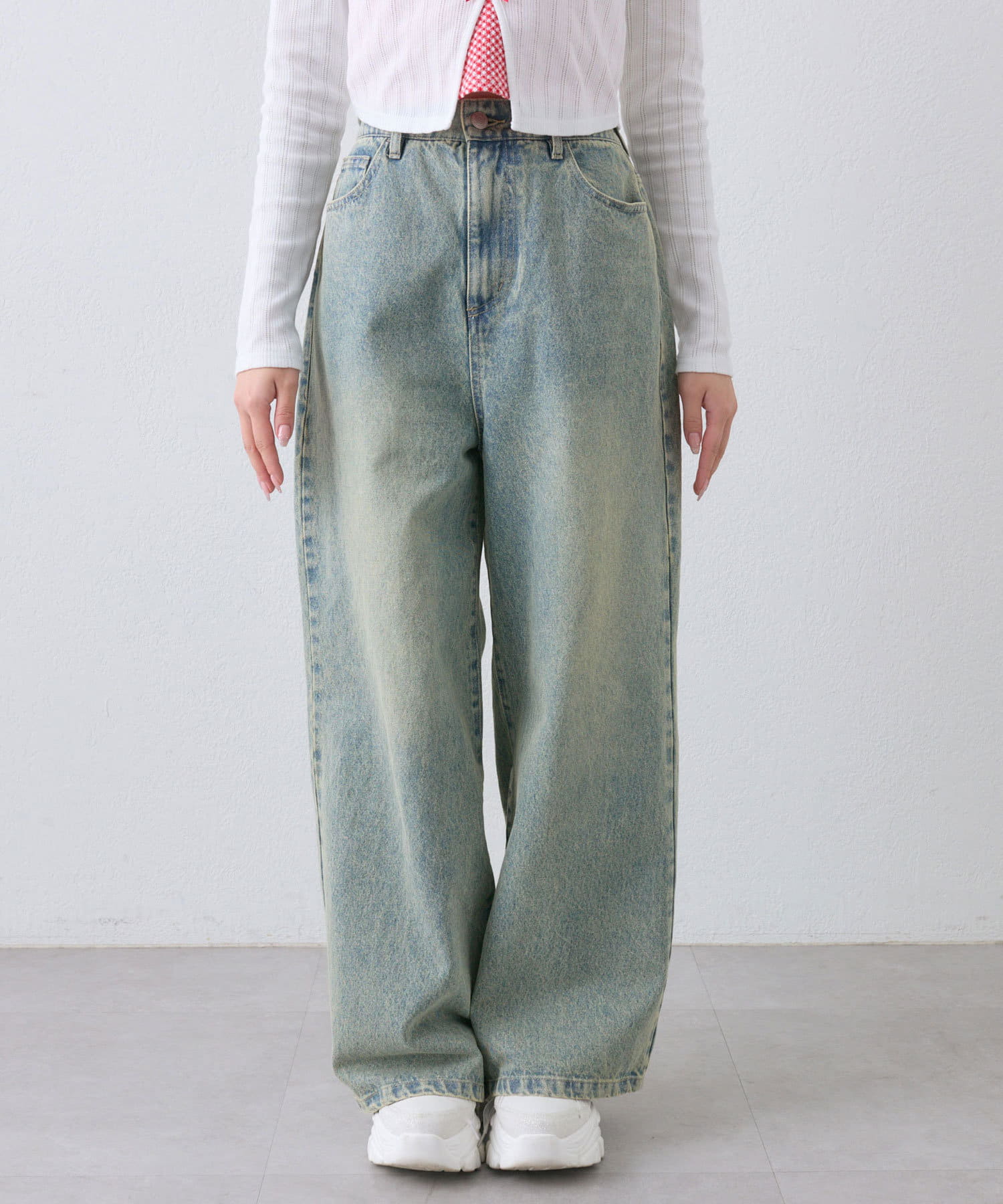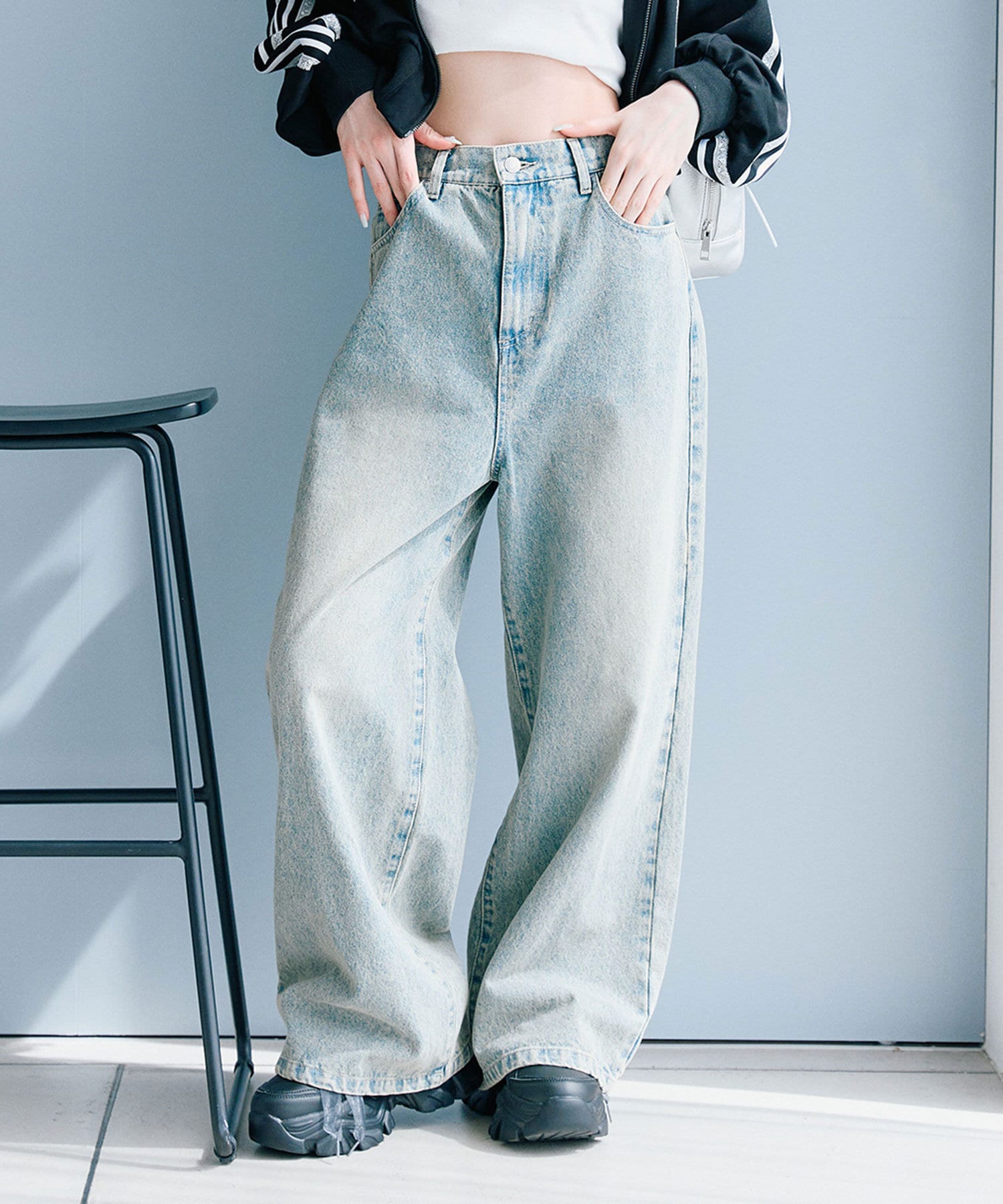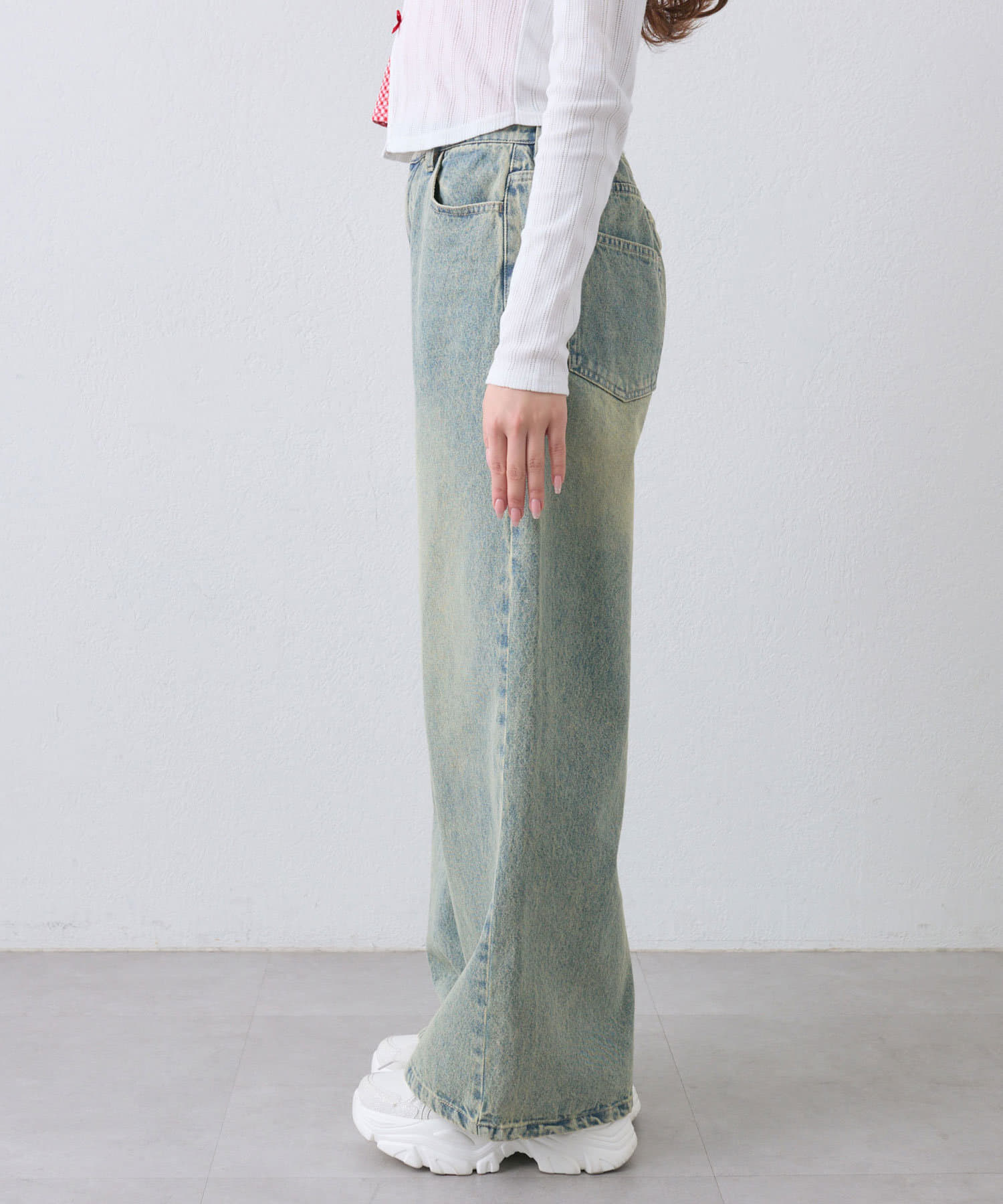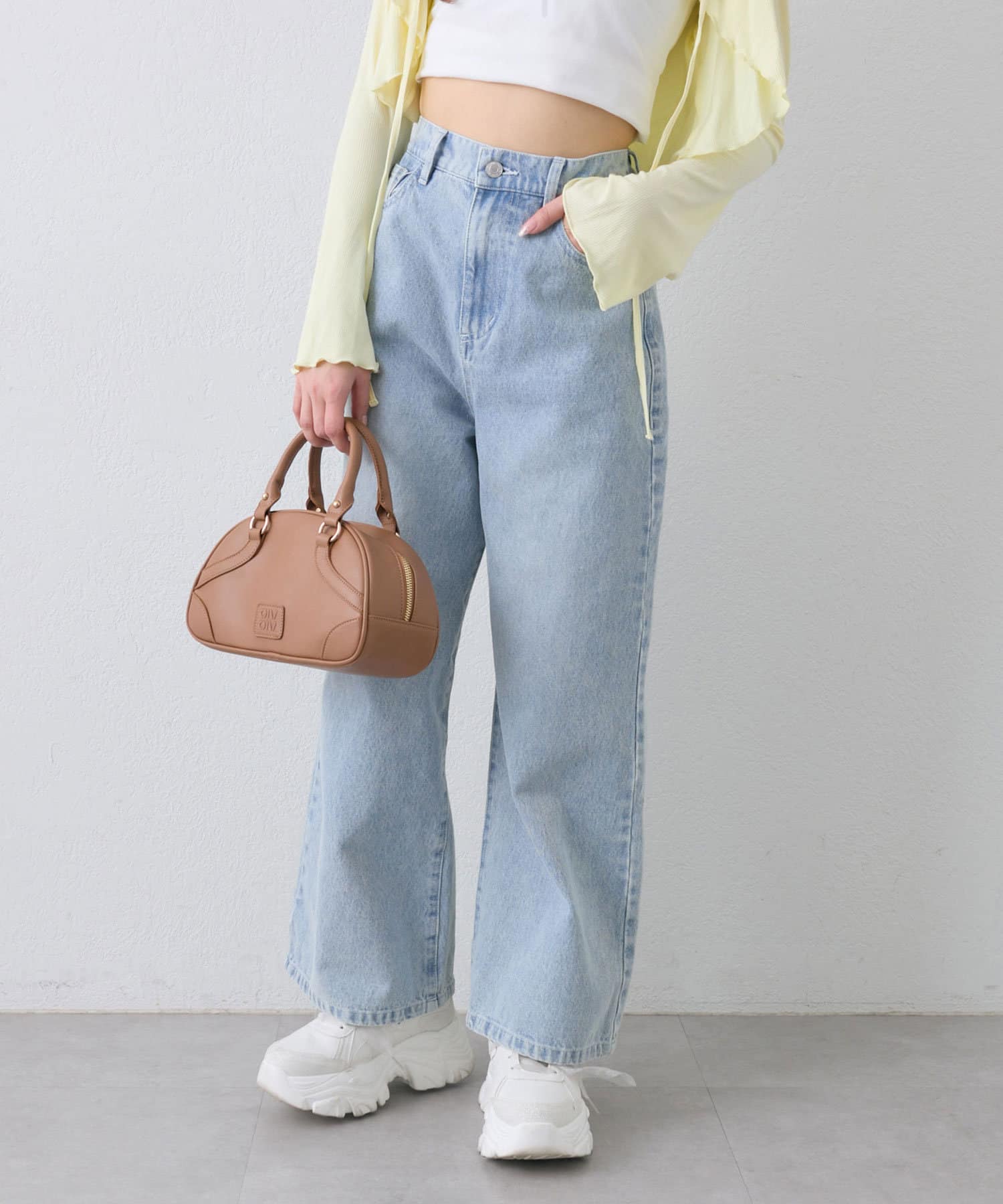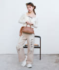 ・クロップド丈のトップスで合わせるとトレンド感のある着こなしになります。