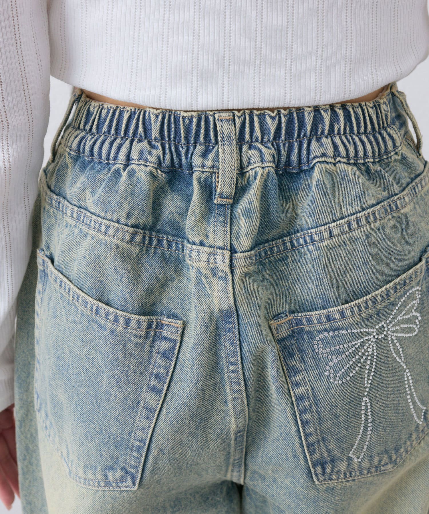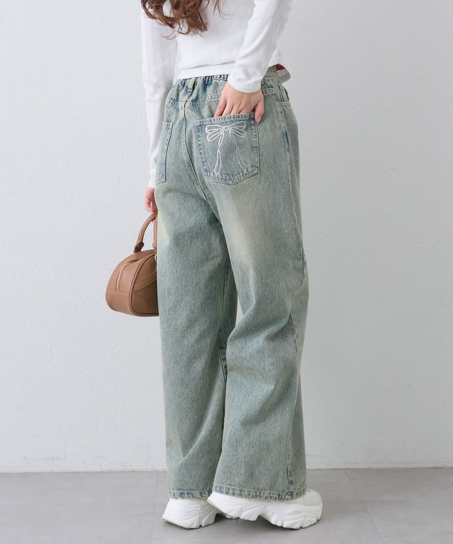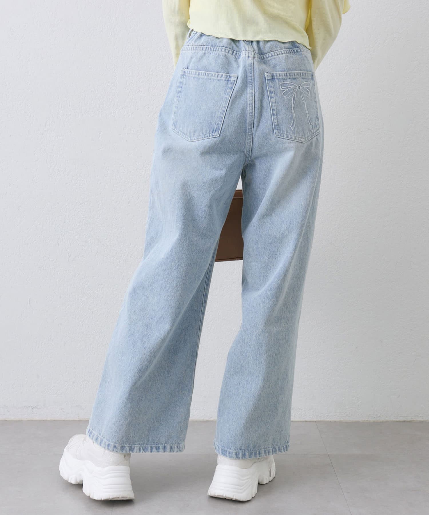 【S/Mサイズ展開】ポケットリボンデニムパンツ