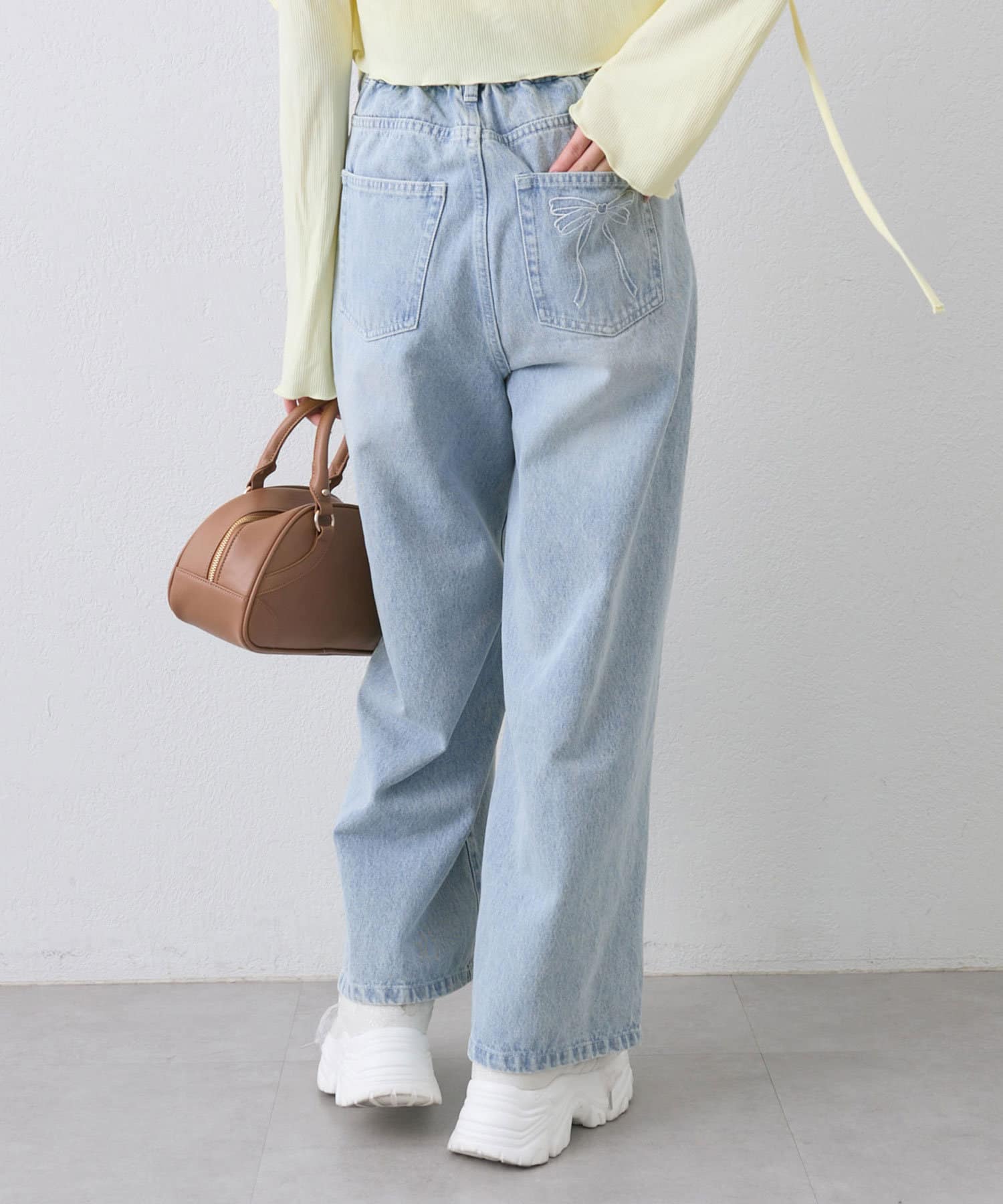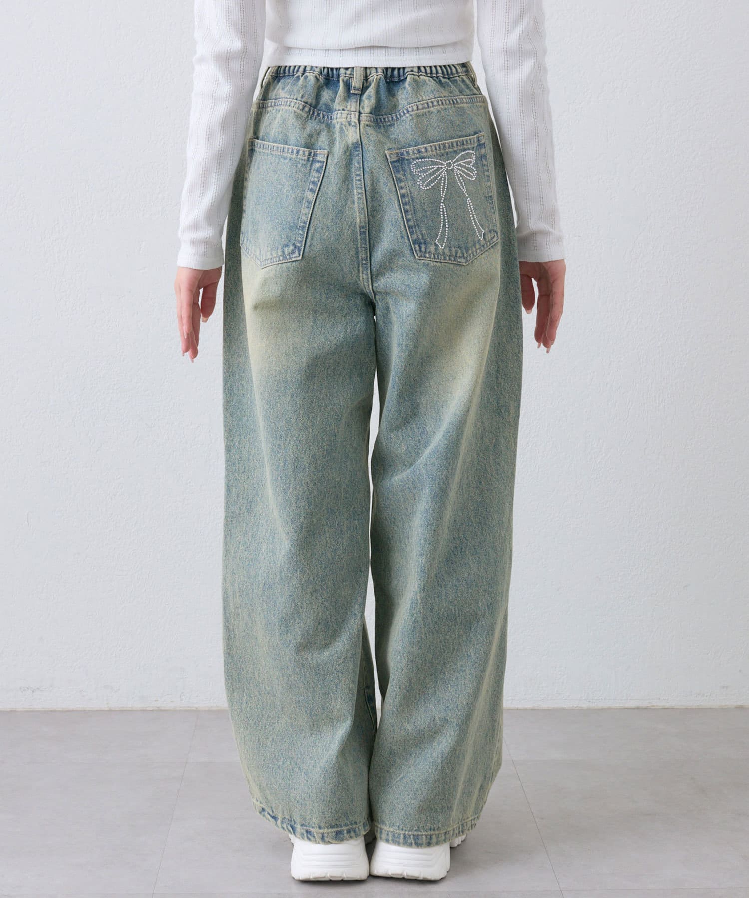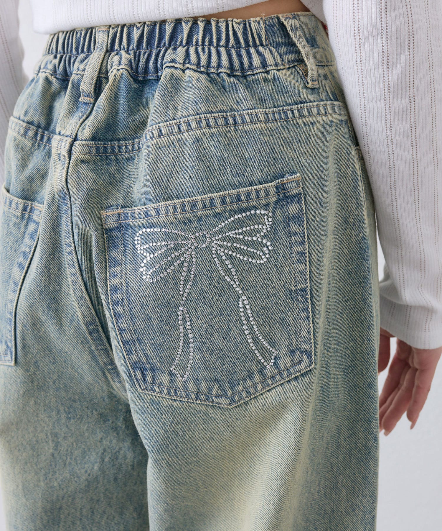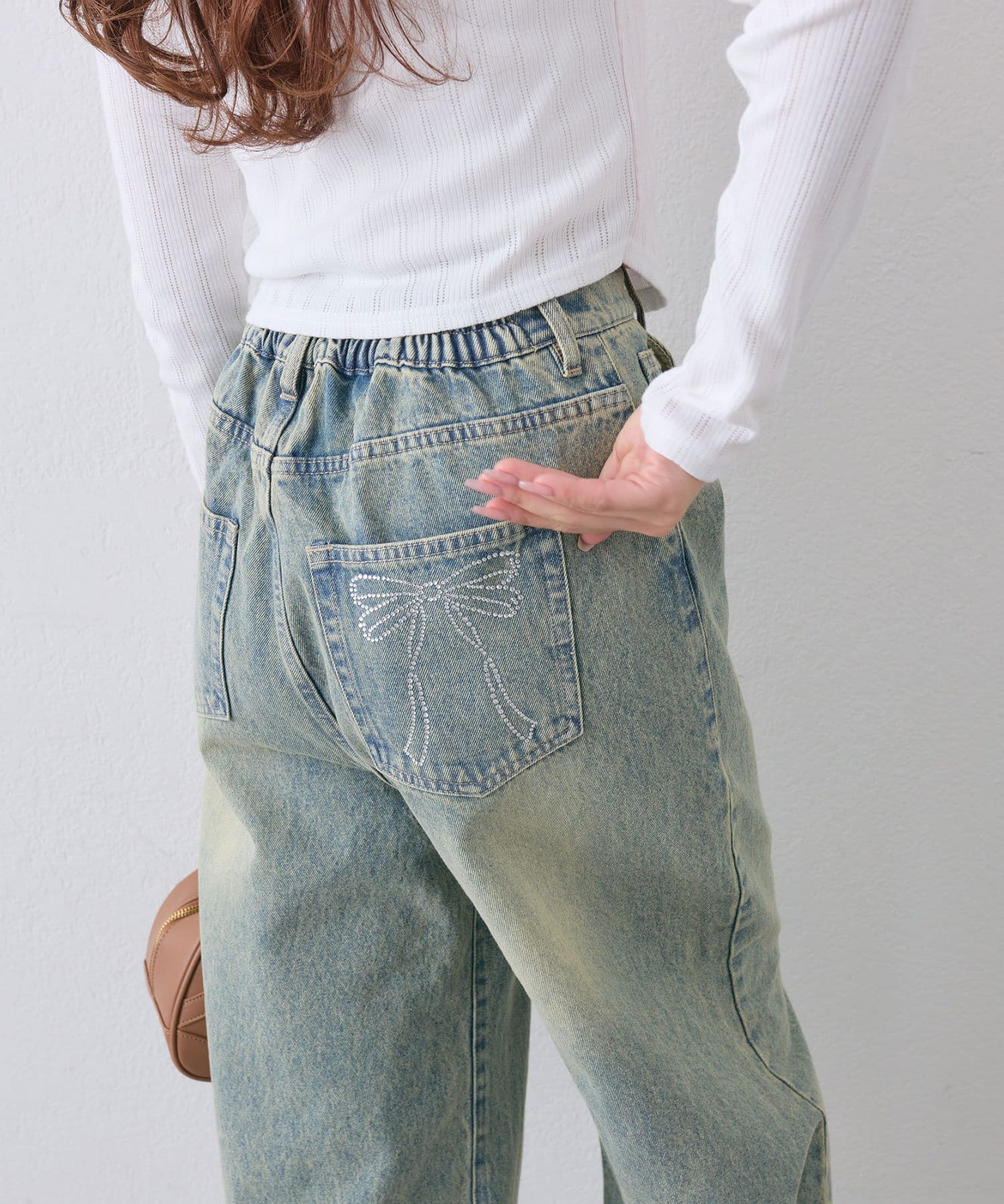 【S/Mサイズ展開】ポケットリボンデニムパンツ