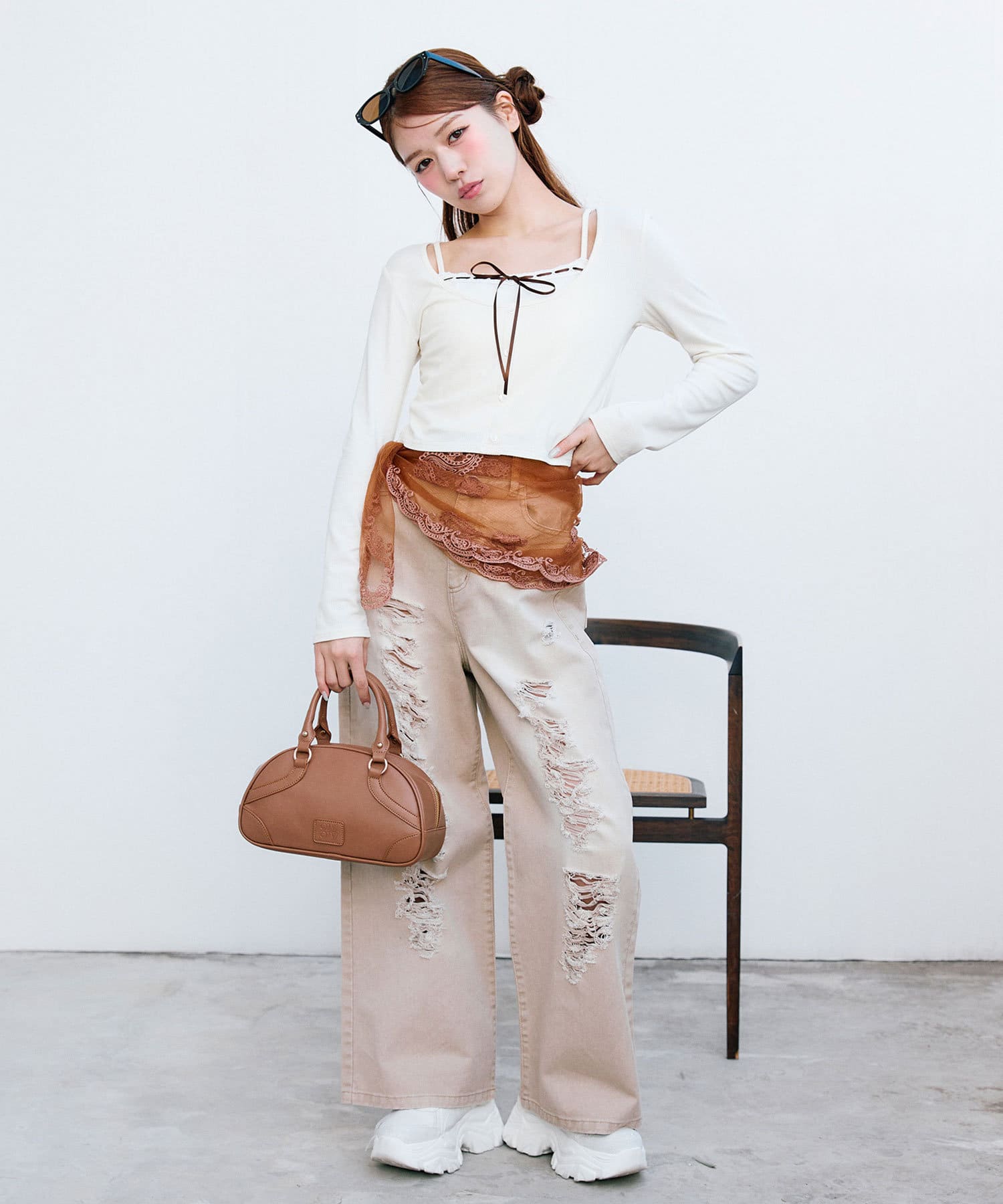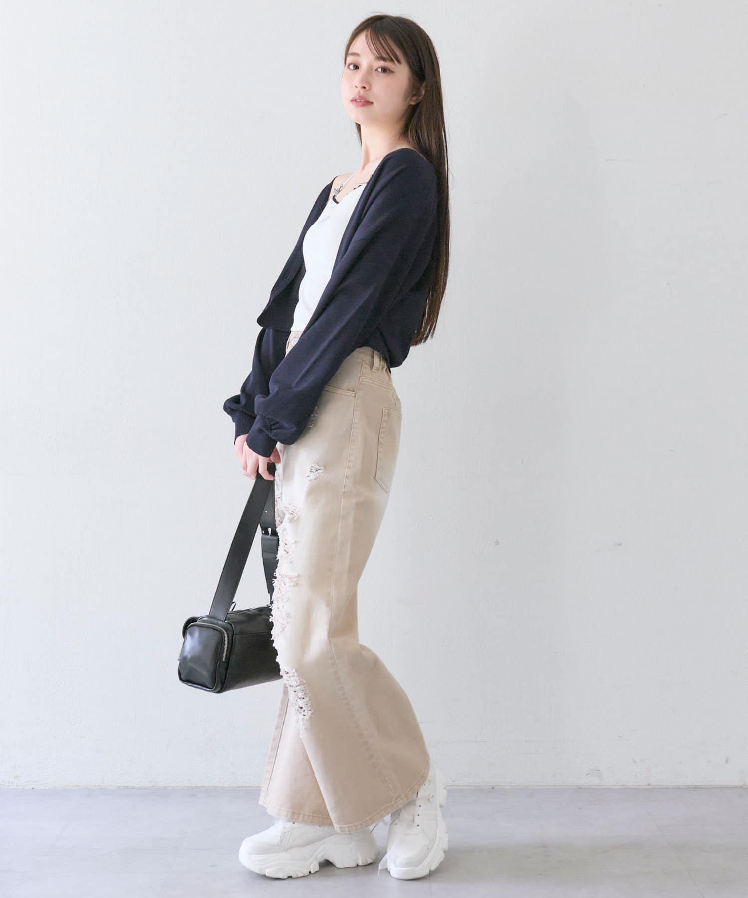 ・足元は厚底スニーカー合わせがおすすめ。